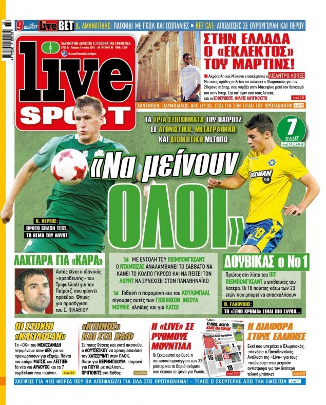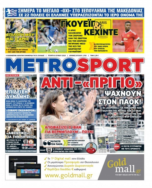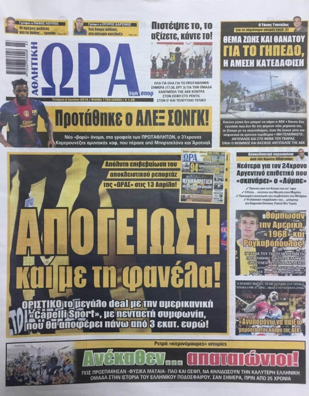 Οι αθλητικές εφημερίδες 6/6/2018 Enikos Newsroom 07:10, Τετάρτη 06 Ιουνίου 2018 Media Διαβάστε τα σημερινά πρωτοσέλιδα των αθλητικών εφημερίδων. ΑΘΛΗΤΙΚΕΣ ΕΦΗΜΕΡΙΔΕΣ ΕΦΗΜΕΡΙΔΕΣ ΠΡΩΤΟΣΕΛΙΔΑ Μοιράσου το: σχολίασε κι εσύ (0 σχόλια) Ακολουθήστε το enikos.gr στο Google News και μάθετε πρώτοι όλες τις ειδήσεις Δείτε όλες τις τελευταίες ειδήσεις από την Ελλάδα και τον Κόσμο στο enikos.gr Ειδήσεις Ροή Ειδήσεων 3 ώρες πριν Χριστούγεννα στα μπλόκα: Επιμένουν στις κινητοποιήσεις τους οι αγρότες – Ανοίγουν τα διόδια το Σαββατοκύριακο 4 ώρες πριν Ουκρανία: Η άνευ προηγουμένου επίθεση σε ρωσικό τάνκερ στη Μεσόγειο και το μήνυμα προς στον Πούτιν – Το «μακρύ χέρι» του Κιέβου 3 ώρες πριν Πούτιν: Τα μηνύματα σε Ευρώπη και ΝΑΤΟ από το μαραθώνιο «σόου» του – Η απαίτηση για «σεβασμό» και η ειρήνη «με τους όρους» της Μόσχας 4 ώρες πριν Τραμπ: Δεν αποκλείει την πιθανότητα ενός πολέμου στη Βενεζουέλα – «Ο Μαδούρο ξέρει καλύτερα από τον καθένα τι ακριβώς θέλω» 4 ώρες πριν Συνεχίζει να προκαλεί ο Μίτσκοσκι: «Για μένα το όνομα Μακεδονία είναι ιερό» 3 ώρες πριν Ανακαλύφθηκαν αρχαία χρυσά νομίσματα 2.200 ετών που απεικονίζουν τον θεό Απόλλωνα – Η άγνωστη σύνδεση με τον Φίλιππο Β΄ της Μακεδονίας 4 ώρες πριν Ύπνος: Μια κρυφή κατάσταση του εγκεφάλου πριν από τον ύπνο μπορεί να είναι το “κλειδί” για υψηλή ευφυΐα και δημιουργικότητα 5 ώρες πριν Αριθμολογία: Οι άνθρωποι που έχουν γεννηθεί αυτές τις 4 ημερομηνίες, συχνά παρεξηγούνται – «Η καλοσύνη τους κρύβει τεράστια δύναμη» 6 ώρες πριν Ξεχάστε το καθάρισμα το Σαββατοκύριακο: Ο «κανόνας των 20 λεπτών» που θα σας λύσει τα χέρια 14 λεπτά πριν Πρόταση γάμου στο ΣΕΦ κατά την διάρκεια του αγώνα Ολυμπιακός-Βιλερμπάν – Δείτε βίντεο 29 λεπτά πριν Euroleague: Επέστρεψε στις νίκες ο Ολυμπιακός, πήρε την ματσάρα της χρονιάς η Μπάρτσα – Τα αποτελέσματα και η βαθμολογία 44 λεπτά πριν Συρία: Μαζικά πλήγματα των ΗΠΑ σε θέσεις του Ισλαμικού Κράτους – Χέγκσεθ: «Δεν είναι αρχή πολέμου, είναι μια δήλωση εκδίκησης» για το θάνατο των στρατιωτών μας 57 λεπτά πριν Ουκρανία: Ολοκληρώθηκαν οι συνομιλίες με τους Αμερικανούς κι Ευρωπαίους διαπραγματευτές 1 ώρα πριν Μπαρτσελόνα – Μπασκόνια 134-124: Οι «μπλαουγκράνα» πήραν το ματς της χρονιάς ύστερα από τρεις παρατάσεις ENIKOS NETWORK Το ΕΚΑΒ τιμήθηκε από την Ακαδημία Αθηνών για τα 40 χρόνια προσφοράς του Έχετε πραγματικά μεγάλη καρδιά; 10 χαρακτηριστικά όσων έχουν καλοσύνη Αναστολή μέτρων αναγκαστικής εκτέλεσης για κτηνοτρόφους που πλήττονται από την ευλογιά των αιγοπροβάτων Πλήρης επάρκεια προϊόντων στις λαϊκές της Αττικής, παρά τις αγροτικές κινητοποιήσεις – Τι απαντούν οι πωλητές Χαρτογραφώντας το «σημείο χωρίς επιστροφή»: Για πρώτη φορά αποκαλύπτεται με λεπτομέρεια το ακανθώδες όριο της ατμόσφαιρας τ... Η Google καταργεί τη λειτουργία «dark web report» – Πώς θα μπορούν οι χρήστες να διαγράφουν τα δεδομένα τους περισσότερα 22:42 , Παρασκευή 19 Δεκεμβρίου 2025 Γιώργος Γιαννόπουλος για “Το σόι σου”: “Είναι ευτυχία και ευλογία αυτή η σειρά” «Είναι ευτυχία και ευλογία η συγκυρία αυτής της σειράς», θα πει ο Γιώργος Γιαννόπουλος -ο αγαπ... 20:37 , Παρασκευή 19 Δεκεμβρίου 2025 Don’t Forget The Lyrics: Η Έλλη Κοκκίνου υποδέχεται 4 παίκτες που θα κάνουν τα πάντα για να μη χάσουν ούτε… μισή λέξη από τους στίχους Το «Don’t Forget The Lyrics» επιστρέφει απόψε, Παρασκευή 19 Δεκεμβρίου, στις 21:00 με νέο επει... 19:31 , Παρασκευή 19 Δεκεμβρίου 2025 GNTM: Απόψε ο μεγάλος τελικός για τους 4 φιναλίστ Έπειτα απ