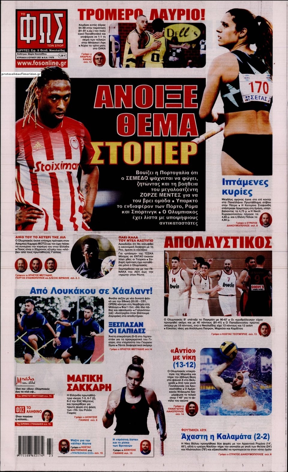 Οι αθλητικές εφημερίδες 6/6/2021 Σήφης Γαρυφαλάκης 07:28, Κυριακή 06 Ιουνίου 2021 Media Διαβάστε τα πρωτοσέλιδα των αθλητικών εφημερίδων…. ΑΘΛΗΤΙΚΕΣ ΕΦΗΜΕΡΙΔΕΣ ΕΦΗΜΕΡΙΔΕΣ ΠΡΩΤΟΣΕΛΙΔΑ ΠΡΩΤΟΣΕΛΙΔΑ ΕΦΗΜΕΡΙΔΩΝ Μοιράσου το: σχολίασε κι εσύ (0 σχόλια) Ακολουθήστε το enikos.gr στο Google News και μάθετε πρώτοι όλες τις ειδήσεις Δείτε όλες τις τελευταίες ειδήσεις από την Ελλάδα και τον Κόσμο στο enikos.gr Ειδήσεις Ροή Ειδήσεων 2 ώρες πριν Πούτιν: «Ανοησίες» και «υστερίες» οι ισχυρισμοί της Ευρώπης για πιθανή σύγκρουση με τη Ρωσία – «Κάνουν πλύση εγκεφάλου» 6 ώρες πριν Έρευνα MRB: Η πρόθεση ψήφου και τα σημαντικότερα προβλήματα – Οι «λέξεις» που εκφράζουν τους πολίτες 3 ώρες πριν Αμοργός: «Θα προσπαθήσω να το κάνω κάθε μέρα» – Ποιος είναι ο αγρότης που έστησε μόνος του το πρώτο μπλόκο στο νησί 53 λεπτά πριν Τραγωδία στην Αλεξανδρούπολη: Παιδάκι 3 ετών μεταφέρθηκε νεκρό από τη μητέρα του στο νοσοκομείο 2 ώρες πριν Συνάντηση Μητσοτάκη με την Κ.Ο. της ΝΔ: Οι αφίξεις των βουλευτών, τα γλυκά και τα «πηγαδάκια» 6 ώρες πριν Τα 4 ζώδια που ξαναβρίσκουν τον εαυτό τους – «Μπαίνετε επιτέλους στην ουσία των πραγμάτων» 7 ώρες πριν 20 χρόνια τα Χριστούγεννα ξεκινούν στα Public με μεγάλη ποικιλία σε δώρα! 5 ώρες πριν «Δεν είχα κλάψει από τότε που διαγνώστηκα με καρκίνο, ώσπου ένα τηλεφώνημα με έκανε να λυγίσω» – Η συγκλονιστική εξομολόγηση ενός άνδρα 4 ώρες πριν Τα 7 σπάνια χαρακτηριστικά που κάνουν κάποιους ανθρώπους ακαταμάχητους 7 λεπτά πριν Νέο επεισόδιο στην Εξεταστική ανάμεσα σε Κωνσταντοπούλου και Συρεγγέλα – Διακόπηκε προσωρινά η συνεδρίαση 14 λεπτά πριν Εξαφάνιση 33χρονου γιατρού στην Κρήτη: Για απάτη κατηγορείται ο ιδιωτικός ερευνητής που συνελήφθη 19 λεπτά πριν Εξεταστική για ΟΠΕΚΕΠΕ-Μυλωνάκης: Διαχρονικές, διακομματικές οι παθογένειες – Τι είπε για Μπουκώρο και Βάρρα 25 λεπτά πριν Παναθηναϊκός: Θέλει τον Κέπα της Άρσεναλ δανεικό για 6 μήνες 31 λεπτά πριν Το Λαϊκό Λαχείο στον ρυθμό των Χριστουγέννων: Μοιράζει μέχρι και 1.000.000 ευρώ στην ειδική κλήρωση της Παρασκευής 19 Δεκεμβρίου ENIKOS NETWORK 5 πράγματα που αποφεύγει γαστρεντερολόγος για να μειώσει τον κίνδυνο καρκίνου του εντέρου Ανησυχητική αύξηση της υπέρτασης στα παιδιά – Πώς θα τα προστατέψουμε; Συντάξεις Ιανουαρίου 2026: Σε ποιους θα πιστωθούν την Πέμπτη τα χρήματα και τι αυξήσεις θα δοθούν – Δείτε αναλυτικά παραδεί... ΕΛΕΤΑΕΝ: Πόσα χρήματα θα δοθούν σε δήμους και νοικοκυριά από τις ΑΠΕ Σύγχρονος Νοστράδαμος: Προειδοποιεί για «μεγάλο γεγονός» τους επόμενους μήνες που θα συγκλονίσει τη Βρετανία και τον κόσμο Τεστ παρατηρητικότητας: Μπορείτε να βρείτε τις 3 διαφορές στις εικόνες με έναν πιγκουίνο σε 14 δευτερόλεπτα περισσότερα 12:35 , Τετάρτη 17 Δεκεμβρίου 2025 Μίρκα Παπακωνσταντίνου: «Δεν ήμουν αισιόδοξη για τα νούμερα – Είμαι ρεαλίστρια» Στα γυρίσματα του εορταστικού επεισοδίου της αγαπημένης σειράς “Το Σόι Σου”, βρέθηκε η κάμερα ... 12:12 , Τετάρτη 17 Δεκεμβρίου 2025 Ακούστε την εκπομπή του Νίκου Χατζηνικολάου 17/12/2025 Ακούστε την εκπομπή του Νίκου Χατζηνικολάου στον ραδιοφωνικό σταθμό RealFm 97,8, την Τετάρτη 1... 11:35 , Τετάρτη 17 Δεκεμβρίου 2025 Home Alone: Το σπίτι της ταινίας θα ανακαινιστεί – Επιστροφή στην αισθητική της δεκαετίας του ’90 Οι νέοι ιδιοκτήτες του πραγματικού σπιτιού που παρουσιάζεται στην κλασική ταινία του 1990 «Hom... 11:25 , Τετάρτη 17 Δεκεμβρίου 2025 Grand Hotel: Απόψε το τελευταίο επεισόδιο της χρονιάς – Όλα τα μυστικά μένουν εδώ Το τελευταίο επε