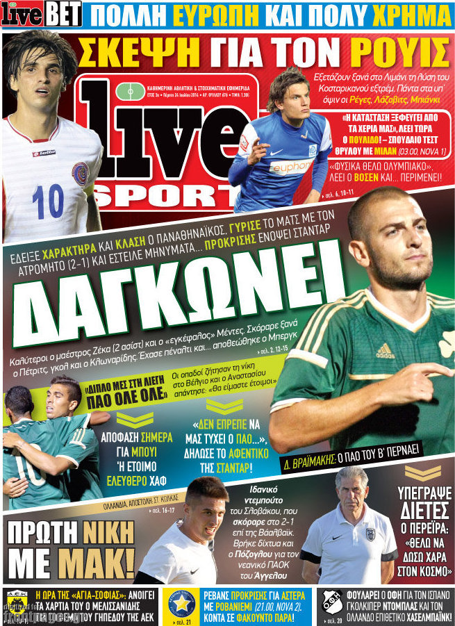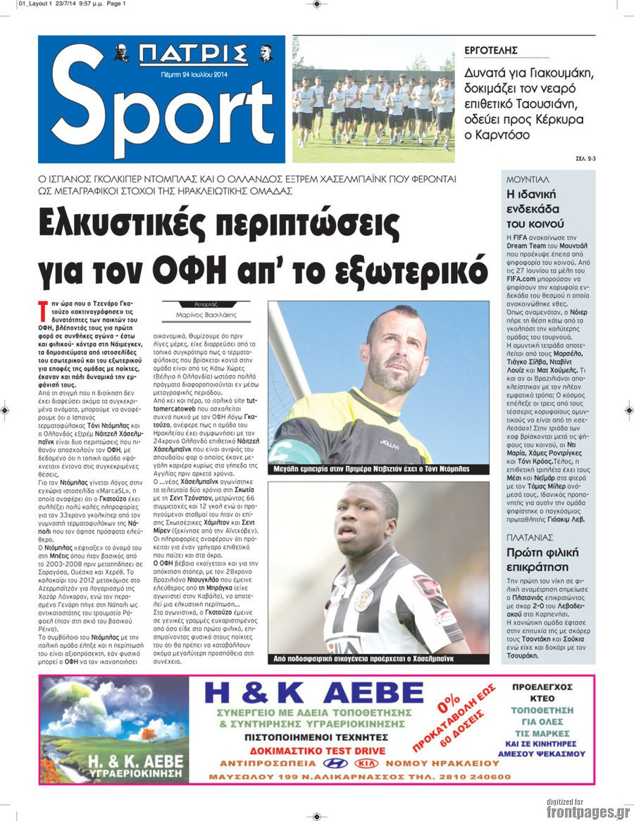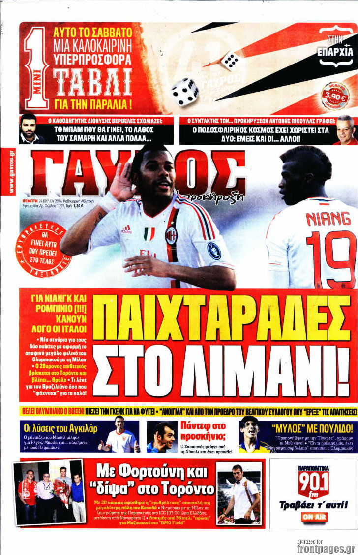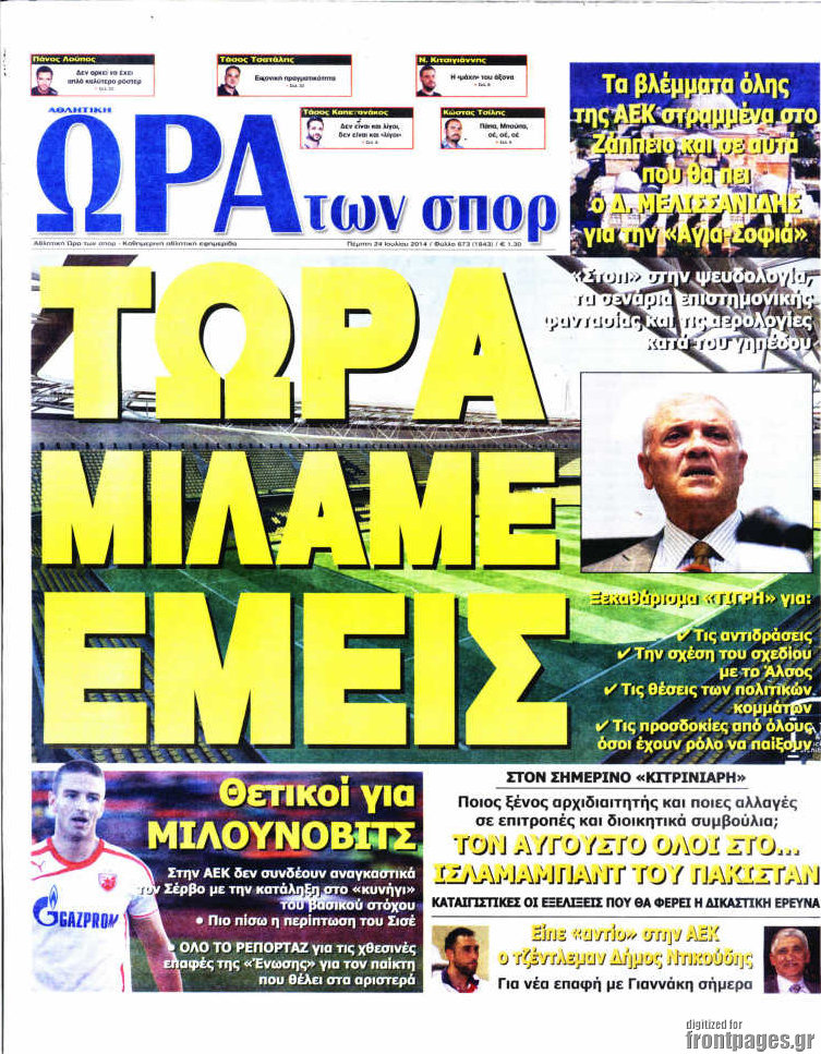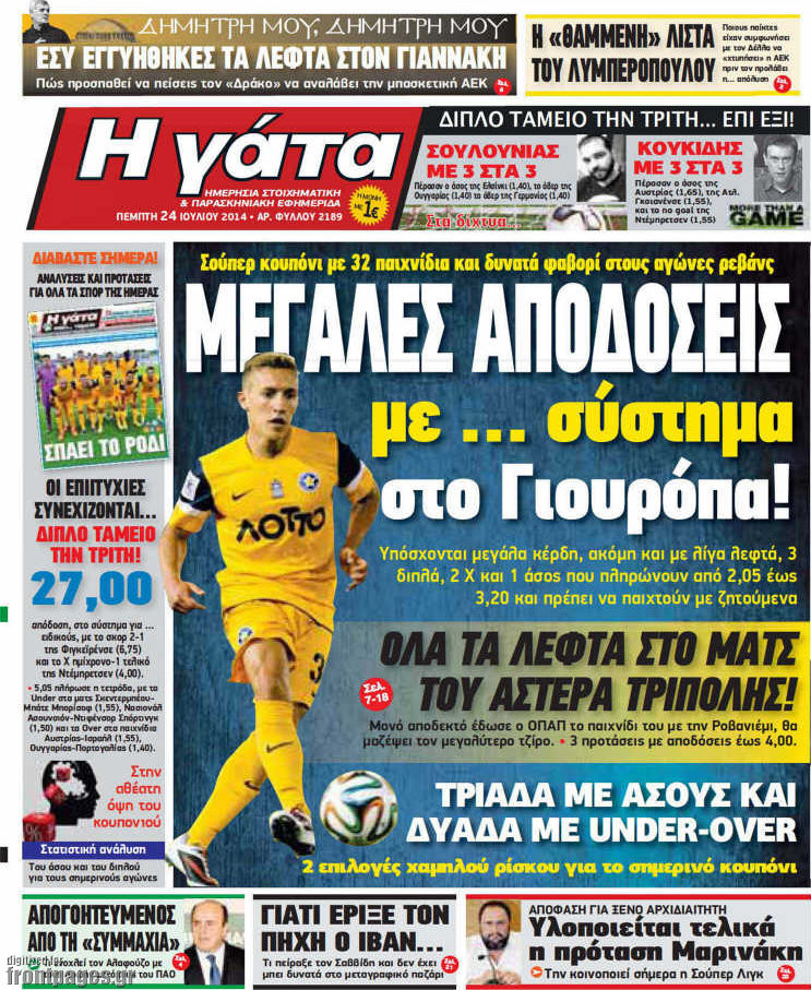 Οι αθλητικές εφημερίδες Enikos Newsroom 08:07, Πέμπτη 24 Ιουλίου 2014 Media Οι αθλητικές εφημερίδες ΑΘΛΗΤΙΚΕΣ ΕΦΗΜΕΡΙΔΕΣ ΕΦΗΜΕΡΙΔΕΣ Μοιράσου το: σχολίασε κι εσύ (0 σχόλια) Ακολουθήστε το enikos.gr στο Google News και μάθετε πρώτοι όλες τις ειδήσεις Δείτε όλες τις τελευταίες ειδήσεις από την Ελλάδα και τον Κόσμο στο enikos.gr Ειδήσεις Ροή Ειδήσεων 4 ώρες πριν Αυξάνουν την πίεση προς την κυβέρνηση οι αγρότες: Κλείνουν παρακαμπτήριους και ανοίγουν διόδια – Τι θα γίνει τις γιορτές 3 ώρες πριν ΟΠΕΚΕΠΕ: Προφυλακιστέος ο φερόμενος αρχηγός και ο λογιστής της εγκληματικής οργάνωσης 4 ώρες πριν Φοινικούντα: Το Σάββατο απολογείται ο 30χρονος γιος γνωστού επιχειρηματία της Πλάκας που παραδόθηκε – Όσα είπε στους αστυνομικούς και ο ρόλος του στο έγκλημα 4 ώρες πριν Μπορεί ο Μαδούρο να αντέξει τον αποκλεισμό του Τραμπ; Τι θα χρειαστεί η Ουάσινγκτον για να τον ανατρέψει 3 ώρες πριν ΑΕΚ – Κραϊόβα 3-2: Επική ανατροπή και πρόκριση στους «16» του Conference League η Ένωση 4 ώρες πριν Αρχαιολόγοι ανακάλυψαν ρωμαϊκά τεχνουργήματα από μια πόλη που δεν υπήρξε ποτέ – Τα τρία εντυπωσιακά κτίρια και ο αμφορέας με τις… σαρδέλες 5 ώρες πριν Ύπνος: Η απλή βραδινή ρουτίνα για να προστατεύσετε τα μαλλιά σας από το κρύο κατά τη διάρκεια του χειμώνα 6 ώρες πριν Manifesting: Πώς να συναντήσετε τον σύντροφο της ζωής σας, ανάλογα με τον μήνα γέννησής σας 2 ημέρες πριν 20 χρόνια τα Χριστούγεννα ξεκινούν στα Public με μεγάλη ποικιλία σε δώρα! 8 λεπτά πριν GNTM: «Κλείδωσαν» οι τέσσερις φιναλίστ – Μεγάλη ανατροπή στις τελευταίες αποχωρήσεις 22 λεπτά πριν Γιώργος Μαζωνάκης: Αποθεώθηκε στην πρεμιέρα του στην «Ακτή Πειραιώς» λίγες ώρες μετά τις καταγγελίες – «Είμαι αληθινός», είπε με νόημα 37 λεπτά πριν Πόλεμος στην Ουκρανία: Ρωσικά drones έπληξαν την Οδησσό – Μία νεκρή και ζημιές σε ενεργειακές υποδομές 45 λεπτά πριν ΑΕΚ-Κραϊόβα: Τα highlights της μυθικής ανατροπής της «Ένωσης» 1 ώρα πριν Μιχάλης Χρυσοχοΐδης από την Κωνσταντινούπολη: Κοινές επιχειρήσεις Ελλάδας – Τουρκίας ενάντια στο οργανωμένο έγκλημα ENIKOS NETWORK Σε περίοδο αυξημένης δραστηριότητας η γρίπη στην Ελλάδα-Μέτρα προστασίας από τον ΕΟΔΥ Σκέφτεστε συνέχεια συζητήσεις που έχετε κάνει; Τι σημαίνει αυτό, σύμφωνα με ειδικό Στεγαστικό: Τι λέει η ΠΟΜΙΔΑ για τα νέα μέτρα που ανακοίνωσε ο Κυριάκος Μητσοτάκης Λαγκάρντ: Αισιόδοξη για την ανάπτυξη της Ευρωζώνης, αβέβαιη για τον πληθωρισμό Χαρτογραφώντας το «σημείο χωρίς επιστροφή»: Για πρώτη φορά αποκαλύπτεται με λεπτομέρεια το ακανθώδες όριο της ατμόσφαιρας τ... Η Google καταργεί τη λειτουργία «dark web report» – Πώς θα μπορούν οι χρήστες να διαγράφουν τα δεδομένα τους περισσότερα 02:50 , Παρασκευή 19 Δεκεμβρίου 2025 GNTM: «Κλείδωσαν» οι τέσσερις φιναλίστ – Μεγάλη ανατροπή στις τελευταίες αποχωρήσεις Για προτελευταία φορά εμφανίστηκαν στο πλατό του GNTM οι φιναλίστ του φετινού κύκλου, το βράδυ... 17:45 , Πέμπτη 18 Δεκεμβρίου 2025 ROUK ZOUK: Εορταστικό επεισόδιο με καλεσμένους τους πρωταγωνιστές του «Γιατί ρε πατέρα» Το Σάββατο 20 Δεκεμβρίου στις 21:00, η Ζέτα Μακρυπούλια υποδέχεται εκλεκτούς ηθοποιούς που όλο... 17:20 , Πέμπτη 18 Δεκεμβρίου 2025 Άγιος έρωτας: Η Χριστίνα εξομολογείται στον πατέρα Νικόλαο, απόψε στις 21:00 στον Alpha Η Νότα αποφασίζει να εκδικηθεί τον Πέτρο και τον Στέφανο, για χάρη του Λούη, όμως τα πράγματα ... 16:50 , Πέμπτη 18 Δεκεμβρίου 2025 Να μ’ αγαπάς: Ζωή και Φωτεινή συμφιλιώνονται ως μάνα με κόρη, απόψε στις 20:00 Η ταυτότητα του Άγγελου αποκαλύπτεται στο νέο επεισ