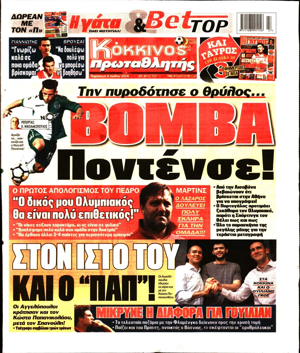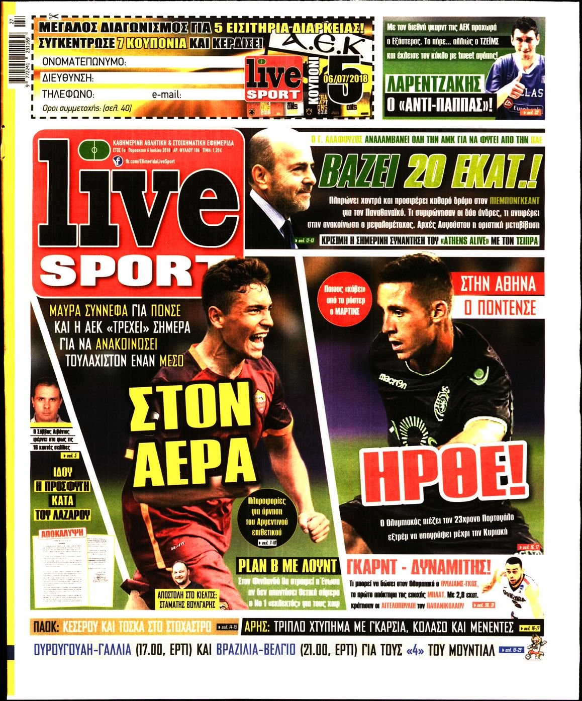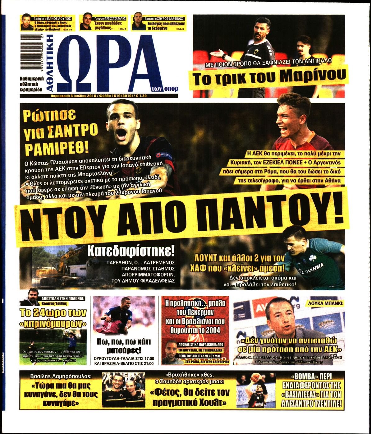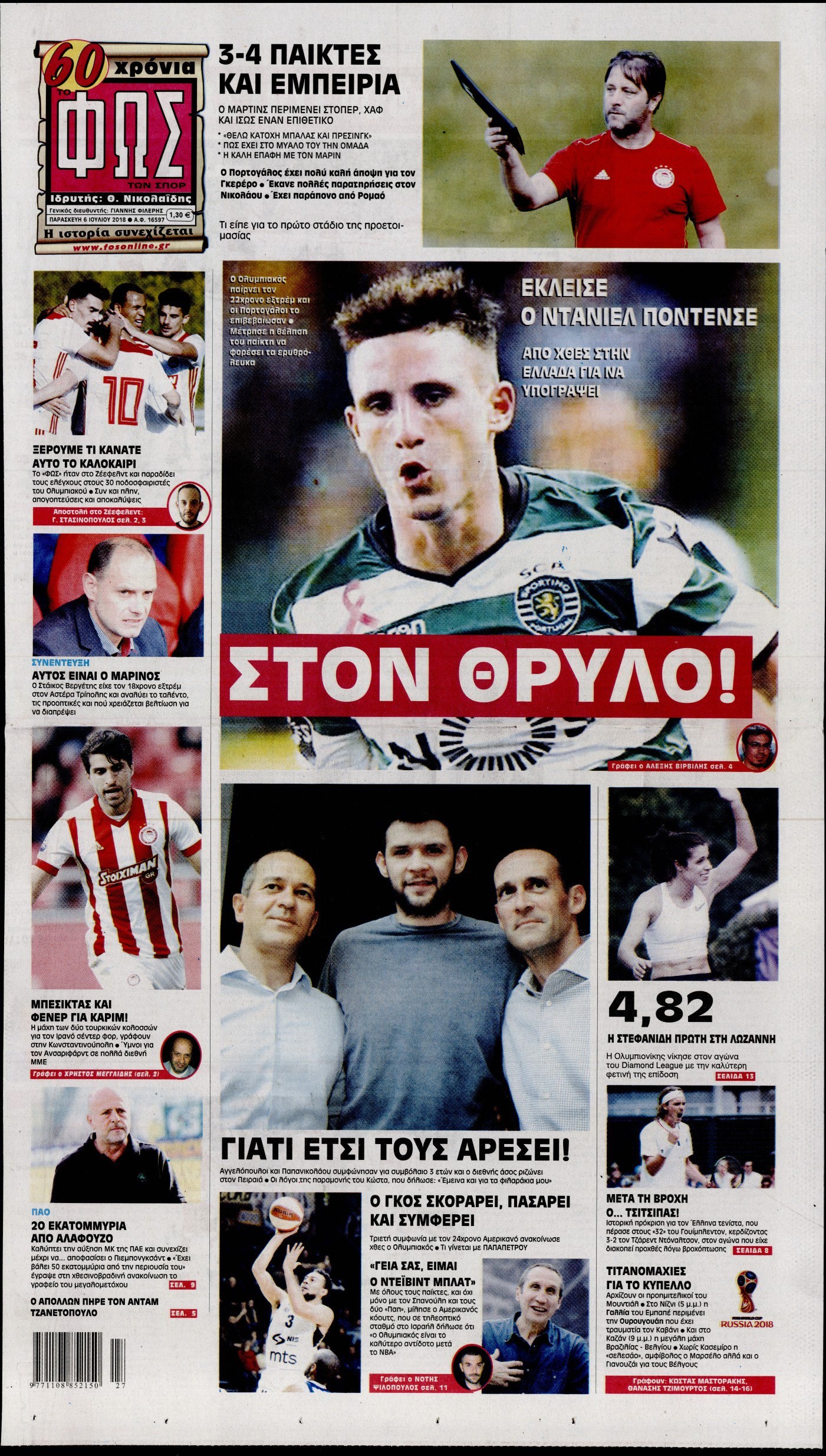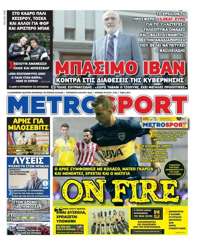 Οι αθλητικές εφημερίδες 6/7/18 Enikos Newsroom 06:24, Παρασκευή 06 Ιουλίου 2018 Media Διαβάστε τα σημερινά πρωτοσέλιδα των αθλητικών εφημερίδων. ΑΘΛΗΤΙΚΕΣ ΕΦΗΜΕΡΙΔΕΣ ΠΡΩΤΟΣΕΛΙΔΑ Μοιράσου το: σχολίασε κι εσύ (0 σχόλια) Ακολουθήστε το enikos.gr στο Google News και μάθετε πρώτοι όλες τις ειδήσεις Δείτε όλες τις τελευταίες ειδήσεις από την Ελλάδα και τον Κόσμο στο enikos.gr Ειδήσεις Ροή Ειδήσεων 37 λεπτά πριν Χριστούγεννα στα μπλόκα: Επιμένουν στις κινητοποιήσεις τους οι αγρότες – Ανοίγουν τα διόδια το Σαββατοκύριακο 60 λεπτά πριν Ουκρανία: Η άνευ προηγουμένου επίθεση σε ρωσικό τάνκερ στη Μεσόγειο και το μήνυμα προς στον Πούτιν – Το «μακρύ χέρι» του Κιέβου 15 λεπτά πριν Πούτιν: Τα μηνύματα σε Ευρώπη και ΝΑΤΟ από το μαραθώνιο «σόου» του – Η απαίτηση για «σεβασμό» και η ειρήνη «με τους όρους» της Μόσχας 1 ώρα πριν Τραμπ: Δεν αποκλείει την πιθανότητα ενός πολέμου στη Βενεζουέλα – «Ο Μαδούρο ξέρει καλύτερα από τον καθένα τι ακριβώς θέλω» 2 ώρες πριν Συνεχίζει να προκαλεί ο Μίτσκοσκι: «Για μένα το όνομα Μακεδονία είναι ιερό» 3 ώρες πριν Πούτιν: «Ναι, είμαι ερωτευμένος» – Βίντεο από τη σπάνια προσωπική παραδοχή του 2 ώρες πριν Αριθμολογία: Οι άνθρωποι που έχουν γεννηθεί αυτές τις 4 ημερομηνίες, συχνά παρεξηγούνται – «Η καλοσύνη τους κρύβει τεράστια δύναμη» 1 ώρα πριν Ύπνος: Μια κρυφή κατάσταση του εγκεφάλου πριν από τον ύπνο μπορεί να είναι το “κλειδί” για υψηλή ευφυΐα και δημιουργικότητα 3 ώρες πριν Ξεχάστε το καθάρισμα το Σαββατοκύριακο: Ο «κανόνας των 20 λεπτών» που θα σας λύσει τα χέρια 16 λεπτά πριν Ανακαλύφθηκαν αρχαία χρυσά νομίσματα 2.200 ετών που απεικονίζουν τον θεό Απόλλωνα – Η άγνωστη σύνδεση με τον Φίλιππο Β΄ της Μακεδονίας 5 λεπτά πριν Νέος Κόσμος: Συνελήφθη 41χρονος με ένταλμα από την Τουρκία για εμπόριο ναρκωτικών και ληστεία 15 λεπτά πριν Πούτιν: Τα μηνύματα σε Ευρώπη και ΝΑΤΟ από το μαραθώνιο «σόου» του – Η απαίτηση για «σεβασμό» και η ειρήνη «με τους όρους» της Μόσχας 16 λεπτά πριν Ανακαλύφθηκαν αρχαία χρυσά νομίσματα 2.200 ετών που απεικονίζουν τον θεό Απόλλωνα – Η άγνωστη σύνδεση με τον Φίλιππο Β΄ της Μακεδονίας 20 λεπτά πριν Νίκος Ξυλούρης: Συγκινεί η χήρα του σπουδαίου καλλιτέχνη – «Ευχαριστώ όλο τον κόσμο που τον κρατάει ζωντανό 45 χρόνια» 27 λεπτά πριν Παναθηναϊκός: «Μέσα» οι Σφιντέρσκι και Τουμπά για το ματς με τον ΠΑΟΚ – Τι έδειξε η μαγνητική του Πάντοβιτς ENIKOS NETWORK Το ΕΚΑΒ τιμήθηκε από την Ακαδημία Αθηνών για τα 40 χρόνια προσφοράς του Έχετε πραγματικά μεγάλη καρδιά; 10 χαρακτηριστικά όσων έχουν καλοσύνη Πλήρης επάρκεια προϊόντων στις λαϊκές της Αττικής, παρά τις αγροτικές κινητοποιήσεις – Τι απαντούν οι πωλητές ΑΑΔΕ: Νέες αναβαθμίσεις στο Ψηφιακό Πελατολόγιο και την εφαρμογή myDATAapp – Τι πρέπει να γνωρίζετε Χαρτογραφώντας το «σημείο χωρίς επιστροφή»: Για πρώτη φορά αποκαλύπτεται με λεπτομέρεια το ακανθώδες όριο της ατμόσφαιρας τ... Η Google καταργεί τη λειτουργία «dark web report» – Πώς θα μπορούν οι χρήστες να διαγράφουν τα δεδομένα τους περισσότερα 22:42 , Παρασκευή 19 Δεκεμβρίου 2025 Γιώργος Γιαννόπουλος για “Το σόι σου”: “Είναι ευτυχία και ευλογία αυτή η σειρά” «Είναι ευτυχία και ευλογία η συγκυρία αυτής της σειράς», θα πει ο Γιώργος Γιαννόπουλος -ο αγαπ... 20:37 , Παρασκευή 19 Δεκεμβρίου 2025 Don’t Forget The Lyrics: Η Έλλη Κοκκίνου υποδέχεται 4 παίκτες που θα κάνουν τα πάντα για να μη χάσουν ούτε… μισή λέξη από τους στίχους Το «Don’t Forget The Lyrics» επιστρέφει απόψε, Παρασκευή 19 Δεκεμβρίου, σ