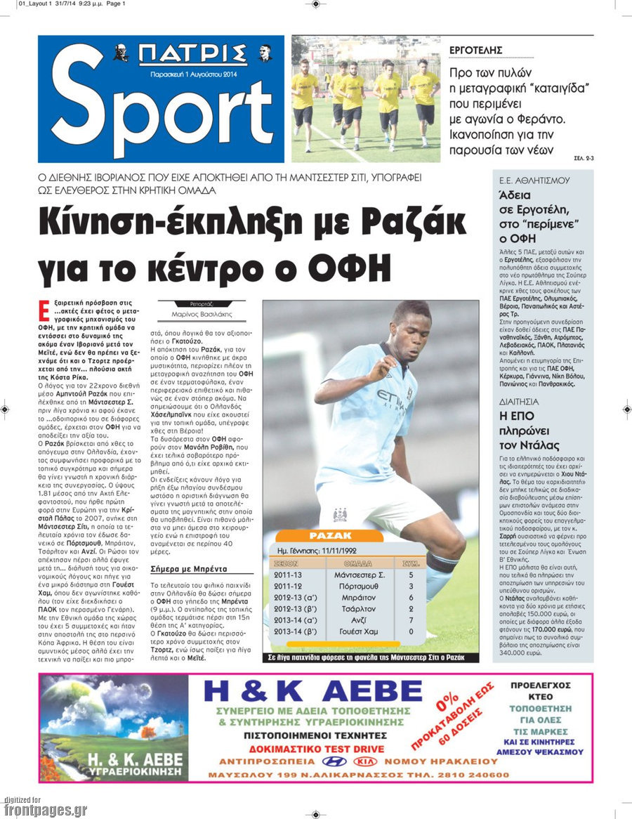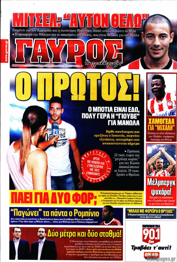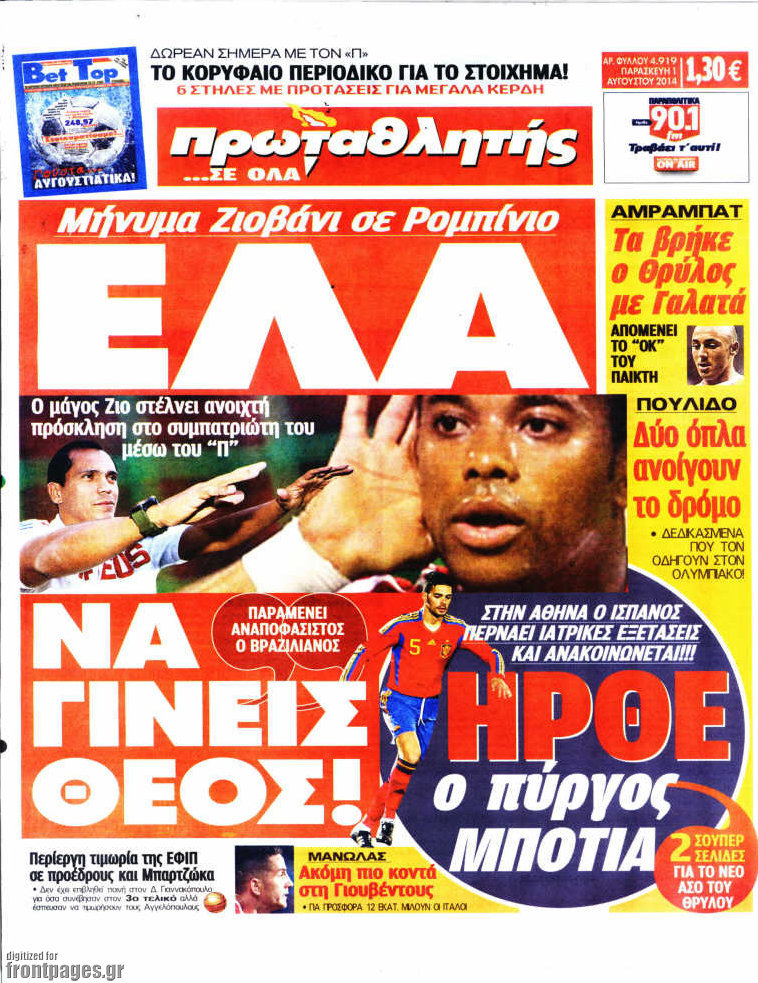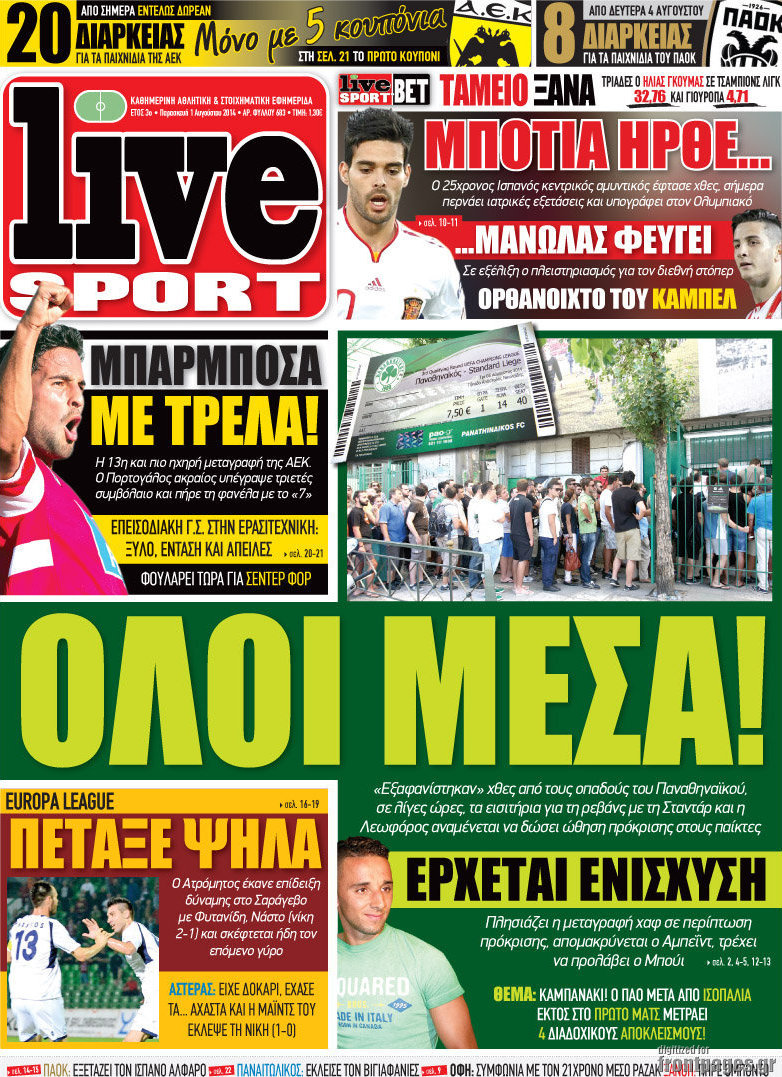 Οι αθλητικές εφημερίδες Enikos Newsroom 07:49, Παρασκευή 01 Αυγούστου 2014 Media Οι αθλητικές εφημερίδες Διαβάστε τα πρωτοσέλιδα των αθλητικών εφημερίδων. ΑΘΛΗΤΙΚΕΣ ΕΦΗΜΕΡΙΔΕΣ ΠΡΩΤΟΣΕΛΙΔΑ Μοιράσου το: σχολίασε κι εσύ (0 σχόλια) Ακολουθήστε το enikos.gr στο Google News και μάθετε πρώτοι όλες τις ειδήσεις Δείτε όλες τις τελευταίες ειδήσεις από την Ελλάδα και τον Κόσμο στο enikos.gr Ειδήσεις Ροή Ειδήσεων 8 ώρες πριν Μητσοτάκης: Αναγκαία η μεταρρύθμιση του πρωτογενούς τομέα – Τα 6 νέα μέτρα για το στεγαστικό και οι αναφορές σε «Ιθάκη» και «πολιτικούς του καναπέ» 7 ώρες πριν Δάνεια σε ελβετικό φράγκο: Τα βασικά σημεία της ρύθμισης – ανάσας για 40.000 δανειολήπτες – Αναλυτικός οδηγός με ερωτήσεις και απαντήσεις 7 ώρες πριν Κυψέλη: Εξιτήριο πήρε η 14χρονη μαθήτρια που μαχαιρώθηκε από την 16χρονη σε σχολείο – «Θέλω να βοηθήσω το παιδί, έχει μπλέξει με κακές παρέες» 7 ώρες πριν Τραμπ: Γιατί κατέθεσε τώρα την αγωγή κατά του BBC – Πώς η κίνησή του εξυπηρετεί το νέο δόγμα του για «αντίσταση» στην Ευρώπη, υπέρ των συντηρητικών 8 ώρες πριν ΟΠΕΚΕΠΕ – Παράνομες επιδοτήσεις: Ελεύθεροι με περιοριστικούς όρους και οι 7 κατηγορούμενοι που απολογήθηκαν σήμερα 7 ώρες πριν Ανακαλύφθηκε βυθισμένη πέτρινη κατασκευή ανοιχτά της Κριμαίας – Αποτελεί μέρος αρχαίας ελληνικής αποικίας 8 ώρες πριν Ύπνος: Αυτό μπορεί να είναι το χειρότερο λάθος για το βιολογικό ρολόι σας, σύμφωνα με ειδικό 9 ώρες πριν Αριθμολογία: Οι άνθρωποι που έχουν γεννηθεί αυτές τις 3 ημερομηνίες, προσελκύουν μεγάλη τύχη πριν από το τέλος του 2025 11 ώρες πριν Οι 7 συμπεριφορές που μαρτυρούν ότι ένας άνδρας επενδύει μακροπρόθεσμα σε μια σχέση 55 δευτερόλεπτα πριν Οι πολιτικές εφημερίδες 17/12/2025 9 λεπτά πριν Τα ζώδια σήμερα, Τετάρτη 17 Δεκεμβρίου: Κριοί, η αυτοπεποίθησή σας ενισχύεται 17 λεπτά πριν Εφημερεύοντα φαρμακεία σε Αθήνα και Θεσσαλονίκη (17/12) 23 λεπτά πριν Κόστα Ρίκα: Το Κογκρέσο απέρριψε το αίτημα για άρση της ασυλίας του προέδρου Τσάβες 31 λεπτά πριν Κολομβία: Νεκροί τέσσερις αστυνομικοί σε βομβιστικές επιθέσεις ανταρτών ENIKOS NETWORK Αίτημα ΙΣΑ για την εξαίρεση των προσωπικών γιατρών από τις κατ’ οίκον επισκέψεις Η σκανδιναβική μέθοδος στον ύπνο που μπορεί να σώσει έναν γάμο Πιερρακάκης: Ο προϋπολογισμός συμβάλλει ουσιαστικά στην ενίσχυση της αγοραστικής δύναμης της πλειονότητας των εργαζομένων e-ΕΦΚΑ: Παρατείνεται η προθεσμία για την υποβολή ΑΠΔ – Ποιους αφορά Σύγχρονος Νοστράδαμος: Προειδοποιεί για «μεγάλο γεγονός» τους επόμενους μήνες που θα συγκλονίσει τη Βρετανία και τον κόσμο Τεστ παρατηρητικότητας: Μπορείτε να βρείτε τις 3 διαφορές στις εικόνες με έναν πιγκουίνο σε 14 δευτερόλεπτα περισσότερα 05:38 , Τετάρτη 17 Δεκεμβρίου 2025 Οι πολιτικές εφημερίδες 17/12/2025 Διαβάστε τα πρωτοσέλιδα από τις πολιτικές εφημερίδες, σήμερα 17/12/2025. 20:06 , Τρίτη 16 Δεκεμβρίου 2025 Ο ΣΚΑΙ καταγγέλλει τον ΕΚΚΟΜΕΔ Επιστολή με την οποία καταγράφει την έντονη διαμαρτυρία του προς τον διευθύνοντα σύμβουλο του... 17:40 , Τρίτη 16 Δεκεμβρίου 2025 Eurovision: Στις 4 Ιανουαρίου αποκαλύπτονται τα 28 τραγούδια του ελληνικού τελικού Η αγωνία τελειώνει, η γιορτή της Eurovision αρχίζει στην ΕΡΤ από τις πρώτες ημέρες της νέας χρ... 17:09 , Τρίτη 16 Δεκεμβρίου 2025 Alter Ego Media: Βαθύτατη θλίψη και ειλικρινή συλλυπητήρια για την απώλεια της Ειρήνης Μαρινάκη Τη βαθύτατη θλίψη και τα ειλικρινή συλλυπητήριά της εκφράζει η Alter Ego Media για τον θάνατο ... ΤΕΛΕΥΤΑΙΕΣ ΕΙΔΗΣΕΙΣ 9 λεπτά πριν Τα ζώδια σήμερα, Τετάρτη