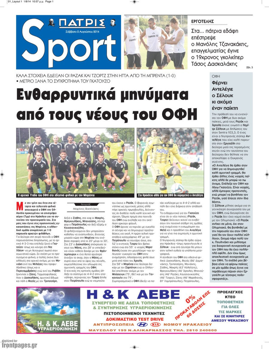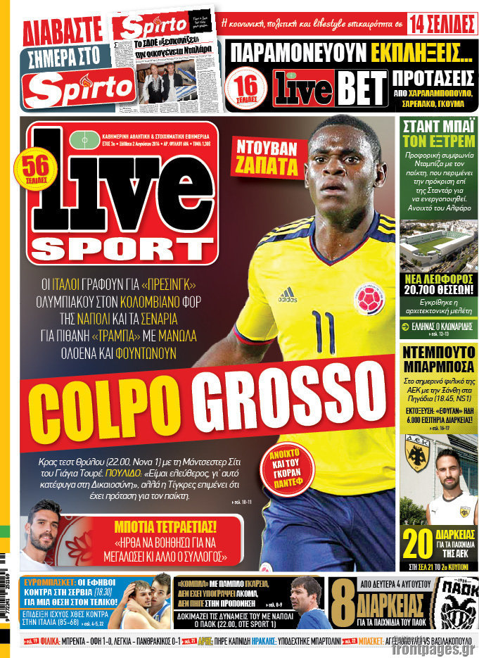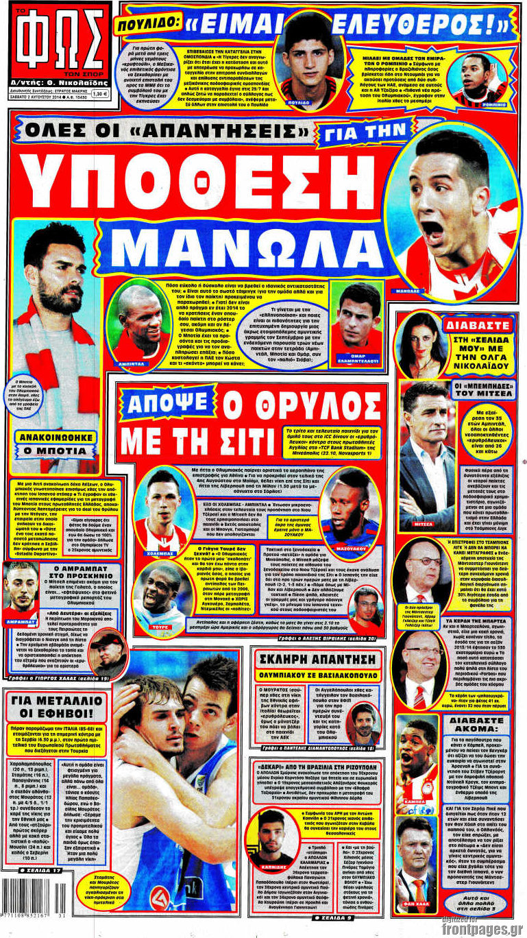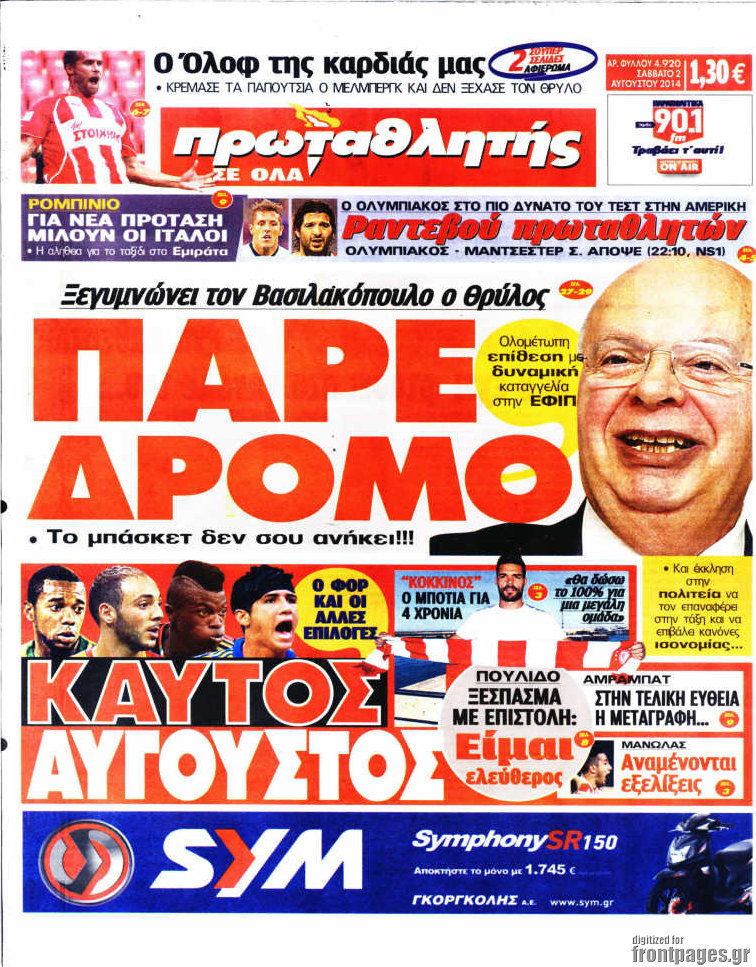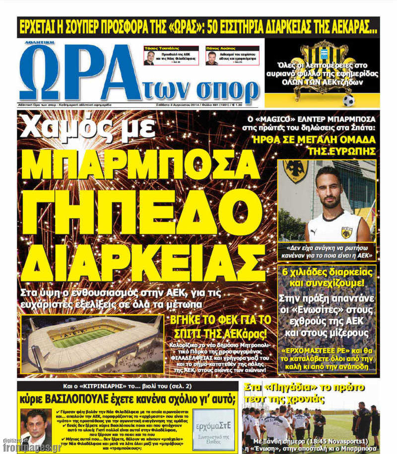 Οι αθλητικές εφημερίδες Enikos Newsroom 08:03, Σάββατο 02 Αυγούστου 2014 Media Οι αθλητικές εφημερίδες Διαβάστε τα πρωτοσέλιδα των αθλητικών εφημερίδων. ΑΘΛΗΤΙΚΕΣ ΕΦΗΜΕΡΙΔΕΣ ΠΡΩΤΟΣΕΛΙΔΑ Μοιράσου το: σχολίασε κι εσύ (0 σχόλια) Ακολουθήστε το enikos.gr στο Google News και μάθετε πρώτοι όλες τις ειδήσεις Δείτε όλες τις τελευταίες ειδήσεις από την Ελλάδα και τον Κόσμο στο enikos.gr Ειδήσεις Ροή Ειδήσεων 59 λεπτά πριν Ευρωπαϊκή Ένωση: Χωρίς συμφωνία, για την μακροπρόθεσμη χρηματοδότηση της Ουκρανίας, ολοκληρώθηκε η Σύνοδος Κορυφής στις Βρυξέλλες 4 ώρες πριν ΟΠΕΚΕΠΕ: Προφυλακιστέος ο φερόμενος αρχηγός και ο λογιστής της εγκληματικής οργάνωσης 5 ώρες πριν Αυξάνουν την πίεση προς την κυβέρνηση οι αγρότες: Κλείνουν παρακαμπτήριους και ανοίγουν διόδια – Τι θα γίνει τις γιορτές 5 ώρες πριν Φοινικούντα: Το Σάββατο απολογείται ο 30χρονος γιος γνωστού επιχειρηματία της Πλάκας που παραδόθηκε – Όσα είπε στους αστυνομικούς και ο ρόλος του στο έγκλημα 4 ώρες πριν ΑΕΚ – Κραϊόβα 3-2: Επική ανατροπή και πρόκριση στους «16» του Conference League η Ένωση 5 ώρες πριν Αρχαιολόγοι ανακάλυψαν ρωμαϊκά τεχνουργήματα από μια πόλη που δεν υπήρξε ποτέ – Τα τρία εντυπωσιακά κτίρια και ο αμφορέας με τις… σαρδέλες 6 ώρες πριν Ύπνος: Η απλή βραδινή ρουτίνα για να προστατεύσετε τα μαλλιά σας από το κρύο κατά τη διάρκεια του χειμώνα 7 ώρες πριν Manifesting: Πώς να συναντήσετε τον σύντροφο της ζωής σας, ανάλογα με τον μήνα γέννησής σας 2 ημέρες πριν 20 χρόνια τα Χριστούγεννα ξεκινούν στα Public με μεγάλη ποικιλία σε δώρα! 12 λεπτά πριν Αιματηρή βομβιστική επίθεση στην Υεμένη: Τουλάχιστον τρεις νεκροί και 13 τραυματίες 15 λεπτά πριν Στη Φλόριντα σήμερα οι διαβουλεύσεις σχετικά με τα επόμενα στάδια για τη Λωρίδα της Γάζας 19 λεπτά πριν Σίσσυ Τουμάση: «Είμαι ασθενοφοβική πάρα πολύ και με πιάνει μια παράνοια μ’ αυτό» 44 λεπτά πριν Ντόναλντ Τραμπ: Δεν χρειάζομαι την έγκριση του Κογκρέσου για να διατάξω στρατιωτικά πλήγματα στη Βενεζουέλα 59 λεπτά πριν Ευρωπαϊκή Ένωση: Χωρίς συμφωνία, για την μακροπρόθεσμη χρηματοδότηση της Ουκρανίας, ολοκληρώθηκε η Σύνοδος Κορυφής στις Βρυξέλλες ENIKOS NETWORK Σε περίοδο αυξημένης δραστηριότητας η γρίπη στην Ελλάδα-Μέτρα προστασίας από τον ΕΟΔΥ Σκέφτεστε συνέχεια συζητήσεις που έχετε κάνει; Τι σημαίνει αυτό, σύμφωνα με ειδικό Στεγαστικό: Τι λέει η ΠΟΜΙΔΑ για τα νέα μέτρα που ανακοίνωσε ο Κυριάκος Μητσοτάκης Λαγκάρντ: Αισιόδοξη για την ανάπτυξη της Ευρωζώνης, αβέβαιη για τον πληθωρισμό Χαρτογραφώντας το «σημείο χωρίς επιστροφή»: Για πρώτη φορά αποκαλύπτεται με λεπτομέρεια το ακανθώδες όριο της ατμόσφαιρας τ... Η Google καταργεί τη λειτουργία «dark web report» – Πώς θα μπορούν οι χρήστες να διαγράφουν τα δεδομένα τους περισσότερα 02:50 , Παρασκευή 19 Δεκεμβρίου 2025 GNTM: «Κλείδωσαν» οι τέσσερις φιναλίστ – Μεγάλη ανατροπή στις τελευταίες αποχωρήσεις Για προτελευταία φορά εμφανίστηκαν στο πλατό του GNTM οι φιναλίστ του φετινού κύκλου, το βράδυ... 17:45 , Πέμπτη 18 Δεκεμβρίου 2025 ROUK ZOUK: Εορταστικό επεισόδιο με καλεσμένους τους πρωταγωνιστές του «Γιατί ρε πατέρα» Το Σάββατο 20 Δεκεμβρίου στις 21:00, η Ζέτα Μακρυπούλια υποδέχεται εκλεκτούς ηθοποιούς που όλο... 17:20 , Πέμπτη 18 Δεκεμβρίου 2025 Άγιος έρωτας: Η Χριστίνα εξομολογείται στον πατέρα Νικόλαο, απόψε στις 21:00 στον Alpha Η Νότα αποφασίζει να εκδικηθεί τον Πέτρο και τον Στέφανο, για χάρη του Λούη, όμως τα πράγματα ... 16:50 , Πέμπτη 18 Δεκεμβρίου 2025 Να μ’ αγαπάς: Ζωή και Φωτεινή συμφιλιώνο
