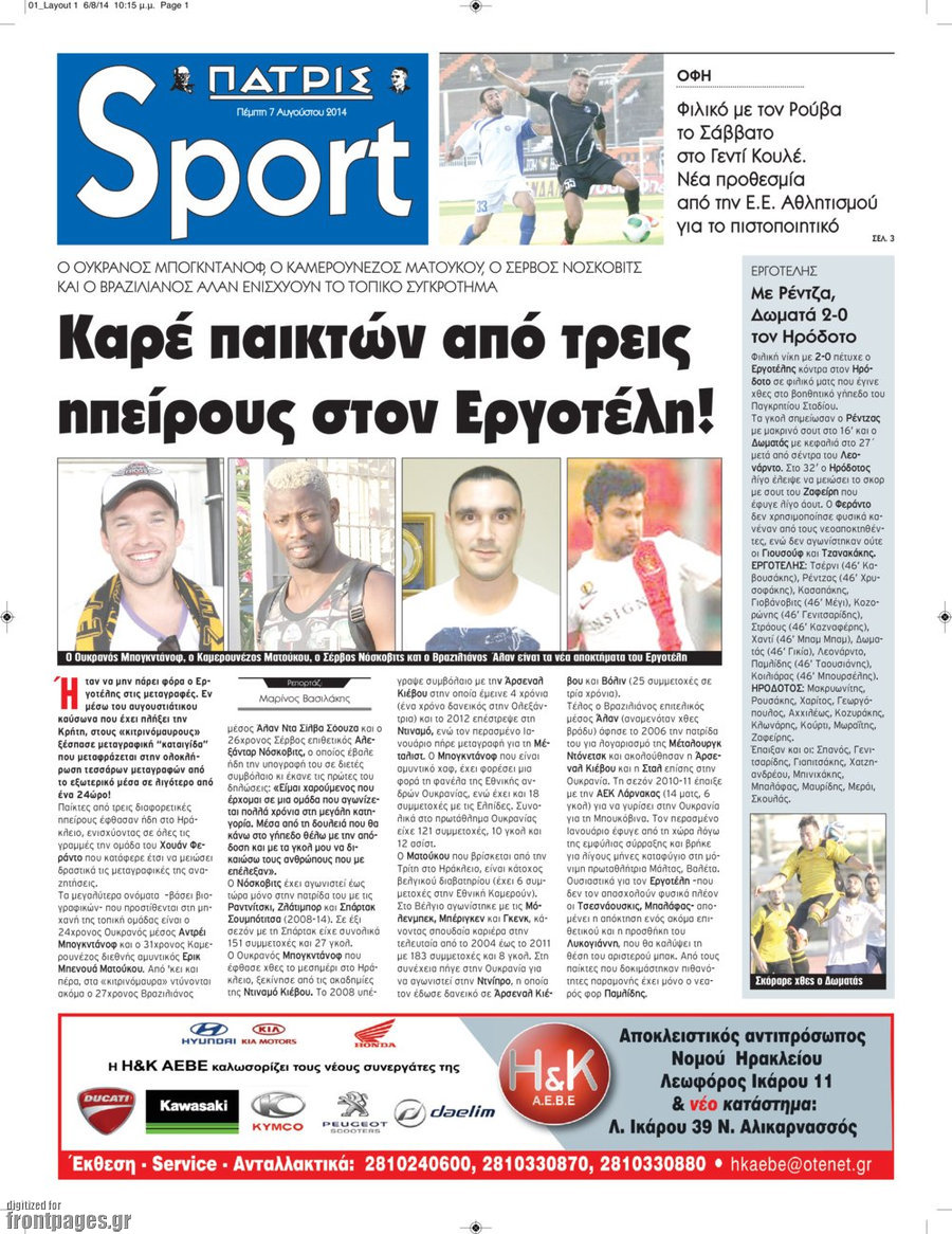 Οι αθλητικές εφημερίδες Enikos Newsroom 07:44, Πέμπτη 07 Αυγούστου 2014 Media Οι αθλητικές εφημερίδες Διαβάστε τα πρωτοσέλιδα των αθλητικών εφημερίδων. ΑΘΛΗΤΙΚΕΣ ΕΦΗΜΕΡΙΔΕΣ ΕΦΗΜΕΡΙΔΕΣ ΠΡΩΤΟΣΕΛΙΔΑ Μοιράσου το: σχολίασε κι εσύ (0 σχόλια) Ακολουθήστε το enikos.gr στο Google News και μάθετε πρώτοι όλες τις ειδήσεις Δείτε όλες τις τελευταίες ειδήσεις από την Ελλάδα και τον Κόσμο στο enikos.gr Ειδήσεις Ροή Ειδήσεων 12 λεπτά πριν Αγρότες από το μπλόκο Νίκαιας κλείνουν τη Δευτέρα τις σήραγγες των Τεμπών για τα φορτηγά – Τι αποφάσισαν 4 ώρες πριν Μητσοτάκης σε αγρότες: Είμαστε ανοιχτοί στον διάλογο, αλλά όχι στο παράλογο – Η διεκδίκηση αιτημάτων οφείλει να γίνεται με σεβασμό στο κοινωνικό σύνολο 3 ώρες πριν Κηφισιά: Δύο συλλήψεις για ληστεία με λεία 180.000 ευρώ – Βίντεο ντοκουμέντα από τη δράση των συλληφθέντων 2 ώρες πριν Ρωσία: Δεν προετοιμάζεται συνάντηση Αμερικανών, Ρώσων και Ουκρανών απεσταλμένων, ανακοίνωσε το Κρεμλίνο 5 ώρες πριν Η οικογενειακή διαμάχη των Μπέκαμ: Το block από τον Μπρούκλιν και η απόφαση να περάσει τα Χριστούγεννα με τους δισεκατομμυριούχους γονείς της συζύγου του 4 ώρες πριν Τα άστρα ευνοούν σκανδαλωδώς 4 ζώδια – «Εμφανίζονται ξαφνικά ευκαιρίες γιατί αποφασίζετε να αφήσετε πίσω το παρελθόν» 3 ώρες πριν Προπονήτρια γυμναστικής που έχασε 9 κιλά αποκαλύπτει: «Αυτοί είναι οι 5 παράγοντες που εμποδίζουν την απώλεια βάρους» 2 ώρες πριν Οι άνθρωποι που στρώνουν το κρεβάτι τους κάθε πρωί, διαθέτουν αυτές τις 8 κρυφές δυνάμεις 1 ημέρα πριν Enerwave: Το νέο «ρεύμα» στη λιανική ενέργειας που αλλάζει την εμπειρία του καταναλωτή 7 λεπτά πριν Ολυμπιακός και Μεντιλίμπαρ «έδωσαν τα χέρια» έως το 2027 12 λεπτά πριν Αγρότες από το μπλόκο Νίκαιας κλείνουν τη Δευτέρα τις σήραγγες των Τεμπών για τα φορτηγά – Τι αποφάσισαν 15 λεπτά πριν Άκης Σκέρτσος: Τι έγινε τελικά με την Έκθεση Πισσαρίδη; 22 λεπτά πριν Αττική: Σε ποια σημεία εγκαταστάθηκαν οι πρώτες «έξυπνες κάμερες» – Πώς θα στέλνονται τα πρόστιμα 31 λεπτά πριν Παρά Πέντε – Κωνσταντινίδου: «Χάσαμε ανθρώπους… θα χαρούν και αυτοί να μας δουν στο reunion» ENIKOS NETWORK Ο εγκέφαλός μας ξεπερνά ακόμα σε εξυπνάδα το ΑΙ – Ποιο είναι αυτό στο οποίο είμαστε καλύτεροι Φοράτε ψηλοτάκουνα παπούτσια; Ποδίατροι συμβουλεύουν πόσο ψηλά επιτρέπεται να είναι και πώς να τα επιλέξετε Η επόμενη ημέρα για τις ελληνικές τράπεζες -Τι λένε κορυφαία στελέχη του κλάδου Χριστουγεννιάτικο τραπέζι: Πόσο θα αγοράσετε φέτος τη γαλοπούλα και το μοσχάρι – Πού κυμαίνονται οι τιμές για μελομακάρονα ... Χαρτογραφώντας το «σημείο χωρίς επιστροφή»: Για πρώτη φορά αποκαλύπτεται με λεπτομέρεια το ακανθώδες όριο της ατμόσφαιρας τ... Η Google καταργεί τη λειτουργία «dark web report» – Πώς θα μπορούν οι χρήστες να διαγράφουν τα δεδομένα τους περισσότερα 09:43 , Κυριακή 21 Δεκεμβρίου 2025 Το λάθος στην ταινία Die Hard που άφησε άναυδους τους θαυμαστές του Μπρους Γουίλις Ένας φανατικός των ταινιών άφησε άναυδους τους θαυμαστές του Die Hard, επισημαίνοντας τρία βασ... 08:13 , Κυριακή 21 Δεκεμβρίου 2025 Άγιος έρωτας: Ένας καταστροφικός σεισμός χτυπά τη Στέρνα Καταιγιστικές είναι οι εξελίξεις στα δυο τελευταία, συγκλονιστικά επεισόδια του 2025 της σειρά... 08:00 , Κυριακή 21 Δεκεμβρίου 2025 Σήμερα με τη Realnews: Ό,τι και αν αγοράσεις, σκανάρεις και κερδίζεις! Σήμερα με τη Realnews: Ό,τι και αν αγοράσεις, σκανάρεις και κερδίζεις! Με το PADU app, το κορυ... 07:00 , Κυριακή 21 Δεκεμβρίου 2025 Σήμερα με τη Realnews: Instyle, μαζί Drive και Realnews Geopolitics Σήμ