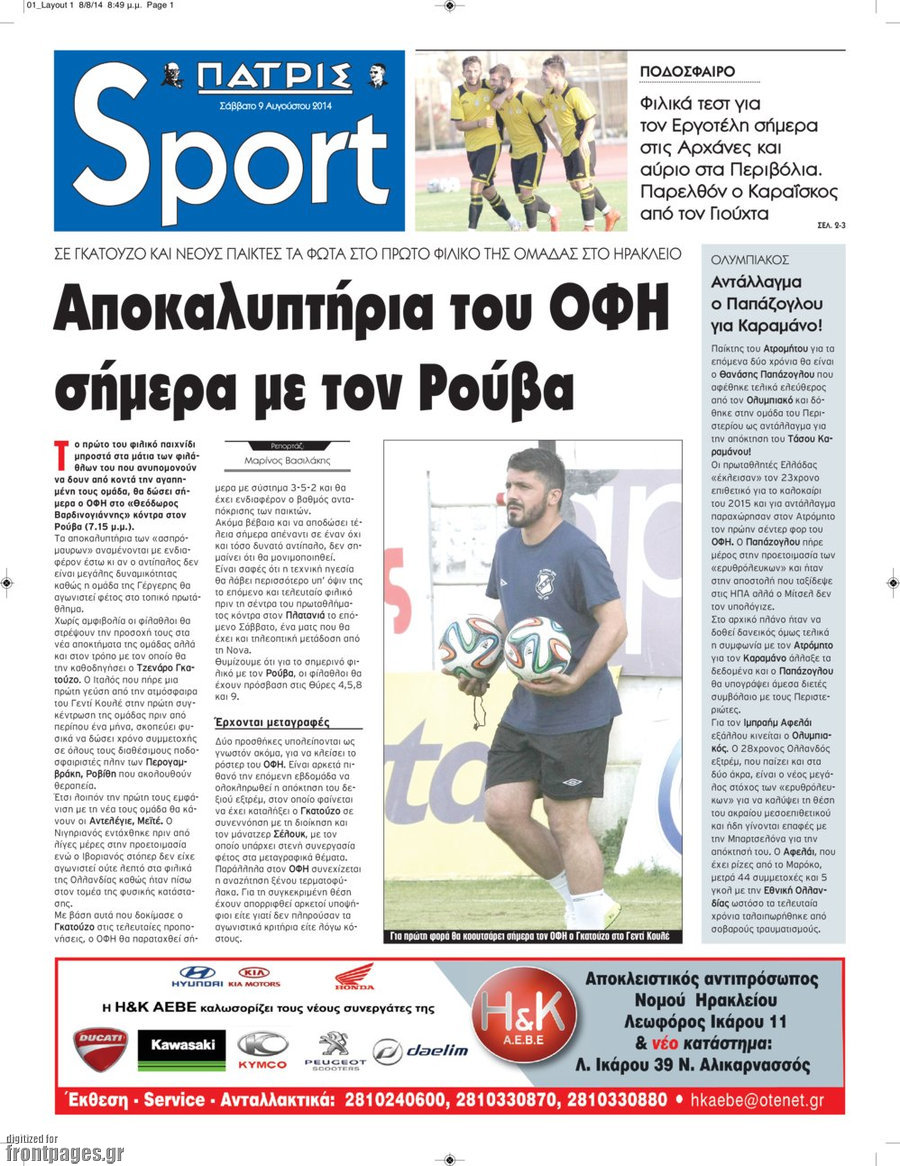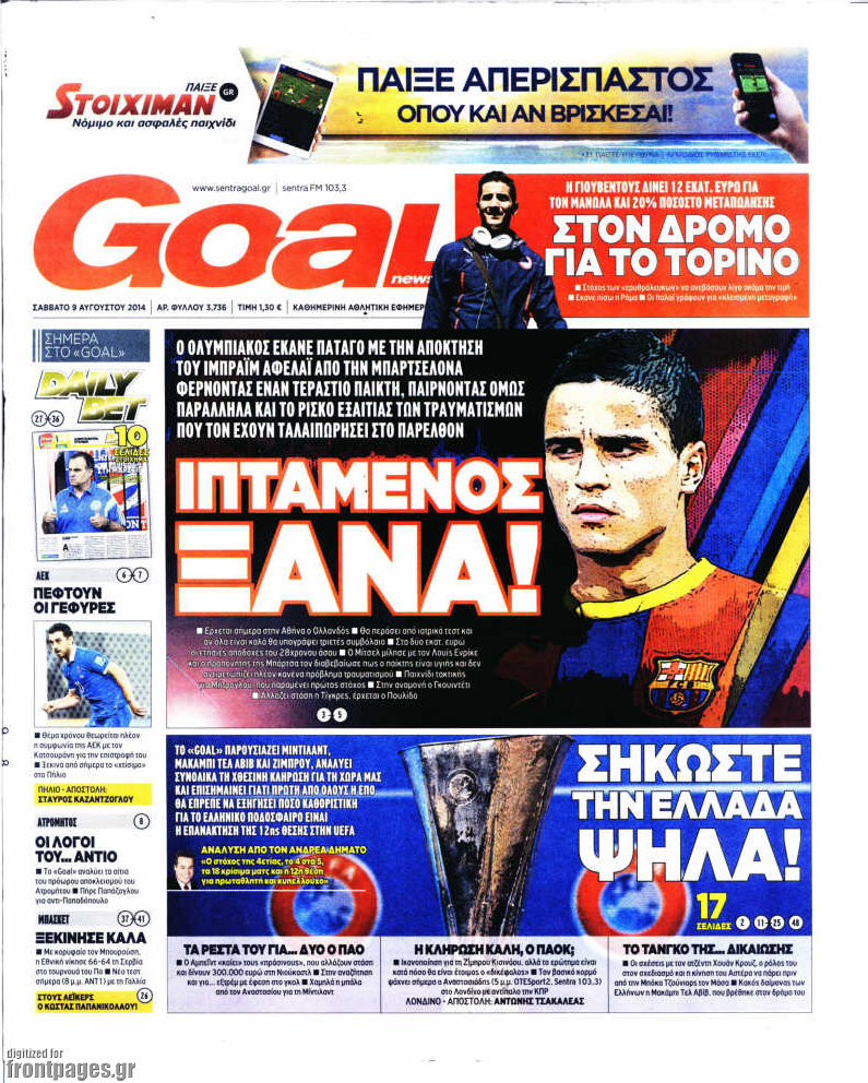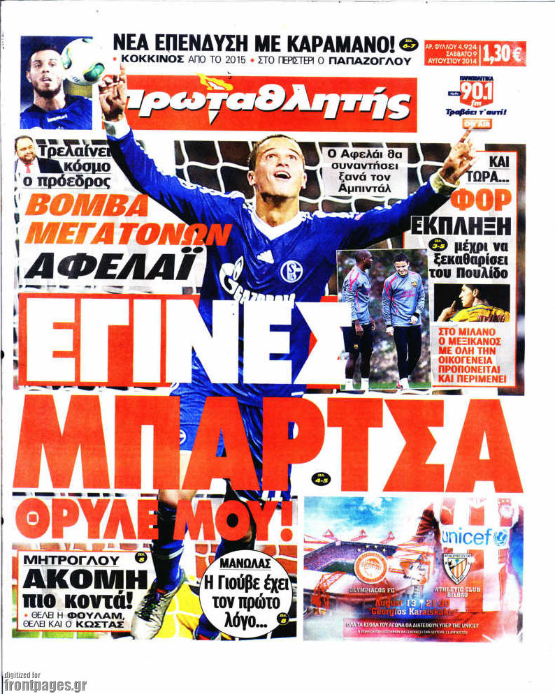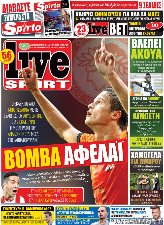 Οι αθλητικές εφημερίδες Enikos Newsroom 08:06, Σάββατο 09 Αυγούστου 2014 Media Οι αθλητικές εφημερίδες Διαβάστε τα πρωτοσέλιδα των αθλητικών εφημερίδων. ΑΘΛΗΤΙΚΕΣ ΕΦΗΜΕΡΙΔΕΣ ΠΡΩΤΟΣΕΛΙΔΑ Μοιράσου το: σχολίασε κι εσύ (0 σχόλια) Ακολουθήστε το enikos.gr στο Google News και μάθετε πρώτοι όλες τις ειδήσεις Δείτε όλες τις τελευταίες ειδήσεις από την Ελλάδα και τον Κόσμο στο enikos.gr Ειδήσεις Ροή Ειδήσεων 5 ώρες πριν Εκτός ευρωομάδας ΣΥΡΙΖΑ ο Νίκος Παππάς μετά την επίθεση στον δημοσιογράφο Νίκο Γιαννόπουλο – Η μήνυση και οι νέες δηλώσεις 5 ώρες πριν «Αγριεύουν» οι αγρότες: «Δεν συντρέχει λόγος συνάντησης με τον πρωθυπουργό» – Ώρα αποφάσεων στη σύσκεψη της Πέμπτης 5 ώρες πριν Κυψέλη: Χωρίς την οικογένειά της δίπλα της απολογήθηκε η 16χρονη – «Της είχε επιτεθεί κάποιος για να την βιάσει, φοβήθηκε και κυκλοφορούσε με μαχαίρι» 5 ώρες πριν Politico: Το πρόβλημα της Ευρώπης δεν είναι το Βέλγιο αλλά ο Ντόναλντ Τραμπ 6 ώρες πριν Αλεξανδρούπολη: Πολυοργανική ανεπάρκεια λόγω υποσιτισμού η αιτία θανάτου του 3χρονου αγοριού 5 ώρες πριν Μυστήριο με τεράστιες κυκλικές πέτρες 200 κιλών – Ανακαλύφθηκαν τυχαία κατά τη διάρκεια οδικών έργων και κανείς δεν ξέρει από πού προέρχονται 6 ώρες πριν Ύπνος: Ειδικός εξηγεί τον πραγματικό λόγο που ξυπνάτε στις 4 τα ξημερώματα – Ο ρόλος των ορμονών και του κιρκάδιου ρυθμού 7 ώρες πριν Αριθμολογία: Οι άνθρωποι που έχουν γεννηθεί αυτές τις 4 ημερομηνίες, είναι τρυφεροί και αγαπούν ανιδιοτελώς 19 ώρες πριν 20 χρόνια τα Χριστούγεννα ξεκινούν στα Public με μεγάλη ποικιλία σε δώρα! 9 λεπτά πριν GNTM: Με δάκρυα τον αποχαιρέτησε η Ηλιάνα Παπαγεωργίου πριν από τον ημιτελικό – «Αισθάνομαι πολύ παράξενα» 24 λεπτά πριν Αμερικανικά στρατεύματα στον Ισημερινό για «προσωρινή» επιχείρηση κατά των ναρκωτικών 39 λεπτά πριν Βραζιλία: Το Κογκρέσο ενέκρινε σχέδιο νόμου για τη μείωση της ποινής του πρώην προέδρου Μπολσονάρου 54 λεπτά πριν Ένταση στο περιφερειακό συμβούλιο Δυτικής Μακεδονίας: Φωνές, σπρωξιές και διακοπή – Δείτε βίντεο 1 ώρα πριν Σουδάν: Επιδρομή drone σε χωριό του Νότιου Κορντοφάν – Οκτώ νεκροί ENIKOS NETWORK Αϋπνία: Το κόλπο που θα σας βοηθήσει να κοιμηθείτε απόψε – Είναι απλό και έχει αποτέλεσμα 2,6 εκατομμύρια πολίτες έχουν ήδη εμβολιαστεί κατά της γρίπης ΕΛΣΤΑΤ: Τι δείχνουν τα νέα στοιχεία για τις ηλεκτρονικές παραγγελίες των επιχειρήσεων ΚΕΠΕ: Οι 3 διακριτές συμβολές των ΜμΕ και της μεταποίησης στην ελληνική οικονομία Χαρτογραφώντας το «σημείο χωρίς επιστροφή»: Για πρώτη φορά αποκαλύπτεται με λεπτομέρεια το ακανθώδες όριο της ατμόσφαιρας τ... Η Google καταργεί τη λειτουργία «dark web report» – Πώς θα μπορούν οι χρήστες να διαγράφουν τα δεδομένα τους περισσότερα 02:30 , Πέμπτη 18 Δεκεμβρίου 2025 Αλ Τσαντίρι Νιουζ: Η κόρη της Πάολα στο κοινό – Η ατάκα Λαζόπουλου που την έκανε να «κοκκινήσει» Γιορτινή διάθεση και ευχάριστες στιγμές γέμισε η αποψινή, τελευταία για το 2025, εκπομπή του «... 22:24 , Τετάρτη 17 Δεκεμβρίου 2025 Το Σπίτι Δίπλα Στο Ποτάμι: Σε κίνδυνο η υγεία του Απόστολου – Τι θα δούμε απόψε “Το Σπίτι Δίπλα στο Ποτάμι” ξετυλίγει το νήμα της ζωής των πέντε αδελφών με καταισ... 21:14 , Τετάρτη 17 Δεκεμβρίου 2025 Παιχνίδια Εκδίκησης: Θα καταφέρει ο Χρήστος να κλονίσει την εμπιστοσύνη της Μάγιας απέναντι στον Άγη; Τα «Παιχνίδια Εκδίκησης» έρχονται απόψε στις 22:30, στον Αντ1, με το τελευταίο επεισόδιο της χ... 20:57 , Τετάρτη 17 Δεκεμβρίου 2025 Άγιος Έρωτας: Η Χλόη καταθέτει εναντίον του πατέρα της και ο Χά