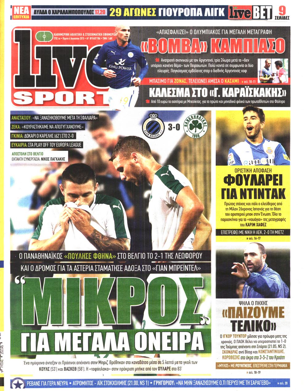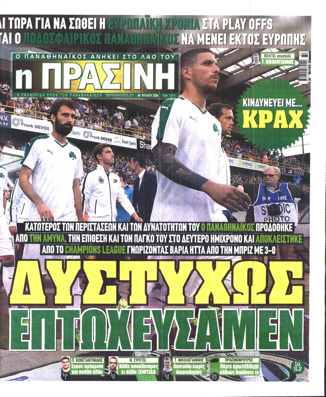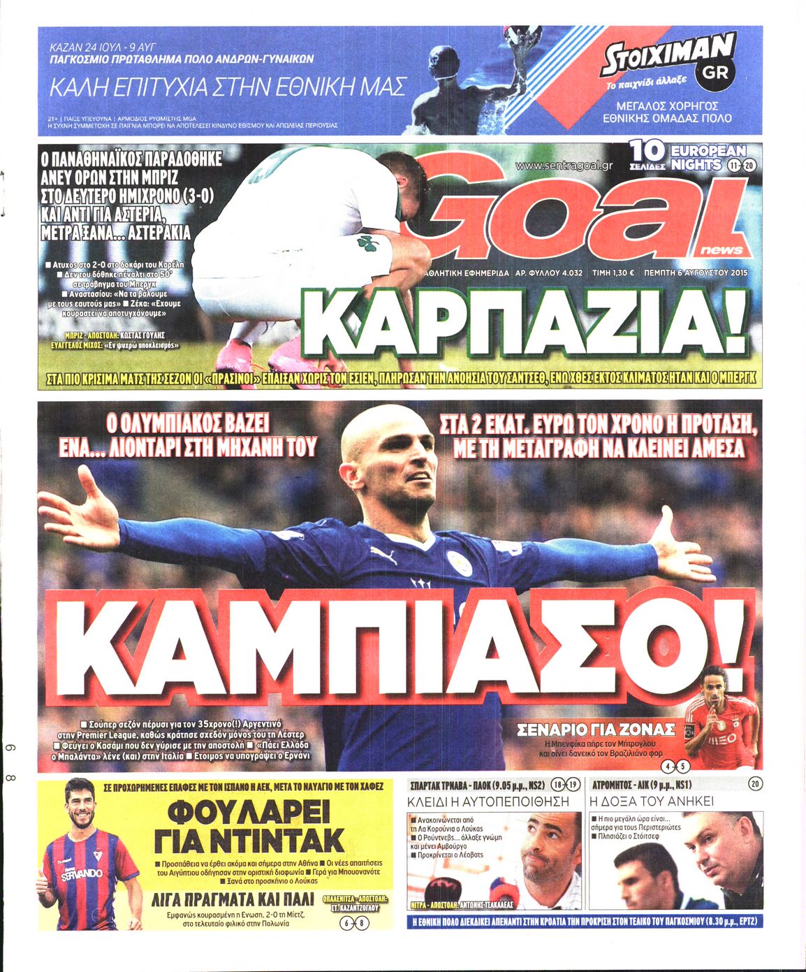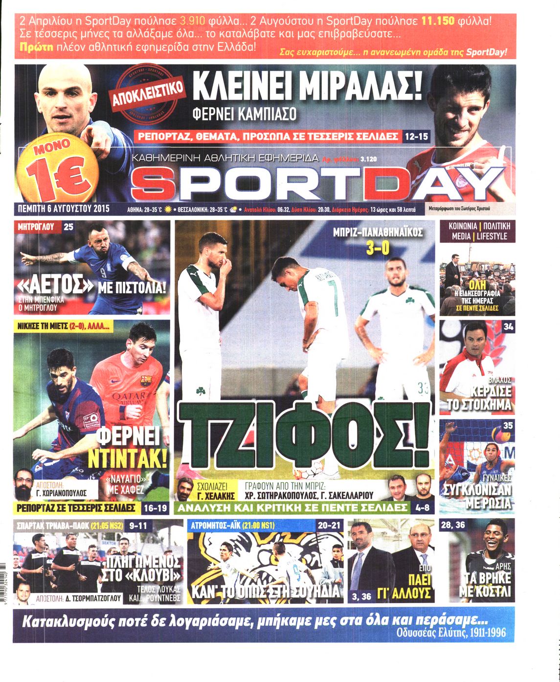 Οι αθλητικές εφημερίδες 6/8/2015 Enikos Newsroom 08:07, Πέμπτη 06 Αυγούστου 2015 Media Διαβάστε τα σημερινά πρωτοσέλιδα των αθλητικών εφημερίδων. ΑΘΛΗΤΙΚΕΣ ΕΦΗΜΕΡΙΔΕΣ ΕΦΗΜΕΡΙΔΕΣ ΠΡΩΤΟΣΕΛΙΔΑ Μοιράσου το: σχολίασε κι εσύ (0 σχόλια) Ακολουθήστε το enikos.gr στο Google News και μάθετε πρώτοι όλες τις ειδήσεις Δείτε όλες τις τελευταίες ειδήσεις από την Ελλάδα και τον Κόσμο στο enikos.gr Ειδήσεις Ροή Ειδήσεων 7 ώρες πριν Χριστούγεννα στα μπλόκα: Επιμένουν στις κινητοποιήσεις τους οι αγρότες – Ανοίγουν τα διόδια το Σαββατοκύριακο 7 ώρες πριν Ουκρανία: Η άνευ προηγουμένου επίθεση σε ρωσικό τάνκερ στη Μεσόγειο και το μήνυμα προς στον Πούτιν – Το «μακρύ χέρι» του Κιέβου 6 ώρες πριν Πούτιν: Τα μηνύματα σε Ευρώπη και ΝΑΤΟ από το μαραθώνιο «σόου» του – Η απαίτηση για «σεβασμό» και η ειρήνη «με τους όρους» της Μόσχας 7 ώρες πριν Τραμπ: Δεν αποκλείει την πιθανότητα ενός πολέμου στη Βενεζουέλα – «Ο Μαδούρο ξέρει καλύτερα από τον καθένα τι ακριβώς θέλω» 8 ώρες πριν Συνεχίζει να προκαλεί ο Μίτσκοσκι: «Για μένα το όνομα Μακεδονία είναι ιερό» 6 ώρες πριν Ανακαλύφθηκαν αρχαία χρυσά νομίσματα 2.200 ετών που απεικονίζουν τον θεό Απόλλωνα – Η άγνωστη σύνδεση με τον Φίλιππο Β΄ της Μακεδονίας 7 ώρες πριν Ύπνος: Μια κρυφή κατάσταση του εγκεφάλου πριν από τον ύπνο μπορεί να είναι το “κλειδί” για υψηλή ευφυΐα και δημιουργικότητα 8 ώρες πριν Αριθμολογία: Οι άνθρωποι που έχουν γεννηθεί αυτές τις 4 ημερομηνίες, συχνά παρεξηγούνται – «Η καλοσύνη τους κρύβει τεράστια δύναμη» 9 ώρες πριν Ξεχάστε το καθάρισμα το Σαββατοκύριακο: Ο «κανόνας των 20 λεπτών» που θα σας λύσει τα χέρια 7 λεπτά πριν ΟΗΕ: Το Συμβούλιο Ασφαλείας παρατείνει για έναν χρόνο την εντολή της ειρηνευτικής δύναμης στο Κονγκό 23 λεπτά πριν Μοχάμεντ Σαλάχ: Ζήτησε «συγγνώμη» από τους συμπαίκτες του στη Λίβερπουλ για το ξέσπασμά του 38 λεπτά πριν Μάρκο Ρούμπιο: Ανθρωπιστική κατάπαυση του πυρός στο Σουδάν ζητά ο Αμερικανός υπουργός Εξωτερικών 52 λεπτά πριν Αγγελική Νικολούλη: Τα συλλυπητήρια για την απώλεια της Ειρήνης Μαρινάκη 1 ώρα πριν Βολιβία: Μαζική διαδηλώσεις εναντίον της κατάργησης των επιδοτήσεων των τιμών των καυσίμων ENIKOS NETWORK Το ΕΚΑΒ τιμήθηκε από την Ακαδημία Αθηνών για τα 40 χρόνια προσφοράς του Έχετε πραγματικά μεγάλη καρδιά; 10 χαρακτηριστικά όσων έχουν καλοσύνη Αναστολή μέτρων αναγκαστικής εκτέλεσης για κτηνοτρόφους που πλήττονται από την ευλογιά των αιγοπροβάτων Πλήρης επάρκεια προϊόντων στις λαϊκές της Αττικής, παρά τις αγροτικές κινητοποιήσεις – Τι απαντούν οι πωλητές Χαρτογραφώντας το «σημείο χωρίς επιστροφή»: Για πρώτη φορά αποκαλύπτεται με λεπτομέρεια το ακανθώδες όριο της ατμόσφαιρας τ... Η Google καταργεί τη λειτουργία «dark web report» – Πώς θα μπορούν οι χρήστες να διαγράφουν τα δεδομένα τους περισσότερα 04:20 , Σάββατο 20 Δεκεμβρίου 2025 Αγγελική Νικολούλη: Τα συλλυπητήρια για την απώλεια της Ειρήνης Μαρινάκη Τα συλληπητήρια στον πρόεδρο του Mega, τον Βαγγέλη Μαρινάκη, για την απώλεια της μητέρας του Ε... 02:50 , Σάββατο 20 Δεκεμβρίου 2025 GNTM: Η Ξένια Τσίρκοβα αναδείχθηκε μεγάλη νικήτρια και πήρε τις 50.000 ευρώ – Ποιος βρέθηκε σε απόσταση αναπνοής; Με φαντασμαγορικό τρόπο ολοκληρώθηκε το βράδυ της Παρασκευής ο μεγάλος τελικός του GNTM, μέσα ... 22:42 , Παρασκευή 19 Δεκεμβρίου 2025 Γιώργος Γιαννόπουλος για “Το σόι σου”: “Είναι ευτυχία και ευλογία αυτή η σειρά” «Είναι ευτυχία και ευλογία η συγκυρία αυτής της σειράς», θα πει ο Γιώργος Γιαννόπουλος -