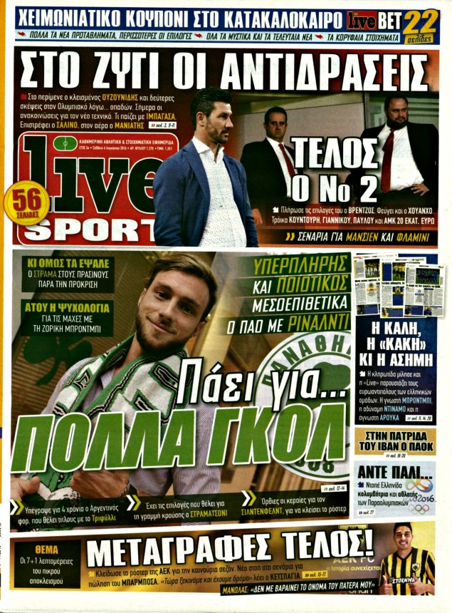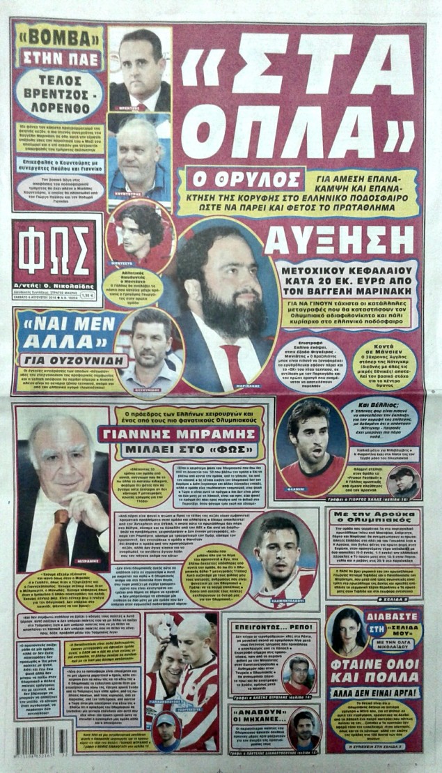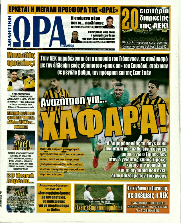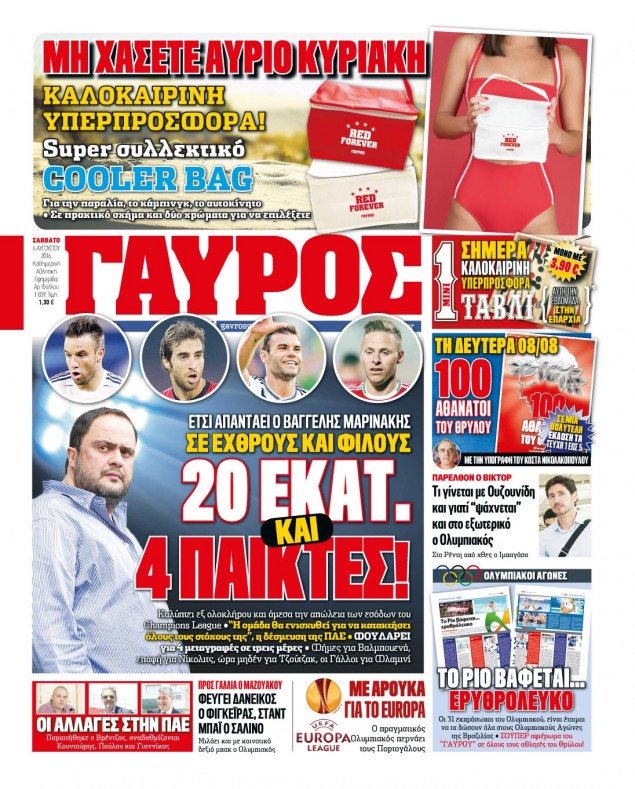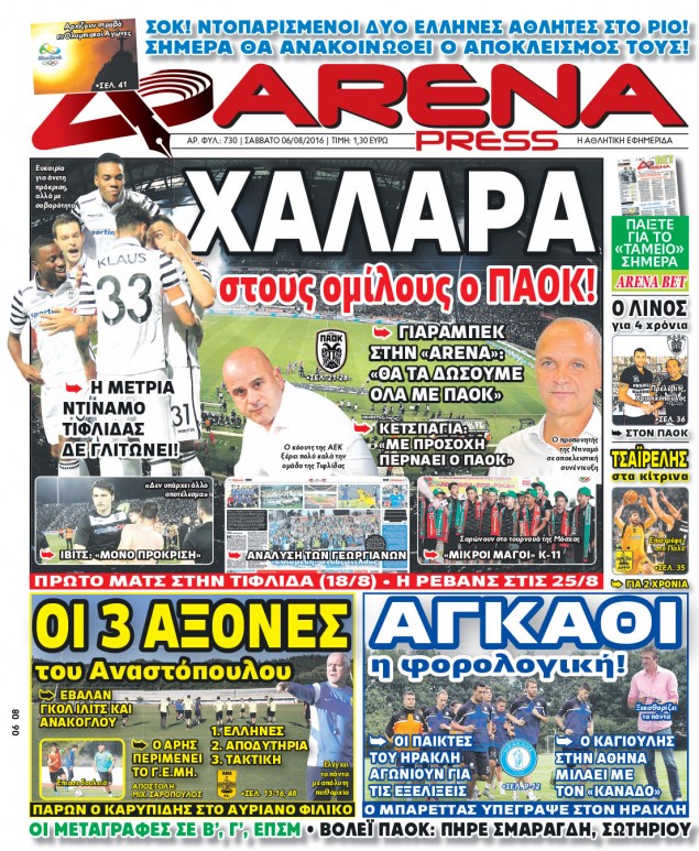 Oι αθλητικές εφημερίδες 6/8/2016 Enikos Newsroom 05:23, Σάββατο 06 Αυγούστου 2016 Media Διαβάστε τα σημερινά πρωτοσέλιδα των αθλητικών εφημερίδων: ΑΘΛΗΤΙΚΕΣ ΕΦΗΜΕΡΙΔΕΣ ΠΡΩΤΟΣΕΛΙΔΑ Μοιράσου το: σχολίασε κι εσύ (0 σχόλια) Ακολουθήστε το enikos.gr στο Google News και μάθετε πρώτοι όλες τις ειδήσεις Δείτε όλες τις τελευταίες ειδήσεις από την Ελλάδα και τον Κόσμο στο enikos.gr Ειδήσεις Ροή Ειδήσεων 46 λεπτά πριν Ευρωπαϊκή Ένωση: Συμφωνία για δάνειο 90 δισ. ευρώ στην Ουκρανία τη διετία 2026-2027 5 ώρες πριν ΟΠΕΚΕΠΕ: Προφυλακιστέος ο φερόμενος αρχηγός και ο λογιστής της εγκληματικής οργάνωσης 6 ώρες πριν Αυξάνουν την πίεση προς την κυβέρνηση οι αγρότες: Κλείνουν παρακαμπτήριους και ανοίγουν διόδια – Τι θα γίνει τις γιορτές 6 ώρες πριν Φοινικούντα: Το Σάββατο απολογείται ο 30χρονος γιος γνωστού επιχειρηματία της Πλάκας που παραδόθηκε – Όσα είπε στους αστυνομικούς και ο ρόλος του στο έγκλημα 5 ώρες πριν ΑΕΚ – Κραϊόβα 3-2: Επική ανατροπή και πρόκριση στους «16» του Conference League η Ένωση 6 ώρες πριν Αρχαιολόγοι ανακάλυψαν ρωμαϊκά τεχνουργήματα από μια πόλη που δεν υπήρξε ποτέ – Τα τρία εντυπωσιακά κτίρια και ο αμφορέας με τις… σαρδέλες 7 ώρες πριν Ύπνος: Η απλή βραδινή ρουτίνα για να προστατεύσετε τα μαλλιά σας από το κρύο κατά τη διάρκεια του χειμώνα 8 ώρες πριν Manifesting: Πώς να συναντήσετε τον σύντροφο της ζωής σας, ανάλογα με τον μήνα γέννησής σας 2 ημέρες πριν 20 χρόνια τα Χριστούγεννα ξεκινούν στα Public με μεγάλη ποικιλία σε δώρα! 9 λεπτά πριν Αυστραλία: Κήρυξε την Κυριακή (21/12) ημέρα εθνικού πένθους για τη φονική επίθεση στην παραλία Μπόνταϊ 19 λεπτά πριν Ρόδος: Δάσκαλος καράτε καταδικάστηκε για ασέλγεια σε ανήλικες αθλήτριες – Μαρτυρίες για αγγίγματα σε ευαίσθητα σημεία 34 λεπτά πριν Γουατεμάλα: Εξαρθρώθηκε κύκλωμα διακίνησης μεταναστών προς τις ΗΠΑ – Συνελήφθησαν 14 άτομα 38 λεπτά πριν Βουλγαρία: Χιλιάδες πολίτες στους δρόμους κατά της απερχόμενης κυβέρνησης και της διαφθοράς 46 λεπτά πριν Ευρωπαϊκή Ένωση: Συμφωνία για δάνειο 90 δισ. ευρώ στην Ουκρανία τη διετία 2026-2027 ENIKOS NETWORK Σε περίοδο αυξημένης δραστηριότητας η γρίπη στην Ελλάδα-Μέτρα προστασίας από τον ΕΟΔΥ Σκέφτεστε συνέχεια συζητήσεις που έχετε κάνει; Τι σημαίνει αυτό, σύμφωνα με ειδικό Στεγαστικό: Τι λέει η ΠΟΜΙΔΑ για τα νέα μέτρα που ανακοίνωσε ο Κυριάκος Μητσοτάκης Λαγκάρντ: Αισιόδοξη για την ανάπτυξη της Ευρωζώνης, αβέβαιη για τον πληθωρισμό Χαρτογραφώντας το «σημείο χωρίς επιστροφή»: Για πρώτη φορά αποκαλύπτεται με λεπτομέρεια το ακανθώδες όριο της ατμόσφαιρας τ... Η Google καταργεί τη λειτουργία «dark web report» – Πώς θα μπορούν οι χρήστες να διαγράφουν τα δεδομένα τους περισσότερα 02:50 , Παρασκευή 19 Δεκεμβρίου 2025 GNTM: «Κλείδωσαν» οι τέσσερις φιναλίστ – Μεγάλη ανατροπή στις τελευταίες αποχωρήσεις Για προτελευταία φορά εμφανίστηκαν στο πλατό του GNTM οι φιναλίστ του φετινού κύκλου, το βράδυ... 17:45 , Πέμπτη 18 Δεκεμβρίου 2025 ROUK ZOUK: Εορταστικό επεισόδιο με καλεσμένους τους πρωταγωνιστές του «Γιατί ρε πατέρα» Το Σάββατο 20 Δεκεμβρίου στις 21:00, η Ζέτα Μακρυπούλια υποδέχεται εκλεκτούς ηθοποιούς που όλο... 17:20 , Πέμπτη 18 Δεκεμβρίου 2025 Άγιος έρωτας: Η Χριστίνα εξομολογείται στον πατέρα Νικόλαο, απόψε στις 21:00 στον Alpha Η Νότα αποφασίζει να εκδικηθεί τον Πέτρο και τον Στέφανο, για χάρη του Λούη, όμως τα πράγματα ... 16:50 , Πέμπτη 18 Δεκεμβρίου 2025 Να μ’ αγαπάς: Ζωή και Φωτεινή συμφιλιώνονται ως μάνα με κόρη, απόψε στις 20:00 Η ταυτότητα του Άγγελου αποκαλύπτεται στο νέ