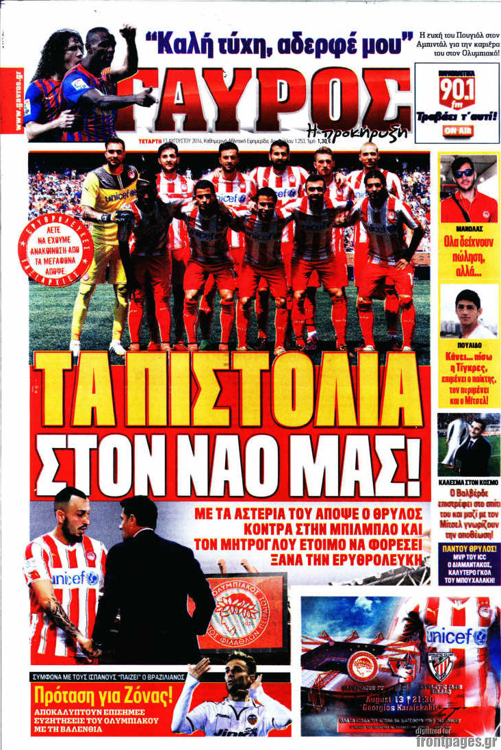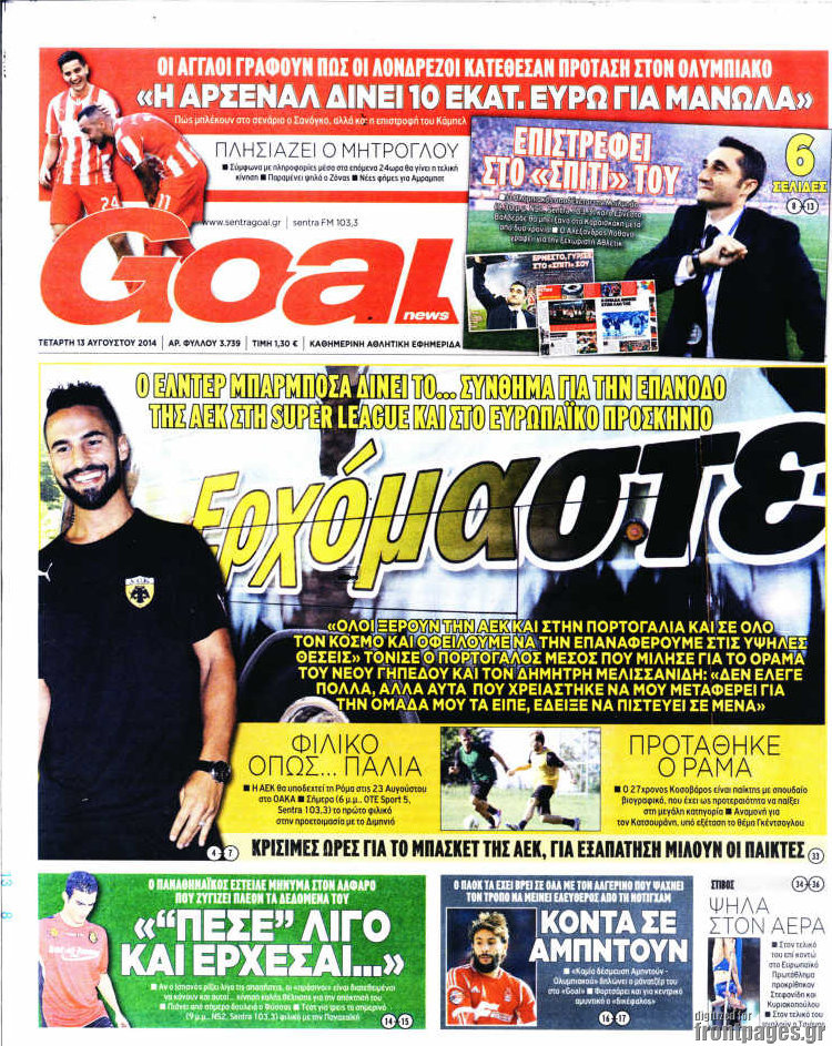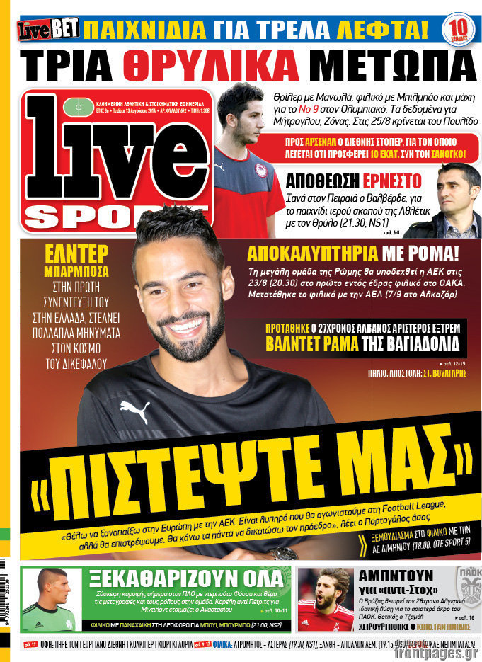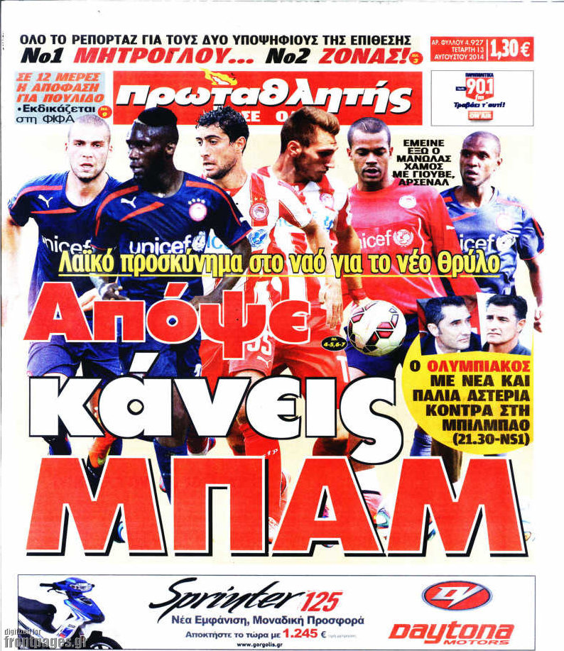 Οι αθλητικές εφημερίδες Enikos Newsroom 08:26, Τετάρτη 13 Αυγούστου 2014 Media Οι αθλητικές εφημερίδες Διαβάστε τα πρωτοσέλιδα των αθλητικών εφημερίδων: ΑΘΛΗΤΙΚΕΣ ΕΦΗΜΕΡΙΔΕΣ ΕΦΗΜΕΡΙΔΕΣ ΠΡΩΤΟΣΕΛΙΔΑ Μοιράσου το: σχολίασε κι εσύ (0 σχόλια) Ακολουθήστε το enikos.gr στο Google News και μάθετε πρώτοι όλες τις ειδήσεις Δείτε όλες τις τελευταίες ειδήσεις από την Ελλάδα και τον Κόσμο στο enikos.gr Ειδήσεις Ροή Ειδήσεων 8 ώρες πριν Μητσοτάκης: Αναγκαία η μεταρρύθμιση του πρωτογενούς τομέα – Τα 6 νέα μέτρα για το στεγαστικό και οι αναφορές σε «Ιθάκη» και «πολιτικούς του καναπέ» 7 ώρες πριν Δάνεια σε ελβετικό φράγκο: Τα βασικά σημεία της ρύθμισης – ανάσας για 40.000 δανειολήπτες – Αναλυτικός οδηγός με ερωτήσεις και απαντήσεις 7 ώρες πριν Κυψέλη: Εξιτήριο πήρε η 14χρονη μαθήτρια που μαχαιρώθηκε από την 16χρονη σε σχολείο – «Θέλω να βοηθήσω το παιδί, έχει μπλέξει με κακές παρέες» 6 ώρες πριν Τραμπ: Γιατί κατέθεσε τώρα την αγωγή κατά του BBC – Πώς η κίνησή του εξυπηρετεί το νέο δόγμα του για «αντίσταση» στην Ευρώπη, υπέρ των συντηρητικών 7 ώρες πριν ΟΠΕΚΕΠΕ – Παράνομες επιδοτήσεις: Ελεύθεροι με περιοριστικούς όρους και οι 7 κατηγορούμενοι που απολογήθηκαν σήμερα 6 ώρες πριν Ανακαλύφθηκε βυθισμένη πέτρινη κατασκευή ανοιχτά της Κριμαίας – Αποτελεί μέρος αρχαίας ελληνικής αποικίας 7 ώρες πριν Ύπνος: Αυτό μπορεί να είναι το χειρότερο λάθος για το βιολογικό ρολόι σας, σύμφωνα με ειδικό 8 ώρες πριν Αριθμολογία: Οι άνθρωποι που έχουν γεννηθεί αυτές τις 3 ημερομηνίες, προσελκύουν μεγάλη τύχη πριν από το τέλος του 2025 10 ώρες πριν Οι 7 συμπεριφορές που μαρτυρούν ότι ένας άνδρας επενδύει μακροπρόθεσμα σε μια σχέση 7 δευτερόλεπτα πριν Εφημερεύοντα φαρμακεία σε Αθήνα και Θεσσαλονίκη (17/12) 6 λεπτά πριν Κόστα Ρίκα: Το Κογκρέσο απέρριψε το αίτημα για άρση της ασυλίας του προέδρου Τσάβες 14 λεπτά πριν Κολομβία: Νεκροί τέσσερις αστυνομικοί σε βομβιστικές επιθέσεις ανταρτών 22 λεπτά πριν Στάση εργασίας 11:00 – 17:00 σήμερα στα λεωφορεία του ΟΑΣΑ – Ποιες γραμμές θα λειτουργήσουν 38 λεπτά πριν Παλαιστινιακό: «Η λύση των δύο κρατών είναι ο μόνος βιώσιμος δρόμος», τόνισε η Ελλάδα στο Συμβούλιο Ασφαλείας του ΟΗΕ ENIKOS NETWORK Αίτημα ΙΣΑ για την εξαίρεση των προσωπικών γιατρών από τις κατ’ οίκον επισκέψεις Η σκανδιναβική μέθοδος στον ύπνο που μπορεί να σώσει έναν γάμο Πιερρακάκης: Ο προϋπολογισμός συμβάλλει ουσιαστικά στην ενίσχυση της αγοραστικής δύναμης της πλειονότητας των εργαζομένων e-ΕΦΚΑ: Παρατείνεται η προθεσμία για την υποβολή ΑΠΔ – Ποιους αφορά Σύγχρονος Νοστράδαμος: Προειδοποιεί για «μεγάλο γεγονός» τους επόμενους μήνες που θα συγκλονίσει τη Βρετανία και τον κόσμο Τεστ παρατηρητικότητας: Μπορείτε να βρείτε τις 3 διαφορές στις εικόνες με έναν πιγκουίνο σε 14 δευτερόλεπτα περισσότερα 20:06 , Τρίτη 16 Δεκεμβρίου 2025 Ο ΣΚΑΙ καταγγέλλει τον ΕΚΚΟΜΕΔ Επιστολή με την οποία καταγράφει την έντονη διαμαρτυρία του προς τον διευθύνοντα σύμβουλο του... 17:40 , Τρίτη 16 Δεκεμβρίου 2025 Eurovision: Στις 4 Ιανουαρίου αποκαλύπτονται τα 28 τραγούδια του ελληνικού τελικού Η αγωνία τελειώνει, η γιορτή της Eurovision αρχίζει στην ΕΡΤ από τις πρώτες ημέρες της νέας χρ... 17:09 , Τρίτη 16 Δεκεμβρίου 2025 Alter Ego Media: Βαθύτατη θλίψη και ειλικρινή συλλυπητήρια για την απώλεια της Ειρήνης Μαρινάκη Τη βαθύτατη θλίψη και τα ειλικρινή συλλυπητήριά της εκφράζει η Alter Ego Media για τον θάνατο ... 13:00 , Τρίτη 16 Δεκεμβρίου 2025 «Στο Παρά Πέντε – 20 Χρόνια Μετά»: Κυκλοφόρησε το τρ