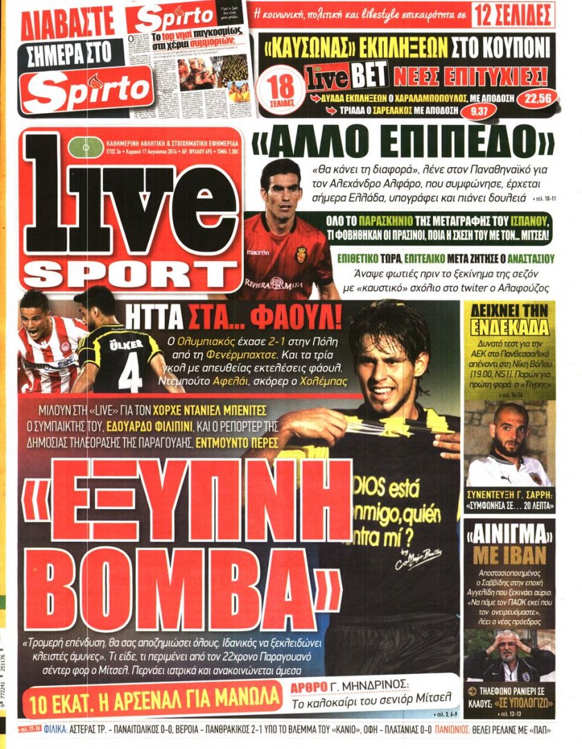 Οι αθλητικές εφημερίδες Enikos Newsroom 08:25, Κυριακή 17 Αυγούστου 2014 Media Οι αθλητικές εφημερίδες Διαβάστε τα πρωτοσέλιδα των αθλητικών εφημερίδων: ΑΘΛΗΤΙΚΕΣ ΕΦΗΜΕΡΙΔΕΣ ΕΦΗΜΕΡΙΔΕΣ ΠΡΩΤΟΣΕΛΙΔΑ Μοιράσου το: σχολίασε κι εσύ (0 σχόλια) Ακολουθήστε το enikos.gr στο Google News και μάθετε πρώτοι όλες τις ειδήσεις Δείτε όλες τις τελευταίες ειδήσεις από την Ελλάδα και τον Κόσμο στο enikos.gr Ειδήσεις Ροή Ειδήσεων 4 ώρες πριν Εκτός ευρωομάδας ΣΥΡΙΖΑ ο Νίκος Παππάς μετά την επίθεση στον δημοσιογράφο Νίκο Γιαννόπουλο – Η μήνυση και οι νέες δηλώσεις 4 ώρες πριν «Αγριεύουν» οι αγρότες: «Δεν συντρέχει λόγος συνάντησης με τον πρωθυπουργό» – Ώρα αποφάσεων στη σύσκεψη της Πέμπτης 4 ώρες πριν Κυψέλη: Χωρίς την οικογένειά της δίπλα της απολογήθηκε η 16χρονη – «Της είχε επιτεθεί κάποιος για να την βιάσει, φοβήθηκε και κυκλοφορούσε με μαχαίρι» 4 ώρες πριν Politico: Το πρόβλημα της Ευρώπης δεν είναι το Βέλγιο αλλά ο Ντόναλντ Τραμπ 5 ώρες πριν Αλεξανδρούπολη: Πολυοργανική ανεπάρκεια λόγω υποσιτισμού η αιτία θανάτου του 3χρονου αγοριού 4 ώρες πριν Μυστήριο με τεράστιες κυκλικές πέτρες 200 κιλών – Ανακαλύφθηκαν τυχαία κατά τη διάρκεια οδικών έργων και κανείς δεν ξέρει από πού προέρχονται 5 ώρες πριν Ύπνος: Ειδικός εξηγεί τον πραγματικό λόγο που ξυπνάτε στις 4 τα ξημερώματα – Ο ρόλος των ορμονών και του κιρκάδιου ρυθμού 6 ώρες πριν Αριθμολογία: Οι άνθρωποι που έχουν γεννηθεί αυτές τις 4 ημερομηνίες, είναι τρυφεροί και αγαπούν ανιδιοτελώς 18 ώρες πριν 20 χρόνια τα Χριστούγεννα ξεκινούν στα Public με μεγάλη ποικιλία σε δώρα! 9 λεπτά πριν Σουδάν: Επιδρομή drone σε χωριό του Νότιου Κορντοφάν – Οκτώ νεκροί 24 λεπτά πριν Αλ Τσαντίρι Νιουζ: Η κόρη της Πάολα στο κοινό – Η ατάκα Λαζόπουλου που την έκανε να «κοκκινήσει» 39 λεπτά πριν Ρωσία: Ουκρανικές δυνάμεις έπληξαν πλοίο στο λιμάνι του Ροστόφ – Αναφορές για θύματα 55 λεπτά πριν Βρυξέλλες: Νυχτερινό… μπλόκο αγροτών μπροστά από το κτίριο της Ευρωπαϊκής Επιτροπής – Πάνω από 100 τρακτέρ απέκλεισαν την λεωφόρο 1 ώρα πριν Euroleague: Απρόσμενη ήττα για την Μονακό του Βασίλη Σπανούλη – Η βαθμολογία μετά το τέλος της 16ης αγωνιστικής ENIKOS NETWORK Αϋπνία: Το κόλπο που θα σας βοηθήσει να κοιμηθείτε απόψε – Είναι απλό και έχει αποτέλεσμα 2,6 εκατομμύρια πολίτες έχουν ήδη εμβολιαστεί κατά της γρίπης ΕΛΣΤΑΤ: Τι δείχνουν τα νέα στοιχεία για τις ηλεκτρονικές παραγγελίες των επιχειρήσεων ΚΕΠΕ: Οι 3 διακριτές συμβολές των ΜμΕ και της μεταποίησης στην ελληνική οικονομία Χαρτογραφώντας το «σημείο χωρίς επιστροφή»: Για πρώτη φορά αποκαλύπτεται με λεπτομέρεια το ακανθώδες όριο της ατμόσφαιρας τ... Η Google καταργεί τη λειτουργία «dark web report» – Πώς θα μπορούν οι χρήστες να διαγράφουν τα δεδομένα τους περισσότερα 02:30 , Πέμπτη 18 Δεκεμβρίου 2025 Αλ Τσαντίρι Νιουζ: Η κόρη της Πάολα στο κοινό – Η ατάκα Λαζόπουλου που την έκανε να «κοκκινήσει» Γιορτινή διάθεση και ευχάριστες στιγμές γέμισε η αποψινή, τελευταία για το 2025, εκπομπή του «... 22:24 , Τετάρτη 17 Δεκεμβρίου 2025 Το Σπίτι Δίπλα Στο Ποτάμι: Σε κίνδυνο η υγεία του Απόστολου – Τι θα δούμε απόψε “Το Σπίτι Δίπλα στο Ποτάμι” ξετυλίγει το νήμα της ζωής των πέντε αδελφών με καταισ... 21:14 , Τετάρτη 17 Δεκεμβρίου 2025 Παιχνίδια Εκδίκησης: Θα καταφέρει ο Χρήστος να κλονίσει την εμπιστοσύνη της Μάγιας απέναντι στον Άγη; Τα «Παιχνίδια Εκδίκησης» έρχονται απόψε στις 22:30, στον Αντ1, με το τελευταίο επεισόδιο της χ... 20:57 , Τετάρτη 17 Δεκεμβρίου 2025 Άγιος Έρωτας: Η Χλόη καταθ