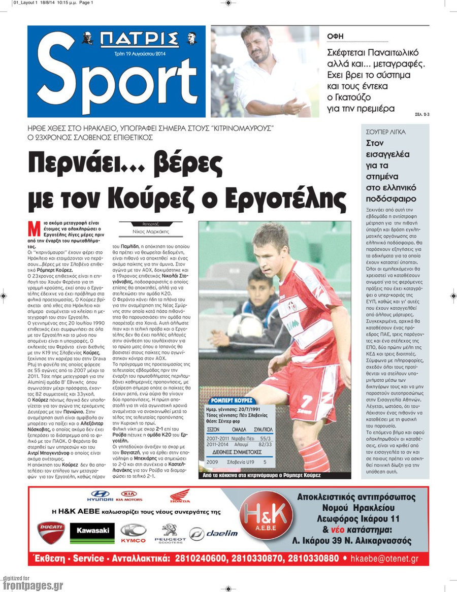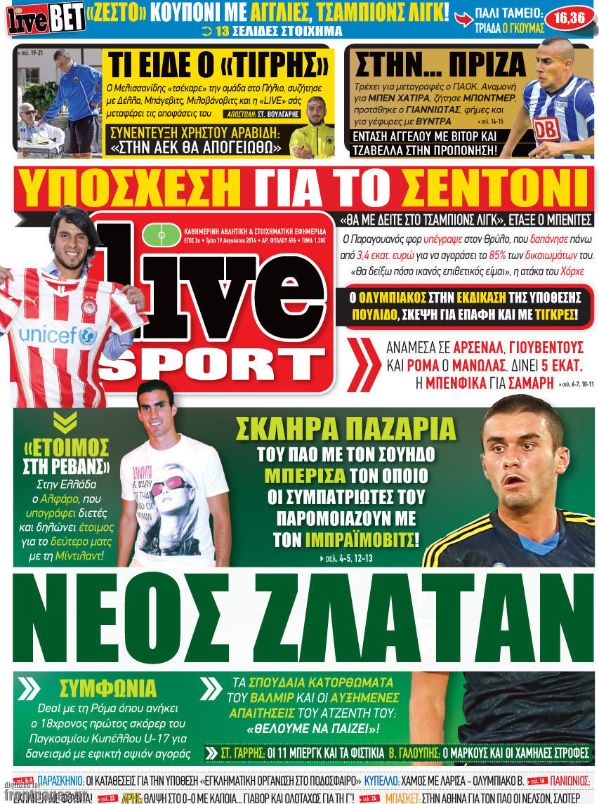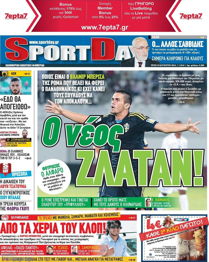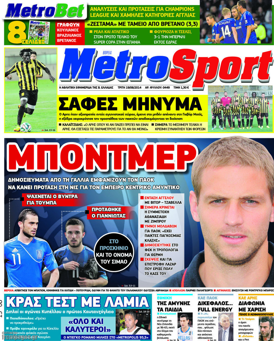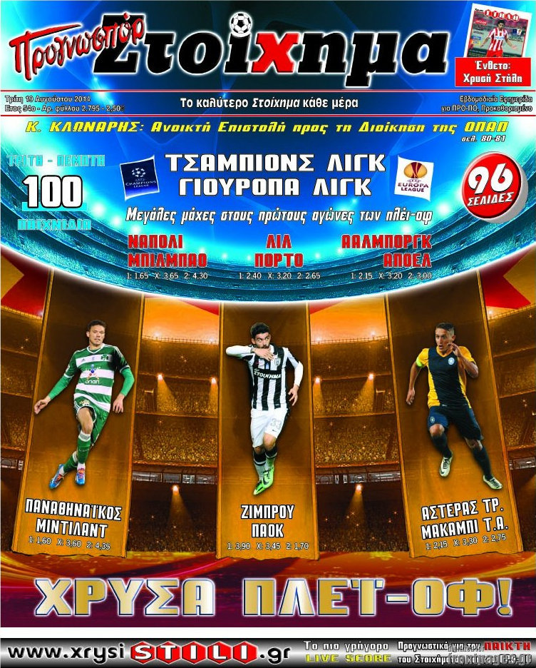 Οι αθλητικές εφημερίδες Enikos Newsroom 08:12, Τρίτη 19 Αυγούστου 2014 Media Οι αθλητικές εφημερίδες Διαβάστε τα πρωτοσέλιδα των αθλητικών εφημερίδων: ΑΘΛΗΤΙΚΕΣ ΕΦΗΜΕΡΙΔΕΣ ΠΡΩΤΟΣΕΛΙΔΑ Μοιράσου το: σχολίασε κι εσύ (0 σχόλια) Ακολουθήστε το enikos.gr στο Google News και μάθετε πρώτοι όλες τις ειδήσεις Δείτε όλες τις τελευταίες ειδήσεις από την Ελλάδα και τον Κόσμο στο enikos.gr Ειδήσεις Ροή Ειδήσεων 7 ώρες πριν Εκτός ευρωομάδας ΣΥΡΙΖΑ ο Νίκος Παππάς μετά την επίθεση στον δημοσιογράφο Νίκο Γιαννόπουλο – Η μήνυση και οι νέες δηλώσεις 7 ώρες πριν «Αγριεύουν» οι αγρότες: «Δεν συντρέχει λόγος συνάντησης με τον πρωθυπουργό» – Ώρα αποφάσεων στη σύσκεψη της Πέμπτης 7 ώρες πριν Κυψέλη: Χωρίς την οικογένειά της δίπλα της απολογήθηκε η 16χρονη – «Της είχε επιτεθεί κάποιος για να την βιάσει, φοβήθηκε και κυκλοφορούσε με μαχαίρι» 7 ώρες πριν Politico: Το πρόβλημα της Ευρώπης δεν είναι το Βέλγιο αλλά ο Ντόναλντ Τραμπ 8 ώρες πριν Αλεξανδρούπολη: Πολυοργανική ανεπάρκεια λόγω υποσιτισμού η αιτία θανάτου του 3χρονου αγοριού 7 ώρες πριν Μυστήριο με τεράστιες κυκλικές πέτρες 200 κιλών – Ανακαλύφθηκαν τυχαία κατά τη διάρκεια οδικών έργων και κανείς δεν ξέρει από πού προέρχονται 8 ώρες πριν Ύπνος: Ειδικός εξηγεί τον πραγματικό λόγο που ξυπνάτε στις 4 τα ξημερώματα – Ο ρόλος των ορμονών και του κιρκάδιου ρυθμού 9 ώρες πριν Αριθμολογία: Οι άνθρωποι που έχουν γεννηθεί αυτές τις 4 ημερομηνίες, είναι τρυφεροί και αγαπούν ανιδιοτελώς 21 ώρες πριν 20 χρόνια τα Χριστούγεννα ξεκινούν στα Public με μεγάλη ποικιλία σε δώρα! 5 λεπτά πριν Οι οικονομικές εφημερίδες 18/12/2025 10 λεπτά πριν Οι αθλητικές εφημερίδες 18/12/2025 15 λεπτά πριν Οι πολιτικές εφημερίδες 18/12/2025 23 λεπτά πριν Τα ζώδια σήμερα, Πέμπτη 18 Δεκεμβρίου: Λέοντες, η καρδιά σας θέλει να εκφραστεί 31 λεπτά πριν Το Ποντίκι σήμερα Πέμπτη 18/12/2025 ENIKOS NETWORK Αϋπνία: Το κόλπο που θα σας βοηθήσει να κοιμηθείτε απόψε – Είναι απλό και έχει αποτέλεσμα 2,6 εκατομμύρια πολίτες έχουν ήδη εμβολιαστεί κατά της γρίπης ΕΛΣΤΑΤ: Τι δείχνουν τα νέα στοιχεία για τις ηλεκτρονικές παραγγελίες των επιχειρήσεων ΚΕΠΕ: Οι 3 διακριτές συμβολές των ΜμΕ και της μεταποίησης στην ελληνική οικονομία Χαρτογραφώντας το «σημείο χωρίς επιστροφή»: Για πρώτη φορά αποκαλύπτεται με λεπτομέρεια το ακανθώδες όριο της ατμόσφαιρας τ... Η Google καταργεί τη λειτουργία «dark web report» – Πώς θα μπορούν οι χρήστες να διαγράφουν τα δεδομένα τους περισσότερα 05:48 , Πέμπτη 18 Δεκεμβρίου 2025 Οι οικονομικές εφημερίδες 18/12/2025 Διαβάστε τα πρωτοσέλιδα από τις οικονομικές εφημερίδες, σήμερα 18/12/2025. 05:43 , Πέμπτη 18 Δεκεμβρίου 2025 Οι αθλητικές εφημερίδες 18/12/2025 Διαβάστε τα πρωτοσέλιδα από τις αθλητικές εφημερίδες, σήμερα 18/12/2025. 05:38 , Πέμπτη 18 Δεκεμβρίου 2025 Οι πολιτικές εφημερίδες 18/12/2025 Διαβάστε τα πρωτοσέλιδα από τις πολιτικές εφημερίδες, σήμερα 18/12/2025. 05:22 , Πέμπτη 18 Δεκεμβρίου 2025 Το Ποντίκι σήμερα Πέμπτη 18/12/2025 Διαβάστε το πρωτοσέλιδο της εφημερίδας «Το Ποντίκι» σήμερα 18/12/2025. ΤΕΛΕΥΤΑΙΕΣ ΕΙΔΗΣΕΙΣ 5 λεπτά πριν Οι οικονομικές εφημερίδες 18/12/2025 10 λεπτά πριν Οι αθλητικές εφημερίδες 18/12/2025 15 λεπτά πριν Οι πολιτικές εφημερίδες 18/12/2025 23 λεπτά πριν Τα ζώδια σήμερα, Πέμπτη 18 Δεκεμβρίου: Λέοντες, η καρδιά... 31 λεπτά πριν Το Ποντίκι σήμερα Πέμπτη 18/12/2025 36 λεπτά πριν Εφημερεύοντα φαρμακεία σε Αθήνα και Θεσσαλονίκη (18/12) 38 λεπτά πριν Αλεξάνδρα Ούστα: «Αυτό που με τρέλανε στον σύζυγό μου... 45 λεπτά πριν Μιχάλης Αεράκης: «Της είπα “θέλω να κάνουμε... 53 λεπτά πριν Α