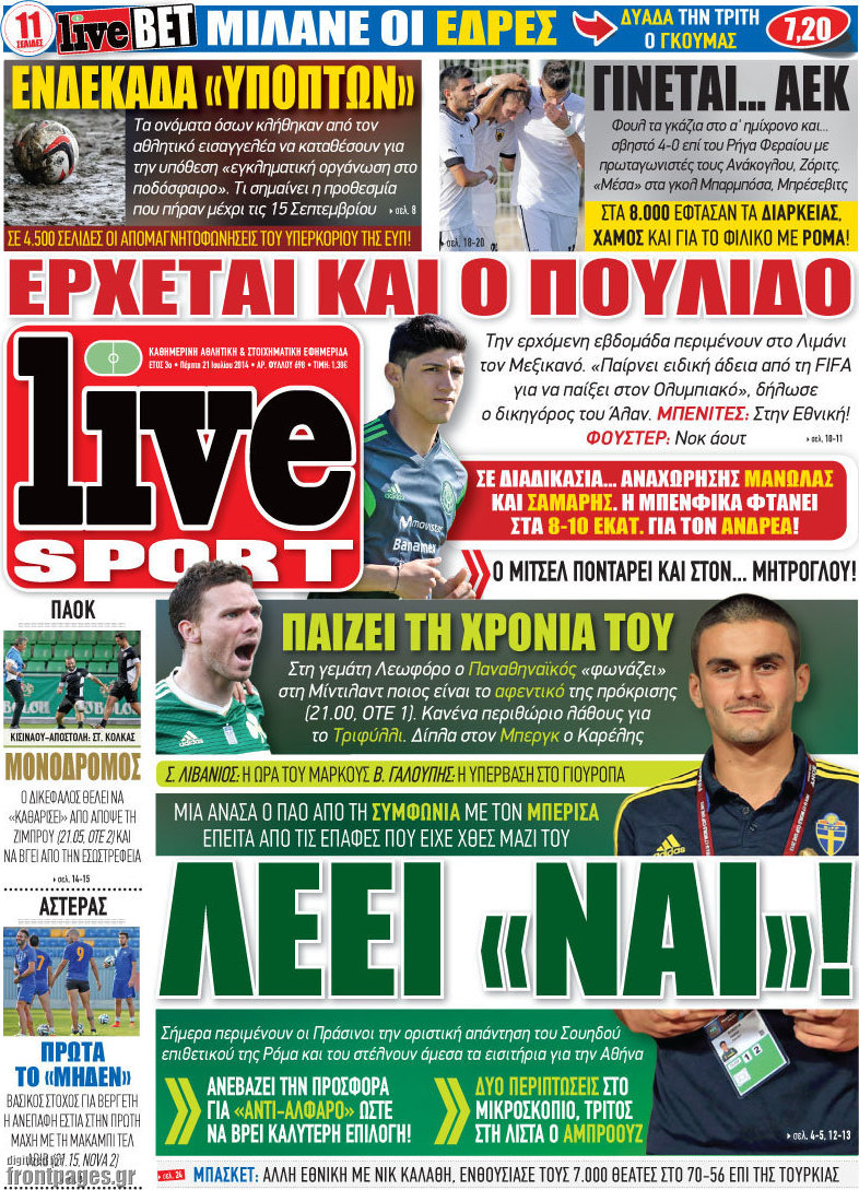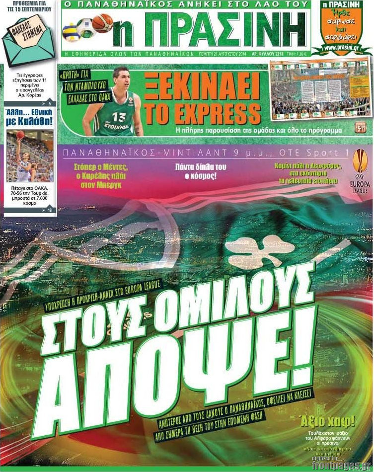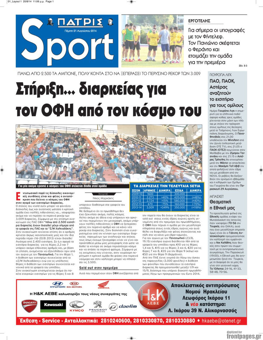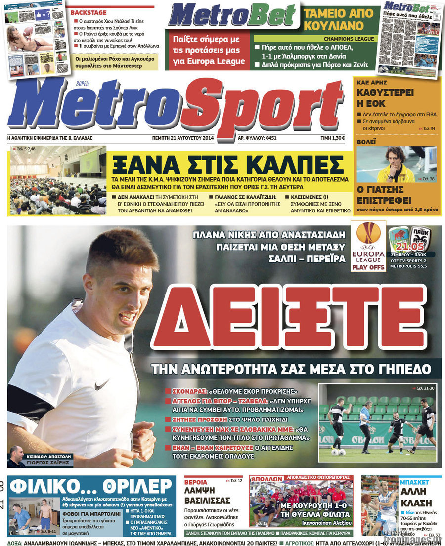 Οι αθλητικές εφημερίδες Enikos Newsroom 07:59, Πέμπτη 21 Αυγούστου 2014 Media Οι αθλητικές εφημερίδες Διαβάστε τα πρωτοσέλιδα των αθλητικών εφημερίδων: ΑΘΛΗΤΙΚΕΣ ΕΦΗΜΕΡΙΔΕΣ ΠΡΩΤΟΣΕΛΙΔΑ Μοιράσου το: σχολίασε κι εσύ (0 σχόλια) Ακολουθήστε το enikos.gr στο Google News και μάθετε πρώτοι όλες τις ειδήσεις Δείτε όλες τις τελευταίες ειδήσεις από την Ελλάδα και τον Κόσμο στο enikos.gr Ειδήσεις Ροή Ειδήσεων 51 λεπτά πριν Ευρωπαϊκή Ένωση: Χωρίς συμφωνία, για την μακροπρόθεσμη χρηματοδότηση της Ουκρανίας, ολοκληρώθηκε η Σύνοδος Κορυφής στις Βρυξέλλες 4 ώρες πριν ΟΠΕΚΕΠΕ: Προφυλακιστέος ο φερόμενος αρχηγός και ο λογιστής της εγκληματικής οργάνωσης 5 ώρες πριν Αυξάνουν την πίεση προς την κυβέρνηση οι αγρότες: Κλείνουν παρακαμπτήριους και ανοίγουν διόδια – Τι θα γίνει τις γιορτές 5 ώρες πριν Φοινικούντα: Το Σάββατο απολογείται ο 30χρονος γιος γνωστού επιχειρηματία της Πλάκας που παραδόθηκε – Όσα είπε στους αστυνομικούς και ο ρόλος του στο έγκλημα 4 ώρες πριν ΑΕΚ – Κραϊόβα 3-2: Επική ανατροπή και πρόκριση στους «16» του Conference League η Ένωση 5 ώρες πριν Αρχαιολόγοι ανακάλυψαν ρωμαϊκά τεχνουργήματα από μια πόλη που δεν υπήρξε ποτέ – Τα τρία εντυπωσιακά κτίρια και ο αμφορέας με τις… σαρδέλες 6 ώρες πριν Ύπνος: Η απλή βραδινή ρουτίνα για να προστατεύσετε τα μαλλιά σας από το κρύο κατά τη διάρκεια του χειμώνα 7 ώρες πριν Manifesting: Πώς να συναντήσετε τον σύντροφο της ζωής σας, ανάλογα με τον μήνα γέννησής σας 2 ημέρες πριν 20 χρόνια τα Χριστούγεννα ξεκινούν στα Public με μεγάλη ποικιλία σε δώρα! 3 λεπτά πριν Αιματηρή βομβιστική επίθεση στην Υεμένη: Τουλάχιστον τρεις νεκροί και 13 τραυματίες 6 λεπτά πριν Στη Φλόριντα σήμερα οι διαβουλεύσεις σχετικά με τα επόμενα στάδια για τη Λωρίδα της Γάζας 11 λεπτά πριν Σίσσυ Τουμάση: «Είμαι ασθενοφοβική πάρα πολύ και με πιάνει μια παράνοια μ’ αυτό» 35 λεπτά πριν Ντόναλντ Τραμπ: Δεν χρειάζομαι την έγκριση του Κογκρέσου για να διατάξω στρατιωτικά πλήγματα στη Βενεζουέλα 51 λεπτά πριν Ευρωπαϊκή Ένωση: Χωρίς συμφωνία, για την μακροπρόθεσμη χρηματοδότηση της Ουκρανίας, ολοκληρώθηκε η Σύνοδος Κορυφής στις Βρυξέλλες ENIKOS NETWORK Σε περίοδο αυξημένης δραστηριότητας η γρίπη στην Ελλάδα-Μέτρα προστασίας από τον ΕΟΔΥ Σκέφτεστε συνέχεια συζητήσεις που έχετε κάνει; Τι σημαίνει αυτό, σύμφωνα με ειδικό Στεγαστικό: Τι λέει η ΠΟΜΙΔΑ για τα νέα μέτρα που ανακοίνωσε ο Κυριάκος Μητσοτάκης Λαγκάρντ: Αισιόδοξη για την ανάπτυξη της Ευρωζώνης, αβέβαιη για τον πληθωρισμό Χαρτογραφώντας το «σημείο χωρίς επιστροφή»: Για πρώτη φορά αποκαλύπτεται με λεπτομέρεια το ακανθώδες όριο της ατμόσφαιρας τ... Η Google καταργεί τη λειτουργία «dark web report» – Πώς θα μπορούν οι χρήστες να διαγράφουν τα δεδομένα τους περισσότερα 02:50 , Παρασκευή 19 Δεκεμβρίου 2025 GNTM: «Κλείδωσαν» οι τέσσερις φιναλίστ – Μεγάλη ανατροπή στις τελευταίες αποχωρήσεις Για προτελευταία φορά εμφανίστηκαν στο πλατό του GNTM οι φιναλίστ του φετινού κύκλου, το βράδυ... 17:45 , Πέμπτη 18 Δεκεμβρίου 2025 ROUK ZOUK: Εορταστικό επεισόδιο με καλεσμένους τους πρωταγωνιστές του «Γιατί ρε πατέρα» Το Σάββατο 20 Δεκεμβρίου στις 21:00, η Ζέτα Μακρυπούλια υποδέχεται εκλεκτούς ηθοποιούς που όλο... 17:20 , Πέμπτη 18 Δεκεμβρίου 2025 Άγιος έρωτας: Η Χριστίνα εξομολογείται στον πατέρα Νικόλαο, απόψε στις 21:00 στον Alpha Η Νότα αποφασίζει να εκδικηθεί τον Πέτρο και τον Στέφανο, για χάρη του Λούη, όμως τα πράγματα ... 16:50 , Πέμπτη 18 Δεκεμβρίου 2025 Να μ’ αγαπάς: Ζωή και Φωτεινή συμφιλιώνοντ