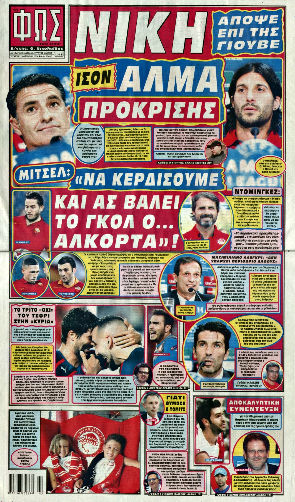 Οι αθλητικές εφημερίδες Enikos Newsroom 07:43, Τετάρτη 22 Οκτωβρίου 2014 Media Οι αθλητικές εφημερίδες Διαβάστε τα πρωτοσέλιδα των αθλητικών εφημερίδων. ΑΘΛΗΤΙΚΕΣ ΕΦΗΜΕΡΙΔΕΣ ΕΦΗΜΕΡΙΔΕΣ ΠΡΩΤΟΣΕΛΙΔΑ Μοιράσου το: σχολίασε κι εσύ (0 σχόλια) Ακολουθήστε το enikos.gr στο Google News και μάθετε πρώτοι όλες τις ειδήσεις Δείτε όλες τις τελευταίες ειδήσεις από την Ελλάδα και τον Κόσμο στο enikos.gr Ειδήσεις Ροή Ειδήσεων 46 λεπτά πριν Ευρωπαϊκή Ένωση: Συμφωνία για δάνειο 90 δισ. ευρώ στην Ουκρανία τη διετία 2026-2027 5 ώρες πριν ΟΠΕΚΕΠΕ: Προφυλακιστέος ο φερόμενος αρχηγός και ο λογιστής της εγκληματικής οργάνωσης 6 ώρες πριν Αυξάνουν την πίεση προς την κυβέρνηση οι αγρότες: Κλείνουν παρακαμπτήριους και ανοίγουν διόδια – Τι θα γίνει τις γιορτές 6 ώρες πριν Φοινικούντα: Το Σάββατο απολογείται ο 30χρονος γιος γνωστού επιχειρηματία της Πλάκας που παραδόθηκε – Όσα είπε στους αστυνομικούς και ο ρόλος του στο έγκλημα 5 ώρες πριν ΑΕΚ – Κραϊόβα 3-2: Επική ανατροπή και πρόκριση στους «16» του Conference League η Ένωση 6 ώρες πριν Αρχαιολόγοι ανακάλυψαν ρωμαϊκά τεχνουργήματα από μια πόλη που δεν υπήρξε ποτέ – Τα τρία εντυπωσιακά κτίρια και ο αμφορέας με τις… σαρδέλες 7 ώρες πριν Ύπνος: Η απλή βραδινή ρουτίνα για να προστατεύσετε τα μαλλιά σας από το κρύο κατά τη διάρκεια του χειμώνα 8 ώρες πριν Manifesting: Πώς να συναντήσετε τον σύντροφο της ζωής σας, ανάλογα με τον μήνα γέννησής σας 2 ημέρες πριν 20 χρόνια τα Χριστούγεννα ξεκινούν στα Public με μεγάλη ποικιλία σε δώρα! 10 λεπτά πριν Αυστραλία: Κήρυξε την Κυριακή (21/12) ημέρα εθνικού πένθους για τη φονική επίθεση στην παραλία Μπόνταϊ 20 λεπτά πριν Ρόδος: Δάσκαλος καράτε καταδικάστηκε για ασέλγεια σε ανήλικες αθλήτριες – Μαρτυρίες για αγγίγματα σε ευαίσθητα σημεία 34 λεπτά πριν Γουατεμάλα: Εξαρθρώθηκε κύκλωμα διακίνησης μεταναστών προς τις ΗΠΑ – Συνελήφθησαν 14 άτομα 39 λεπτά πριν Βουλγαρία: Χιλιάδες πολίτες στους δρόμους κατά της απερχόμενης κυβέρνησης και της διαφθοράς 46 λεπτά πριν Ευρωπαϊκή Ένωση: Συμφωνία για δάνειο 90 δισ. ευρώ στην Ουκρανία τη διετία 2026-2027 ENIKOS NETWORK Σε περίοδο αυξημένης δραστηριότητας η γρίπη στην Ελλάδα-Μέτρα προστασίας από τον ΕΟΔΥ Σκέφτεστε συνέχεια συζητήσεις που έχετε κάνει; Τι σημαίνει αυτό, σύμφωνα με ειδικό Στεγαστικό: Τι λέει η ΠΟΜΙΔΑ για τα νέα μέτρα που ανακοίνωσε ο Κυριάκος Μητσοτάκης Λαγκάρντ: Αισιόδοξη για την ανάπτυξη της Ευρωζώνης, αβέβαιη για τον πληθωρισμό Χαρτογραφώντας το «σημείο χωρίς επιστροφή»: Για πρώτη φορά αποκαλύπτεται με λεπτομέρεια το ακανθώδες όριο της ατμόσφαιρας τ... Η Google καταργεί τη λειτουργία «dark web report» – Πώς θα μπορούν οι χρήστες να διαγράφουν τα δεδομένα τους περισσότερα 02:50 , Παρασκευή 19 Δεκεμβρίου 2025 GNTM: «Κλείδωσαν» οι τέσσερις φιναλίστ – Μεγάλη ανατροπή στις τελευταίες αποχωρήσεις Για προτελευταία φορά εμφανίστηκαν στο πλατό του GNTM οι φιναλίστ του φετινού κύκλου, το βράδυ... 17:45 , Πέμπτη 18 Δεκεμβρίου 2025 ROUK ZOUK: Εορταστικό επεισόδιο με καλεσμένους τους πρωταγωνιστές του «Γιατί ρε πατέρα» Το Σάββατο 20 Δεκεμβρίου στις 21:00, η Ζέτα Μακρυπούλια υποδέχεται εκλεκτούς ηθοποιούς που όλο... 17:20 , Πέμπτη 18 Δεκεμβρίου 2025 Άγιος έρωτας: Η Χριστίνα εξομολογείται στον πατέρα Νικόλαο, απόψε στις 21:00 στον Alpha Η Νότα αποφασίζει να εκδικηθεί τον Πέτρο και τον Στέφανο, για χάρη του Λούη, όμως τα πράγματα ... 16:50 , Πέμπτη 18 Δεκεμβρίου 2025 Να μ’ αγαπάς: Ζωή και Φωτεινή συμφιλιώνονται ως μάνα με κόρη, απόψε στις 20:00 Η ταυτότητα του Άγγελ