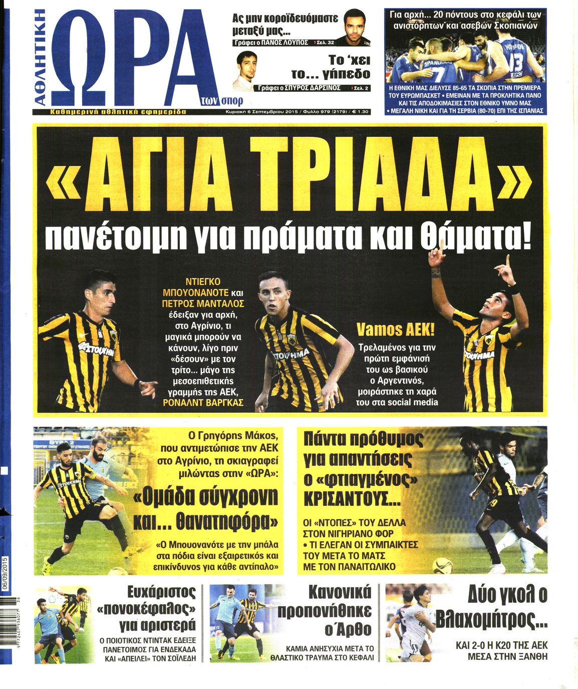 Οι αθλητικές εφημερίδες 6/9/2015 Enikos Newsroom 07:59, Κυριακή 06 Σεπτεμβρίου 2015 Media Διαβάστε τα πρωτοσέλιδα των αθλητικών εφημερίδων ΑΘΛΗΤΙΚΕΣ ΕΦΗΜΕΡΙΔΕΣ ΠΡΩΤΟΣΕΛΙΔΑ Μοιράσου το: σχολίασε κι εσύ (0 σχόλια) Ακολουθήστε το enikos.gr στο Google News και μάθετε πρώτοι όλες τις ειδήσεις Δείτε όλες τις τελευταίες ειδήσεις από την Ελλάδα και τον Κόσμο στο enikos.gr Ειδήσεις Ροή Ειδήσεων 4 ώρες πριν Μεσόγειος: Η διαδρομή του ρωσικού τάνκερ «Qendil» και η στοχευμένη επίθεση της Ουκρανίας με drone – Ο Πούτιν προειδοποίησε για αντίποινα 51 λεπτά πριν Αγρότες: Έκλεισαν για μία ώρα την παρακαμπτήρια της Ιόνιας Οδού στη θέση Χαλίκι 2 ώρες πριν Εμπλοκή και αερομαχίες με οπλισμένα τουρκικά F-16 στο Αιγαίο 2 ώρες πριν Πούτιν: «Ναι, είμαι ερωτευμένος» – Βίντεο από τη σπάνια προσωπική παραδοχή του 55 λεπτά πριν Ανδρέας Λυκουρέντζος: Υπέβαλε την παραίτησή του ο πρόεδρος του ΕΛΓΑ, αλλά δεν έγινε δεκτή – Όλο το παρασκήνιο 1 ώρα πριν Αριθμολογία: Οι άνθρωποι που έχουν γεννηθεί αυτές τις 4 ημερομηνίες, συχνά παρεξηγούνται – «Η καλοσύνη τους κρύβει τεράστια δύναμη» 3 ώρες πριν Μήπως έχετε χάσει τον εαυτό σας στη σχέση σας; 7 «αθόρυβες» υποχωρήσεις που μάλλον κάνατε, χωρίς να το συνειδητοποιήσετε 2 ώρες πριν Ξεχάστε το καθάρισμα το Σαββατοκύριακο: Ο «κανόνας των 20 λεπτών» που θα σας λύσει τα χέρια 5 ώρες πριν Κουίζ για την παλιά Αθήνα: Αναγνωρίζετε την περιοχή; Έχετε περάσει 100% από εκεί 6 λεπτά πριν Ύπνος: Μια κρυφή κατάσταση του εγκεφάλου πριν από τον ύπνο μπορεί να είναι το “κλειδί” για υψηλή ευφυΐα και δημιουργικότητα 11 λεπτά πριν ΕΕ: «Κάποια στιγμή θα χρησιμοποιήσουμε τα ρωσικά περιουσιακά στοιχεία» δήλωσε ο πρόεδρος του ΕΛΚ 15 λεπτά πριν Conference League: Καλύτερη επίθεση η ΑΕΚ στη διοργάνωση και 2η σε προσπάθειες στην εστία – Ξεχωρίζουν Πινέδα, Ελίασον και Ρότα 16 λεπτά πριν Έγκυος η Άννα Κορακάκη: «Η οικογένειά μας μεγαλώνει…» – Η αποκάλυψη για το φύλο του μωρού 24 λεπτά πριν Τραγωδία στο Βελεστίνο: Πέθανε ο αντιδήμαρχος Γιάννης Παπαϊωάννου ENIKOS NETWORK Το ΕΚΑΒ τιμήθηκε από την Ακαδημία Αθηνών για τα 40 χρόνια προσφοράς του Έχετε πραγματικά μεγάλη καρδιά; 10 χαρακτηριστικά όσων έχουν καλοσύνη Όμιλος ΔΕΗ: Νέα ορόσημα και ενισχυμένη διαφάνεια στην ετήσια Έκθεση Βιώσιμης Ανάπτυξης Έρχονται νέες προσλήψεις σε Δήμο – Όλες οι λεπτομέρειες Χαρτογραφώντας το «σημείο χωρίς επιστροφή»: Για πρώτη φορά αποκαλύπτεται με λεπτομέρεια το ακανθώδες όριο της ατμόσφαιρας τ... Η Google καταργεί τη λειτουργία «dark web report» – Πώς θα μπορούν οι χρήστες να διαγράφουν τα δεδομένα τους περισσότερα 20:37 , Παρασκευή 19 Δεκεμβρίου 2025 Don’t Forget The Lyrics: Η Έλλη Κοκκίνου υποδέχεται 4 παίκτες που θα κάνουν τα πάντα για να μη χάσουν ούτε… μισή λέξη από τους στίχους Το «Don’t Forget The Lyrics» επιστρέφει απόψε, Παρασκευή 19 Δεκεμβρίου, στις 21:00 με νέο επει... 19:31 , Παρασκευή 19 Δεκεμβρίου 2025 GNTM: Απόψε ο μεγάλος τελικός για τους 4 φιναλίστ Έπειτα από μήνες γεμάτους μόδα, δημιουργία και έντονες αναμετρήσεις, το GNTM 2025 κορυφώνεται,... 18:11 , Παρασκευή 19 Δεκεμβρίου 2025 Το σόι σου: Ο Άρης έρχεται στην Ελλάδα για τις γιορτές των Χριστουγέννων – Τι θα δούμε στο αποψινό εορταστικό επεισόδιο Ένα απολαυστικό, εορταστικό επεισόδιο της σειράς “Το σόι σου”, γεμάτο ευτράπελα αλ... 15:15 , Παρασκευή 19 Δεκεμβρίου 2025 Την Κυριακή με τη Realnews: Ό,τι και αν αγοράσεις, σκανάρεις και κερδίζεις! Την Κυριακή με τη Realnews: Ό,τι και αν αγοράσεις, σκανάρεις και κερδίζεις! Με το PADU app, το... ΤΕΛΕΥΤΑΙΕΣ ΕΙΔΗΣΕ