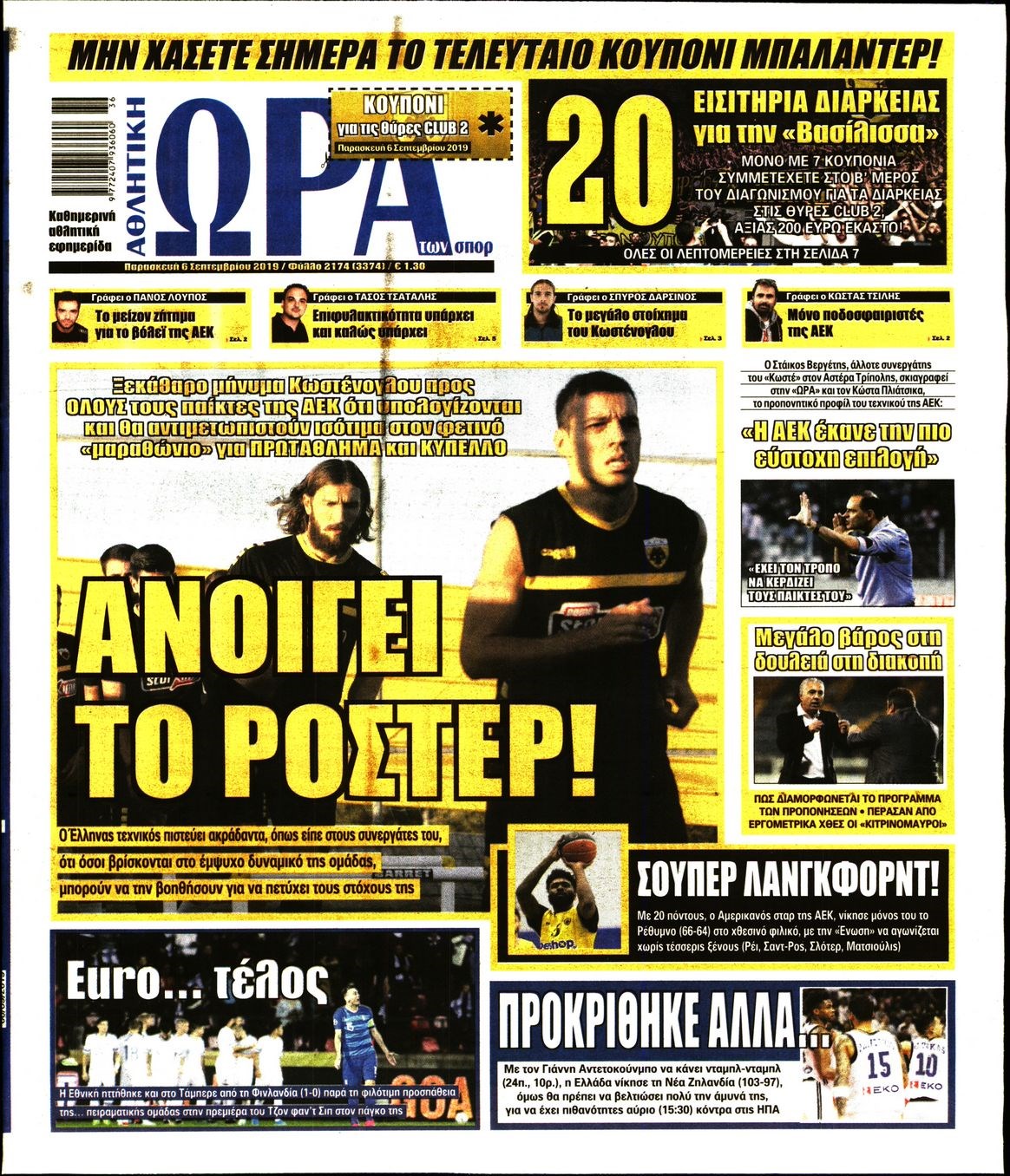 Οι αθλητικές εφημερίδες 6/9/2019 Κώστας Τεό 06:41, Παρασκευή 06 Σεπτεμβρίου 2019 Media Διαβάστε τα πρωτοσέλιδα των αθλητικών εφημερίδων: ΑΘΛΗΤΙΚΕΣ ΕΦΗΜΕΡΙΔΕΣ ΠΡΩΤΟΣΕΛΙΔΑ Μοιράσου το: σχολίασε κι εσύ (0 σχόλια) Ακολουθήστε το enikos.gr στο Google News και μάθετε πρώτοι όλες τις ειδήσεις Δείτε όλες τις τελευταίες ειδήσεις από την Ελλάδα και τον Κόσμο στο enikos.gr Ειδήσεις Ροή Ειδήσεων 4 ώρες πριν Μεσόγειος: Η διαδρομή του ρωσικού τάνκερ «Qendil» και η στοχευμένη επίθεση της Ουκρανίας με drone – Ο Πούτιν προειδοποίησε για αντίποινα 52 λεπτά πριν Αγρότες: Έκλεισαν για μία ώρα την παρακαμπτήρια της Ιόνιας Οδού στη θέση Χαλίκι 2 ώρες πριν Εμπλοκή και αερομαχίες με οπλισμένα τουρκικά F-16 στο Αιγαίο 2 ώρες πριν Πούτιν: «Ναι, είμαι ερωτευμένος» – Βίντεο από τη σπάνια προσωπική παραδοχή του 56 λεπτά πριν Ανδρέας Λυκουρέντζος: Υπέβαλε την παραίτησή του ο πρόεδρος του ΕΛΓΑ, αλλά δεν έγινε δεκτή – Όλο το παρασκήνιο 1 ώρα πριν Αριθμολογία: Οι άνθρωποι που έχουν γεννηθεί αυτές τις 4 ημερομηνίες, συχνά παρεξηγούνται – «Η καλοσύνη τους κρύβει τεράστια δύναμη» 3 ώρες πριν Μήπως έχετε χάσει τον εαυτό σας στη σχέση σας; 7 «αθόρυβες» υποχωρήσεις που μάλλον κάνατε, χωρίς να το συνειδητοποιήσετε 2 ώρες πριν Ξεχάστε το καθάρισμα το Σαββατοκύριακο: Ο «κανόνας των 20 λεπτών» που θα σας λύσει τα χέρια 5 ώρες πριν Κουίζ για την παλιά Αθήνα: Αναγνωρίζετε την περιοχή; Έχετε περάσει 100% από εκεί 7 λεπτά πριν Ύπνος: Μια κρυφή κατάσταση του εγκεφάλου πριν από τον ύπνο μπορεί να είναι το “κλειδί” για υψηλή ευφυΐα και δημιουργικότητα 12 λεπτά πριν ΕΕ: «Κάποια στιγμή θα χρησιμοποιήσουμε τα ρωσικά περιουσιακά στοιχεία» δήλωσε ο πρόεδρος του ΕΛΚ 16 λεπτά πριν Conference League: Καλύτερη επίθεση η ΑΕΚ στη διοργάνωση και 2η σε προσπάθειες στην εστία – Ξεχωρίζουν Πινέδα, Ελίασον και Ρότα 17 λεπτά πριν Έγκυος η Άννα Κορακάκη: «Η οικογένειά μας μεγαλώνει…» – Η αποκάλυψη για το φύλο του μωρού 25 λεπτά πριν Τραγωδία στο Βελεστίνο: Πέθανε ο αντιδήμαρχος Γιάννης Παπαϊωάννου ENIKOS NETWORK Το ΕΚΑΒ τιμήθηκε από την Ακαδημία Αθηνών για τα 40 χρόνια προσφοράς του Έχετε πραγματικά μεγάλη καρδιά; 10 χαρακτηριστικά όσων έχουν καλοσύνη Όμιλος ΔΕΗ: Νέα ορόσημα και ενισχυμένη διαφάνεια στην ετήσια Έκθεση Βιώσιμης Ανάπτυξης Έρχονται νέες προσλήψεις σε Δήμο – Όλες οι λεπτομέρειες Χαρτογραφώντας το «σημείο χωρίς επιστροφή»: Για πρώτη φορά αποκαλύπτεται με λεπτομέρεια το ακανθώδες όριο της ατμόσφαιρας τ... Η Google καταργεί τη λειτουργία «dark web report» – Πώς θα μπορούν οι χρήστες να διαγράφουν τα δεδομένα τους περισσότερα 20:37 , Παρασκευή 19 Δεκεμβρίου 2025 Don’t Forget The Lyrics: Η Έλλη Κοκκίνου υποδέχεται 4 παίκτες που θα κάνουν τα πάντα για να μη χάσουν ούτε… μισή λέξη από τους στίχους Το «Don’t Forget The Lyrics» επιστρέφει απόψε, Παρασκευή 19 Δεκεμβρίου, στις 21:00 με νέο επει... 19:31 , Παρασκευή 19 Δεκεμβρίου 2025 GNTM: Απόψε ο μεγάλος τελικός για τους 4 φιναλίστ Έπειτα από μήνες γεμάτους μόδα, δημιουργία και έντονες αναμετρήσεις, το GNTM 2025 κορυφώνεται,... 18:11 , Παρασκευή 19 Δεκεμβρίου 2025 Το σόι σου: Ο Άρης έρχεται στην Ελλάδα για τις γιορτές των Χριστουγέννων – Τι θα δούμε στο αποψινό εορταστικό επεισόδιο Ένα απολαυστικό, εορταστικό επεισόδιο της σειράς “Το σόι σου”, γεμάτο ευτράπελα αλ... 15:15 , Παρασκευή 19 Δεκεμβρίου 2025 Την Κυριακή με τη Realnews: Ό,τι και αν αγοράσεις, σκανάρεις και κερδίζεις! Την Κυριακή με τη Realnews: Ό,τι και αν αγοράσεις, σκανάρεις και κερδίζεις! Με το PADU app, το... ΤΕΛΕΥΤΑΙΕΣ ΕΙ