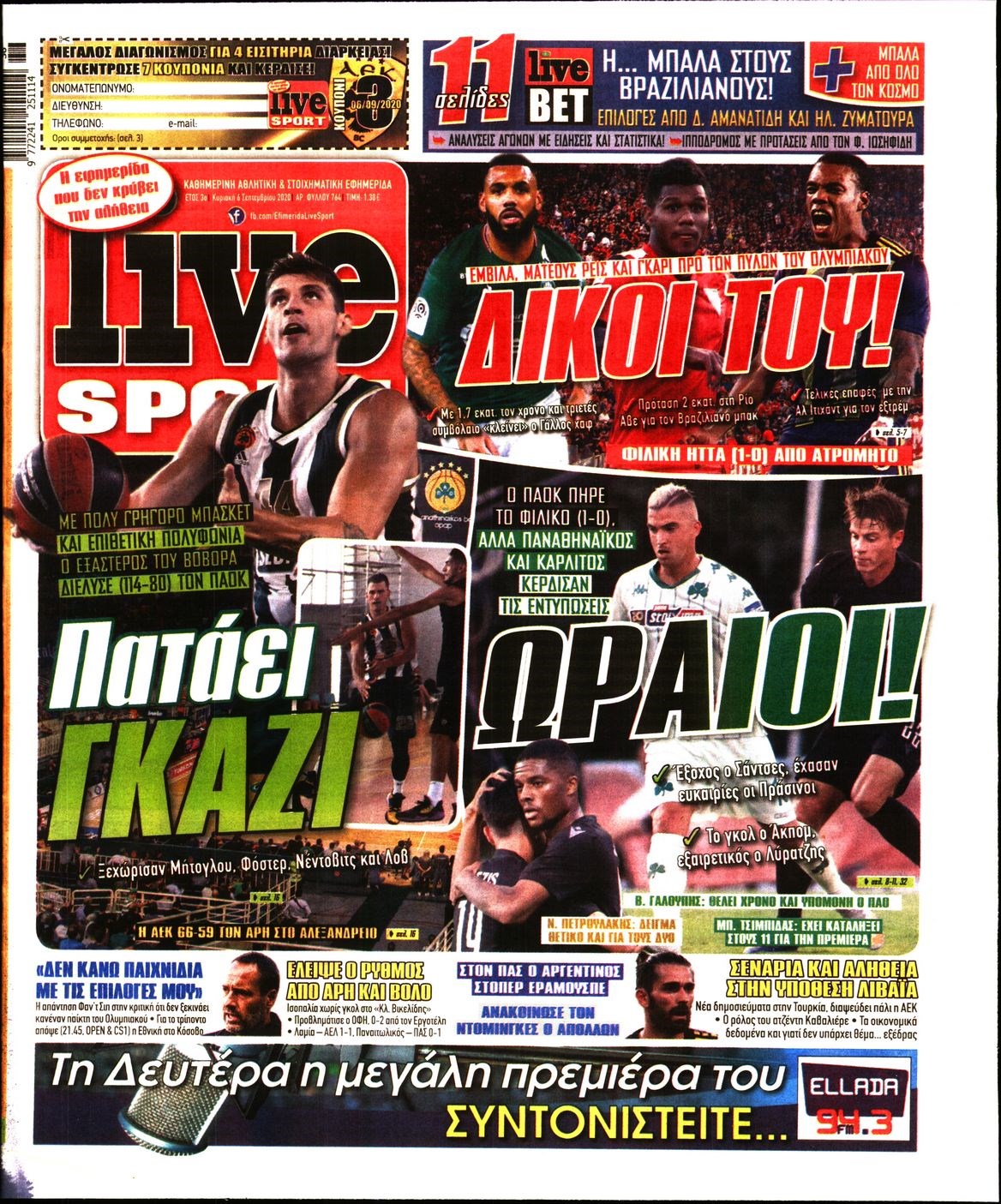 Οι αθλητικές εφημερίδες 6/9/2020 Διονύσης Νίκκας 07:50, Κυριακή 06 Σεπτεμβρίου 2020 Media Διαβάστε τα πρωτοσέλιδα των αθλητικών εφημερίδων… ΑΘΛΗΤΙΚΕΣ ΕΦΗΜΕΡΙΔΕΣ Μοιράσου το: σχολίασε κι εσύ (0 σχόλια) Ακολουθήστε το enikos.gr στο Google News και μάθετε πρώτοι όλες τις ειδήσεις Δείτε όλες τις τελευταίες ειδήσεις από την Ελλάδα και τον Κόσμο στο enikos.gr Ειδήσεις Ροή Ειδήσεων 46 λεπτά πριν Χριστούγεννα στα μπλόκα: Επιμένουν στις κινητοποιήσεις τους οι αγρότες – Ανοίγουν τα διόδια το Σαββατοκύριακο 1 ώρα πριν Ουκρανία: Η άνευ προηγουμένου επίθεση σε ρωσικό τάνκερ στη Μεσόγειο και το μήνυμα προς στον Πούτιν – Το «μακρύ χέρι» του Κιέβου 23 λεπτά πριν Πούτιν: Τα μηνύματα σε Ευρώπη και ΝΑΤΟ από το μαραθώνιο «σόου» του – Η απαίτηση για «σεβασμό» και η ειρήνη «με τους όρους» της Μόσχας 1 ώρα πριν Τραμπ: Δεν αποκλείει την πιθανότητα ενός πολέμου στη Βενεζουέλα – «Ο Μαδούρο ξέρει καλύτερα από τον καθένα τι ακριβώς θέλω» 2 ώρες πριν Συνεχίζει να προκαλεί ο Μίτσκοσκι: «Για μένα το όνομα Μακεδονία είναι ιερό» 4 ώρες πριν Πούτιν: «Ναι, είμαι ερωτευμένος» – Βίντεο από τη σπάνια προσωπική παραδοχή του 2 ώρες πριν Αριθμολογία: Οι άνθρωποι που έχουν γεννηθεί αυτές τις 4 ημερομηνίες, συχνά παρεξηγούνται – «Η καλοσύνη τους κρύβει τεράστια δύναμη» 1 ώρα πριν Ύπνος: Μια κρυφή κατάσταση του εγκεφάλου πριν από τον ύπνο μπορεί να είναι το “κλειδί” για υψηλή ευφυΐα και δημιουργικότητα 3 ώρες πριν Ξεχάστε το καθάρισμα το Σαββατοκύριακο: Ο «κανόνας των 20 λεπτών» που θα σας λύσει τα χέρια 24 λεπτά πριν Ανακαλύφθηκαν αρχαία χρυσά νομίσματα 2.200 ετών που απεικονίζουν τον θεό Απόλλωνα – Η άγνωστη σύνδεση με τον Φίλιππο Β΄ της Μακεδονίας 8 λεπτά πριν Ολυμπιακός – Βιλερμπάν 107-84: Επιστροφή στις νίκες με… προπόνηση 14 λεπτά πριν Νέος Κόσμος: Συνελήφθη 41χρονος με ένταλμα από την Τουρκία για εμπόριο ναρκωτικών και ληστεία 23 λεπτά πριν Πούτιν: Τα μηνύματα σε Ευρώπη και ΝΑΤΟ από το μαραθώνιο «σόου» του – Η απαίτηση για «σεβασμό» και η ειρήνη «με τους όρους» της Μόσχας 24 λεπτά πριν Ανακαλύφθηκαν αρχαία χρυσά νομίσματα 2.200 ετών που απεικονίζουν τον θεό Απόλλωνα – Η άγνωστη σύνδεση με τον Φίλιππο Β΄ της Μακεδονίας 29 λεπτά πριν Νίκος Ξυλούρης: Συγκινεί η χήρα του σπουδαίου καλλιτέχνη – «Ευχαριστώ όλο τον κόσμο που τον κρατάει ζωντανό 45 χρόνια» ENIKOS NETWORK Το ΕΚΑΒ τιμήθηκε από την Ακαδημία Αθηνών για τα 40 χρόνια προσφοράς του Έχετε πραγματικά μεγάλη καρδιά; 10 χαρακτηριστικά όσων έχουν καλοσύνη Αναστολή μέτρων αναγκαστικής εκτέλεσης για κτηνοτρόφους που πλήττονται από την ευλογιά των αιγοπροβάτων Πλήρης επάρκεια προϊόντων στις λαϊκές της Αττικής, παρά τις αγροτικές κινητοποιήσεις – Τι απαντούν οι πωλητές Χαρτογραφώντας το «σημείο χωρίς επιστροφή»: Για πρώτη φορά αποκαλύπτεται με λεπτομέρεια το ακανθώδες όριο της ατμόσφαιρας τ... Η Google καταργεί τη λειτουργία «dark web report» – Πώς θα μπορούν οι χρήστες να διαγράφουν τα δεδομένα τους περισσότερα 22:42 , Παρασκευή 19 Δεκεμβρίου 2025 Γιώργος Γιαννόπουλος για “Το σόι σου”: “Είναι ευτυχία και ευλογία αυτή η σειρά” «Είναι ευτυχία και ευλογία η συγκυρία αυτής της σειράς», θα πει ο Γιώργος Γιαννόπουλος -ο αγαπ... 20:37 , Παρασκευή 19 Δεκεμβρίου 2025 Don’t Forget The Lyrics: Η Έλλη Κοκκίνου υποδέχεται 4 παίκτες που θα κάνουν τα πάντα για να μη χάσουν ούτε… μισή λέξη από τους στίχους Το «Don’t Forget The Lyrics» επιστρέφει απόψε, Παρασκευή 19 Δεκεμβρίου, στις 21:00 με νέο επει... 19:31 , Παρασκευή 19 Δεκεμβρί
