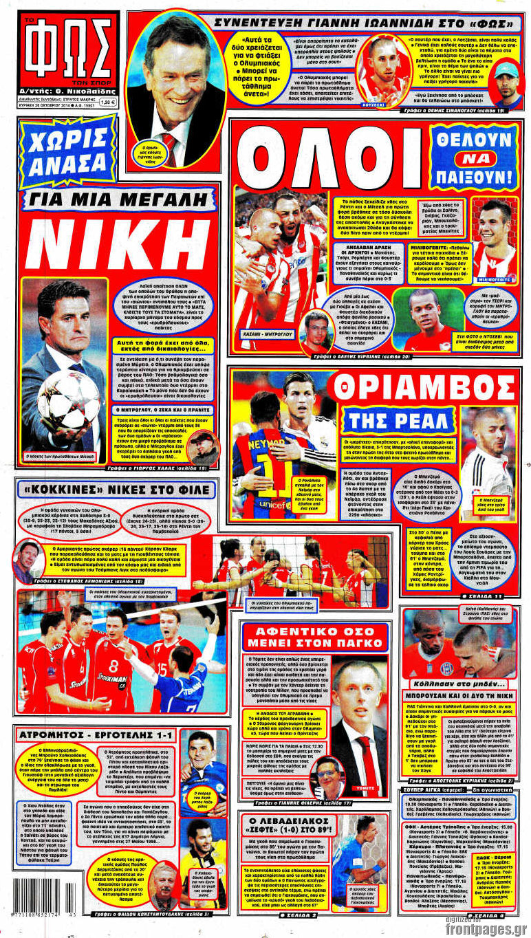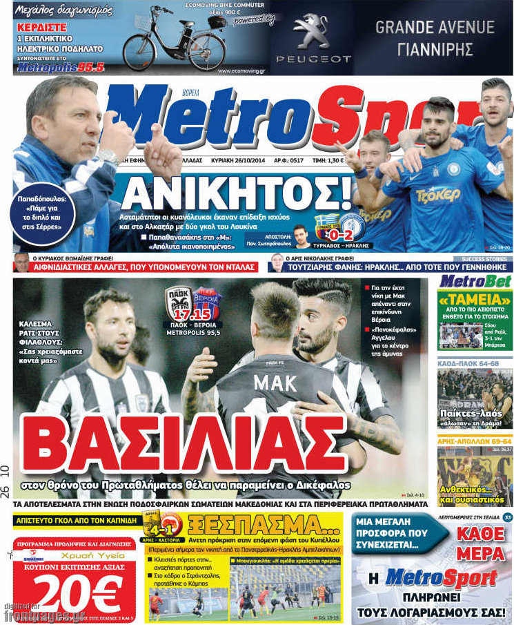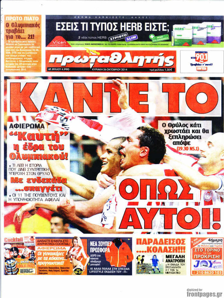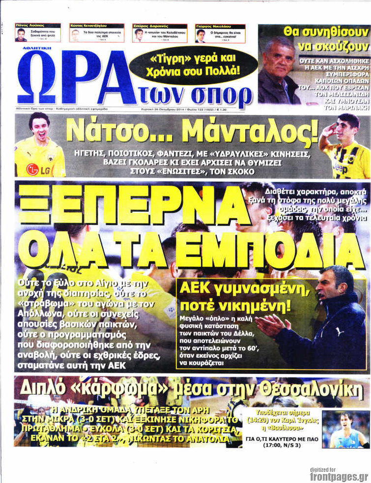 Οι αθλητικές εφημερίδες Enikos Newsroom 07:51, Κυριακή 26 Οκτωβρίου 2014 Media Οι αθλητικές εφημερίδες Διαβάστε τα πρωτοσέλιδα των αθλητικών εφημερίδων: ΑΘΛΗΤΙΚΕΣ ΕΦΗΜΕΡΙΔΕΣ ΠΡΩΤΟΣΕΛΙΔΑ Μοιράσου το: σχολίασε κι εσύ (0 σχόλια) Ακολουθήστε το enikos.gr στο Google News και μάθετε πρώτοι όλες τις ειδήσεις Δείτε όλες τις τελευταίες ειδήσεις από την Ελλάδα και τον Κόσμο στο enikos.gr Ειδήσεις Ροή Ειδήσεων 10 λεπτά πριν Ευρωπαϊκή Ένωση: Συμφωνία για δάνειο 90 δισ. ευρώ στην Ουκρανία τη διετία 2026-2027 5 ώρες πριν ΟΠΕΚΕΠΕ: Προφυλακιστέος ο φερόμενος αρχηγός και ο λογιστής της εγκληματικής οργάνωσης 6 ώρες πριν Αυξάνουν την πίεση προς την κυβέρνηση οι αγρότες: Κλείνουν παρακαμπτήριους και ανοίγουν διόδια – Τι θα γίνει τις γιορτές 6 ώρες πριν Φοινικούντα: Το Σάββατο απολογείται ο 30χρονος γιος γνωστού επιχειρηματία της Πλάκας που παραδόθηκε – Όσα είπε στους αστυνομικούς και ο ρόλος του στο έγκλημα 4 ώρες πριν ΑΕΚ – Κραϊόβα 3-2: Επική ανατροπή και πρόκριση στους «16» του Conference League η Ένωση 5 ώρες πριν Αρχαιολόγοι ανακάλυψαν ρωμαϊκά τεχνουργήματα από μια πόλη που δεν υπήρξε ποτέ – Τα τρία εντυπωσιακά κτίρια και ο αμφορέας με τις… σαρδέλες 6 ώρες πριν Ύπνος: Η απλή βραδινή ρουτίνα για να προστατεύσετε τα μαλλιά σας από το κρύο κατά τη διάρκεια του χειμώνα 7 ώρες πριν Manifesting: Πώς να συναντήσετε τον σύντροφο της ζωής σας, ανάλογα με τον μήνα γέννησής σας 2 ημέρες πριν 20 χρόνια τα Χριστούγεννα ξεκινούν στα Public με μεγάλη ποικιλία σε δώρα! 2 λεπτά πριν Βουλγαρία: Χιλιάδες πολίτες στους δρόμους κατά της απερχόμενης κυβέρνησης και της διαφθοράς 10 λεπτά πριν Ευρωπαϊκή Ένωση: Συμφωνία για δάνειο 90 δισ. ευρώ στην Ουκρανία τη διετία 2026-2027 33 λεπτά πριν Αιματηρή βομβιστική επίθεση στην Υεμένη: Τουλάχιστον τρεις νεκροί και 13 τραυματίες 36 λεπτά πριν Στη Φλόριντα σήμερα οι διαβουλεύσεις σχετικά με τα επόμενα στάδια για τη Λωρίδα της Γάζας 40 λεπτά πριν Σίσσυ Τουμάση: «Είμαι ασθενοφοβική πάρα πολύ και με πιάνει μια παράνοια μ’ αυτό» ENIKOS NETWORK Σε περίοδο αυξημένης δραστηριότητας η γρίπη στην Ελλάδα-Μέτρα προστασίας από τον ΕΟΔΥ Σκέφτεστε συνέχεια συζητήσεις που έχετε κάνει; Τι σημαίνει αυτό, σύμφωνα με ειδικό Στεγαστικό: Τι λέει η ΠΟΜΙΔΑ για τα νέα μέτρα που ανακοίνωσε ο Κυριάκος Μητσοτάκης Λαγκάρντ: Αισιόδοξη για την ανάπτυξη της Ευρωζώνης, αβέβαιη για τον πληθωρισμό Χαρτογραφώντας το «σημείο χωρίς επιστροφή»: Για πρώτη φορά αποκαλύπτεται με λεπτομέρεια το ακανθώδες όριο της ατμόσφαιρας τ... Η Google καταργεί τη λειτουργία «dark web report» – Πώς θα μπορούν οι χρήστες να διαγράφουν τα δεδομένα τους περισσότερα 02:50 , Παρασκευή 19 Δεκεμβρίου 2025 GNTM: «Κλείδωσαν» οι τέσσερις φιναλίστ – Μεγάλη ανατροπή στις τελευταίες αποχωρήσεις Για προτελευταία φορά εμφανίστηκαν στο πλατό του GNTM οι φιναλίστ του φετινού κύκλου, το βράδυ... 17:45 , Πέμπτη 18 Δεκεμβρίου 2025 ROUK ZOUK: Εορταστικό επεισόδιο με καλεσμένους τους πρωταγωνιστές του «Γιατί ρε πατέρα» Το Σάββατο 20 Δεκεμβρίου στις 21:00, η Ζέτα Μακρυπούλια υποδέχεται εκλεκτούς ηθοποιούς που όλο... 17:20 , Πέμπτη 18 Δεκεμβρίου 2025 Άγιος έρωτας: Η Χριστίνα εξομολογείται στον πατέρα Νικόλαο, απόψε στις 21:00 στον Alpha Η Νότα αποφασίζει να εκδικηθεί τον Πέτρο και τον Στέφανο, για χάρη του Λούη, όμως τα πράγματα ... 16:50 , Πέμπτη 18 Δεκεμβρίου 2025 Να μ’ αγαπάς: Ζωή και Φωτεινή συμφιλιώνονται ως μάνα με κόρη, απόψε στις 20:00 Η ταυτότητα του Άγγελου αποκαλύπτεται στο νέο επεισόδιο της σειράς “Να μ’ αγαπάς... ΤΕΛΕΥ
