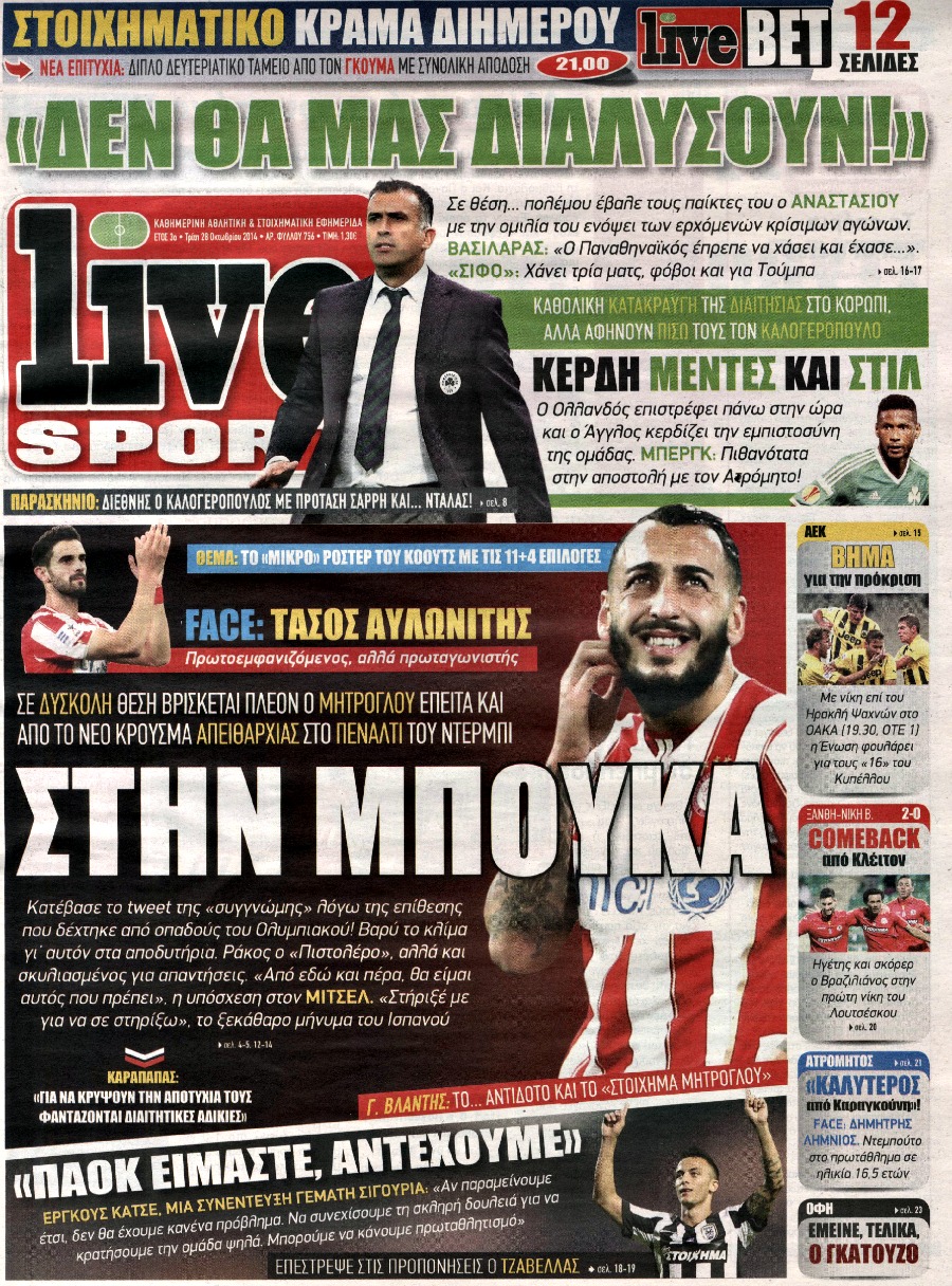 Οι αθλητικές εφημερίδες Enikos Newsroom 07:47, Τρίτη 28 Οκτωβρίου 2014 Media Οι αθλητικές εφημερίδες Διαβάστε τα πρωτοσέλιδα των αθλητικών εφημερίδων: ΑΘΛΗΤΙΚΕΣ ΕΦΗΜΕΡΙΔΕΣ ΕΦΗΜΕΡΙΔΕΣ ΠΡΩΤΟΣΕΛΙΔΑ Μοιράσου το: σχολίασε κι εσύ (0 σχόλια) Ακολουθήστε το enikos.gr στο Google News και μάθετε πρώτοι όλες τις ειδήσεις Δείτε όλες τις τελευταίες ειδήσεις από την Ελλάδα και τον Κόσμο στο enikos.gr Ειδήσεις Ροή Ειδήσεων 2 ώρες πριν Πούτιν: «Ανοησίες» και «υστερίες» οι ισχυρισμοί της Ευρώπης για πιθανή σύγκρουση με τη Ρωσία – «Κάνουν πλύση εγκεφάλου» 6 ώρες πριν Έρευνα MRB: Η πρόθεση ψήφου και τα σημαντικότερα προβλήματα – Οι «λέξεις» που εκφράζουν τους πολίτες 3 ώρες πριν Αμοργός: «Θα προσπαθήσω να το κάνω κάθε μέρα» – Ποιος είναι ο αγρότης που έστησε μόνος του το πρώτο μπλόκο στο νησί 49 λεπτά πριν Τραγωδία στην Αλεξανδρούπολη: Παιδάκι 3 ετών μεταφέρθηκε νεκρό από τη μητέρα του στο νοσοκομείο 1 ώρα πριν Συνάντηση Μητσοτάκη με την Κ.Ο. της ΝΔ: Οι αφίξεις των βουλευτών, τα γλυκά και τα «πηγαδάκια» 6 ώρες πριν Τα 4 ζώδια που ξαναβρίσκουν τον εαυτό τους – «Μπαίνετε επιτέλους στην ουσία των πραγμάτων» 7 ώρες πριν 20 χρόνια τα Χριστούγεννα ξεκινούν στα Public με μεγάλη ποικιλία σε δώρα! 5 ώρες πριν «Δεν είχα κλάψει από τότε που διαγνώστηκα με καρκίνο, ώσπου ένα τηλεφώνημα με έκανε να λυγίσω» – Η συγκλονιστική εξομολόγηση ενός άνδρα 4 ώρες πριν Τα 7 σπάνια χαρακτηριστικά που κάνουν κάποιους ανθρώπους ακαταμάχητους 3 λεπτά πριν Νέο επεισόδιο στην Εξεταστική ανάμεσα σε Κωνσταντοπούλου και Συρεγγέλα – Διακόπηκε προσωρινά η συνεδρίαση 10 λεπτά πριν Εξαφάνιση 33χρονου γιατρού στην Κρήτη: Για απάτη κατηγορείται ο ιδιωτικός ερευνητής που συνελήφθη 16 λεπτά πριν Εξεταστική για ΟΠΕΚΕΠΕ-Μυλωνάκης: Διαχρονικές, διακομματικές οι παθογένειες – Τι είπε για Μπουκώρο και Βάρρα 21 λεπτά πριν Παναθηναϊκός: Θέλει τον Κέπα της Άρσεναλ δανεικό για 6 μήνες 27 λεπτά πριν Το Λαϊκό Λαχείο στον ρυθμό των Χριστουγέννων: Μοιράζει μέχρι και 1.000.000 ευρώ στην ειδική κλήρωση της Παρασκευής 19 Δεκεμβρίου ENIKOS NETWORK 5 πράγματα που αποφεύγει γαστρεντερολόγος για να μειώσει τον κίνδυνο καρκίνου του εντέρου Ανησυχητική αύξηση της υπέρτασης στα παιδιά – Πώς θα τα προστατέψουμε; Συντάξεις Ιανουαρίου 2026: Σε ποιους θα πιστωθούν την Πέμπτη τα χρήματα και τι αυξήσεις θα δοθούν – Δείτε αναλυτικά παραδεί... ΕΛΕΤΑΕΝ: Πόσα χρήματα θα δοθούν σε δήμους και νοικοκυριά από τις ΑΠΕ Σύγχρονος Νοστράδαμος: Προειδοποιεί για «μεγάλο γεγονός» τους επόμενους μήνες που θα συγκλονίσει τη Βρετανία και τον κόσμο Τεστ παρατηρητικότητας: Μπορείτε να βρείτε τις 3 διαφορές στις εικόνες με έναν πιγκουίνο σε 14 δευτερόλεπτα περισσότερα 12:35 , Τετάρτη 17 Δεκεμβρίου 2025 Μίρκα Παπακωνσταντίνου: «Δεν ήμουν αισιόδοξη για τα νούμερα – Είμαι ρεαλίστρια» Στα γυρίσματα του εορταστικού επεισοδίου της αγαπημένης σειράς “Το Σόι Σου”, βρέθηκε η κάμερα ... 12:12 , Τετάρτη 17 Δεκεμβρίου 2025 Ακούστε την εκπομπή του Νίκου Χατζηνικολάου 17/12/2025 Ακούστε την εκπομπή του Νίκου Χατζηνικολάου στον ραδιοφωνικό σταθμό RealFm 97,8, την Τετάρτη 1... 11:35 , Τετάρτη 17 Δεκεμβρίου 2025 Home Alone: Το σπίτι της ταινίας θα ανακαινιστεί – Επιστροφή στην αισθητική της δεκαετίας του ’90 Οι νέοι ιδιοκτήτες του πραγματικού σπιτιού που παρουσιάζεται στην κλασική ταινία του 1990 «Hom... 11:25 , Τετάρτη 17 Δεκεμβρίου 2025 Grand Hotel: Απόψε το τελευταίο επεισόδιο της χρονιάς – Όλα τα μυστικά μένουν εδώ Το τελευταίο επεισόδιο της χρονιά