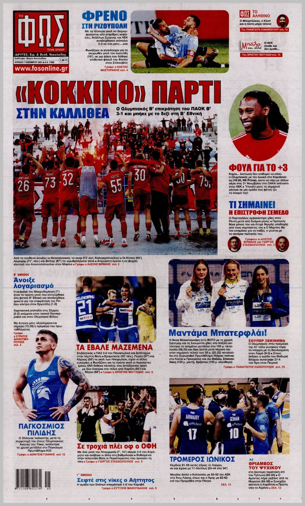 Οι αθλητικές εφημερίδες 7/11/2021 Διονύσης Νίκκας 07:33, Κυριακή 07 Νοεμβρίου 2021 Media Διαβάστε τα πρωτοσέλιδα από τις αθλητικές εφημερίδες… ΑΘΛΗΤΙΚΕΣ ΕΦΗΜΕΡΙΔΕΣ Μοιράσου το: σχολίασε κι εσύ (0 σχόλια) Ακολουθήστε το enikos.gr στο Google News και μάθετε πρώτοι όλες τις ειδήσεις Δείτε όλες τις τελευταίες ειδήσεις από την Ελλάδα και τον Κόσμο στο enikos.gr Ειδήσεις Ροή Ειδήσεων 4 ώρες πριν Μεσόγειος: Η διαδρομή του ρωσικού τάνκερ «Qendil» και η στοχευμένη επίθεση της Ουκρανίας με drone – Ο Πούτιν προειδοποίησε για αντίποινα 24 λεπτά πριν Αγρότες: Έκλεισαν για μία ώρα την παρακαμπτήρια της Ιόνιας Οδού στη θέση Χαλίκι 2 ώρες πριν Εμπλοκή και αερομαχίες με οπλισμένα τουρκικά F-16 στο Αιγαίο 2 ώρες πριν Πούτιν: «Ναι, είμαι ερωτευμένος» – Βίντεο από τη σπάνια προσωπική παραδοχή του 28 λεπτά πριν Ανδρέας Λυκουρέντζος: Υπέβαλε την παραίτησή του ο πρόεδρος του ΕΛΓΑ, αλλά δεν έγινε δεκτή – Όλο το παρασκήνιο 38 λεπτά πριν Αριθμολογία: Οι άνθρωποι που έχουν γεννηθεί αυτές τις 4 ημερομηνίες, συχνά παρεξηγούνται – «Η καλοσύνη τους κρύβει τεράστια δύναμη» 3 ώρες πριν Μήπως έχετε χάσει τον εαυτό σας στη σχέση σας; 7 «αθόρυβες» υποχωρήσεις που μάλλον κάνατε, χωρίς να το συνειδητοποιήσετε 2 ώρες πριν Ξεχάστε το καθάρισμα το Σαββατοκύριακο: Ο «κανόνας των 20 λεπτών» που θα σας λύσει τα χέρια 5 ώρες πριν Κουίζ για την παλιά Αθήνα: Αναγνωρίζετε την περιοχή; Έχετε περάσει 100% από εκεί 1 λεπτό πριν Ολυμπιακός – Βιλερμπάν: Μάτωσε στο πρόσωπο ο Παπανικολάου έπειτα από αγκωνιά του Βοτιέ – ΦΩΤΟ 9 λεπτά πριν Συνεχίζει να προκαλεί ο Μίτσκοσκι: «Για μένα το όνομα Μακεδονία είναι ιερό» 19 λεπτά πριν Ο Γιάννης Κακλέας σκηνοθετεί Βερόνικα Δαβάκη και Ιβάν Σβιτάιλο στη «Locandiera» 24 λεπτά πριν Αγρότες: Έκλεισαν για μία ώρα την παρακαμπτήρια της Ιόνιας Οδού στη θέση Χαλίκι 28 λεπτά πριν Ανδρέας Λυκουρέντζος: Υπέβαλε την παραίτησή του ο πρόεδρος του ΕΛΓΑ, αλλά δεν έγινε δεκτή – Όλο το παρασκήνιο ENIKOS NETWORK Το ΕΚΑΒ τιμήθηκε από την Ακαδημία Αθηνών για τα 40 χρόνια προσφοράς του Έχετε πραγματικά μεγάλη καρδιά; 10 χαρακτηριστικά όσων έχουν καλοσύνη Έρχονται νέες προσλήψεις σε Δήμο – Όλες οι λεπτομέρειες Επίδομα παιδιού: Πότε ανοίγει ξανά η πλατφόρμα για τις αιτήσεις Χαρτογραφώντας το «σημείο χωρίς επιστροφή»: Για πρώτη φορά αποκαλύπτεται με λεπτομέρεια το ακανθώδες όριο της ατμόσφαιρας τ... Η Google καταργεί τη λειτουργία «dark web report» – Πώς θα μπορούν οι χρήστες να διαγράφουν τα δεδομένα τους περισσότερα 20:37 , Παρασκευή 19 Δεκεμβρίου 2025 Don’t Forget The Lyrics: Η Έλλη Κοκκίνου υποδέχεται 4 παίκτες που θα κάνουν τα πάντα για να μη χάσουν ούτε… μισή λέξη από τους στίχους Το «Don’t Forget The Lyrics» επιστρέφει απόψε, Παρασκευή 19 Δεκεμβρίου, στις 21:00 με νέο επει... 19:31 , Παρασκευή 19 Δεκεμβρίου 2025 GNTM: Απόψε ο μεγάλος τελικός για τους 4 φιναλίστ Έπειτα από μήνες γεμάτους μόδα, δημιουργία και έντονες αναμετρήσεις, το GNTM 2025 κορυφώνεται,... 18:11 , Παρασκευή 19 Δεκεμβρίου 2025 Το σόι σου: Ο Άρης έρχεται στην Ελλάδα για τις γιορτές των Χριστουγέννων – Τι θα δούμε στο αποψινό εορταστικό επεισόδιο Ένα απολαυστικό, εορταστικό επεισόδιο της σειράς “Το σόι σου”, γεμάτο ευτράπελα αλ... 15:15 , Παρασκευή 19 Δεκεμβρίου 2025 Την Κυριακή με τη Realnews: Ό,τι και αν αγοράσεις, σκανάρεις και κερδίζεις! Την Κυριακή με τη Realnews: Ό,τι και αν αγοράσεις, σκανάρεις και κερδίζεις! Με το PADU app, το... ΤΕΛΕΥΤΑΙΕΣ ΕΙΔΗΣΕΙΣ 9 λεπτά πριν Συνεχίζει να προκαλεί ο Μίτσκοσκι: «Για μένα το όνομα... 19 λεπτά πριν Ο Γι