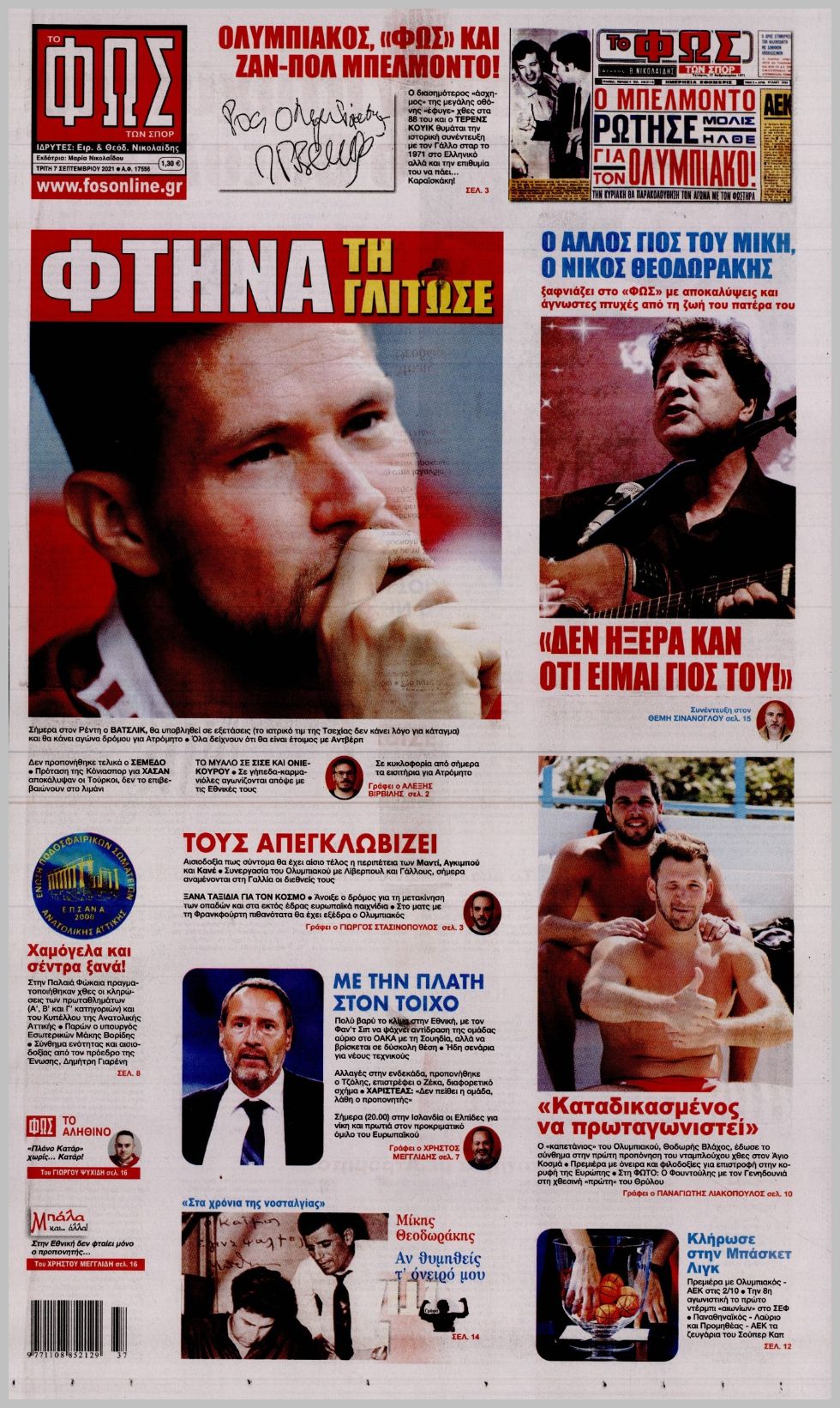 Οι αθλητικές εφημερίδες 7/9/2021 Διονύσης Νίκκας 06:32, Τρίτη 07 Σεπτεμβρίου 2021 Media Διαβάστε τα πρωτοσέλιδα των αθλητικών εφημερίδων… ΑΘΛΗΤΙΚΕΣ ΕΦΗΜΕΡΙΔΕΣ Μοιράσου το: σχολίασε κι εσύ (0 σχόλια) Ακολουθήστε το enikos.gr στο Google News και μάθετε πρώτοι όλες τις ειδήσεις Δείτε όλες τις τελευταίες ειδήσεις από την Ελλάδα και τον Κόσμο στο enikos.gr Ειδήσεις Ροή Ειδήσεων 1 ώρα πριν Μεσόγειος: Η διαδρομή του ρωσικού τάνκερ «Qendil» και η στοχευμένη επίθεση της Ουκρανίας με drone – Ο Πούτιν προειδοποίησε για αντίποινα 1 ώρα πριν Αττική: Θρίλερ με νεκρό βρέφος 5 μηνών – Κοιμόταν στο ίδιο κρεβάτι με τους γονείς του 2 ώρες πριν Από το Ορμένιο ως τα Μάλγαρα κι από τη Σιάτιστα μέχρι τη Νίκαια: Μπλόκα σε όλη την Ελλάδα – Το Σάββατο ανοίγουν τα διόδια οι αγρότες 2 ώρες πριν «Έλληνας Εσκομπάρ»: Φωτογραφίες με τους 4 τόνους κοκαΐνης που κατασχέθηκαν από το σκάφος «Ουρανία» 4 ώρες πριν Πούτιν: Σαρκαστικά μηνύματα, παράπονα και απρόοπτα στη συνέντευξη Τύπου – Η πρόταση γάμου on air και οι ερωτήσεις για τα αγγούρια και τους… εξωγήινους 3 ώρες πριν Τα 5 ζώδια που ευνοούνται στην ερωτική ζωή τους την επόμενη εβδομάδα – «Η ενέργεια του Αιγόκερου φέρνει αγάπη και σταθερότητα» 7 ώρες πριν Ειδικός μοιράζεται 6 κόλπα για να διατηρείστε σε φόρμα με πάνω από 40 ώρες εργασίας την εβδομάδα: «Προπονηθείτε πριν από τη δουλειά, όχι μετά» 4 ώρες πριν Αυτό το έξυπνο μαθηματικό κόλπο θα μπορούσε να αλλάξει τον τρόπο με τον οποίο οι επιστήμονες μελετούν τους σεισμούς 2 ώρες πριν Κουίζ για την παλιά Αθήνα: Αναγνωρίζετε την περιοχή; Έχετε περάσει 100% από εκεί 4 λεπτά πριν ΗΠΑ: Νέος γύρος συνομιλιών στο Μαϊάμι – Σήμερα συνάντηση Γουίτκοφ με Ουκρανούς και Ευρωπαίους διαπραγματευτές, το Σαββατοκύριακο με Ρώσους αξιωματούχους 8 λεπτά πριν Νέα σειρά γραμματοσήμων «ΕΛΠΙΔΑ-Μαριάννα Β. Βαρδινογιάννη» 12 λεπτά πριν Ιταλία: Με εισιτήριο από την 1η Φεβρουαρίου 2026 η πρόσβαση στη Φοντάνα ντι Τρέβι – Πόσο θα κοστίζει 20 λεπτά πριν Μήπως έχετε χάσει τον εαυτό σας στη σχέση σας; 7 «αθόρυβες» υποχωρήσεις που μάλλον κάνατε, χωρίς να το συνειδητοποιήσετε 26 λεπτά πριν Λάρισα: Ασθενοφόρο έπεσε πάνω σε κλούβα της ΕΛ.ΑΣ στον Πλατύκαμπο – Τραυματίστηκε ο συνοδηγός – ΒΙΝΤΕΟ ENIKOS NETWORK «Η σούπερ» γρίπη εξαπλώνεται στην Ευρώπη-Στοιχεία από το ECDC για την αποτελεσματικότητα του εμβολίου ΕΛΣΤΑΤ: Αύξηση κατά 1,7% των επαγγελματιών υγείας το 2024 Προκήρυξη ΑΣΕΠ για 397 μόνιμες προσλήψεις στο Δημόσιο: Βγήκαν τα προσωρινά αποτελέσματα – Πότε αρχίζει η υποβολή ενστάσεων Η απάντηση της κυβέρνησης στα αιτήματα των αγροτών: 16 έχουν ικανοποιηθεί, 4 βρίσκονται υπό επεξεργασία και 7 δεν είναι εφι... Χαρτογραφώντας το «σημείο χωρίς επιστροφή»: Για πρώτη φορά αποκαλύπτεται με λεπτομέρεια το ακανθώδες όριο της ατμόσφαιρας τ... Η Google καταργεί τη λειτουργία «dark web report» – Πώς θα μπορούν οι χρήστες να διαγράφουν τα δεδομένα τους περισσότερα 18:11 , Παρασκευή 19 Δεκεμβρίου 2025 Το σόι σου: Ο Άρης έρχεται στην Ελλάδα για τις γιορτές των Χριστουγέννων – Τι θα δούμε στο αποψινό εορταστικό επεισόδιο Ένα απολαυστικό, εορταστικό επεισόδιο της σειράς “Το σόι σου”, γεμάτο ευτράπελα αλ... 15:15 , Παρασκευή 19 Δεκεμβρίου 2025 Την Κυριακή με τη Realnews: Ό,τι και αν αγοράσεις, σκανάρεις και κερδίζεις! Την Κυριακή με τη Realnews: Ό,τι και αν αγοράσεις, σκανάρεις και κερδίζεις! Με το PADU app, το... 08:00 , Παρασκευή 19 Δεκεμβρίου 2025 Την Κυριακή με τη Realnews: Δωροεπιταγή 10€ Δωροεπιταγή αξίας 10€ για αγορές άν