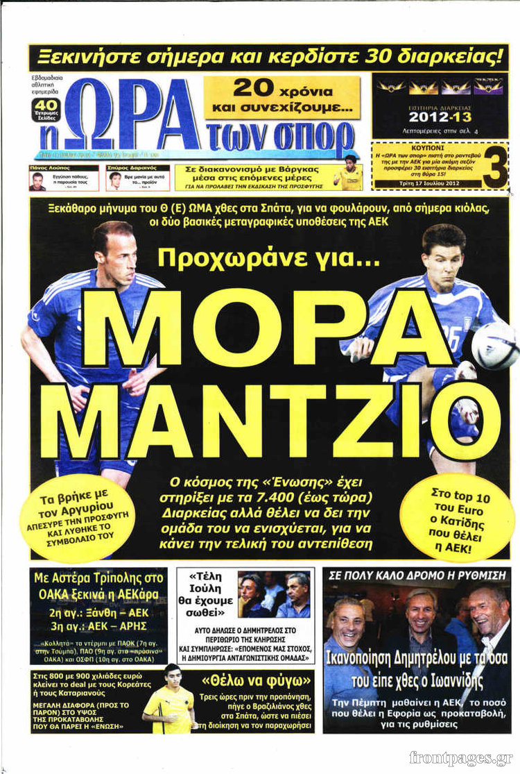 Διαβάστε τα σημερινά πρωτοσέλιδα των αθλητικών εφημερίδων
