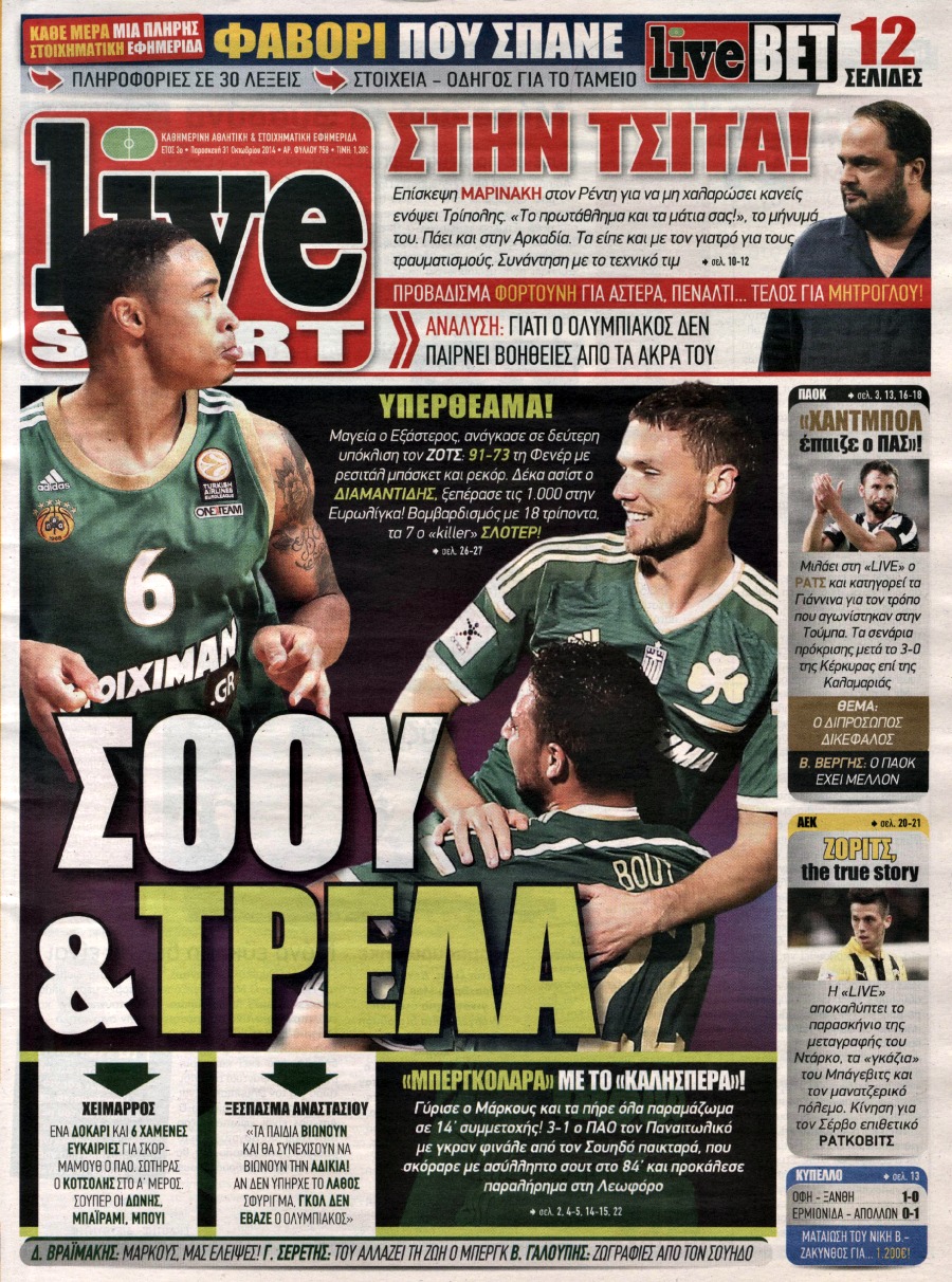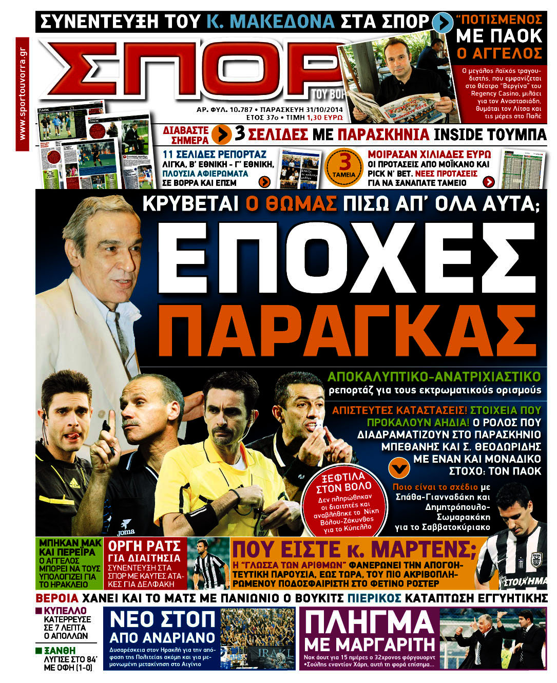 Οι αθλητικές εφημερίδες Enikos Newsroom 07:55, Παρασκευή 31 Οκτωβρίου 2014 Media Οι αθλητικές εφημερίδες Διαβάστε τα πρωτοσέλιδα των αθλητικών εφημερίδων: ΑΘΛΗΤΙΚΕΣ ΕΦΗΜΕΡΙΔΕΣ ΕΦΗΜΕΡΙΔΕΣ ΠΡΩΤΟΣΕΛΙΔΑ Μοιράσου το: σχολίασε κι εσύ (0 σχόλια) Ακολουθήστε το enikos.gr στο Google News και μάθετε πρώτοι όλες τις ειδήσεις Δείτε όλες τις τελευταίες ειδήσεις από την Ελλάδα και τον Κόσμο στο enikos.gr Ειδήσεις Ροή Ειδήσεων 8 ώρες πριν Μητσοτάκης: Αναγκαία η μεταρρύθμιση του πρωτογενούς τομέα – Τα 6 νέα μέτρα για το στεγαστικό και οι αναφορές σε «Ιθάκη» και «πολιτικούς του καναπέ» 7 ώρες πριν Δάνεια σε ελβετικό φράγκο: Τα βασικά σημεία της ρύθμισης – ανάσας για 40.000 δανειολήπτες – Αναλυτικός οδηγός με ερωτήσεις και απαντήσεις 7 ώρες πριν Κυψέλη: Εξιτήριο πήρε η 14χρονη μαθήτρια που μαχαιρώθηκε από την 16χρονη σε σχολείο – «Θέλω να βοηθήσω το παιδί, έχει μπλέξει με κακές παρέες» 7 ώρες πριν Τραμπ: Γιατί κατέθεσε τώρα την αγωγή κατά του BBC – Πώς η κίνησή του εξυπηρετεί το νέο δόγμα του για «αντίσταση» στην Ευρώπη, υπέρ των συντηρητικών 8 ώρες πριν ΟΠΕΚΕΠΕ – Παράνομες επιδοτήσεις: Ελεύθεροι με περιοριστικούς όρους και οι 7 κατηγορούμενοι που απολογήθηκαν σήμερα 7 ώρες πριν Ανακαλύφθηκε βυθισμένη πέτρινη κατασκευή ανοιχτά της Κριμαίας – Αποτελεί μέρος αρχαίας ελληνικής αποικίας 8 ώρες πριν Ύπνος: Αυτό μπορεί να είναι το χειρότερο λάθος για το βιολογικό ρολόι σας, σύμφωνα με ειδικό 9 ώρες πριν Αριθμολογία: Οι άνθρωποι που έχουν γεννηθεί αυτές τις 3 ημερομηνίες, προσελκύουν μεγάλη τύχη πριν από το τέλος του 2025 11 ώρες πριν Οι 7 συμπεριφορές που μαρτυρούν ότι ένας άνδρας επενδύει μακροπρόθεσμα σε μια σχέση 3 λεπτά πριν Οι πολιτικές εφημερίδες 17/12/2025 11 λεπτά πριν Τα ζώδια σήμερα, Τετάρτη 17 Δεκεμβρίου: Κριοί, η αυτοπεποίθησή σας ενισχύεται 19 λεπτά πριν Εφημερεύοντα φαρμακεία σε Αθήνα και Θεσσαλονίκη (17/12) 25 λεπτά πριν Κόστα Ρίκα: Το Κογκρέσο απέρριψε το αίτημα για άρση της ασυλίας του προέδρου Τσάβες 33 λεπτά πριν Κολομβία: Νεκροί τέσσερις αστυνομικοί σε βομβιστικές επιθέσεις ανταρτών ENIKOS NETWORK Αίτημα ΙΣΑ για την εξαίρεση των προσωπικών γιατρών από τις κατ’ οίκον επισκέψεις Η σκανδιναβική μέθοδος στον ύπνο που μπορεί να σώσει έναν γάμο Πιερρακάκης: Ο προϋπολογισμός συμβάλλει ουσιαστικά στην ενίσχυση της αγοραστικής δύναμης της πλειονότητας των εργαζομένων e-ΕΦΚΑ: Παρατείνεται η προθεσμία για την υποβολή ΑΠΔ – Ποιους αφορά Σύγχρονος Νοστράδαμος: Προειδοποιεί για «μεγάλο γεγονός» τους επόμενους μήνες που θα συγκλονίσει τη Βρετανία και τον κόσμο Τεστ παρατηρητικότητας: Μπορείτε να βρείτε τις 3 διαφορές στις εικόνες με έναν πιγκουίνο σε 14 δευτερόλεπτα περισσότερα 05:38 , Τετάρτη 17 Δεκεμβρίου 2025 Οι πολιτικές εφημερίδες 17/12/2025 Διαβάστε τα πρωτοσέλιδα από τις πολιτικές εφημερίδες, σήμερα 17/12/2025. 20:06 , Τρίτη 16 Δεκεμβρίου 2025 Ο ΣΚΑΙ καταγγέλλει τον ΕΚΚΟΜΕΔ Επιστολή με την οποία καταγράφει την έντονη διαμαρτυρία του προς τον διευθύνοντα σύμβουλο του... 17:40 , Τρίτη 16 Δεκεμβρίου 2025 Eurovision: Στις 4 Ιανουαρίου αποκαλύπτονται τα 28 τραγούδια του ελληνικού τελικού Η αγωνία τελειώνει, η γιορτή της Eurovision αρχίζει στην ΕΡΤ από τις πρώτες ημέρες της νέας χρ... 17:09 , Τρίτη 16 Δεκεμβρίου 2025 Alter Ego Media: Βαθύτατη θλίψη και ειλικρινή συλλυπητήρια για την απώλεια της Ειρήνης Μαρινάκη Τη βαθύτατη θλίψη και τα ειλικρινή συλλυπητήριά της εκφράζει η Alter Ego Media για τον θάνατο ... ΤΕΛΕΥΤΑΙΕΣ ΕΙΔΗΣΕΙΣ 3 λεπτά πριν Οι πολιτικές εφημερ