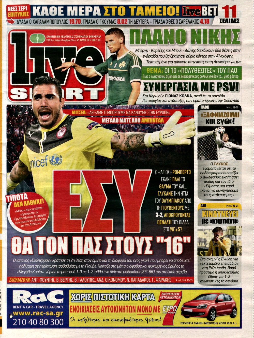 Οι αθλητικές εφημερίδες Enikos Newsroom 08:07, Τετάρτη 05 Νοεμβρίου 2014 Media Οι αθλητικές εφημερίδες Διαβάστε τα πρωτοσέλιδα των αθλητικών εφημερίδων: ΑΘΛΗΤΙΚΕΣ ΕΦΗΜΕΡΙΔΕΣ ΕΦΗΜΕΡΙΔΕΣ ΠΡΩΤΟΣΕΛΙΔΑ Μοιράσου το: σχολίασε κι εσύ (0 σχόλια) Ακολουθήστε το enikos.gr στο Google News και μάθετε πρώτοι όλες τις ειδήσεις Δείτε όλες τις τελευταίες ειδήσεις από την Ελλάδα και τον Κόσμο στο enikos.gr Ειδήσεις Ροή Ειδήσεων 29 λεπτά πριν Μητσοτάκης σε αγρότες: Είμαστε ανοιχτοί στον διάλογο, αλλά όχι στο παράλογο – Η διεκδίκηση αιτημάτων οφείλει να γίνεται με σεβασμό στο κοινωνικό σύνολο 45 λεπτά πριν Γρίπη: «Καμπανάκι» από τους επιστήμονες για έξαρση κρουσμάτων στις γιορτές – Ποιοι κινδυνεύουν και πώς προστατευόμαστε 2 ώρες πριν Γαλλία: Έτοιμοι για Χριστούγεννα στους δρόμους οι αγρότες – «Οι δεσμεύσεις της κυβέρνησης δεν είναι αρκετές» 1 ώρα πριν Φοροδιαφυγή και «κενό ΦΠΑ»: Πώς τα ψηφιακά εργαλεία έφεραν δισεκατομμύρια στα ταμεία του Δημοσίου 3 ώρες πριν Τζορτζ Κλούνεϊ: Πέθανε η αδελφή του, Άντα Ζάιντλερ – «Η ηρωίδα μου» 39 λεπτά πριν Τα άστρα ευνοούν σκανδαλωδώς 4 ζώδια – «Εμφανίζονται ξαφνικά ευκαιρίες γιατί αποφασίζετε να αφήσετε πίσω το παρελθόν» 2 ώρες πριν Οι γονείς της θέλουν να έχουν πρόσβαση στον τραπεζικό της λογαριασμό – «Επιμένουν πως στις οικογένειες δεν υπάρχουν μυστικά» 2 ώρες πριν Αρχαιολόγοι ανακάλυψαν κάτι που δεν περίμεναν: Τα μαθηματικά υπήρχαν πριν από τους αριθμούς – Το μυστικό που κρύβεται πίσω από περίεργα αγγεία 8.000 ετών 1 ημέρα πριν Enerwave: Το νέο «ρεύμα» στη λιανική ενέργειας που αλλάζει την εμπειρία του καταναλωτή 5 λεπτά πριν Τηλεθέαση (20/12): Πρωτιά για το The Voice στην prime time – Τα ποσοστά στο δυναμικό και στο γενικό σύνολο 9 λεπτά πριν Συναγερμός στην Σκύρο – Ακυβέρνητο δεξαμενόπλοιο λόγω μπλακ άουτ 13 λεπτά πριν Σοκ στις Πινακάτες: Νεκρός ο πρόεδρος του χωριού Νίκος Παππάς – Κατέρρευσε μπροστά στη σύζυγο και τα παιδιά του 21 λεπτά πριν Πώς «ακούγονται» το Δέλτα του Αξιού και η λίμνη Ορεστιάδα; Οι πρώτες ηχογραφήσεις των επιστημόνων δείχνουν κάτι απρόσμενο 29 λεπτά πριν Μητσοτάκης σε αγρότες: Είμαστε ανοιχτοί στον διάλογο, αλλά όχι στο παράλογο – Η διεκδίκηση αιτημάτων οφείλει να γίνεται με σεβασμό στο κοινωνικό σύνολο ENIKOS NETWORK Έχετε καταρροή και φαγούρα στα μάτια στις γιορτές; Μπορεί να ευθύνεται το σύνδρομο χριστουγεννιάτικου δέντρου Η Danielle Fishel μετά τη διάγνωση καρκίνου του μαστού: «Είμαι καλά και νιώθω ευγνωμοσύνη» Ανοιχτά τα καταστήματα σήμερα – Μέχρι τι ώρα μπορείτε να κάνετε τις αγορές σας Πρωτοχρονιά 2026: Πόσο θα κοστίσει φέτος η βασιλόπιτα – Οι τιμές σε ζαχαροπλαστεία, φούρνους και σούπερ μάρκετ Χαρτογραφώντας το «σημείο χωρίς επιστροφή»: Για πρώτη φορά αποκαλύπτεται με λεπτομέρεια το ακανθώδες όριο της ατμόσφαιρας τ... Η Google καταργεί τη λειτουργία «dark web report» – Πώς θα μπορούν οι χρήστες να διαγράφουν τα δεδομένα τους περισσότερα 09:43 , Κυριακή 21 Δεκεμβρίου 2025 Το λάθος στην ταινία Die Hard που άφησε άναυδους τους θαυμαστές του Μπρους Γουίλις Ένας φανατικός των ταινιών άφησε άναυδους τους θαυμαστές του Die Hard, επισημαίνοντας τρία βασ... 08:13 , Κυριακή 21 Δεκεμβρίου 2025 Άγιος έρωτας: Ένας καταστροφικός σεισμός χτυπά τη Στέρνα Καταιγιστικές είναι οι εξελίξεις στα δυο τελευταία, συγκλονιστικά επεισόδια του 2025 της σειρά... 08:00 , Κυριακή 21 Δεκεμβρίου 2025 Σήμερα με τη Realnews: Ό,τι και αν αγοράσεις, σκανάρεις και κερδίζεις! Σήμερα με τη Realnews: Ό,τι και αν αγοράσεις, σ