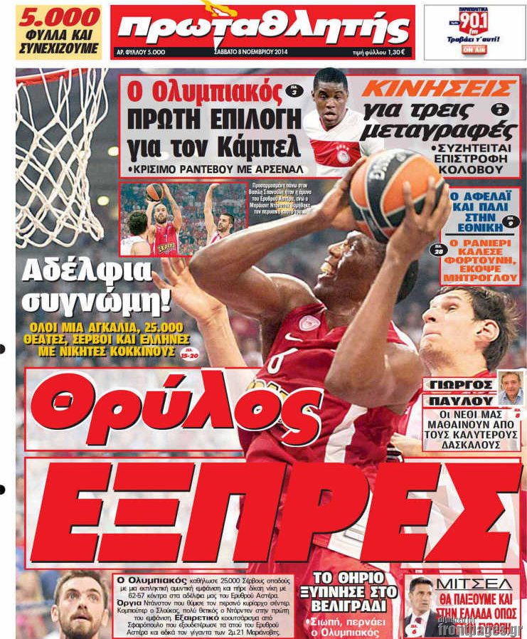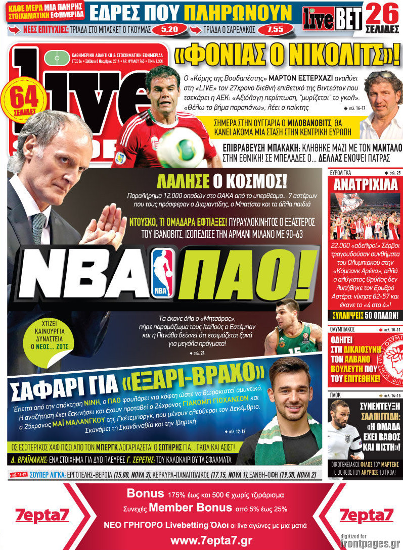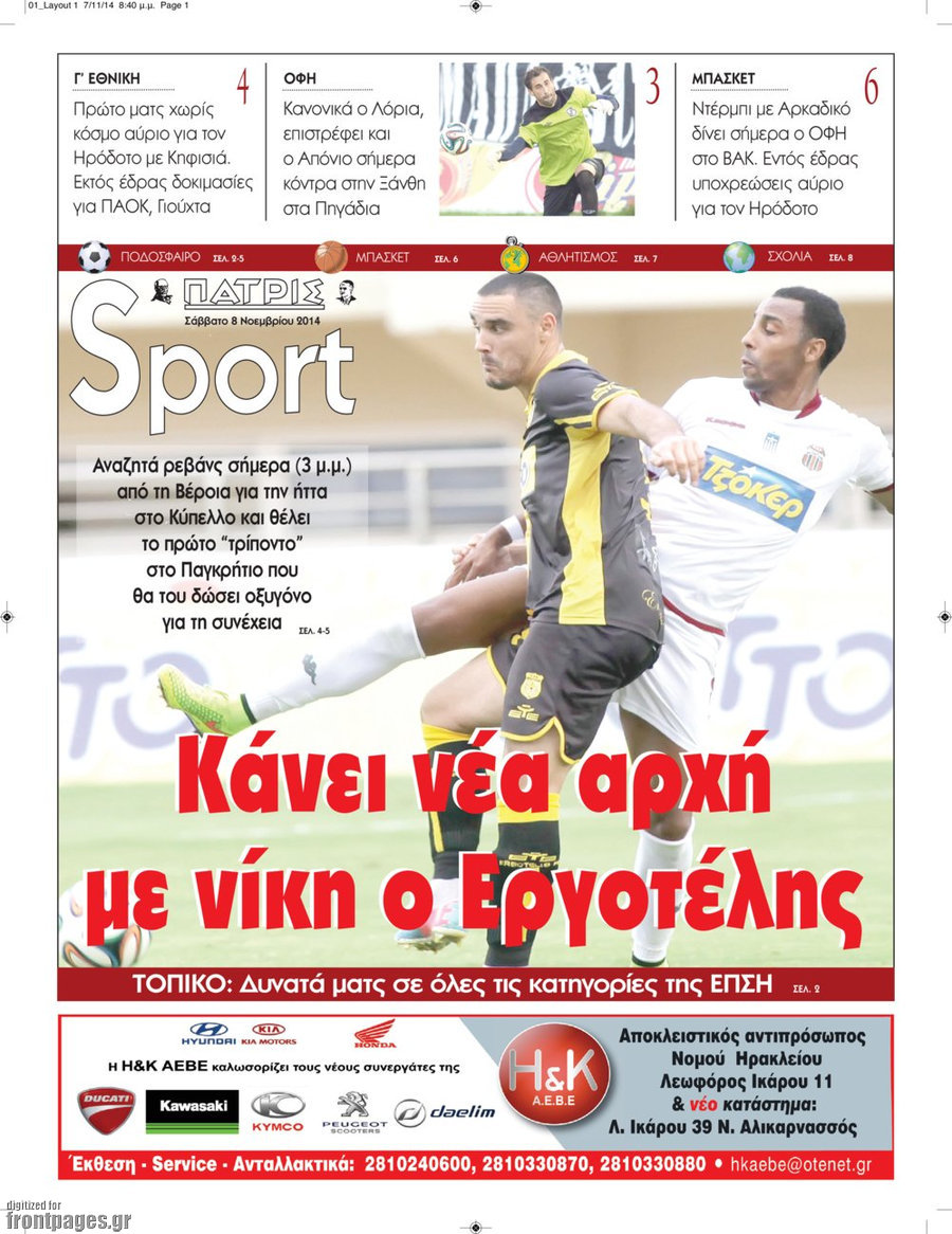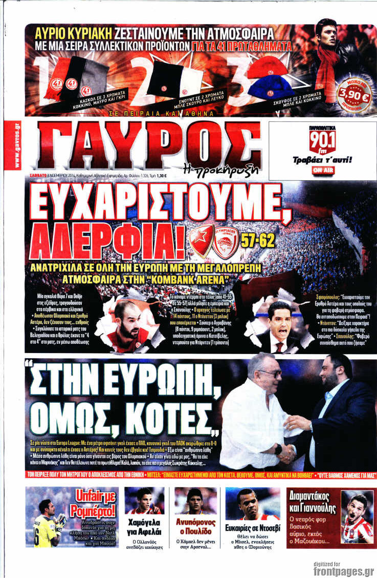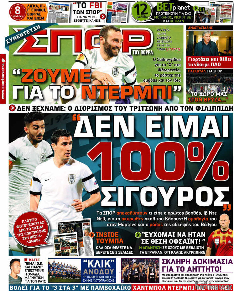 Οι αθλητικές εφημερίδες Enikos Newsroom 08:24, Σάββατο 08 Νοεμβρίου 2014 Media Οι αθλητικές εφημερίδες Διαβάστε τα πρωτοσέλιδα των αθλητικών εφημερίδων: ΑΘΛΗΤΙΚΕΣ ΕΦΗΜΕΡΙΔΕΣ Μοιράσου το: σχολίασε κι εσύ (0 σχόλια) Ακολουθήστε το enikos.gr στο Google News και μάθετε πρώτοι όλες τις ειδήσεις Δείτε όλες τις τελευταίες ειδήσεις από την Ελλάδα και τον Κόσμο στο enikos.gr Ειδήσεις Ροή Ειδήσεων 3 ώρες πριν Χριστούγεννα στα μπλόκα: Επιμένουν στις κινητοποιήσεις τους οι αγρότες – Ανοίγουν τα διόδια το Σαββατοκύριακο 3 ώρες πριν Ουκρανία: Η άνευ προηγουμένου επίθεση σε ρωσικό τάνκερ στη Μεσόγειο και το μήνυμα προς στον Πούτιν – Το «μακρύ χέρι» του Κιέβου 3 ώρες πριν Πούτιν: Τα μηνύματα σε Ευρώπη και ΝΑΤΟ από το μαραθώνιο «σόου» του – Η απαίτηση για «σεβασμό» και η ειρήνη «με τους όρους» της Μόσχας 3 ώρες πριν Τραμπ: Δεν αποκλείει την πιθανότητα ενός πολέμου στη Βενεζουέλα – «Ο Μαδούρο ξέρει καλύτερα από τον καθένα τι ακριβώς θέλω» 4 ώρες πριν Συνεχίζει να προκαλεί ο Μίτσκοσκι: «Για μένα το όνομα Μακεδονία είναι ιερό» 3 ώρες πριν Ανακαλύφθηκαν αρχαία χρυσά νομίσματα 2.200 ετών που απεικονίζουν τον θεό Απόλλωνα – Η άγνωστη σύνδεση με τον Φίλιππο Β΄ της Μακεδονίας 4 ώρες πριν Ύπνος: Μια κρυφή κατάσταση του εγκεφάλου πριν από τον ύπνο μπορεί να είναι το “κλειδί” για υψηλή ευφυΐα και δημιουργικότητα 5 ώρες πριν Αριθμολογία: Οι άνθρωποι που έχουν γεννηθεί αυτές τις 4 ημερομηνίες, συχνά παρεξηγούνται – «Η καλοσύνη τους κρύβει τεράστια δύναμη» 6 ώρες πριν Ξεχάστε το καθάρισμα το Σαββατοκύριακο: Ο «κανόνας των 20 λεπτών» που θα σας λύσει τα χέρια 21 λεπτά πριν Συρία: Μαζικά πλήγματα των ΗΠΑ σε θέσεις του Ισλαμικού Κράτους – Χέγκσεθ: «Δεν είναι αρχή πολέμου, είναι μια δήλωση εκδίκησης» για το θάνατο των στρατιωτών μας 33 λεπτά πριν Ουκρανία: Ολοκληρώθηκαν οι συνομιλίες με τους Αμερικανούς κι Ευρωπαίους διαπραγματευτές 48 λεπτά πριν Μπαρτσελόνα – Μπασκόνια 134-124: Οι «μπλαουγκράνα» πήραν το ματς της χρονιάς ύστερα από τρεις παρατάσεις 1 ώρα πριν Φαίη Σκορδά: «Παλιότερα τα κομπλιμέντα τα προσπερνούσα, τώρα τα έχω ανάγκη» 1 ώρα πριν Βασίλης Σπανούλης: Δεν εμφανίστηκε ούτε ένας δημοσιογράφος στην συνέντευξη Τύπου – «Καλησπέρα στον… κανέναν», δείτε βίντεο ENIKOS NETWORK Το ΕΚΑΒ τιμήθηκε από την Ακαδημία Αθηνών για τα 40 χρόνια προσφοράς του Έχετε πραγματικά μεγάλη καρδιά; 10 χαρακτηριστικά όσων έχουν καλοσύνη Αναστολή μέτρων αναγκαστικής εκτέλεσης για κτηνοτρόφους που πλήττονται από την ευλογιά των αιγοπροβάτων Πλήρης επάρκεια προϊόντων στις λαϊκές της Αττικής, παρά τις αγροτικές κινητοποιήσεις – Τι απαντούν οι πωλητές Χαρτογραφώντας το «σημείο χωρίς επιστροφή»: Για πρώτη φορά αποκαλύπτεται με λεπτομέρεια το ακανθώδες όριο της ατμόσφαιρας τ... Η Google καταργεί τη λειτουργία «dark web report» – Πώς θα μπορούν οι χρήστες να διαγράφουν τα δεδομένα τους περισσότερα 22:42 , Παρασκευή 19 Δεκεμβρίου 2025 Γιώργος Γιαννόπουλος για “Το σόι σου”: “Είναι ευτυχία και ευλογία αυτή η σειρά” «Είναι ευτυχία και ευλογία η συγκυρία αυτής της σειράς», θα πει ο Γιώργος Γιαννόπουλος -ο αγαπ... 20:37 , Παρασκευή 19 Δεκεμβρίου 2025 Don’t Forget The Lyrics: Η Έλλη Κοκκίνου υποδέχεται 4 παίκτες που θα κάνουν τα πάντα για να μη χάσουν ούτε… μισή λέξη από τους στίχους Το «Don’t Forget The Lyrics» επιστρέφει απόψε, Παρασκευή 19 Δεκεμβρίου, στις 21:00 με νέο επει... 19:31 , Παρασκευή 19 Δεκεμβρίου 2025 GNTM: Απόψε ο μεγάλος τελικός για τους 4 φιναλίστ Έπειτα από μήνες γεμάτου