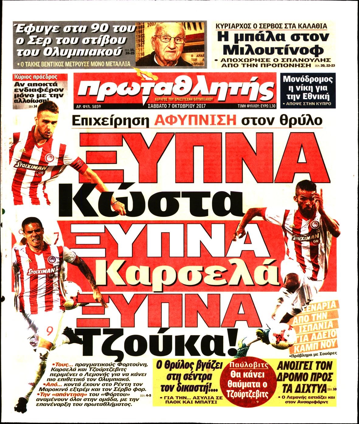 Οι αθλητικές εφημερίδες 7/10/2017 Enikos Newsroom 07:28, Σάββατο 07 Οκτωβρίου 2017 Media Διαβάστε τα σημερινά πρωτοσέλιδα των αθλητικών εφημερίδων: ΑΘΛΗΤΙΚΕΣ ΕΦΗΜΕΡΙΔΕΣ ΠΡΩΤΟΣΕΛΙΔΑ Μοιράσου το: σχολίασε κι εσύ (0 σχόλια) Ακολουθήστε το enikos.gr στο Google News και μάθετε πρώτοι όλες τις ειδήσεις Δείτε όλες τις τελευταίες ειδήσεις από την Ελλάδα και τον Κόσμο στο enikos.gr Ειδήσεις Ροή Ειδήσεων 12 λεπτά πριν Χριστούγεννα στα μπλόκα: Επιμένουν στις κινητοποιήσεις τους οι αγρότες – Ανοίγουν τα διόδια το Σαββατοκύριακο 40 λεπτά πριν Τραμπ: Δεν αποκλείει την πιθανότητα ενός πολέμου στη Βενεζουέλα – «Ο Μαδούρο ξέρει καλύτερα από τον καθένα τι ακριβώς θέλω» 34 λεπτά πριν Ουκρανία: Η άνευ προηγουμένου επίθεση σε ρωσικό τάνκερ στη Μεσόγειο και το μήνυμα προς στον Πούτιν – Το «μακρύ χέρι» του Κιέβου 3 ώρες πριν Πούτιν: «Ναι, είμαι ερωτευμένος» – Βίντεο από τη σπάνια προσωπική παραδοχή του 1 ώρα πριν Συνεχίζει να προκαλεί ο Μίτσκοσκι: «Για μένα το όνομα Μακεδονία είναι ιερό» 2 ώρες πριν Αριθμολογία: Οι άνθρωποι που έχουν γεννηθεί αυτές τις 4 ημερομηνίες, συχνά παρεξηγούνται – «Η καλοσύνη τους κρύβει τεράστια δύναμη» 4 ώρες πριν Μήπως έχετε χάσει τον εαυτό σας στη σχέση σας; 7 «αθόρυβες» υποχωρήσεις που μάλλον κάνατε, χωρίς να το συνειδητοποιήσετε 3 ώρες πριν Ξεχάστε το καθάρισμα το Σαββατοκύριακο: Ο «κανόνας των 20 λεπτών» που θα σας λύσει τα χέρια 50 λεπτά πριν Ύπνος: Μια κρυφή κατάσταση του εγκεφάλου πριν από τον ύπνο μπορεί να είναι το “κλειδί” για υψηλή ευφυΐα και δημιουργικότητα 2 λεπτά πριν Παναθηναϊκός: «Μέσα» οι Σφιντέρσκι και Τουμπά για το ματς με τον ΠΑΟΚ – Τι έδειξε η μαγνητική του Πάντοβιτς 7 λεπτά πριν Γιώργος Γιαννόπουλος για “Το σόι σου”: “Είναι ευτυχία και ευλογία αυτή η σειρά” 12 λεπτά πριν Χριστούγεννα στα μπλόκα: Επιμένουν στις κινητοποιήσεις τους οι αγρότες – Ανοίγουν τα διόδια το Σαββατοκύριακο 23 λεπτά πριν Χάρι και Μέγκαν: Η σπάνια οικογενειακή φωτογραφία με τον Άρτσι και τη Λίλιμπετ – Τι σχεδιάζουν για τα Χριστούγεννα 30 λεπτά πριν Βασίλης Καρράς: «Είναι πάντα δίπλα μου, δεν έφυγε…», λέει ο αδελφός του ENIKOS NETWORK Το ΕΚΑΒ τιμήθηκε από την Ακαδημία Αθηνών για τα 40 χρόνια προσφοράς του Έχετε πραγματικά μεγάλη καρδιά; 10 χαρακτηριστικά όσων έχουν καλοσύνη Πλήρης επάρκεια προϊόντων στις λαϊκές της Αττικής, παρά τις αγροτικές κινητοποιήσεις – Τι απαντούν οι πωλητές ΑΑΔΕ: Νέες αναβαθμίσεις στο Ψηφιακό Πελατολόγιο και την εφαρμογή myDATAapp – Τι πρέπει να γνωρίζετε Χαρτογραφώντας το «σημείο χωρίς επιστροφή»: Για πρώτη φορά αποκαλύπτεται με λεπτομέρεια το ακανθώδες όριο της ατμόσφαιρας τ... Η Google καταργεί τη λειτουργία «dark web report» – Πώς θα μπορούν οι χρήστες να διαγράφουν τα δεδομένα τους περισσότερα 22:42 , Παρασκευή 19 Δεκεμβρίου 2025 Γιώργος Γιαννόπουλος για “Το σόι σου”: “Είναι ευτυχία και ευλογία αυτή η σειρά” «Είναι ευτυχία και ευλογία η συγκυρία αυτής της σειράς», θα πει ο Γιώργος Γιαννόπουλος -ο αγαπ... 20:37 , Παρασκευή 19 Δεκεμβρίου 2025 Don’t Forget The Lyrics: Η Έλλη Κοκκίνου υποδέχεται 4 παίκτες που θα κάνουν τα πάντα για να μη χάσουν ούτε… μισή λέξη από τους στίχους Το «Don’t Forget The Lyrics» επιστρέφει απόψε, Παρασκευή 19 Δεκεμβρίου, στις 21:00 με νέο επει... 19:31 , Παρασκευή 19 Δεκεμβρίου 2025 GNTM: Απόψε ο μεγάλος τελικός για τους 4 φιναλίστ Έπειτα από μήνες γεμάτους μόδα, δημιουργία και έντονες αναμετρήσεις, το GNTM 2025 κορυφώνεται,... 18:11 , Παρασκευή 19 Δεκεμβρίου 2025 Το σόι σου: Ο Άρης έρχεται στην Ελ