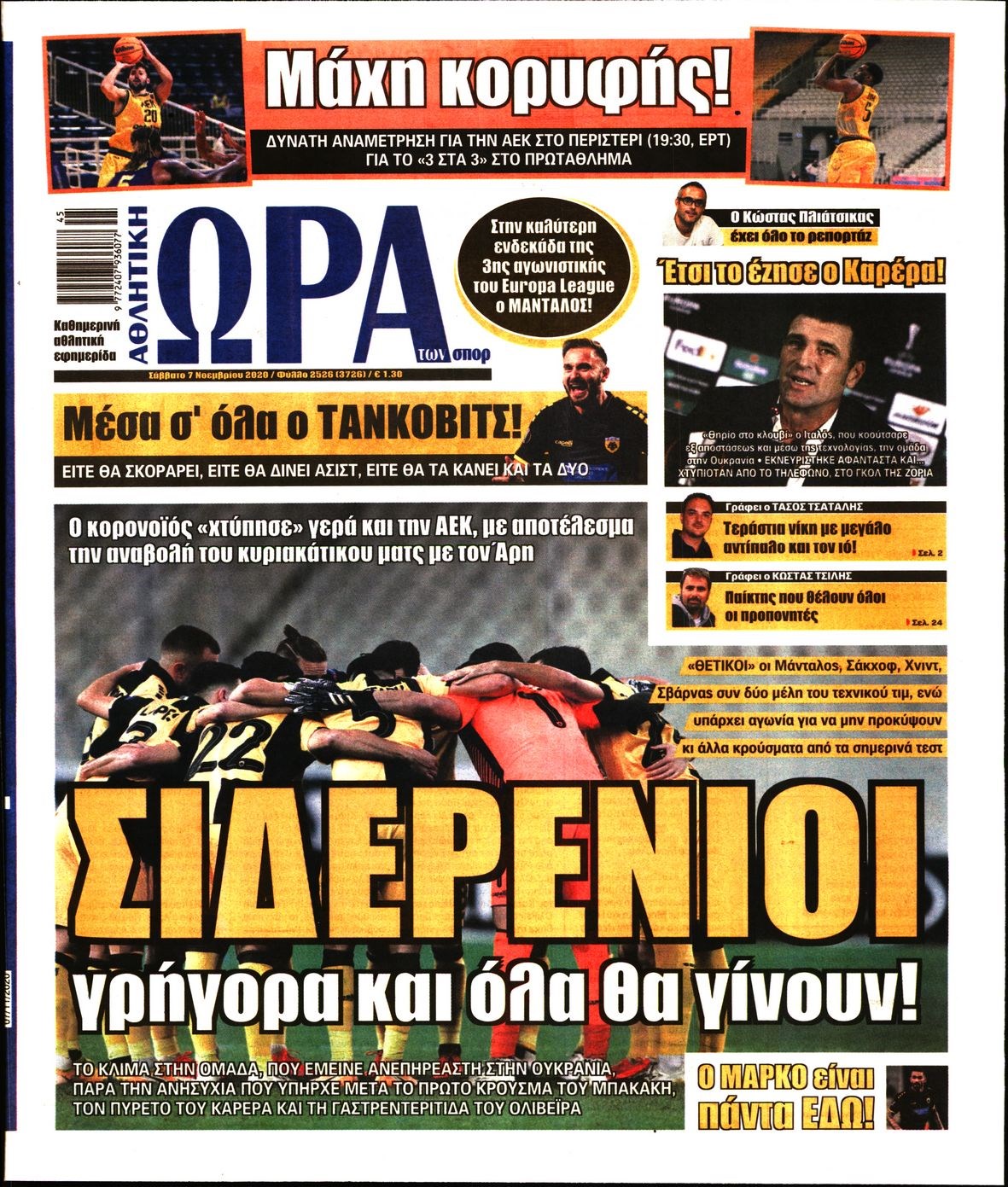 Οι αθλητικές εφημερίδες 7/11/2020 Διονύσης Νίκκας 07:44, Σάββατο 07 Νοεμβρίου 2020 Media Διαβάστε τα πρωτοσέλιδα των αθλητικών εφημερίδων… ΑΘΛΗΤΙΚΕΣ ΕΦΗΜΕΡΙΔΕΣ Μοιράσου το: σχολίασε κι εσύ (0 σχόλια) Ακολουθήστε το enikos.gr στο Google News και μάθετε πρώτοι όλες τις ειδήσεις Δείτε όλες τις τελευταίες ειδήσεις από την Ελλάδα και τον Κόσμο στο enikos.gr Ειδήσεις Ροή Ειδήσεων 3 ώρες πριν Υπόθεση Έπσταϊν: Το Υπουργείο Δικαιοσύνης δημοσιοποίησε μια σειρά από εξαιρετικά επεξεργασμένα αρχεία – «Λείπουν τα πιο σημαντικά έγγραφα», λένε οι Δημοκρατικοί 6 λεπτά πριν Γιορτές με μπλόκα για τους αγρότες: Ανοίγουν διόδια και μοιράζουν προϊόντα στους ταξιδιώτες 39 λεπτά πριν Εξαφάνιση 33χρονου γιατρού στην Κρήτη: «Άναψα τα φώτα, τρόμαξε και άρχισε να τρέχει στα χωράφια» – Η τελευταία διαδρομή και η μαρτυρία «κλειδί» 2 ώρες πριν Ο «χάρτης» με τις αυξήσεις και τις φοροελαφρύνσεις του 2026 – Ποιοι και πόσα κερδίζουν 22 λεπτά πριν Τα αρχεία του Έπσταϊν αποκαλύπτουν φωτογραφία του έκπτωτου πρίγκιπα Άντριου – Είναι ξαπλωμένος στην αγκαλιά 5 γυναικών 29 λεπτά πριν Μία νέα «χρυσή» περίοδος αρχίζει για 3 ζώδια από σήμερα – «Μία αναπάντεχη ευκαιρία οδηγεί στην επιτυχία» 5 ώρες πριν Αυγά: Πόσα μπορείτε να τρώτε την ημέρα με ασφάλεια για μέγιστη πρόσληψη πρωτεΐνης 3 ώρες πριν Αρχαιολόγοι ανακάλυψαν σε χωράφι απεικόνιση 600 ετών ενός Αγίου – Τα στοιχεία που δείχνουν ότι μαρτύρησε 2 ώρες πριν Αγχώνεται για το χριστουγεννιάτικο δώρο που πήρε στην πλούσια σύντροφό του – «Φοβάμαι πως θα το βρει φθηνιάρικο, φοράει βραχιόλια Cartier» 6 λεπτά πριν Συνελήφθη οδηγός μηχανής που έτρεχε με 161 χλμ στη Συγγρού – Τον έπιασε το ραντάρ της Τροχαίας 6 λεπτά πριν Γιορτές με μπλόκα για τους αγρότες: Ανοίγουν διόδια και μοιράζουν προϊόντα στους ταξιδιώτες 15 λεπτά πριν Τηλεθέαση (19/12): Κυριάρχησε η σειρά «Το σόι σου» – Τι νούμερα έκανε ο τελικός του GNTM 22 λεπτά πριν Τα αρχεία του Έπσταϊν αποκαλύπτουν φωτογραφία του έκπτωτου πρίγκιπα Άντριου – Είναι ξαπλωμένος στην αγκαλιά 5 γυναικών 29 λεπτά πριν Μία νέα «χρυσή» περίοδος αρχίζει για 3 ζώδια από σήμερα – «Μία αναπάντεχη ευκαιρία οδηγεί στην επιτυχία» ENIKOS NETWORK Είστε μόνιμα απρόσεκτοι; 3 σημάδια που δείχνουν ότι μπορεί να είναι σύμπτωμα πάθησης Πόσα κιλά παίρνουμε πραγματικά τα Χριστούγεννα, σύμφωνα με την επιστήμη – Πώς να το αποτρέψουμε; Επίδομα παιδιού: Τι αλλάζει από το 2026 – Το όφελος από τις φορολογικές ελαφρύνσεις Mega χριστουγεννιάτικη φορολοταρία: «Κλείδωσε» η ημερομηνία για την κλήρωση – Ερωτήσεις και απαντήσεις Χαρτογραφώντας το «σημείο χωρίς επιστροφή»: Για πρώτη φορά αποκαλύπτεται με λεπτομέρεια το ακανθώδες όριο της ατμόσφαιρας τ... Η Google καταργεί τη λειτουργία «dark web report» – Πώς θα μπορούν οι χρήστες να διαγράφουν τα δεδομένα τους περισσότερα 09:30 , Σάββατο 20 Δεκεμβρίου 2025 «Porto Leone: Στη γειτονιά με τα κόκκινα φανάρια» – Ο Χρόνης αποκαλύπτει στην Αλεξάνδρα το μυστικό για το παιδί της Λένας Η μεγάλη δραματική σειρά του Apha «Porto Leone: Στη γειτονιά με τα κόκκινα φανάρια» μας μεταφέ... 08:14 , Σάββατο 20 Δεκεμβρίου 2025 Τρομεροί γονείς: Η Μαρία Καβογιάννη εισβάλλει στο σπίτι της οικογένειας Στεφανίδη Όσα θα δούμε στο νέο διπλό επεισόδιο της σειράς «Τρομεροί γονείς», σήμερα Σάββατο 20 Δεκεμβρίο... 05:48 , Σάββατο 20 Δεκεμβρίου 2025 Οι οικονομικές εφημερίδες 20/12/2025 Διαβάστε τα πρωτοσέλιδα από τις οικονομικές εφημερίδες, σήμερα 20/12/2025. 05:43 , Σάββατο 20 Δεκεμβρίου 2025 Οι αθλητικές εφη
