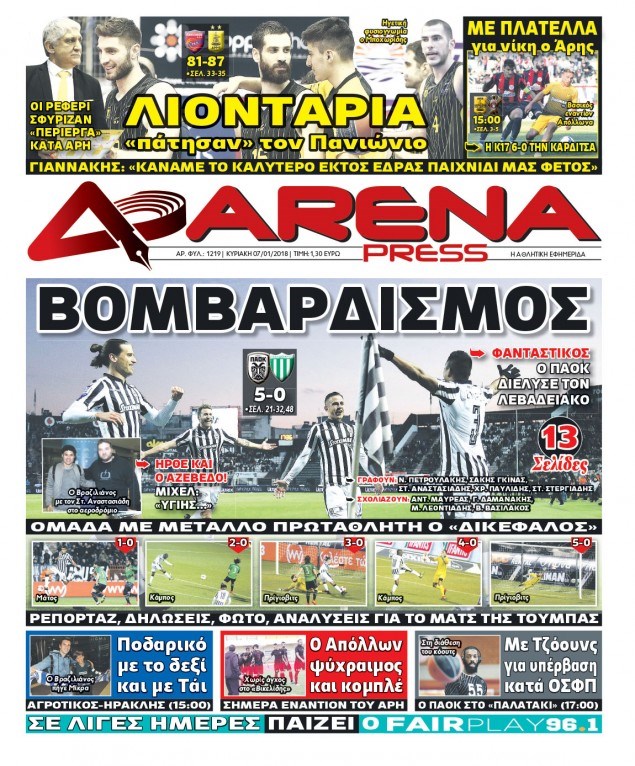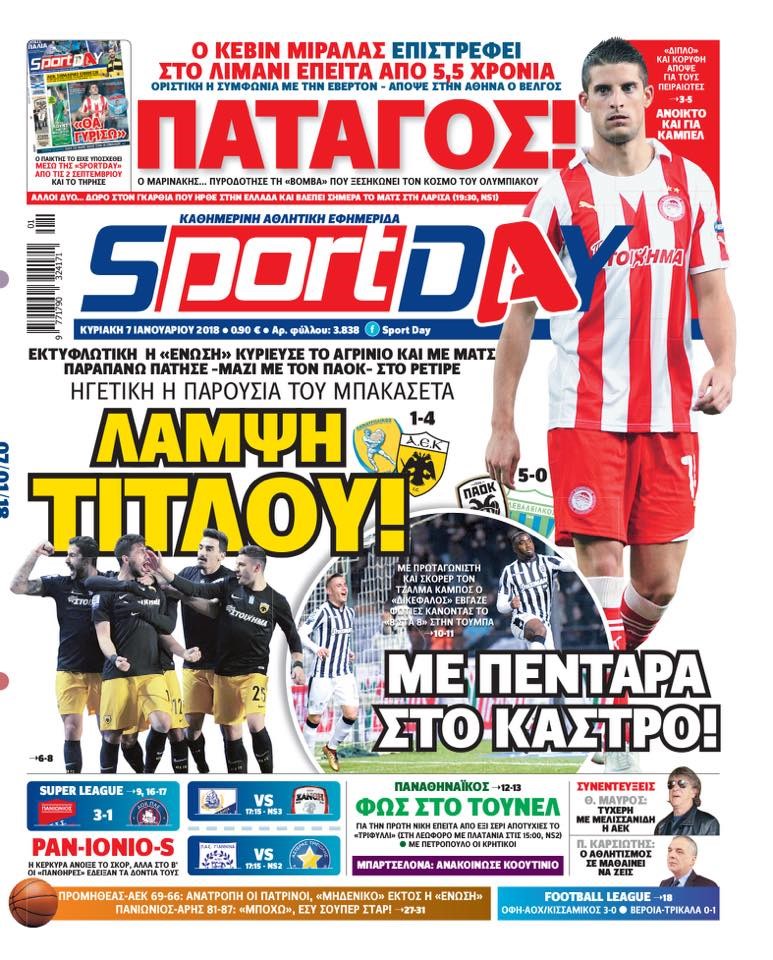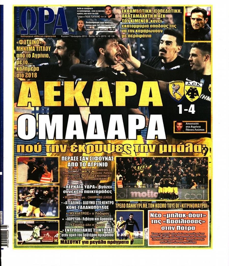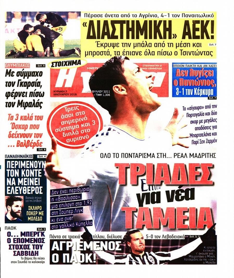 Οι αθλητικές εφημερίδες 7/1/2018 Κώστας Τεό 07:03, Κυριακή 07 Ιανουαρίου 2018 Media Διαβάστε τα σημερινά πρωτοσέλιδα των αθλητικών εφημερίδων: ΑΘΛΗΤΙΚΕΣ ΕΦΗΜΕΡΙΔΕΣ ΠΡΩΤΟΣΕΛΙΔΑ Μοιράσου το: σχολίασε κι εσύ (0 σχόλια) Ακολουθήστε το enikos.gr στο Google News και μάθετε πρώτοι όλες τις ειδήσεις Δείτε όλες τις τελευταίες ειδήσεις από την Ελλάδα και τον Κόσμο στο enikos.gr Ειδήσεις Ροή Ειδήσεων 4 ώρες πριν Χριστούγεννα στα μπλόκα: Επιμένουν στις κινητοποιήσεις τους οι αγρότες – Ανοίγουν τα διόδια το Σαββατοκύριακο 5 ώρες πριν Ουκρανία: Η άνευ προηγουμένου επίθεση σε ρωσικό τάνκερ στη Μεσόγειο και το μήνυμα προς στον Πούτιν – Το «μακρύ χέρι» του Κιέβου 4 ώρες πριν Πούτιν: Τα μηνύματα σε Ευρώπη και ΝΑΤΟ από το μαραθώνιο «σόου» του – Η απαίτηση για «σεβασμό» και η ειρήνη «με τους όρους» της Μόσχας 5 ώρες πριν Τραμπ: Δεν αποκλείει την πιθανότητα ενός πολέμου στη Βενεζουέλα – «Ο Μαδούρο ξέρει καλύτερα από τον καθένα τι ακριβώς θέλω» 5 ώρες πριν Συνεχίζει να προκαλεί ο Μίτσκοσκι: «Για μένα το όνομα Μακεδονία είναι ιερό» 4 ώρες πριν Ανακαλύφθηκαν αρχαία χρυσά νομίσματα 2.200 ετών που απεικονίζουν τον θεό Απόλλωνα – Η άγνωστη σύνδεση με τον Φίλιππο Β΄ της Μακεδονίας 5 ώρες πριν Ύπνος: Μια κρυφή κατάσταση του εγκεφάλου πριν από τον ύπνο μπορεί να είναι το “κλειδί” για υψηλή ευφυΐα και δημιουργικότητα 6 ώρες πριν Αριθμολογία: Οι άνθρωποι που έχουν γεννηθεί αυτές τις 4 ημερομηνίες, συχνά παρεξηγούνται – «Η καλοσύνη τους κρύβει τεράστια δύναμη» 7 ώρες πριν Ξεχάστε το καθάρισμα το Σαββατοκύριακο: Ο «κανόνας των 20 λεπτών» που θα σας λύσει τα χέρια 17 λεπτά πριν Θεσσαλονίκη: Εξαφανίστηκε 13χρονος από χώρο φιλοξενίας ασυνόδευτων ανηλίκων στο Ωραιόκαστρο 27 λεπτά πριν Ντόναλντ Τραμπ: «Πολύ βαριά αντίποινα» στη Συρία – «Πλήττουμε πολύ δυνατά οχυρά του Ισλαμικού Κράτους» 42 λεπτά πριν Εξάρχεια: Ένταση με μολότοφ, χημικά και κρότου λάμψης 58 λεπτά πριν ΗΠΑ: Τραγωδία στην Αλαμπάμα – Σκότωσε την δημοσιογράφο σύζυγό του και αυτοκτόνησε μπροστά στον 3χρονο γιο τους 1 ώρα πριν Πρόταση γάμου στο ΣΕΦ κατά την διάρκεια του αγώνα Ολυμπιακός-Βιλερμπάν – Δείτε βίντεο ENIKOS NETWORK Το ΕΚΑΒ τιμήθηκε από την Ακαδημία Αθηνών για τα 40 χρόνια προσφοράς του Έχετε πραγματικά μεγάλη καρδιά; 10 χαρακτηριστικά όσων έχουν καλοσύνη Αναστολή μέτρων αναγκαστικής εκτέλεσης για κτηνοτρόφους που πλήττονται από την ευλογιά των αιγοπροβάτων Πλήρης επάρκεια προϊόντων στις λαϊκές της Αττικής, παρά τις αγροτικές κινητοποιήσεις – Τι απαντούν οι πωλητές Χαρτογραφώντας το «σημείο χωρίς επιστροφή»: Για πρώτη φορά αποκαλύπτεται με λεπτομέρεια το ακανθώδες όριο της ατμόσφαιρας τ... Η Google καταργεί τη λειτουργία «dark web report» – Πώς θα μπορούν οι χρήστες να διαγράφουν τα δεδομένα τους περισσότερα 22:42 , Παρασκευή 19 Δεκεμβρίου 2025 Γιώργος Γιαννόπουλος για “Το σόι σου”: “Είναι ευτυχία και ευλογία αυτή η σειρά” «Είναι ευτυχία και ευλογία η συγκυρία αυτής της σειράς», θα πει ο Γιώργος Γιαννόπουλος -ο αγαπ... 20:37 , Παρασκευή 19 Δεκεμβρίου 2025 Don’t Forget The Lyrics: Η Έλλη Κοκκίνου υποδέχεται 4 παίκτες που θα κάνουν τα πάντα για να μη χάσουν ούτε… μισή λέξη από τους στίχους Το «Don’t Forget The Lyrics» επιστρέφει απόψε, Παρασκευή 19 Δεκεμβρίου, στις 21:00 με νέο επει... 19:31 , Παρασκευή 19 Δεκεμβρίου 2025 GNTM: Απόψε ο μεγάλος τελικός για τους 4 φιναλίστ Έπειτα από μήνες γεμάτους μόδα, δημιουργία και έντονες αναμετρήσεις, το GNTM 2025 κορυφώνεται,... 18:11 , Παρασκευή 19 Δεκεμβρίου 20