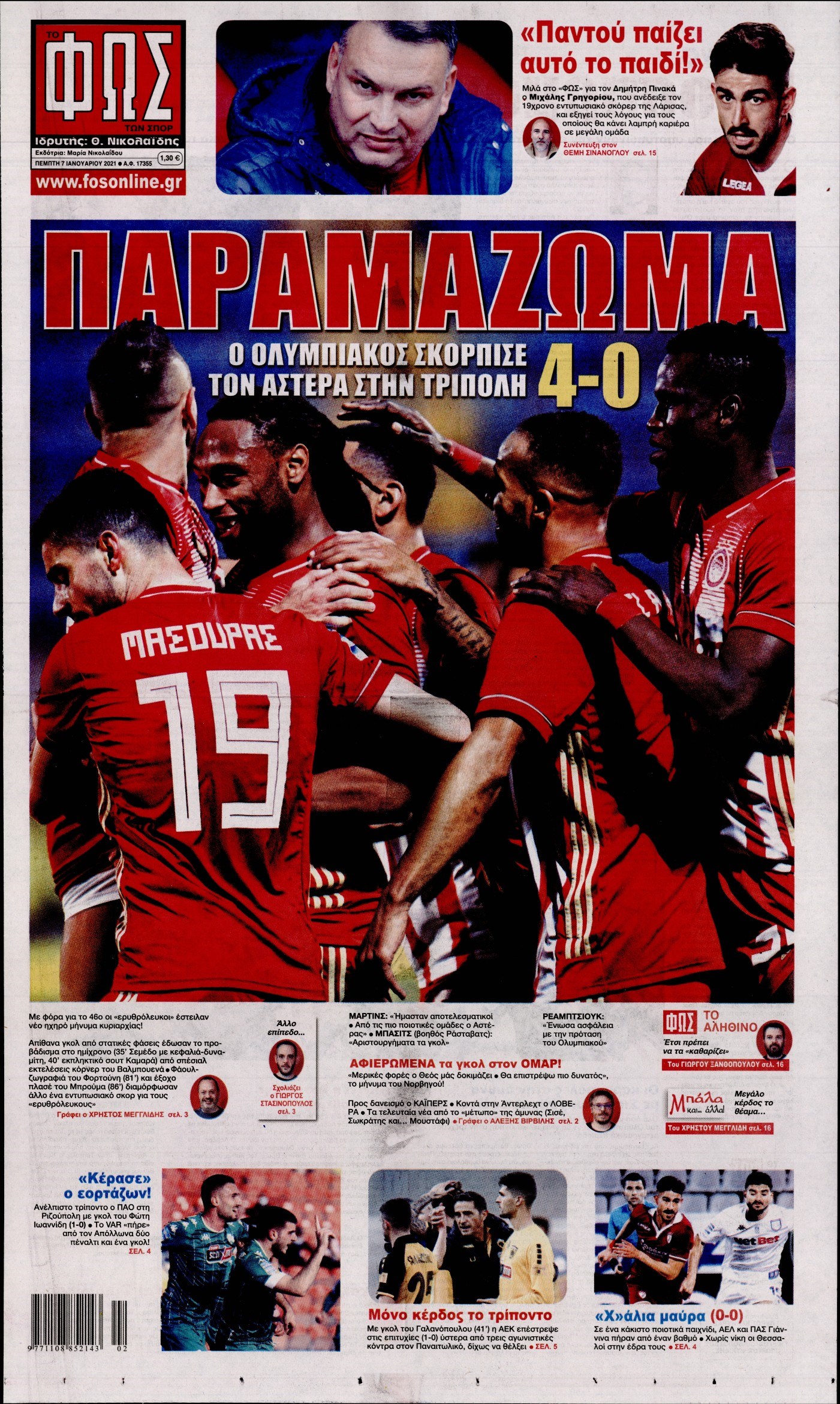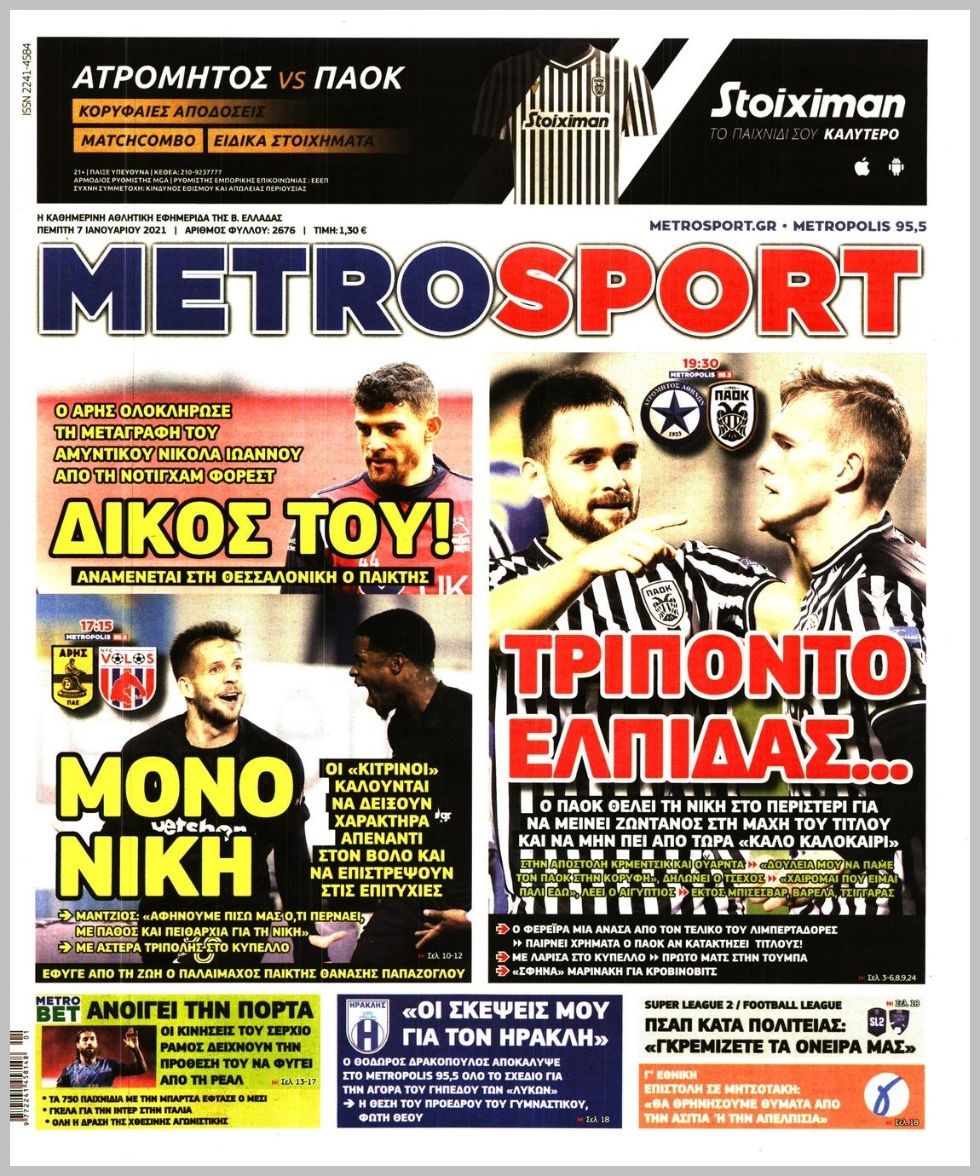 Οι αθλητικές εφημερίδες 7/1/2021 Διονύσης Νίκκας 07:13, Πέμπτη 07 Ιανουαρίου 2021 Media Διαβάστε τα πρωτοσέλιδα των αθλητικών εφημερίδων… ΑΘΛΗΤΙΚΕΣ ΕΦΗΜΕΡΙΔΕΣ Μοιράσου το: σχολίασε κι εσύ (0 σχόλια) Ακολουθήστε το enikos.gr στο Google News και μάθετε πρώτοι όλες τις ειδήσεις Δείτε όλες τις τελευταίες ειδήσεις από την Ελλάδα και τον Κόσμο στο enikos.gr Ειδήσεις Ροή Ειδήσεων 2 ώρες πριν Χριστούγεννα στα μπλόκα: Επιμένουν στις κινητοποιήσεις τους οι αγρότες – Ανοίγουν τα διόδια το Σαββατοκύριακο 2 ώρες πριν Ουκρανία: Η άνευ προηγουμένου επίθεση σε ρωσικό τάνκερ στη Μεσόγειο και το μήνυμα προς στον Πούτιν – Το «μακρύ χέρι» του Κιέβου 1 ώρα πριν Πούτιν: Τα μηνύματα σε Ευρώπη και ΝΑΤΟ από το μαραθώνιο «σόου» του – Η απαίτηση για «σεβασμό» και η ειρήνη «με τους όρους» της Μόσχας 2 ώρες πριν Τραμπ: Δεν αποκλείει την πιθανότητα ενός πολέμου στη Βενεζουέλα – «Ο Μαδούρο ξέρει καλύτερα από τον καθένα τι ακριβώς θέλω» 3 ώρες πριν Συνεχίζει να προκαλεί ο Μίτσκοσκι: «Για μένα το όνομα Μακεδονία είναι ιερό» 1 ώρα πριν Ανακαλύφθηκαν αρχαία χρυσά νομίσματα 2.200 ετών που απεικονίζουν τον θεό Απόλλωνα – Η άγνωστη σύνδεση με τον Φίλιππο Β΄ της Μακεδονίας 2 ώρες πριν Ύπνος: Μια κρυφή κατάσταση του εγκεφάλου πριν από τον ύπνο μπορεί να είναι το “κλειδί” για υψηλή ευφυΐα και δημιουργικότητα 3 ώρες πριν Αριθμολογία: Οι άνθρωποι που έχουν γεννηθεί αυτές τις 4 ημερομηνίες, συχνά παρεξηγούνται – «Η καλοσύνη τους κρύβει τεράστια δύναμη» 4 ώρες πριν Ξεχάστε το καθάρισμα το Σαββατοκύριακο: Ο «κανόνας των 20 λεπτών» που θα σας λύσει τα χέρια 11 λεπτά πριν Βασίλης Σπανούλης: Δεν εμφανίστηκε ούτε ένας δημοσιογράφος στην συνέντευξη Τύπου – «Καλησπέρα στον… κανέναν», δείτε βίντεο 23 λεπτά πριν Πόλεμος στην Ουκρανία: Εφτά νεκροί από ρωσική πυραυλική επίθεση στο λιμάνι της Οδησσού 26 λεπτά πριν ΗΠΑ: Η κυβέρνηση του Ντόναλντ Τραμπ άρχισε να δημοσιοποιεί τα αρχεία Έπσταϊν 38 λεπτά πριν Σάμος: Άνοιξε το μπλόκο των αγροτών στον κόμβο Κοκκαρίου – Σε νέα συνεδρίαση θα καθορίσουν την στάση τους 46 λεπτά πριν Άνω Λιόσια: Πυροβολισμοί σε επιχείρηση με χαλιά – Εντοπίστηκαν 10 κάλυκες ENIKOS NETWORK Το ΕΚΑΒ τιμήθηκε από την Ακαδημία Αθηνών για τα 40 χρόνια προσφοράς του Έχετε πραγματικά μεγάλη καρδιά; 10 χαρακτηριστικά όσων έχουν καλοσύνη Αναστολή μέτρων αναγκαστικής εκτέλεσης για κτηνοτρόφους που πλήττονται από την ευλογιά των αιγοπροβάτων Πλήρης επάρκεια προϊόντων στις λαϊκές της Αττικής, παρά τις αγροτικές κινητοποιήσεις – Τι απαντούν οι πωλητές Χαρτογραφώντας το «σημείο χωρίς επιστροφή»: Για πρώτη φορά αποκαλύπτεται με λεπτομέρεια το ακανθώδες όριο της ατμόσφαιρας τ... Η Google καταργεί τη λειτουργία «dark web report» – Πώς θα μπορούν οι χρήστες να διαγράφουν τα δεδομένα τους περισσότερα 22:42 , Παρασκευή 19 Δεκεμβρίου 2025 Γιώργος Γιαννόπουλος για “Το σόι σου”: “Είναι ευτυχία και ευλογία αυτή η σειρά” «Είναι ευτυχία και ευλογία η συγκυρία αυτής της σειράς», θα πει ο Γιώργος Γιαννόπουλος -ο αγαπ... 20:37 , Παρασκευή 19 Δεκεμβρίου 2025 Don’t Forget The Lyrics: Η Έλλη Κοκκίνου υποδέχεται 4 παίκτες που θα κάνουν τα πάντα για να μη χάσουν ούτε… μισή λέξη από τους στίχους Το «Don’t Forget The Lyrics» επιστρέφει απόψε, Παρασκευή 19 Δεκεμβρίου, στις 21:00 με νέο επει... 19:31 , Παρασκευή 19 Δεκεμβρίου 2025 GNTM: Απόψε ο μεγάλος τελικός για τους 4 φιναλίστ Έπειτα από μήνες γεμάτους μόδα, δημιουργία και έντονες αναμετρήσεις, το GNTM 2025 κορυφώνεται,... 18:11 , Παρασκευή 19 Δεκεμβρ