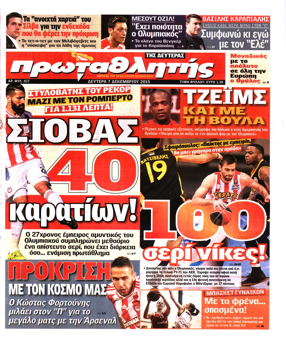 Οι αθλητικές εφημερίδες 7/12/2015 Enikos Newsroom 06:16, Δευτέρα 07 Δεκεμβρίου 2015 Media Διαβάστε τα σημερινά πρωτοσέλιδα των αθλητικών εφημερίδων. ΑΘΛΗΤΙΚΕΣ ΕΦΗΜΕΡΙΔΕΣ ΕΦΗΜΕΡΙΔΕΣ Μοιράσου το: σχολίασε κι εσύ (0 σχόλια) Ακολουθήστε το enikos.gr στο Google News και μάθετε πρώτοι όλες τις ειδήσεις Δείτε όλες τις τελευταίες ειδήσεις από την Ελλάδα και τον Κόσμο στο enikos.gr Ειδήσεις Ροή Ειδήσεων 58 λεπτά πριν Υπόθεση Έπσταϊν: Το Υπουργείο Δικαιοσύνης δημοσιοποίησε μια σειρά από εξαιρετικά επεξεργασμένα αρχεία – «Λείπουν τα πιο σημαντικά έγγραφα», λένε οι Δημοκρατικοί 3 ώρες πριν Σαρωτικοί οι έλεγχοι στους δρόμους ενόψει εορτών – Μπλόκα της τροχαίας σε κεντρικές αρτηρίες της Αττικής 1 ώρα πριν ΟΝΕΧ – MEGATUGS: Ξεκίνησε η ναυπήγηση ρυμουλκών στην Ελλάδα – Προθάλαμος πολεμικών πλοίων – Δείτε φωτογραφίες και βίντεο 1 ώρα πριν Καιρός: Αλλαγή σκηνικού σήμερα με βροχές και πτώση της θερμοκρασίας – Οι προβλέψεις των μετεωρολόγων για τα Χριστούγεννα 10 ώρες πριν Χριστούγεννα στα μπλόκα: Επιμένουν στις κινητοποιήσεις τους οι αγρότες – Ανοίγουν τα διόδια το Σαββατοκύριακο 3 ώρες πριν Αυγά: Πόσα μπορείτε να τρώτε την ημέρα με ασφάλεια για μέγιστη πρόσληψη πρωτεΐνης 3 ώρες πριν Τα ζώδια σήμερα, Σάββατο 20 Δεκεμβρίου: Παρθένοι, το σύμπαν σας δίνει το κλειδί 2 ώρες πριν Οπτική ψευδαίσθηση: Μόνο αν είσαι ο Σέρλοκ Χολμς θα βρεις τον αριθμό «87» σε 7 δευτερόλεπτα 38 λεπτά πριν Αρχαιολόγοι ανακάλυψαν σε χωράφι απεικόνιση 600 ετών ενός Αγίου – Τα στοιχεία που δείχνουν ότι μαρτύρησε 7 λεπτά πριν Ο «χάρτης» με τις αυξήσεις και τις φοροελαφρύνσεις του 2026 – Ποιοι και πόσα κερδίζουν 15 λεπτά πριν Η τέλεια συνταγή για cookies με κομμάτια σοκολάτας 23 λεπτά πριν MyHealth App: Τα στοιχεία για τον Προσωπικό Βοηθό Υγείας Πολίτη – Τι ερωτήματα έγιναν μέσα σε 7 ημέρες 31 λεπτά πριν Τρομεροί γονείς: Η Μαρία Καβογιάννη εισβάλλει στο σπίτι της οικογένειας Στεφανίδη 38 λεπτά πριν Αρχαιολόγοι ανακάλυψαν σε χωράφι απεικόνιση 600 ετών ενός Αγίου – Τα στοιχεία που δείχνουν ότι μαρτύρησε ENIKOS NETWORK Το τεστ των 10 δευτερολέπτων που μπορεί να προβλέψει το προσδόκιμο ζωής σας – Τι λέει ειδικός του Cleveland Επιλέξτε καρέκλα για να μάθετε ποια είναι τα κρυφά χαρακτηριστικά σας – Τι αποκάλυψε για εσάς αυτό το τεστ προσωπικότητας; Mega χριστουγεννιάτικη φορολοταρία: «Κλείδωσε» η ημερομηνία για την κλήρωση – Ερωτήσεις και απαντήσεις Αναστολή μέτρων αναγκαστικής εκτέλεσης για κτηνοτρόφους που πλήττονται από την ευλογιά των αιγοπροβάτων Χαρτογραφώντας το «σημείο χωρίς επιστροφή»: Για πρώτη φορά αποκαλύπτεται με λεπτομέρεια το ακανθώδες όριο της ατμόσφαιρας τ... Η Google καταργεί τη λειτουργία «dark web report» – Πώς θα μπορούν οι χρήστες να διαγράφουν τα δεδομένα τους περισσότερα 08:14 , Σάββατο 20 Δεκεμβρίου 2025 Τρομεροί γονείς: Η Μαρία Καβογιάννη εισβάλλει στο σπίτι της οικογένειας Στεφανίδη Όσα θα δούμε στο νέο διπλό επεισόδιο της σειράς «Τρομεροί γονείς», σήμερα Σάββατο 20 Δεκεμβρίο... 05:48 , Σάββατο 20 Δεκεμβρίου 2025 Οι οικονομικές εφημερίδες 20/12/2025 Διαβάστε τα πρωτοσέλιδα από τις οικονομικές εφημερίδες, σήμερα 20/12/2025. 05:43 , Σάββατο 20 Δεκεμβρίου 2025 Οι αθλητικές εφημερίδες 20/12/2025 Διαβάστε τα πρωτοσέλιδα από τις αθλητικές εφημερίδες, σήμερα 20/12/2025. 05:38 , Σάββατο 20 Δεκεμβρίου 2025 Οι πολιτικές εφημερίδες 20/12/2025 Διαβάστε τα πρωτοσέλιδα από τις πολιτικές εφημερίδες, σήμερα 20/12/2025. ΤΕΛΕΥΤΑΙΕΣ ΕΙΔΗΣΕΙΣ 7 λεπτά πριν Ο «χάρτης» με τις αυξήσεις και τις φοροελαφρύνσε