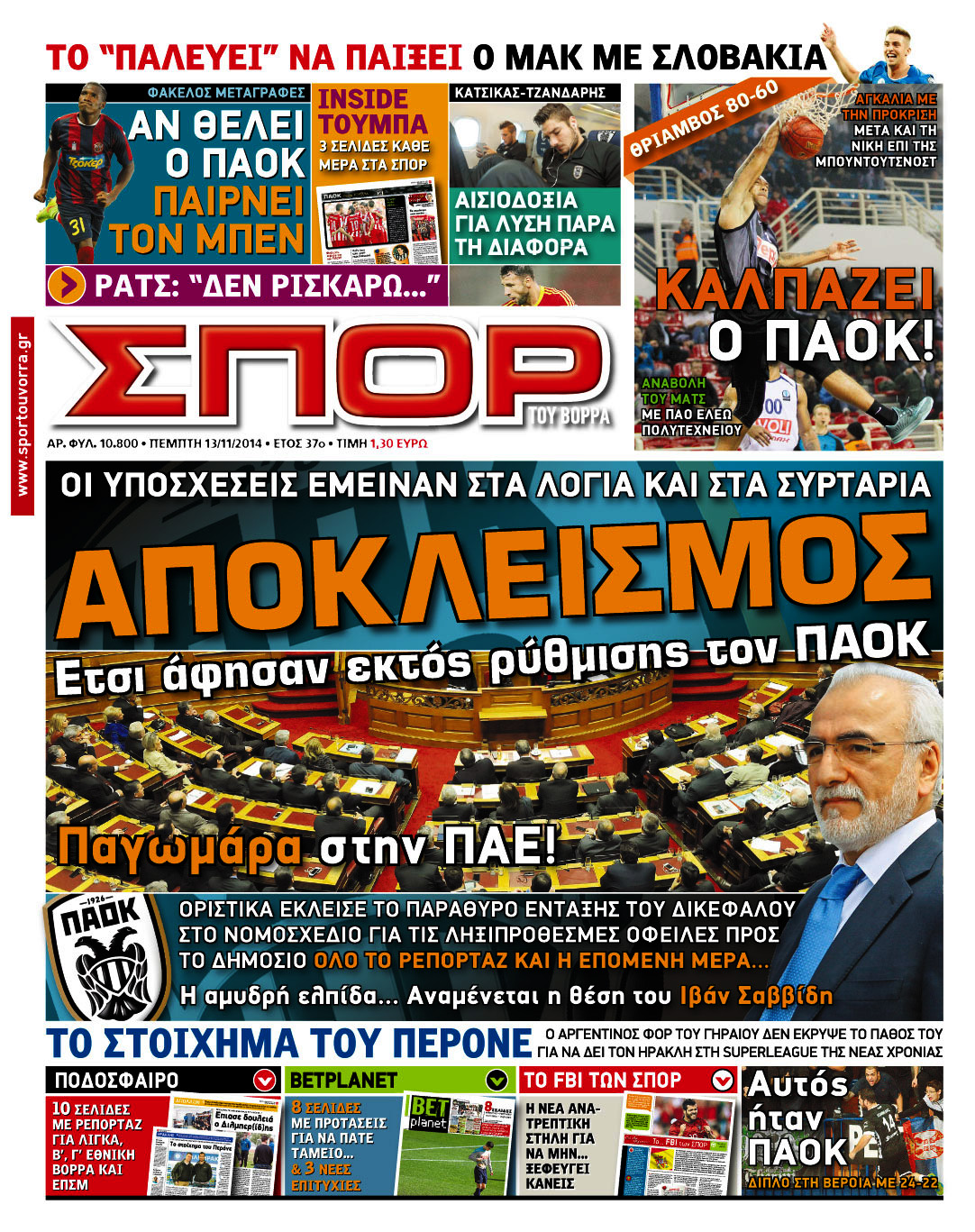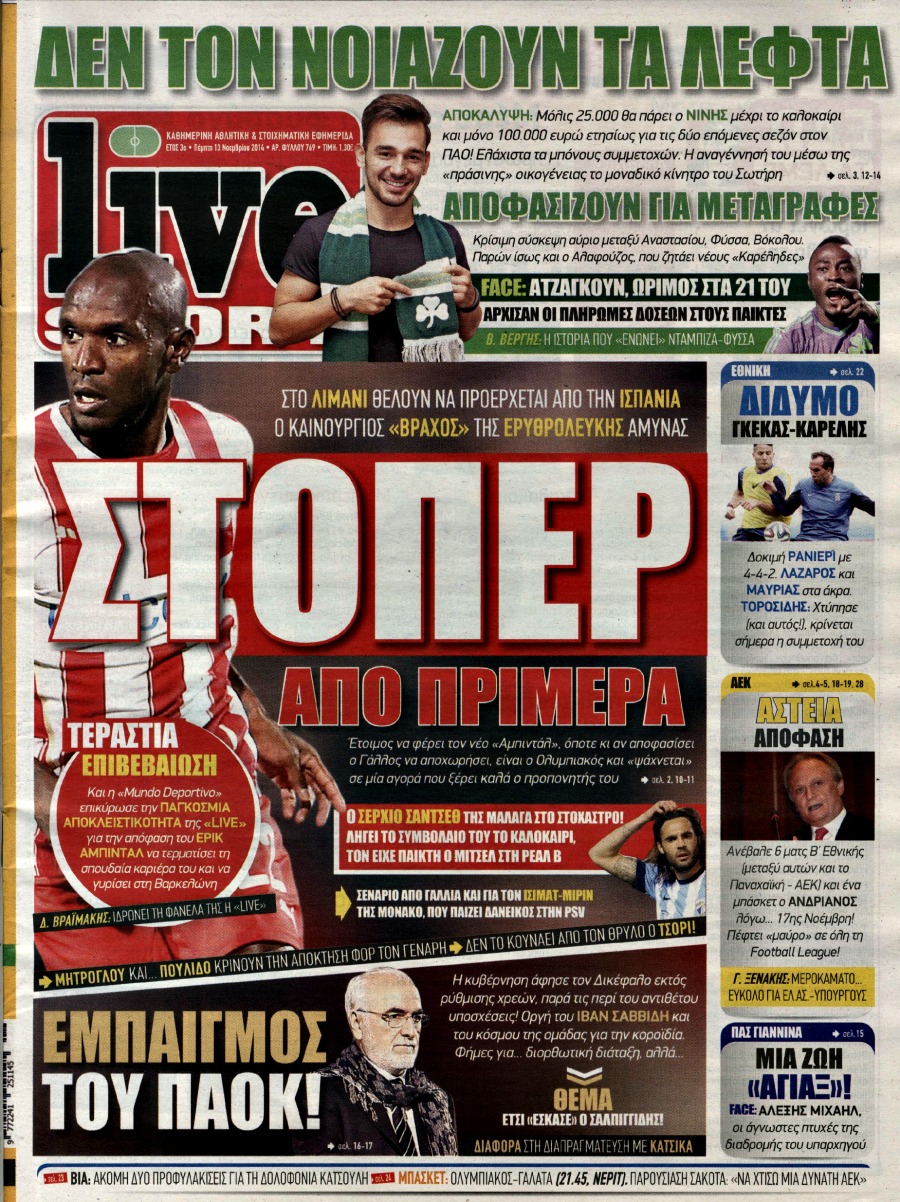 Οι αθλητικές εφημερίδες Enikos Newsroom 07:54, Πέμπτη 13 Νοεμβρίου 2014 Media Οι αθλητικές εφημερίδες Διαβάστε τα πρωτοσέλιδα των αθλητικών εφημερίδων: ΑΘΛΗΤΙΚΕΣ ΕΦΗΜΕΡΙΔΕΣ ΕΦΗΜΕΡΙΔΕΣ ΠΡΩΤΟΣΕΛΙΔΑ Μοιράσου το: σχολίασε κι εσύ (0 σχόλια) Ακολουθήστε το enikos.gr στο Google News και μάθετε πρώτοι όλες τις ειδήσεις Δείτε όλες τις τελευταίες ειδήσεις από την Ελλάδα και τον Κόσμο στο enikos.gr Ειδήσεις Ροή Ειδήσεων 8 ώρες πριν Χριστούγεννα στα μπλόκα: Επιμένουν στις κινητοποιήσεις τους οι αγρότες – Ανοίγουν τα διόδια το Σαββατοκύριακο 9 ώρες πριν Ουκρανία: Η άνευ προηγουμένου επίθεση σε ρωσικό τάνκερ στη Μεσόγειο και το μήνυμα προς στον Πούτιν – Το «μακρύ χέρι» του Κιέβου 8 ώρες πριν Πούτιν: Τα μηνύματα σε Ευρώπη και ΝΑΤΟ από το μαραθώνιο «σόου» του – Η απαίτηση για «σεβασμό» και η ειρήνη «με τους όρους» της Μόσχας 7 ώρες πριν ΗΠΑ: Η κυβέρνηση του Ντόναλντ Τραμπ άρχισε να δημοσιοποιεί τα αρχεία Έπσταϊν 7 ώρες πριν Άνω Λιόσια: Πυροβολισμοί σε επιχείρηση με χαλιά – Εντοπίστηκαν 10 κάλυκες 55 λεπτά πριν Αυγά: Πόσα μπορείτε να τρώτε την ημέρα με ασφάλεια για μέγιστη πρόσληψη πρωτεΐνης 1 ώρα πριν Τα ζώδια σήμερα, Σάββατο 20 Δεκεμβρίου: Παρθένοι, το σύμπαν σας δίνει το κλειδί 8 ώρες πριν Ανακαλύφθηκαν αρχαία χρυσά νομίσματα 2.200 ετών που απεικονίζουν τον θεό Απόλλωνα – Η άγνωστη σύνδεση με τον Φίλιππο Β΄ της Μακεδονίας 9 ώρες πριν Ύπνος: Μια κρυφή κατάσταση του εγκεφάλου πριν από τον ύπνο μπορεί να είναι το “κλειδί” για υψηλή ευφυΐα και δημιουργικότητα 15 λεπτά πριν Κίριλ Ντμίτριεφ: Στις ΗΠΑ ο απεσταλμένος της Ρωσίας για συνομιλίες με τους ομολόγους του, Γουίτκοφ και Κούσνερ 23 λεπτά πριν ΔΕΔΔΗΕ: Διακοπές ρεύματος σήμερα (20/12) στην Αθήνα και σε άλλες 7 περιοχές της Αττικής 31 λεπτά πριν Κολομβία: Είκοσι χρόνια κάθειρξη σε πρώην ανώτερο αξιωματικό για 72 εκτελέσεις αμάχων 39 λεπτά πριν Οπτική ψευδαίσθηση: Μόνο αν είσαι ο Σέρλοκ Χολμς θα βρεις τον αριθμό «87» σε 7 δευτερόλεπτα 46 λεπτά πριν Σαρωτικοί οι έλεγχοι στους δρόμους ενόψει εορτών – Μπλόκα της τροχαίας σε κεντρικές αρτηρίες της Αττικής ENIKOS NETWORK Πρέπει να αποδέχεστε ή να απορρίπτετε όλα τα cookies; Ένας ειδικός εξηγεί Η αγαπημένη λιχουδιά των πόνι που μπορεί να ενισχύσει όραση, εγκέφαλο και ανοσοποιητικό Αναστολή μέτρων αναγκαστικής εκτέλεσης για κτηνοτρόφους που πλήττονται από την ευλογιά των αιγοπροβάτων Πλήρης επάρκεια προϊόντων στις λαϊκές της Αττικής, παρά τις αγροτικές κινητοποιήσεις – Τι απαντούν οι πωλητές Χαρτογραφώντας το «σημείο χωρίς επιστροφή»: Για πρώτη φορά αποκαλύπτεται με λεπτομέρεια το ακανθώδες όριο της ατμόσφαιρας τ... Η Google καταργεί τη λειτουργία «dark web report» – Πώς θα μπορούν οι χρήστες να διαγράφουν τα δεδομένα τους περισσότερα 05:48 , Σάββατο 20 Δεκεμβρίου 2025 Οι οικονομικές εφημερίδες 20/12/2025 Διαβάστε τα πρωτοσέλιδα από τις οικονομικές εφημερίδες, σήμερα 20/12/2025. 05:43 , Σάββατο 20 Δεκεμβρίου 2025 Οι αθλητικές εφημερίδες 20/12/2025 Διαβάστε τα πρωτοσέλιδα από τις αθλητικές εφημερίδες, σήμερα 20/12/2025. 05:38 , Σάββατο 20 Δεκεμβρίου 2025 Οι πολιτικές εφημερίδες 20/12/2025 Διαβάστε τα πρωτοσέλιδα από τις πολιτικές εφημερίδες, σήμερα 20/12/2025. 04:20 , Σάββατο 20 Δεκεμβρίου 2025 Αγγελική Νικολούλη: Τα συλλυπητήρια για την απώλεια της Ειρήνης Μαρινάκη Τα συλληπητήρια στον πρόεδρο του Mega, τον Βαγγέλη Μαρινάκη, για την απώλεια της μητέρας του Ε... ΤΕΛΕΥΤΑΙΕΣ ΕΙΔΗΣΕΙΣ 15 λεπτά πριν Κίριλ Ντμίτριεφ: Στις ΗΠΑ ο απεσταλμένος της Ρωσίας... 23 λεπτά πριν ΔΕΔΔΗΕ: Δ