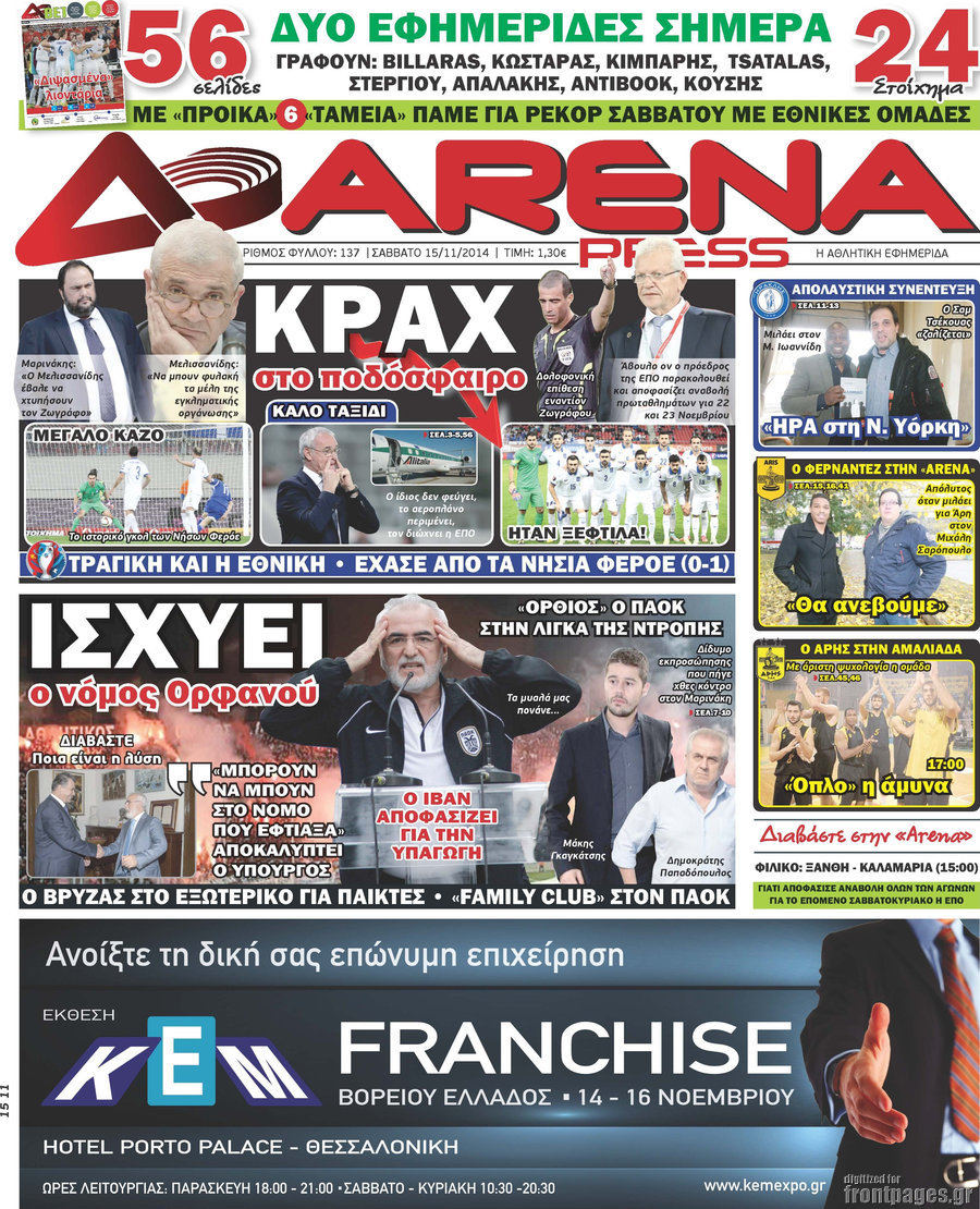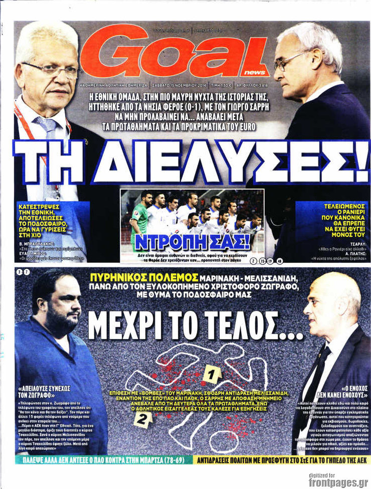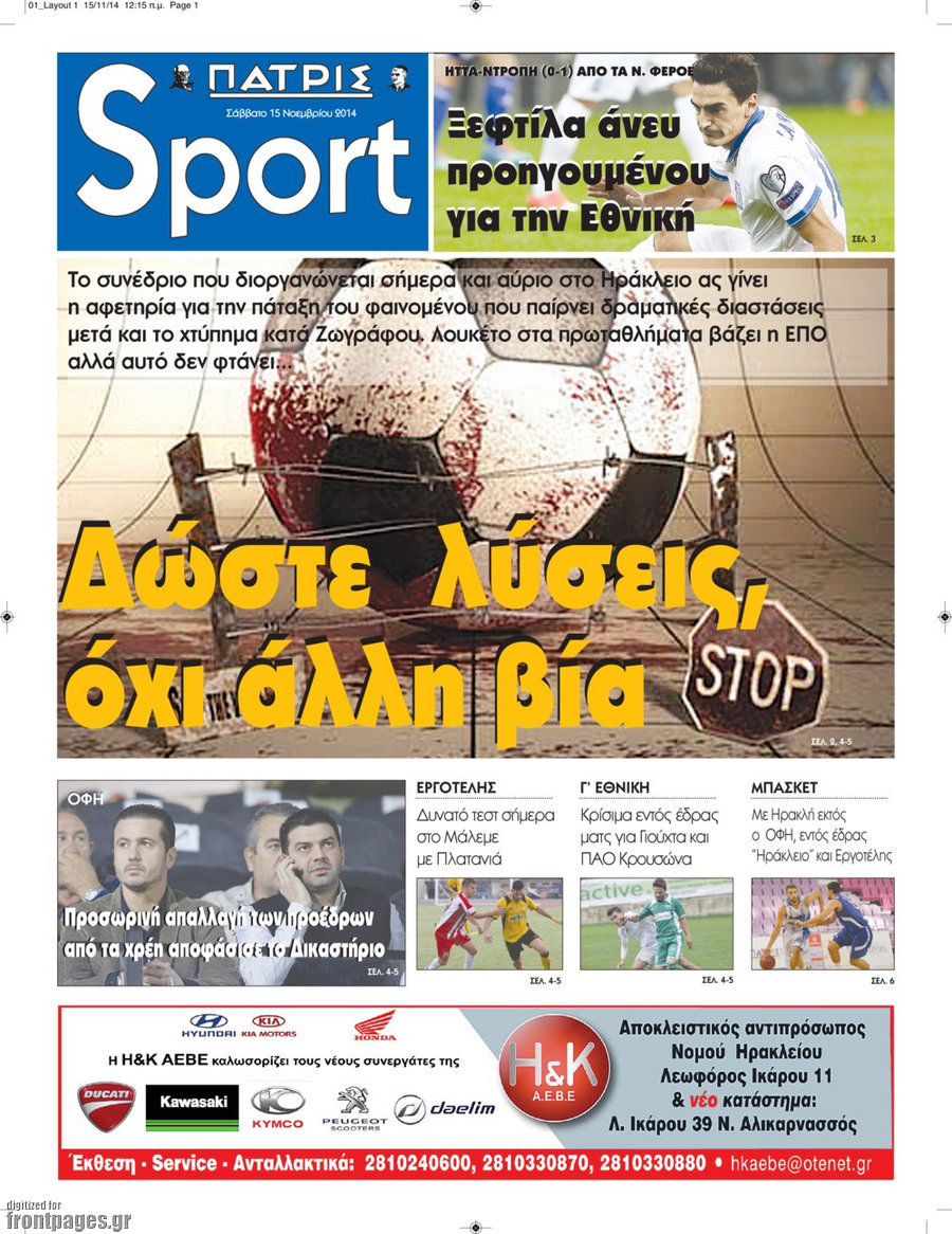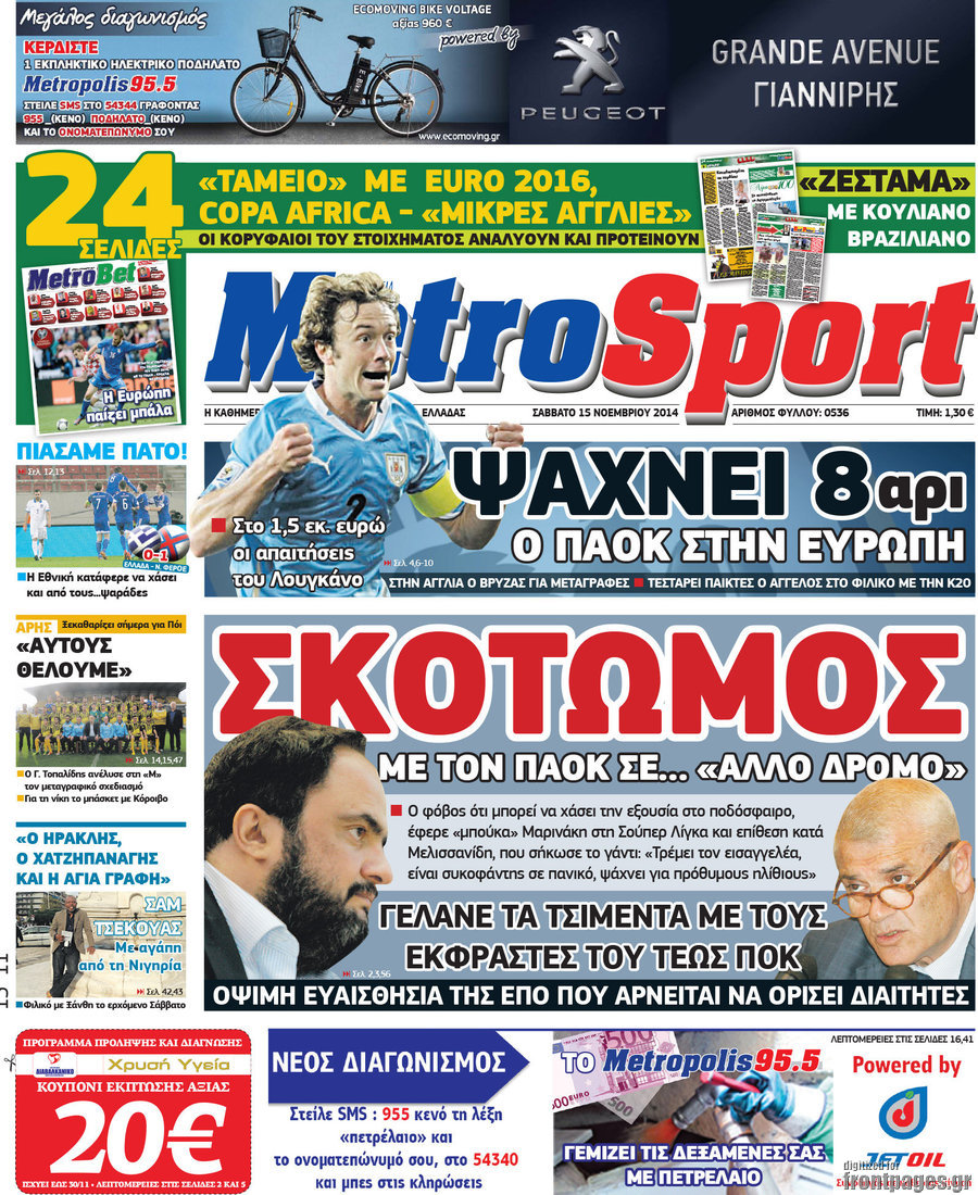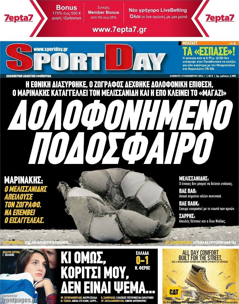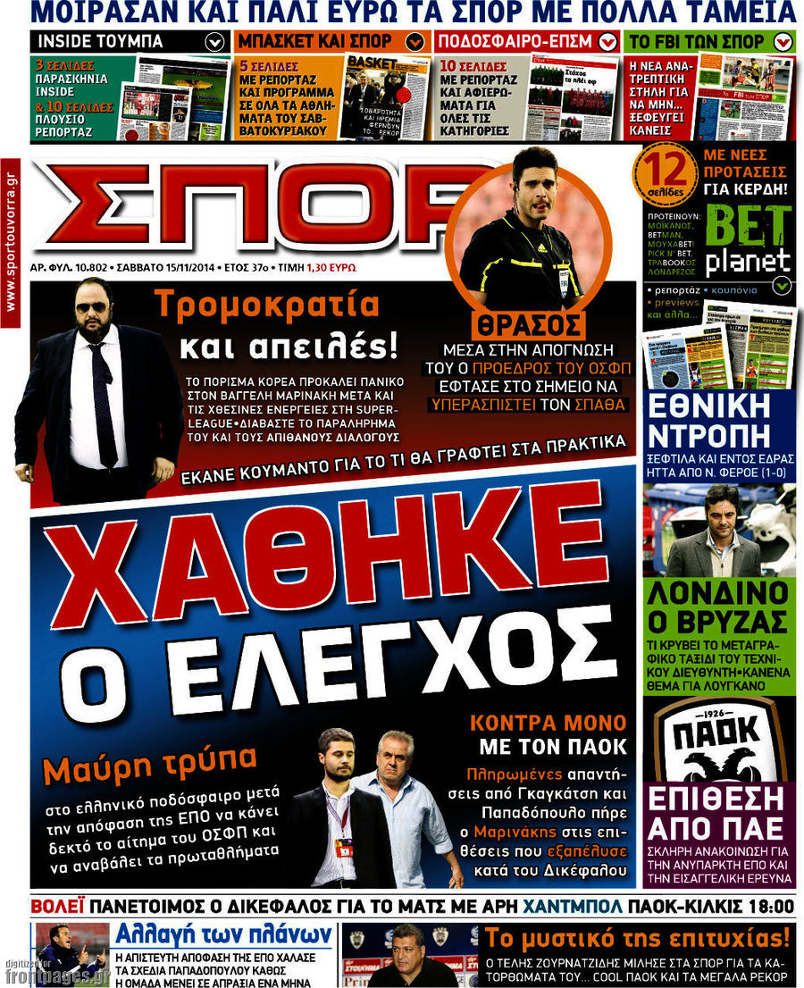 Οι αθλητικές εφημερίδες Enikos Newsroom 07:50, Σάββατο 15 Νοεμβρίου 2014 Media Οι αθλητικές εφημερίδες ΑΘΛΗΤΙΚΕΣ ΕΦΗΜΕΡΙΔΕΣ ΠΡΩΤΟΣΕΛΙΔΑ Μοιράσου το: σχολίασε κι εσύ (0 σχόλια) Ακολουθήστε το enikos.gr στο Google News και μάθετε πρώτοι όλες τις ειδήσεις Δείτε όλες τις τελευταίες ειδήσεις από την Ελλάδα και τον Κόσμο στο enikos.gr Ειδήσεις Ροή Ειδήσεων 55 λεπτά πριν Νέα Πέραμος: Πού στρέφονται οι έρευνες των αρχών για το άγριο έγκλημα με θύμα τον 27χρονο επιχειρηματία – «Δεν είχε πειράξει κανέναν» λένε οι γονείς του 1 ώρα πριν Μητσοτάκης για τη συνταγματική αναθεώρηση: «Φιλοδοξία μου είναι το 2030 να έχουμε κλείσει όλες τις εκκρεμότητες με το πελατειακό κράτος» 47 λεπτά πριν Εξαφάνιση Λόρας: Ο πατέρας της ήταν αυτός που αποκάλυψε ότι ταξίδεψε στη Γερμανία – Το πρόσωπο-«κλειδί», η νέα μαρτυρία και οι «στοχευμένες» κινήσεις της ανήλικης 4 ώρες πριν Δημοσκόπηση Alco: Στις 13 μονάδες η διαφορά ΝΔ-ΠΑΣΟΚ – Πώς αξιολογούν οι πολίτες τις νέες πολιτικές κινήσεις; 24 λεπτά πριν The Washington Post: Τι έχουμε μάθει ως τώρα από τα νέα στοιχεία στην υπόθεση Επστάιν – «Η αλήθεια να φτάσει στο κόκκαλο» 3 ώρες πριν Ποιος είναι ο έρωτας της ζωή σας; Ανακαλύψτε την αδελφή-ψυχή σας με βάση τον μήνα γέννησή σας 5 ώρες πριν Λευκές περσίδες ξανά: Η απλή μέθοδος για να εξαφανίσετε την κιτρινίλα χωρίς τρίψιμο 1 ώρα πριν Ύπνος: Η βραδινή ρουτίνα που εγγυάται 8 ώρες ξεκούρασης, σύμφωνα με ειδικό 28 λεπτά πριν Ανακαλύφθηκε σπάνιο ψηφιδωτό από τη Βίλα των Αμαζόνων σε αρχαία ελληνιστική πόλη – Η εικονογραφία του Νείλου και η μυστηριώδης σκηνή με το άρμα 5 λεπτά πριν Ιατρική επανάσταση: Πραγματοποιήθηκε στην Ισπανία μεταμόσχευση προσώπου με δότρια γυναίκα που υποβλήθηκε σε ευθανασία 15 λεπτά πριν Συνταγματική Αναθεώρηση: Οι τέσσερις «πυλώνες» της – Σε τι αντιδρούν τα κόμματα 24 λεπτά πριν The Washington Post: Τι έχουμε μάθει ως τώρα από τα νέα στοιχεία στην υπόθεση Επστάιν – «Η αλήθεια να φτάσει στο κόκκαλο» 28 λεπτά πριν Ανακαλύφθηκε σπάνιο ψηφιδωτό από τη Βίλα των Αμαζόνων σε αρχαία ελληνιστική πόλη – Η εικονογραφία του Νείλου και η μυστηριώδης σκηνή με το άρμα 32 λεπτά πριν Ιαπωνία: Παίκτης του βόλεϊ χτύπησε κατά λάθος επόπτη, «βούτηξε» και υποκλίθηκε για να ζητήσει συγγνώμη – Τι είναι το Dogeza – ΒΙΝΤΕΟ ENIKOS NETWORK 5 πράγματα που κάνουν μαζί τα ευτυχισμένα ζευγάρια Δύο παιδιά με γρίπη στις ΜΕΘ – Συνεχίζεται η απειλή των εποχικών λοιμώξεων Επιθεώρηση Εργασίας: Αυξήθηκαν κατά 4% οι έλεγχοι το 2025 – Στα 53,4 εκατ. ευρώ τα πρόστιμα Τα ξενοδοχεία κατέθεσαν αγωγή κατά της Booking για παράνομες ρήτρες Ευπάθεια στο moltbook ai αποκαλύπτει email, tokens σύνδεσης και api keys Αυτός είναι ο ρόλος της μικρής τρύπας στους νυχοκόπτες – «Είμαι ο μόνος που δεν το ήξερε;»» περισσότερα 18:18 , Δευτέρα 02 Φεβρουαρίου 2026 Άγιος Έρωτας: Η μικρή Ελευθερία δεν θέλει τους νέους της γονείς και η Χλόη καταφεύγει στον πατέρα Νικόλαο Όσα θα δούμε απόψε στο νέο επεισόδιο της σειράς “Άγιος Έρωτας” στις 22:00 στον Alp... 18:07 , Δευτέρα 02 Φεβρουαρίου 2026 MasterChef 10: Το πρώτο Mystery Box έχει την παιχνιδιάρικη υπογραφή του Πάνου Ιωαννίδη Μετά τις πρώτες εβδομάδες και τις διαδικασίες, που προηγήθηκαν, 14 διαγωνιζόμενοι της πρώτης μ... 17:45 , Δευτέρα 02 Φεβρουαρίου 2026 Grand Hotel: Ο Πέτρος και η Αλίκη είναι και πάλι μαζί Καταιγιστικές οι εξελίξεις στο νέο διπλό επεισόδιο της σειράς “Grand Hotel” στις 2... 17:15 , Δευτέρα 02 Φεβρουαρίου 2026 Να μ’ αγαπάς: Η Φωτεινή ανακοινώνει στη Ζωή πως είναι έγκυος, απόψε στις 20:00, με διπλό επ