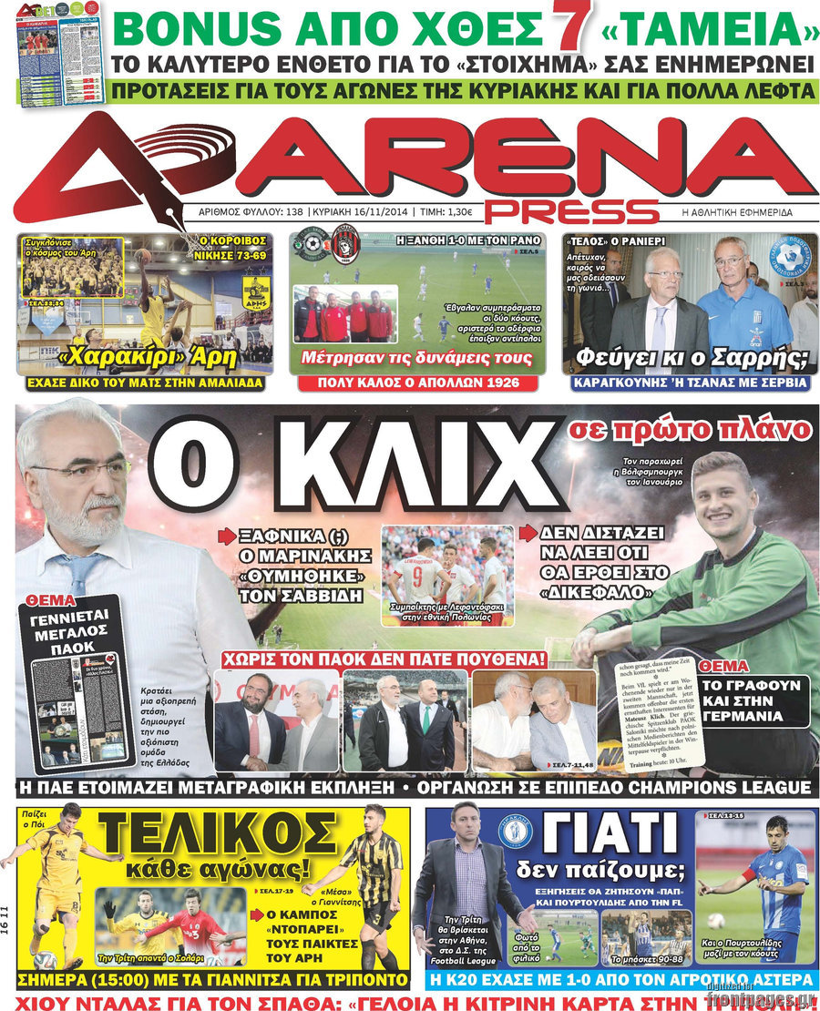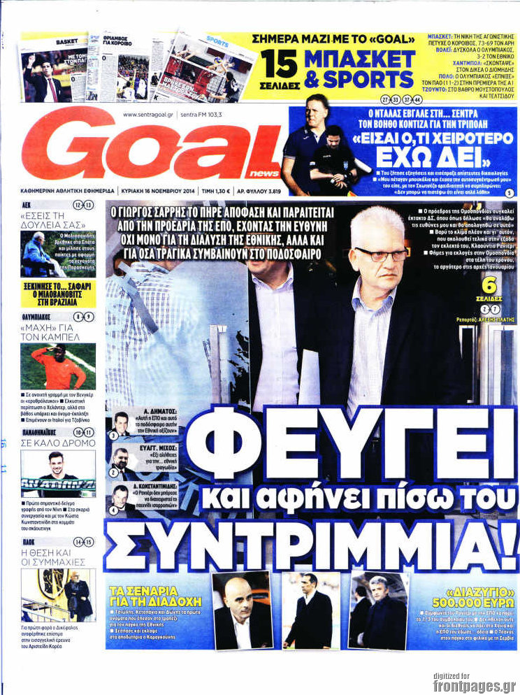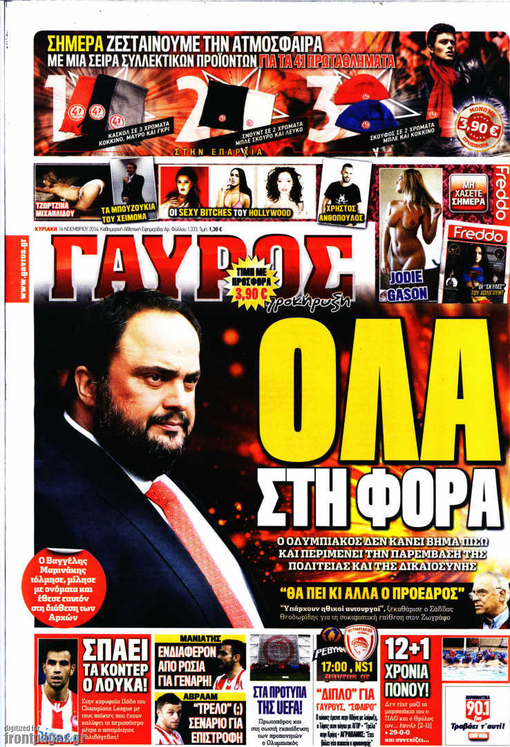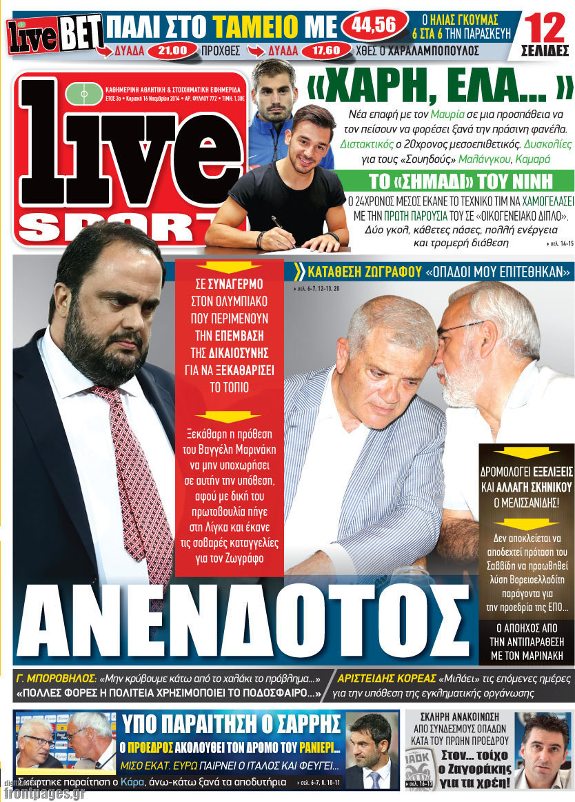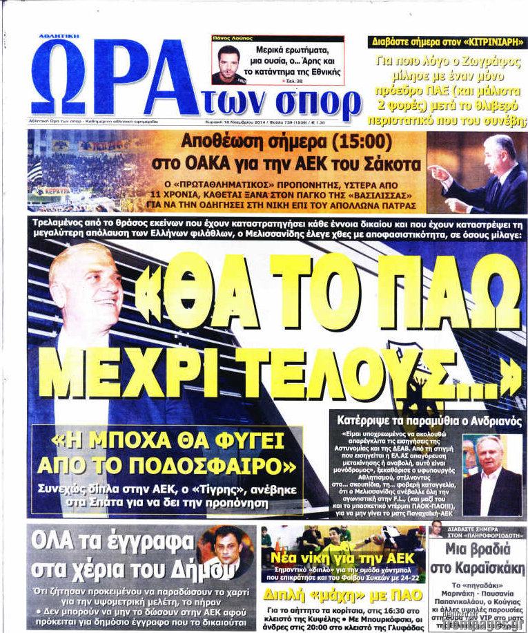 Οι αθλητικές εφημερίδες Enikos Newsroom 07:48, Κυριακή 16 Νοεμβρίου 2014 Media Οι αθλητικές εφημερίδες ΑΘΛΗΤΙΚΕΣ ΕΦΗΜΕΡΙΔΕΣ ΠΡΩΤΟΣΕΛΙΔΑ Μοιράσου το: σχολίασε κι εσύ (0 σχόλια) Ακολουθήστε το enikos.gr στο Google News και μάθετε πρώτοι όλες τις ειδήσεις Δείτε όλες τις τελευταίες ειδήσεις από την Ελλάδα και τον Κόσμο στο enikos.gr Ειδήσεις Ροή Ειδήσεων 54 λεπτά πριν Νέα Πέραμος: Πού στρέφονται οι έρευνες των αρχών για το άγριο έγκλημα με θύμα τον 27χρονο επιχειρηματία – «Δεν είχε πειράξει κανέναν» λένε οι γονείς του 1 ώρα πριν Μητσοτάκης για τη συνταγματική αναθεώρηση: «Φιλοδοξία μου είναι το 2030 να έχουμε κλείσει όλες τις εκκρεμότητες με το πελατειακό κράτος» 47 λεπτά πριν Εξαφάνιση Λόρας: Ο πατέρας της ήταν αυτός που αποκάλυψε ότι ταξίδεψε στη Γερμανία – Το πρόσωπο-«κλειδί», η νέα μαρτυρία και οι «στοχευμένες» κινήσεις της ανήλικης 4 ώρες πριν Δημοσκόπηση Alco: Στις 13 μονάδες η διαφορά ΝΔ-ΠΑΣΟΚ – Πώς αξιολογούν οι πολίτες τις νέες πολιτικές κινήσεις; 23 λεπτά πριν The Washington Post: Τι έχουμε μάθει ως τώρα από τα νέα στοιχεία στην υπόθεση Επστάιν – «Η αλήθεια να φτάσει στο κόκκαλο» 2 ώρες πριν Ποιος είναι ο έρωτας της ζωή σας; Ανακαλύψτε την αδελφή-ψυχή σας με βάση τον μήνα γέννησή σας 5 ώρες πριν Λευκές περσίδες ξανά: Η απλή μέθοδος για να εξαφανίσετε την κιτρινίλα χωρίς τρίψιμο 1 ώρα πριν Ύπνος: Η βραδινή ρουτίνα που εγγυάται 8 ώρες ξεκούρασης, σύμφωνα με ειδικό 27 λεπτά πριν Ανακαλύφθηκε σπάνιο ψηφιδωτό από τη Βίλα των Αμαζόνων σε αρχαία ελληνιστική πόλη – Η εικονογραφία του Νείλου και η μυστηριώδης σκηνή με το άρμα 4 λεπτά πριν Ιατρική επανάσταση: Πραγματοποιήθηκε στην Ισπανία μεταμόσχευση προσώπου με δότρια γυναίκα που υποβλήθηκε σε ευθανασία 15 λεπτά πριν Συνταγματική Αναθεώρηση: Οι τέσσερις «πυλώνες» της – Σε τι αντιδρούν τα κόμματα 23 λεπτά πριν The Washington Post: Τι έχουμε μάθει ως τώρα από τα νέα στοιχεία στην υπόθεση Επστάιν – «Η αλήθεια να φτάσει στο κόκκαλο» 27 λεπτά πριν Ανακαλύφθηκε σπάνιο ψηφιδωτό από τη Βίλα των Αμαζόνων σε αρχαία ελληνιστική πόλη – Η εικονογραφία του Νείλου και η μυστηριώδης σκηνή με το άρμα 32 λεπτά πριν Ιαπωνία: Παίκτης του βόλεϊ χτύπησε κατά λάθος επόπτη, «βούτηξε» και υποκλίθηκε για να ζητήσει συγγνώμη – Τι είναι το Dogeza – ΒΙΝΤΕΟ ENIKOS NETWORK 5 πράγματα που κάνουν μαζί τα ευτυχισμένα ζευγάρια Δύο παιδιά με γρίπη στις ΜΕΘ – Συνεχίζεται η απειλή των εποχικών λοιμώξεων Επιθεώρηση Εργασίας: Αυξήθηκαν κατά 4% οι έλεγχοι το 2025 – Στα 53,4 εκατ. ευρώ τα πρόστιμα Τα ξενοδοχεία κατέθεσαν αγωγή κατά της Booking για παράνομες ρήτρες Ευπάθεια στο moltbook ai αποκαλύπτει email, tokens σύνδεσης και api keys Αυτός είναι ο ρόλος της μικρής τρύπας στους νυχοκόπτες – «Είμαι ο μόνος που δεν το ήξερε;»» περισσότερα 18:18 , Δευτέρα 02 Φεβρουαρίου 2026 Άγιος Έρωτας: Η μικρή Ελευθερία δεν θέλει τους νέους της γονείς και η Χλόη καταφεύγει στον πατέρα Νικόλαο Όσα θα δούμε απόψε στο νέο επεισόδιο της σειράς “Άγιος Έρωτας” στις 22:00 στον Alp... 18:07 , Δευτέρα 02 Φεβρουαρίου 2026 MasterChef 10: Το πρώτο Mystery Box έχει την παιχνιδιάρικη υπογραφή του Πάνου Ιωαννίδη Μετά τις πρώτες εβδομάδες και τις διαδικασίες, που προηγήθηκαν, 14 διαγωνιζόμενοι της πρώτης μ... 17:45 , Δευτέρα 02 Φεβρουαρίου 2026 Grand Hotel: Ο Πέτρος και η Αλίκη είναι και πάλι μαζί Καταιγιστικές οι εξελίξεις στο νέο διπλό επεισόδιο της σειράς “Grand Hotel” στις 2... 17:15 , Δευτέρα 02 Φεβρουαρίου 2026 Να μ’ αγαπάς: Η Φωτεινή ανακοινώνει στη Ζωή πως είναι έγκυος, απόψε στις 20:00, με διπλό επ