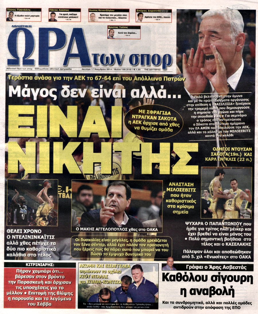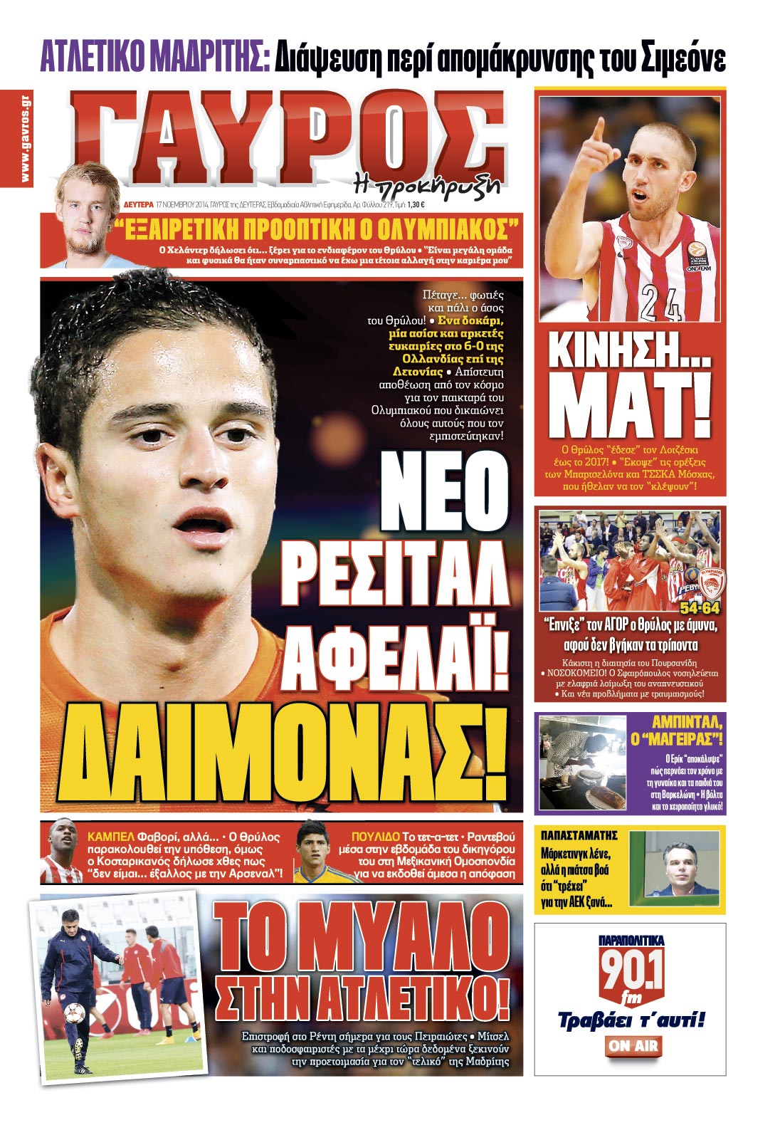 Οι αθλητικές εφημερίδες Enikos Newsroom 07:28, Δευτέρα 17 Νοεμβρίου 2014 Media Οι αθλητικές εφημερίδες Διαβάστε τα πρωτοσέλιδα των αθλητικών εφημερίδων: ΑΘΛΗΤΙΚΕΣ ΕΦΗΜΕΡΙΔΕΣ ΠΡΩΤΟΣΕΛΙΔΑ Μοιράσου το: σχολίασε κι εσύ (0 σχόλια) Ακολουθήστε το enikos.gr στο Google News και μάθετε πρώτοι όλες τις ειδήσεις Δείτε όλες τις τελευταίες ειδήσεις από την Ελλάδα και τον Κόσμο στο enikos.gr Ειδήσεις Ροή Ειδήσεων 1 ώρα πριν Ευρωπαϊκή Ένωση: Συμφωνία για δάνειο 90 δισ. ευρώ στην Ουκρανία τη διετία 2026-2027 6 ώρες πριν ΟΠΕΚΕΠΕ: Προφυλακιστέος ο φερόμενος αρχηγός και ο λογιστής της εγκληματικής οργάνωσης 7 ώρες πριν Αυξάνουν την πίεση προς την κυβέρνηση οι αγρότες: Κλείνουν παρακαμπτήριους και ανοίγουν διόδια – Τι θα γίνει τις γιορτές 7 ώρες πριν Φοινικούντα: Το Σάββατο απολογείται ο 30χρονος γιος γνωστού επιχειρηματία της Πλάκας που παραδόθηκε – Όσα είπε στους αστυνομικούς και ο ρόλος του στο έγκλημα 5 ώρες πριν ΑΕΚ – Κραϊόβα 3-2: Επική ανατροπή και πρόκριση στους «16» του Conference League η Ένωση 6 ώρες πριν Αρχαιολόγοι ανακάλυψαν ρωμαϊκά τεχνουργήματα από μια πόλη που δεν υπήρξε ποτέ – Τα τρία εντυπωσιακά κτίρια και ο αμφορέας με τις… σαρδέλες 8 ώρες πριν Ύπνος: Η απλή βραδινή ρουτίνα για να προστατεύσετε τα μαλλιά σας από το κρύο κατά τη διάρκεια του χειμώνα 8 ώρες πριν Manifesting: Πώς να συναντήσετε τον σύντροφο της ζωής σας, ανάλογα με τον μήνα γέννησής σας 2 ημέρες πριν 20 χρόνια τα Χριστούγεννα ξεκινούν στα Public με μεγάλη ποικιλία σε δώρα! 10 δευτερόλεπτα πριν Τα ζώδια σήμερα, Παρασκευή 19 Δεκεμβρίου: Τοξότες, με τη Νέα Σελήνη έρχεται η προσωπική ανανέωσή σας 8 λεπτά πριν Εφημερεύοντα φαρμακεία σε Αθήνα και Θεσσαλονίκη (19/12) 15 λεπτά πριν Η TikTok στις ΗΠΑ πωλείται σε Oracle, Silver Lake και MGX – Οι λεπτομέρειες του «deal» 23 λεπτά πριν Αλεξάντερ Λουκασένκο: Η Λευκορωσία βρίσκεται κοντά στην αποκατάσταση των σχέσεών της με τις ΗΠΑ 38 λεπτά πριν Αυστραλία: Κήρυξε την Κυριακή (21/12) ημέρα εθνικού πένθους για τη φονική επίθεση στην παραλία Μπόνταϊ ENIKOS NETWORK Σε περίοδο αυξημένης δραστηριότητας η γρίπη στην Ελλάδα-Μέτρα προστασίας από τον ΕΟΔΥ Σκέφτεστε συνέχεια συζητήσεις που έχετε κάνει; Τι σημαίνει αυτό, σύμφωνα με ειδικό Στεγαστικό: Τι λέει η ΠΟΜΙΔΑ για τα νέα μέτρα που ανακοίνωσε ο Κυριάκος Μητσοτάκης Λαγκάρντ: Αισιόδοξη για την ανάπτυξη της Ευρωζώνης, αβέβαιη για τον πληθωρισμό Χαρτογραφώντας το «σημείο χωρίς επιστροφή»: Για πρώτη φορά αποκαλύπτεται με λεπτομέρεια το ακανθώδες όριο της ατμόσφαιρας τ... Η Google καταργεί τη λειτουργία «dark web report» – Πώς θα μπορούν οι χρήστες να διαγράφουν τα δεδομένα τους περισσότερα 02:50 , Παρασκευή 19 Δεκεμβρίου 2025 GNTM: «Κλείδωσαν» οι τέσσερις φιναλίστ – Μεγάλη ανατροπή στις τελευταίες αποχωρήσεις Για προτελευταία φορά εμφανίστηκαν στο πλατό του GNTM οι φιναλίστ του φετινού κύκλου, το βράδυ... 17:45 , Πέμπτη 18 Δεκεμβρίου 2025 ROUK ZOUK: Εορταστικό επεισόδιο με καλεσμένους τους πρωταγωνιστές του «Γιατί ρε πατέρα» Το Σάββατο 20 Δεκεμβρίου στις 21:00, η Ζέτα Μακρυπούλια υποδέχεται εκλεκτούς ηθοποιούς που όλο... 17:20 , Πέμπτη 18 Δεκεμβρίου 2025 Άγιος έρωτας: Η Χριστίνα εξομολογείται στον πατέρα Νικόλαο, απόψε στις 21:00 στον Alpha Η Νότα αποφασίζει να εκδικηθεί τον Πέτρο και τον Στέφανο, για χάρη του Λούη, όμως τα πράγματα ... 16:50 , Πέμπτη 18 Δεκεμβρίου 2025 Να μ’ αγαπάς: Ζωή και Φωτεινή συμφιλιώνονται ως μάνα με κόρη, απόψε στις 20:00 Η ταυτότητα του Άγγελου αποκαλύπτεται στο νέο επεισόδιο της σειράς “Να μ’ αγαπάς... ΤΕΛΕΥΤΑ