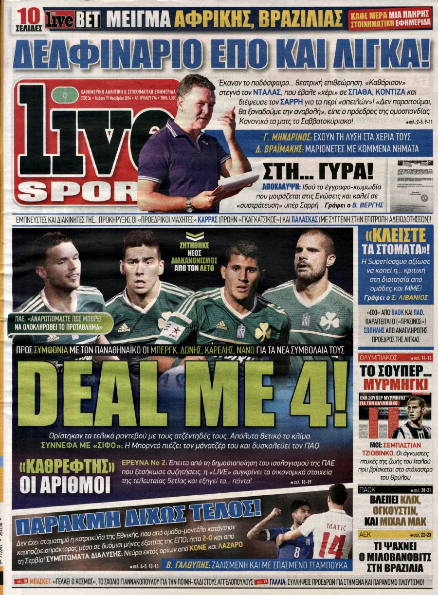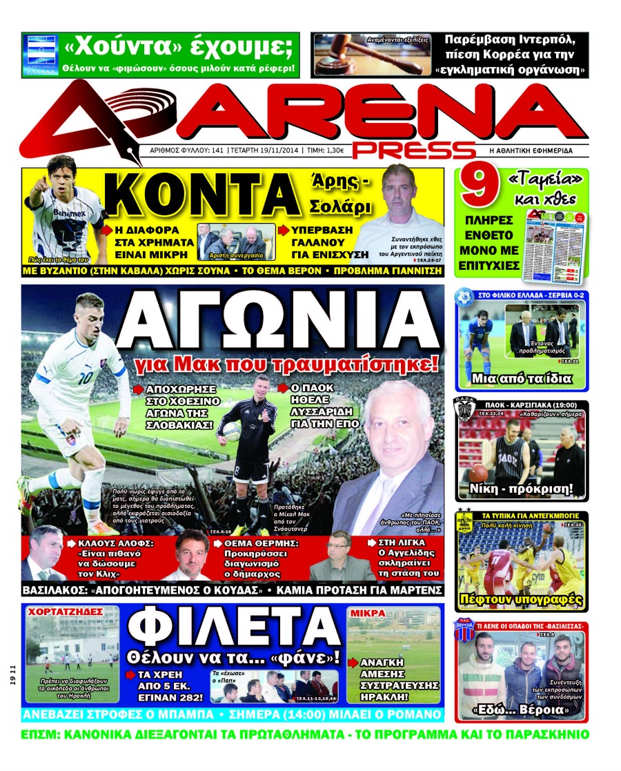 Οι αθλητικές εφημερίδες Enikos Newsroom 07:59, Τετάρτη 19 Νοεμβρίου 2014 Media Οι αθλητικές εφημερίδες Διαβάστε τα πρωτοσέλιδα των αθλητικών εφημερίδων: ΑΘΛΗΤΙΚΕΣ ΕΦΗΜΕΡΙΔΕΣ ΕΦΗΜΕΡΙΔΕΣ ΠΡΩΤΟΣΕΛΙΔΑ Μοιράσου το: σχολίασε κι εσύ (0 σχόλια) Ακολουθήστε το enikos.gr στο Google News και μάθετε πρώτοι όλες τις ειδήσεις Δείτε όλες τις τελευταίες ειδήσεις από την Ελλάδα και τον Κόσμο στο enikos.gr Ειδήσεις Ροή Ειδήσεων 2 ώρες πριν Κλιμακώνουν από σήμερα τις κινητοποιήσεις οι αγρότες: Νέα μπλόκα, κλείσιμο παρακαμπτηρίων και άνοιγμα διοδίων – Το νέο μήνυμα Μητσοτάκη 2 ώρες πριν Ευρωπαϊκό Συμβούλιο: Όλες οι λεπτομέρειες για το δάνειο των 90 δισ. ευρώ στην Ουκρανία – Τα συμπεράσματα της Συνόδου Κορυφής 1 ώρα πριν Νίκος Παππάς: Δρομολογήθηκαν οι διαδικασίες για τη διαγραφή του από τον ΣΥΡΙΖΑ μέσα στις γιορτές 3 ώρες πριν Συντάξεις: Οι κερδισμένοι και οι χαμένοι από τις αυξήσεις – Αναλυτικός οδηγός και παραδείγματα 2 ώρες πριν Peter Greene: Ο πρωταγωνιστής του «Pulp Fiction» είχε τραύματα στο σώμα του όταν βρέθηκε νεκρός στο αιματοβαμμένο διαμέρισμα 4 ώρες πριν Κρύα χέρια και πόδια: Γιατρός εξηγεί ποια είναι η αίτια και πότε πρέπει να ανησυχήσετε 2 ώρες πριν Πώς το αρχαίο DNA του κυνηγού – συλλέκτη ξεκλείδωσε τα μυστικά της μακροζωίας 2 ημέρες πριν 20 χρόνια τα Χριστούγεννα ξεκινούν στα Public με μεγάλη ποικιλία σε δώρα! 1 ώρα πριν Ο σύζυγός της συμπεριφέρεται όπως το παιδί τους – «Χρησιμοποιεί αστείες δικαιολογίες για να μην κάνει δουλειές και να ξοδεύει λεφτά» 5 λεπτά πριν Ελένη Χατζίδου: «Έχω δεχτεί σεξουαλική παρενόχληση, δεν ήμουν αρκετά γενναία για να το καταγγείλω» – Η αποκάλυψη που σόκαρε τους συνεργάτες της 10 λεπτά πριν Τα νούμερα τηλεθέασης της πρωινής ζώνης – Πρώτο το «Super Κατερίνα» 15 λεπτά πριν Αλλαγή σελίδας για 3 ζώδια – «Μία δύσκολη περίοδος φτάνει στο τέλος της» 24 λεπτά πριν Κρούσμα μηνιγγίτιδας σε Λύκειο των Χανίων – Στο νοσοκομείο μια μαθήτρια 29 λεπτά πριν Αλέξανδρος Εξάρχου: Προσκεκλημένος του Ντόναλντ Τραμπ στο Κένεντι Σέντερ ο ισχυρός άνδρας του ομίλου AKTOR ENIKOS NETWORK Πότε μπορεί το χλωμό δέρμα να σχετίζεται με σοβαρή νόσο Ενίσχυση του μεταβολισμού: Η Νο1 άσκηση που πρέπει να κάνουν οι γυναίκες μετά τα 35 Συντάξεις: Οι κερδισμένοι και οι χαμένοι από τις αυξήσεις – Αναλυτικός οδηγός Στεγαστικό: Τι λέει η ΠΟΜΙΔΑ για τα νέα μέτρα που ανακοίνωσε ο Κυριάκος Μητσοτάκης Χαρτογραφώντας το «σημείο χωρίς επιστροφή»: Για πρώτη φορά αποκαλύπτεται με λεπτομέρεια το ακανθώδες όριο της ατμόσφαιρας τ... Η Google καταργεί τη λειτουργία «dark web report» – Πώς θα μπορούν οι χρήστες να διαγράφουν τα δεδομένα τους περισσότερα 08:00 , Παρασκευή 19 Δεκεμβρίου 2025 Την Κυριακή με τη Realnews: Δωροεπιταγή 10€ Δωροεπιταγή αξίας 10€ για αγορές άνω των 60€ από τα πολυκαταστήματα FactoryOutlet H προσφορά ι... 05:48 , Παρασκευή 19 Δεκεμβρίου 2025 Οι οικονομικές εφημερίδες 19/12/2025 Διαβάστε τα πρωτοσέλιδα από τις οικονομικές εφημερίδες, σήμερα 19/12/2025. 05:43 , Παρασκευή 19 Δεκεμβρίου 2025 Οι αθλητικές εφημερίδες 19/12/2025 Διαβάστε τα πρωτοσέλιδα από τις αθλητικές εφημερίδες, σήμερα 19/12/2025. 05:38 , Παρασκευή 19 Δεκεμβρίου 2025 Οι πολιτικές εφημερίδες 19/12/2025 Διαβάστε τα πρωτοσέλιδα από τις πολιτικές εφημερίδες, σήμερα 19/12/2025. ΤΕΛΕΥΤΑΙΕΣ ΕΙΔΗΣΕΙΣ 5 λεπτά πριν Ελένη Χατζίδου: «Έχω δεχτεί σεξουαλική παρενόχληση,... 10 λεπτά πριν Τα νούμερα τηλεθέασης της πρωινής ζώνης – Πρώτο το... 15 λεπτά πριν Αλλαγή σελίδας για 3 ζώδια – «Μία δύσκολη περίοδος... 24 λεπτά πριν Κρούσμα