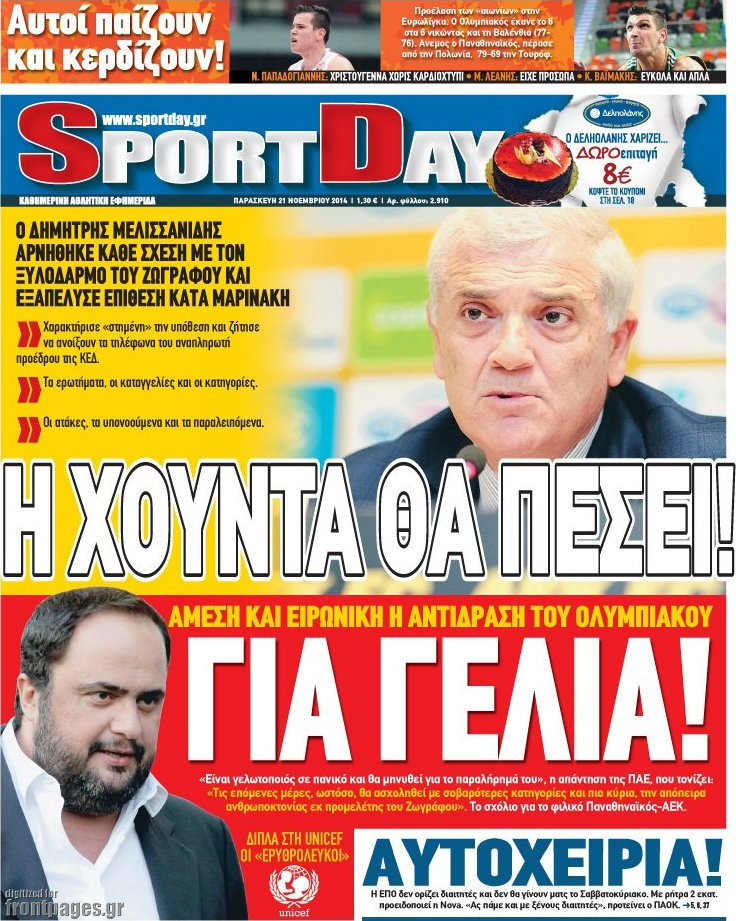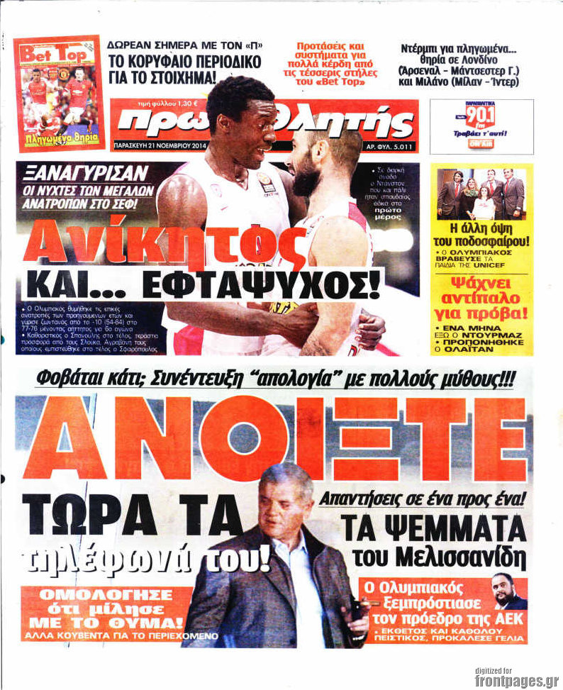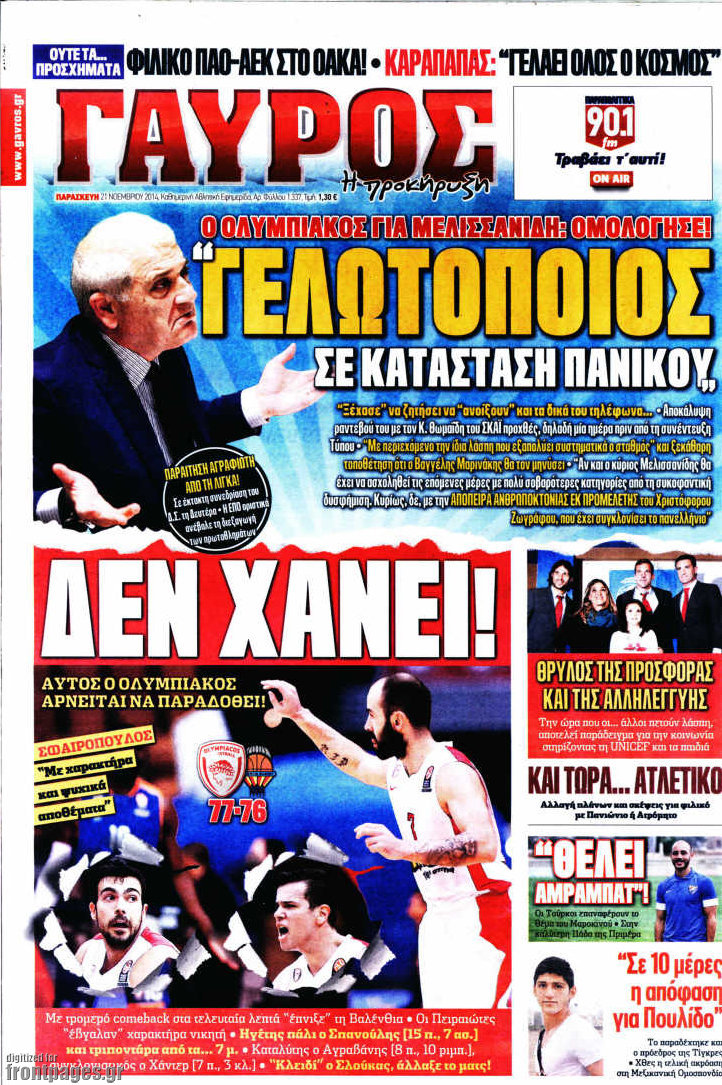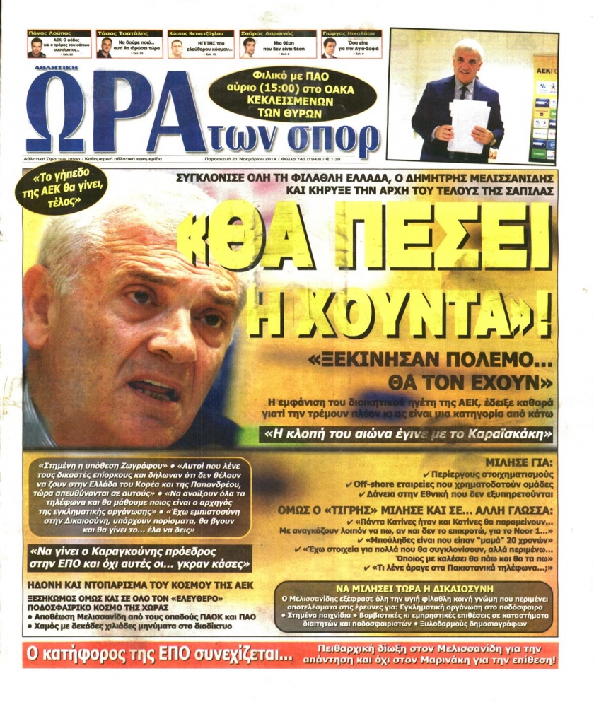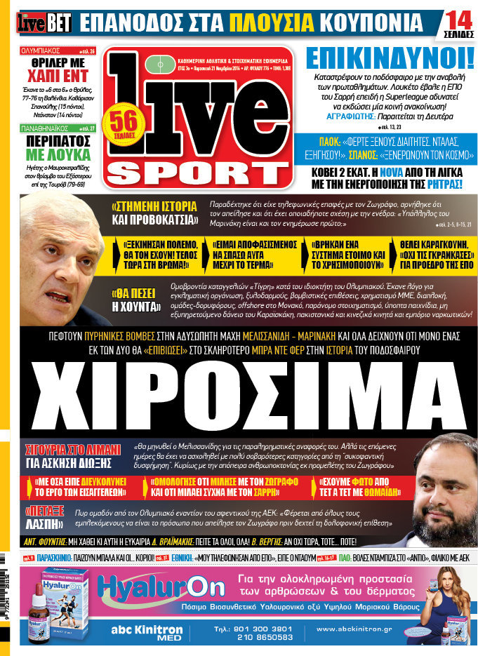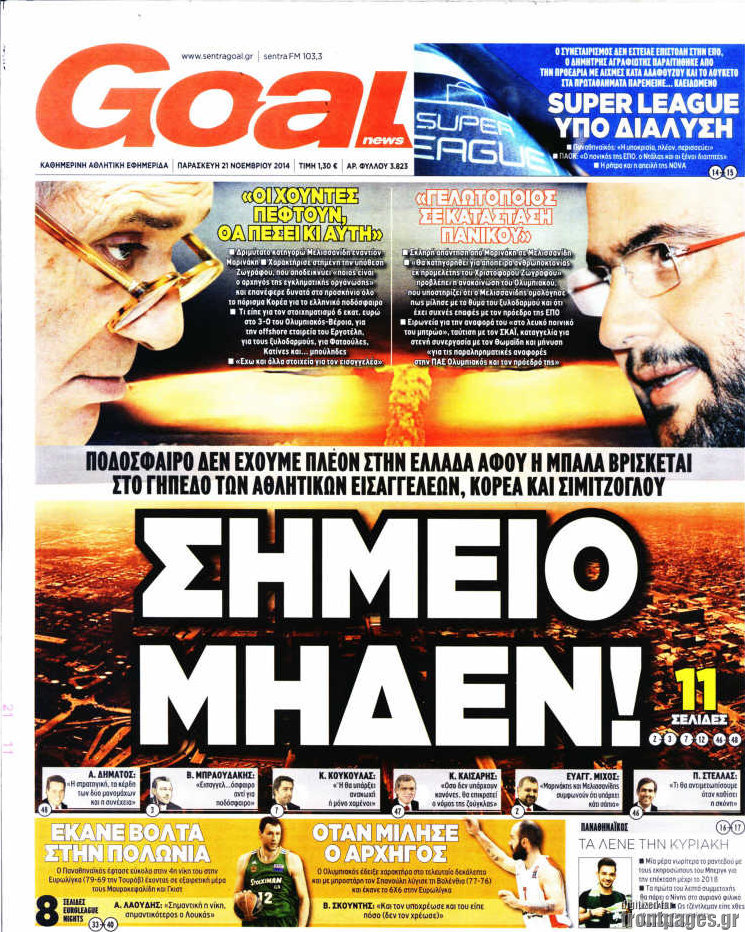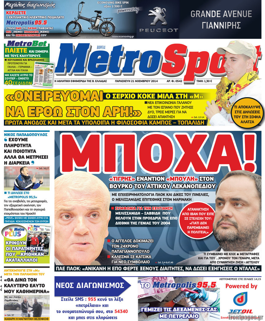 Οι αθλητικές εφημερίδες Enikos Newsroom 08:00, Παρασκευή 21 Νοεμβρίου 2014 Media Οι αθλητικές εφημερίδες Διαβάστε τα πρωτοσέλιδα των αθλητικών εφημερίδων: ΑΘΛΗΤΙΚΕΣ ΕΦΗΜΕΡΙΔΕΣ ΕΦΗΜΕΡΙΔΕΣ ΠΡΩΤΟΣΕΛΙΔΑ Μοιράσου το: σχολίασε κι εσύ (0 σχόλια) Ακολουθήστε το enikos.gr στο Google News και μάθετε πρώτοι όλες τις ειδήσεις Δείτε όλες τις τελευταίες ειδήσεις από την Ελλάδα και τον Κόσμο στο enikos.gr Ειδήσεις Ροή Ειδήσεων 5 ώρες πριν Αυξάνουν την πίεση προς την κυβέρνηση οι αγρότες: Κλείνουν παρακαμπτήριους και ανοίγουν διόδια – Τι θα γίνει τις γιορτές 4 ώρες πριν ΟΠΕΚΕΠΕ: Προφυλακιστέος ο φερόμενος αρχηγός και ο λογιστής της εγκληματικής οργάνωσης 25 λεπτά πριν Ευρωπαϊκή Ένωση: Χωρίς συμφωνία, για την μακροπρόθεσμη χρηματοδότηση της Ουκρανίας, ολοκληρώθηκε η Σύνοδος Κορυφής στις Βρυξέλλες 3 ώρες πριν ΑΕΚ – Κραϊόβα 3-2: Επική ανατροπή και πρόκριση στους «16» του Conference League η Ένωση 5 ώρες πριν Φοινικούντα: Το Σάββατο απολογείται ο 30χρονος γιος γνωστού επιχειρηματία της Πλάκας που παραδόθηκε – Όσα είπε στους αστυνομικούς και ο ρόλος του στο έγκλημα 4 ώρες πριν Αρχαιολόγοι ανακάλυψαν ρωμαϊκά τεχνουργήματα από μια πόλη που δεν υπήρξε ποτέ – Τα τρία εντυπωσιακά κτίρια και ο αμφορέας με τις… σαρδέλες 5 ώρες πριν Ύπνος: Η απλή βραδινή ρουτίνα για να προστατεύσετε τα μαλλιά σας από το κρύο κατά τη διάρκεια του χειμώνα 6 ώρες πριν Manifesting: Πώς να συναντήσετε τον σύντροφο της ζωής σας, ανάλογα με τον μήνα γέννησής σας 2 ημέρες πριν 20 χρόνια τα Χριστούγεννα ξεκινούν στα Public με μεγάλη ποικιλία σε δώρα! 25 λεπτά πριν Ευρωπαϊκή Ένωση: Χωρίς συμφωνία, για την μακροπρόθεσμη χρηματοδότηση της Ουκρανίας, ολοκληρώθηκε η Σύνοδος Κορυφής στις Βρυξέλλες 40 λεπτά πριν GNTM: «Κλείδωσαν» οι τέσσερις φιναλίστ – Μεγάλη ανατροπή στις τελευταίες αποχωρήσεις 54 λεπτά πριν Γιώργος Μαζωνάκης: Αποθεώθηκε στην πρεμιέρα του στην «Ακτή Πειραιώς» λίγες ώρες μετά τις καταγγελίες – «Είμαι αληθινός», είπε με νόημα 1 ώρα πριν Πόλεμος στην Ουκρανία: Ρωσικά drones έπληξαν την Οδησσό – Μία νεκρή και ζημιές σε ενεργειακές υποδομές 1 ώρα πριν ΑΕΚ-Κραϊόβα: Τα highlights της μυθικής ανατροπής της «Ένωσης» ENIKOS NETWORK Σε περίοδο αυξημένης δραστηριότητας η γρίπη στην Ελλάδα-Μέτρα προστασίας από τον ΕΟΔΥ Σκέφτεστε συνέχεια συζητήσεις που έχετε κάνει; Τι σημαίνει αυτό, σύμφωνα με ειδικό Στεγαστικό: Τι λέει η ΠΟΜΙΔΑ για τα νέα μέτρα που ανακοίνωσε ο Κυριάκος Μητσοτάκης Λαγκάρντ: Αισιόδοξη για την ανάπτυξη της Ευρωζώνης, αβέβαιη για τον πληθωρισμό Χαρτογραφώντας το «σημείο χωρίς επιστροφή»: Για πρώτη φορά αποκαλύπτεται με λεπτομέρεια το ακανθώδες όριο της ατμόσφαιρας τ... Η Google καταργεί τη λειτουργία «dark web report» – Πώς θα μπορούν οι χρήστες να διαγράφουν τα δεδομένα τους περισσότερα 02:50 , Παρασκευή 19 Δεκεμβρίου 2025 GNTM: «Κλείδωσαν» οι τέσσερις φιναλίστ – Μεγάλη ανατροπή στις τελευταίες αποχωρήσεις Για προτελευταία φορά εμφανίστηκαν στο πλατό του GNTM οι φιναλίστ του φετινού κύκλου, το βράδυ... 17:45 , Πέμπτη 18 Δεκεμβρίου 2025 ROUK ZOUK: Εορταστικό επεισόδιο με καλεσμένους τους πρωταγωνιστές του «Γιατί ρε πατέρα» Το Σάββατο 20 Δεκεμβρίου στις 21:00, η Ζέτα Μακρυπούλια υποδέχεται εκλεκτούς ηθοποιούς που όλο... 17:20 , Πέμπτη 18 Δεκεμβρίου 2025 Άγιος έρωτας: Η Χριστίνα εξομολογείται στον πατέρα Νικόλαο, απόψε στις 21:00 στον Alpha Η Νότα αποφασίζει να εκδικηθεί τον Πέτρο και τον Στέφανο, για χάρη του Λούη, όμως τα πράγματα ... 16:50 , Πέμπτη 18 Δεκεμβρίου 2025 Να μ’ αγαπάς: Ζωή κα
