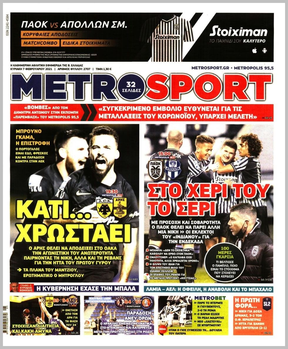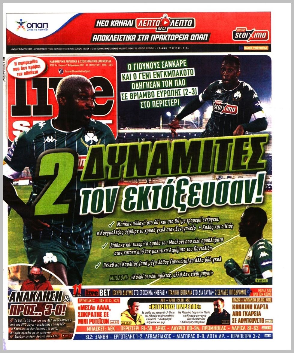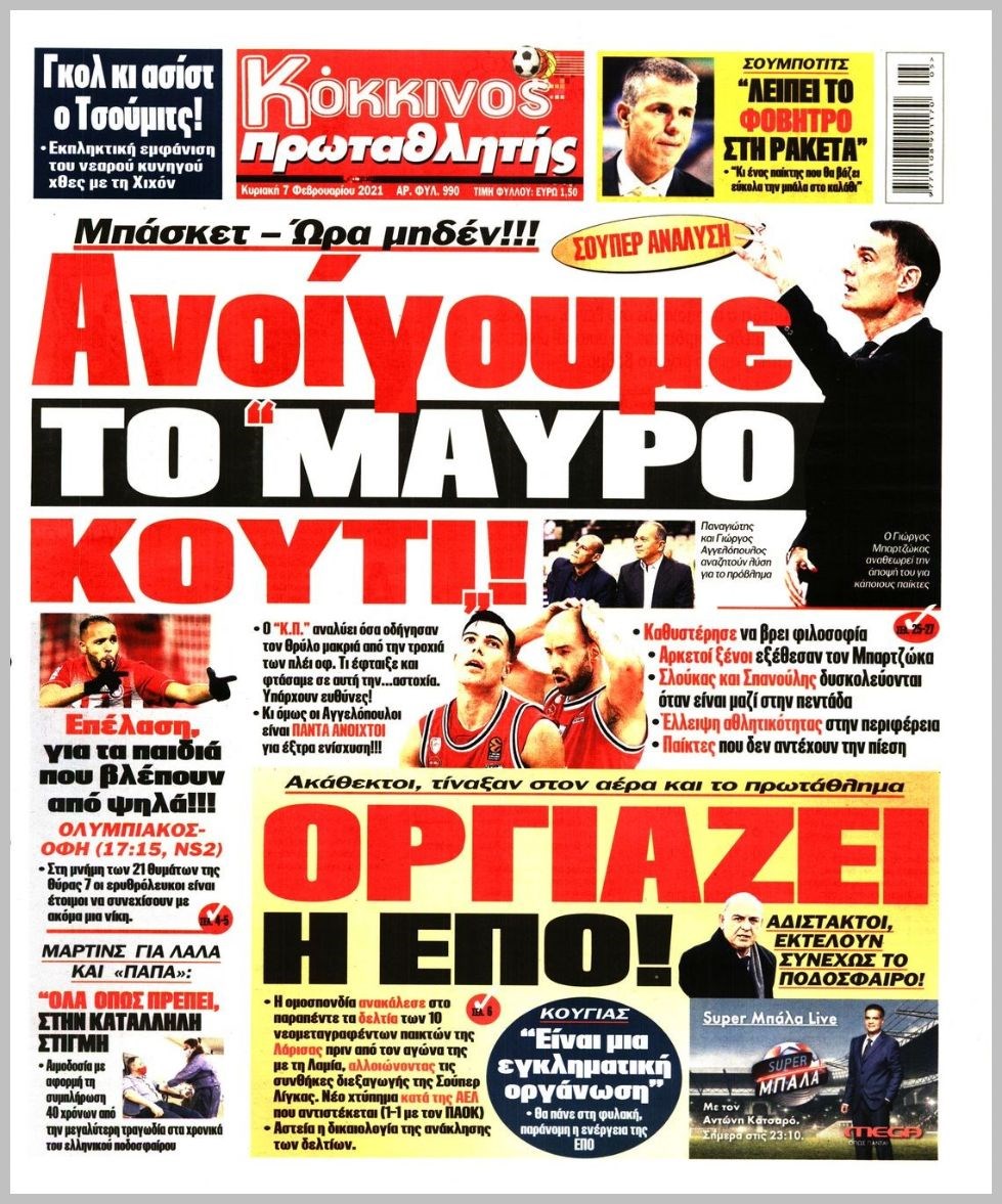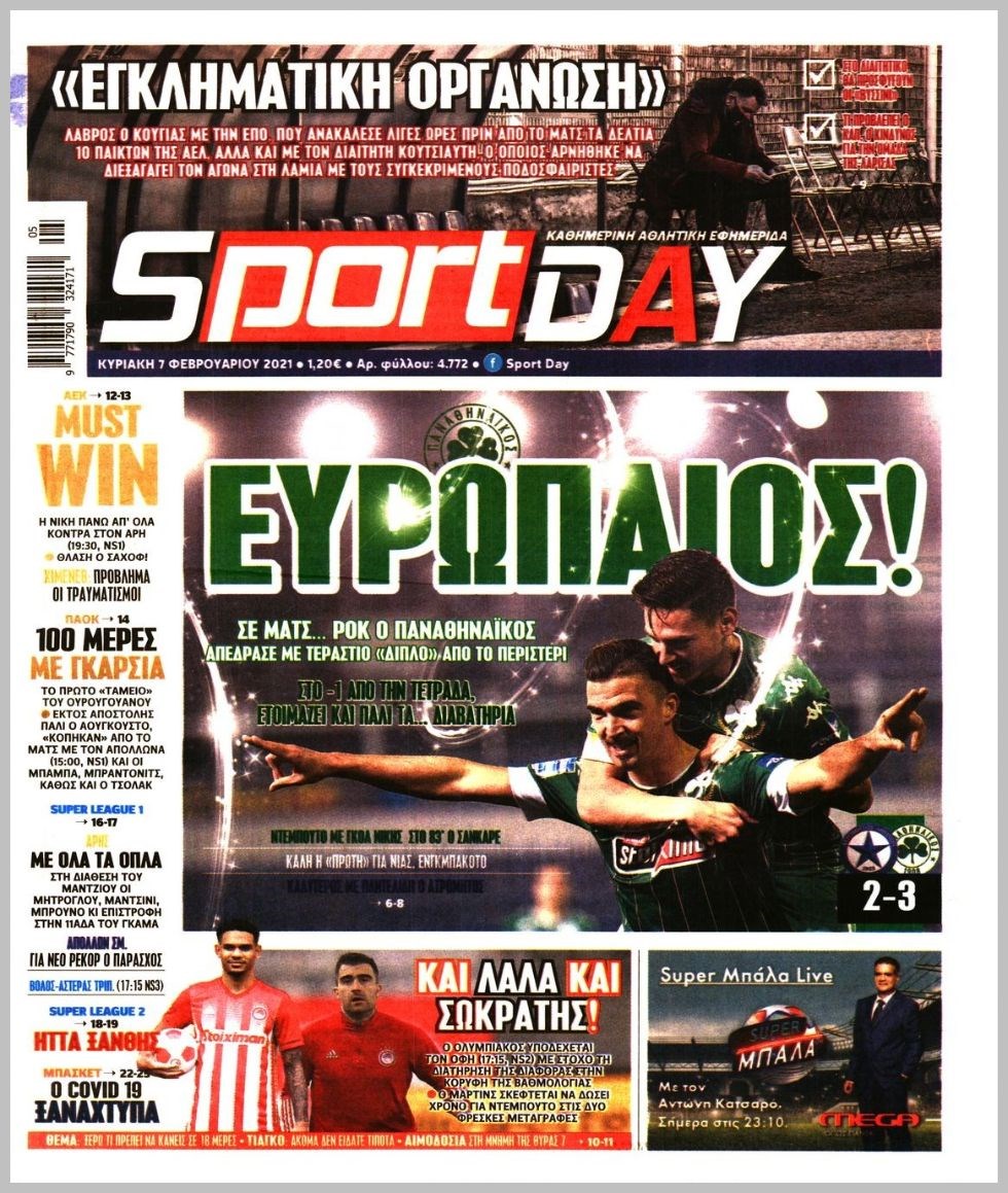 Οι αθλητικές εφημερίδες 7/2/2021 Διονύσης Νίκκας 08:03, Κυριακή 07 Φεβρουαρίου 2021 Media Διαβάστε τα πρωτοσέλιδα των αθλητικών εφημερίδων… ΑΘΛΗΤΙΚΕΣ ΕΦΗΜΕΡΙΔΕΣ Μοιράσου το: σχολίασε κι εσύ (0 σχόλια) Ακολουθήστε το enikos.gr στο Google News και μάθετε πρώτοι όλες τις ειδήσεις Δείτε όλες τις τελευταίες ειδήσεις από την Ελλάδα και τον Κόσμο στο enikos.gr Ειδήσεις Ροή Ειδήσεων 4 ώρες πριν Από το Ορμένιο ως τα Μάλγαρα κι από τη Σιάτιστα μέχρι τη Νίκαια: Μπλόκα σε όλη την Ελλάδα – Το Σάββατο ανοίγουν τα διόδια οι αγρότες 1 ώρα πριν Εμπλοκή και αερομαχίες με οπλισμένα τουρκικά F-16 στο Αιγαίο 3 ώρες πριν Αττική: Θρίλερ με νεκρό βρέφος 5 μηνών – Κοιμόταν στο ίδιο κρεβάτι με τους γονείς του 58 λεπτά πριν Πούτιν: «Ναι, είμαι ερωτευμένος» – Βίντεο από τη σπάνια προσωπική παραδοχή του 3 ώρες πριν Μεσόγειος: Η διαδρομή του ρωσικού τάνκερ «Qendil» και η στοχευμένη επίθεση της Ουκρανίας με drone – Ο Πούτιν προειδοποίησε για αντίποινα 5 ώρες πριν Τα 5 ζώδια που ευνοούνται στην ερωτική ζωή τους την επόμενη εβδομάδα – «Η ενέργεια του Αιγόκερου φέρνει αγάπη και σταθερότητα» 6 ώρες πριν Αυτό το έξυπνο μαθηματικό κόλπο θα μπορούσε να αλλάξει τον τρόπο με τον οποίο οι επιστήμονες μελετούν τους σεισμούς 2 ώρες πριν Μήπως έχετε χάσει τον εαυτό σας στη σχέση σας; 7 «αθόρυβες» υποχωρήσεις που μάλλον κάνατε, χωρίς να το συνειδητοποιήσετε 4 ώρες πριν Κουίζ για την παλιά Αθήνα: Αναγνωρίζετε την περιοχή; Έχετε περάσει 100% από εκεί 5 λεπτά πριν Μπαράκ Ομπάμα: Τα βιβλία, οι ταινίες και τα τραγούδια που ξεχώρισε το 2025 – Πλήρης λίστα 10 λεπτά πριν Don’t Forget The Lyrics: Η Έλλη Κοκκίνου υποδέχεται 4 παίκτες που θα κάνουν τα πάντα για να μη χάσουν ούτε… μισή λέξη από τους στίχους 16 λεπτά πριν Πλεύρης στον ΑΝΤ1: Η βασική πολιτική που ψηφίστηκε από τους υπουργούς Μετανάστευσης είναι η δημιουργία κέντρων κράτησης μεταναστών στην Αφρική – ΒΙΝΤΕΟ 21 λεπτά πριν Η εξομολόγηση της Νίκης Σερέτη: «Δεν κρύβω ότι ήταν πάρα πολύ δύσκολο όλο αυτό που βίωσα» 26 λεπτά πριν Αγρότες: Κλειστό ξανά το ρεύμα εισόδου στα Μάλγαρα – Άνοιξαν τον κόμβο της Χαλκηδόνας ENIKOS NETWORK Έχετε πραγματικά μεγάλη καρδιά; 10 χαρακτηριστικά όσων έχουν καλοσύνη «Η σούπερ» γρίπη εξαπλώνεται στην Ευρώπη-Στοιχεία από το ECDC για την αποτελεσματικότητα του εμβολίου Επίδομα παιδιού: Πότε ανοίγει ξανά η πλατφόρμα για τις αιτήσεις Προκήρυξη ΑΣΕΠ για 397 μόνιμες προσλήψεις στο Δημόσιο: Βγήκαν τα προσωρινά αποτελέσματα – Πότε αρχίζει η υποβολή ενστάσεων Χαρτογραφώντας το «σημείο χωρίς επιστροφή»: Για πρώτη φορά αποκαλύπτεται με λεπτομέρεια το ακανθώδες όριο της ατμόσφαιρας τ... Η Google καταργεί τη λειτουργία «dark web report» – Πώς θα μπορούν οι χρήστες να διαγράφουν τα δεδομένα τους περισσότερα 20:37 , Παρασκευή 19 Δεκεμβρίου 2025 Don’t Forget The Lyrics: Η Έλλη Κοκκίνου υποδέχεται 4 παίκτες που θα κάνουν τα πάντα για να μη χάσουν ούτε… μισή λέξη από τους στίχους Το «Don’t Forget The Lyrics» επιστρέφει απόψε, Παρασκευή 19 Δεκεμβρίου, στις 21:00 με νέο επει... 19:31 , Παρασκευή 19 Δεκεμβρίου 2025 GNTM: Απόψε ο μεγάλος τελικός για τους 4 φιναλίστ Έπειτα από μήνες γεμάτους μόδα, δημιουργία και έντονες αναμετρήσεις, το GNTM 2025 κορυφώνεται,... 18:11 , Παρασκευή 19 Δεκεμβρίου 2025 Το σόι σου: Ο Άρης έρχεται στην Ελλάδα για τις γιορτές των Χριστουγέννων – Τι θα δούμε στο αποψινό εορταστικό επεισόδιο Ένα απολαυστικό, εορταστικό επεισόδιο της σειράς “Το σόι σου”, γεμάτο ευτράπελα αλ... 15:15 , Παρασκευή 19 Δεκεμβρίου 2025 Την Κυριακή με τη Rea