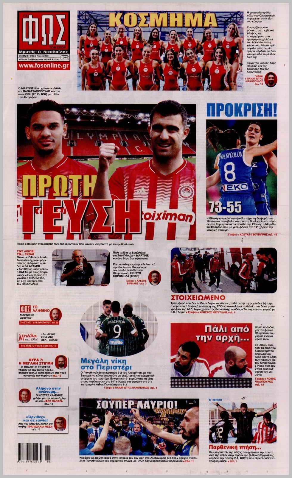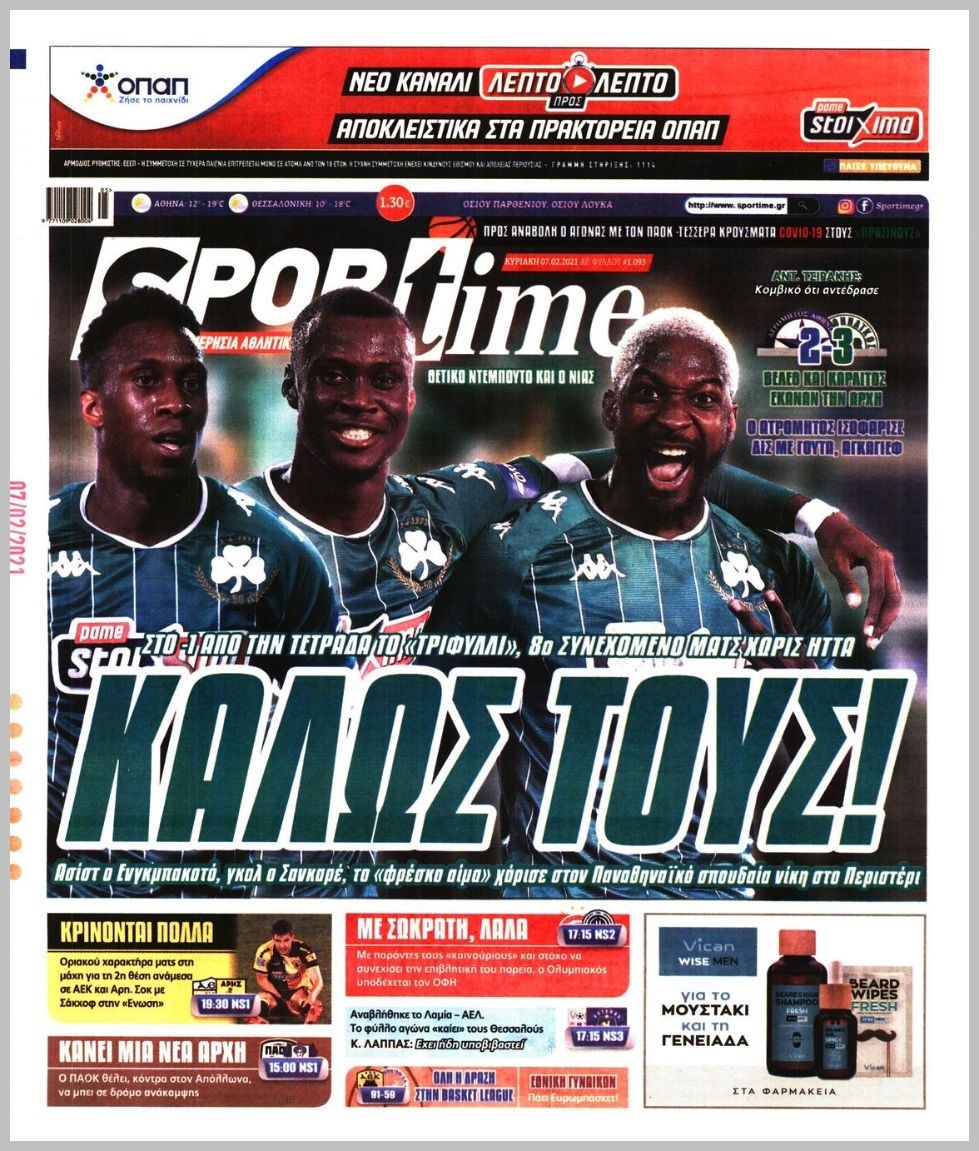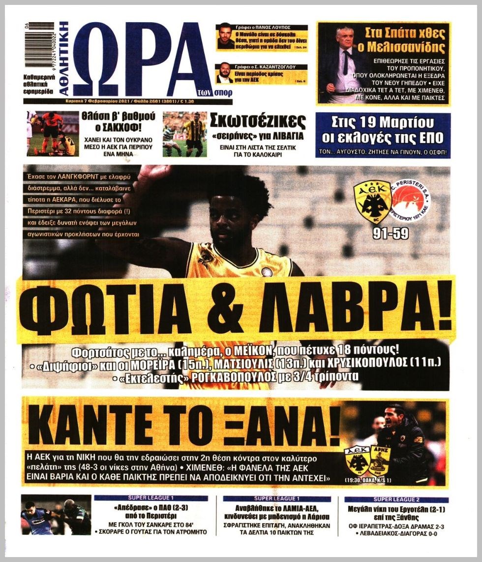Οι αθλητικές εφημερίδες 7/2/2021 Διονύσης Νίκκας 08:03, Κυριακή 07 Φεβρουαρίου 2021 Media Διαβάστε τα πρωτοσέλιδα των αθλητικών εφημερίδων… ΑΘΛΗΤΙΚΕΣ ΕΦΗΜΕΡΙΔΕΣ Μοιράσου το: σχολίασε κι εσύ (0 σχόλια) Ακολουθήστε το enikos.gr στο Google News και μάθετε πρώτοι όλες τις ειδήσεις Δείτε όλες τις τελευταίες ειδήσεις από την Ελλάδα και τον Κόσμο στο enikos.gr Ειδήσεις Ροή Ειδήσεων 4 ώρες πριν Από το Ορμένιο ως τα Μάλγαρα κι από τη Σιάτιστα μέχρι τη Νίκαια: Μπλόκα σε όλη την Ελλάδα – Το Σάββατο ανοίγουν τα διόδια οι αγρότες 1 ώρα πριν Εμπλοκή και αερομαχίες με οπλισμένα τουρκικά F-16 στο Αιγαίο 3 ώρες πριν Αττική: Θρίλερ με νεκρό βρέφος 5 μηνών – Κοιμόταν στο ίδιο κρεβάτι με τους γονείς του 58 λεπτά πριν Πούτιν: «Ναι, είμαι ερωτευμένος» – Βίντεο από τη σπάνια προσωπική παραδοχή του 3 ώρες πριν Μεσόγειος: Η διαδρομή του ρωσικού τάνκερ «Qendil» και η στοχευμένη επίθεση της Ουκρανίας με drone – Ο Πούτιν προειδοποίησε για αντίποινα 5 ώρες πριν Τα 5 ζώδια που ευνοούνται στην ερωτική ζωή τους την επόμενη εβδομάδα – «Η ενέργεια του Αιγόκερου φέρνει αγάπη και σταθερότητα» 6 ώρες πριν Αυτό το έξυπνο μαθηματικό κόλπο θα μπορούσε να αλλάξει τον τρόπο με τον οποίο οι επιστήμονες μελετούν τους σεισμούς 2 ώρες πριν Μήπως έχετε χάσει τον εαυτό σας στη σχέση σας; 7 «αθόρυβες» υποχωρήσεις που μάλλον κάνατε, χωρίς να το συνειδητοποιήσετε 4 ώρες πριν Κουίζ για την παλιά Αθήνα: Αναγνωρίζετε την περιοχή; Έχετε περάσει 100% από εκεί 5 λεπτά πριν Μπαράκ Ομπάμα: Τα βιβλία, οι ταινίες και τα τραγούδια που ξεχώρισε το 2025 – Πλήρης λίστα 10 λεπτά πριν Don’t Forget The Lyrics: Η Έλλη Κοκκίνου υποδέχεται 4 παίκτες που θα κάνουν τα πάντα για να μη χάσουν ούτε… μισή λέξη από τους στίχους 16 λεπτά πριν Πλεύρης στον ΑΝΤ1: Η βασική πολιτική που ψηφίστηκε από τους υπουργούς Μετανάστευσης είναι η δημιουργία κέντρων κράτησης μεταναστών στην Αφρική – ΒΙΝΤΕΟ 21 λεπτά πριν Η εξομολόγηση της Νίκης Σερέτη: «Δεν κρύβω ότι ήταν πάρα πολύ δύσκολο όλο αυτό που βίωσα» 26 λεπτά πριν Αγρότες: Κλειστό ξανά το ρεύμα εισόδου στα Μάλγαρα – Άνοιξαν τον κόμβο της Χαλκηδόνας ENIKOS NETWORK Έχετε πραγματικά μεγάλη καρδιά; 10 χαρακτηριστικά όσων έχουν καλοσύνη «Η σούπερ» γρίπη εξαπλώνεται στην Ευρώπη-Στοιχεία από το ECDC για την αποτελεσματικότητα του εμβολίου Επίδομα παιδιού: Πότε ανοίγει ξανά η πλατφόρμα για τις αιτήσεις Προκήρυξη ΑΣΕΠ για 397 μόνιμες προσλήψεις στο Δημόσιο: Βγήκαν τα προσωρινά αποτελέσματα – Πότε αρχίζει η υποβολή ενστάσεων Χαρτογραφώντας το «σημείο χωρίς επιστροφή»: Για πρώτη φορά αποκαλύπτεται με λεπτομέρεια το ακανθώδες όριο της ατμόσφαιρας τ... Η Google καταργεί τη λειτουργία «dark web report» – Πώς θα μπορούν οι χρήστες να διαγράφουν τα δεδομένα τους περισσότερα 20:37 , Παρασκευή 19 Δεκεμβρίου 2025 Don’t Forget The Lyrics: Η Έλλη Κοκκίνου υποδέχεται 4 παίκτες που θα κάνουν τα πάντα για να μη χάσουν ούτε… μισή λέξη από τους στίχους Το «Don’t Forget The Lyrics» επιστρέφει απόψε, Παρασκευή 19 Δεκεμβρίου, στις 21:00 με νέο επει... 19:31 , Παρασκευή 19 Δεκεμβρίου 2025 GNTM: Απόψε ο μεγάλος τελικός για τους 4 φιναλίστ Έπειτα από μήνες γεμάτους μόδα, δημιουργία και έντονες αναμετρήσεις, το GNTM 2025 κορυφώνεται,... 18:11 , Παρασκευή 19 Δεκεμβρίου 2025 Το σόι σου: Ο Άρης έρχεται στην Ελλάδα για τις γιορτές των Χριστουγέννων – Τι θα δούμε στο αποψινό εορταστικό επεισόδιο Ένα απολαυστικό, εορταστικό επεισόδιο της σειράς “Το σόι σου”, γεμάτο ευτράπελα αλ... 15:15 , Παρασκευή 19 Δεκεμβρίου 2025 Την Κυριακή με τη Rea