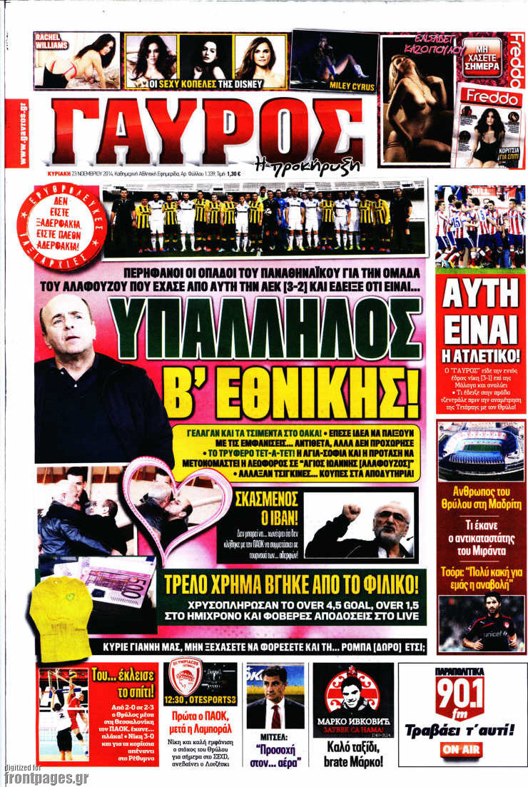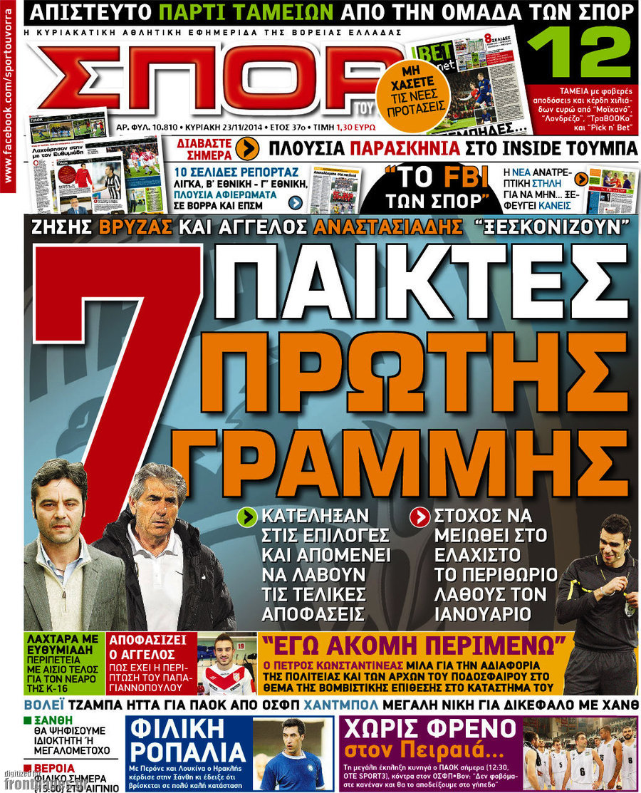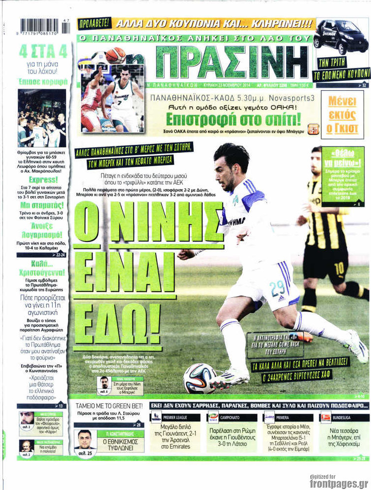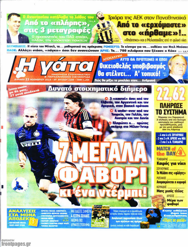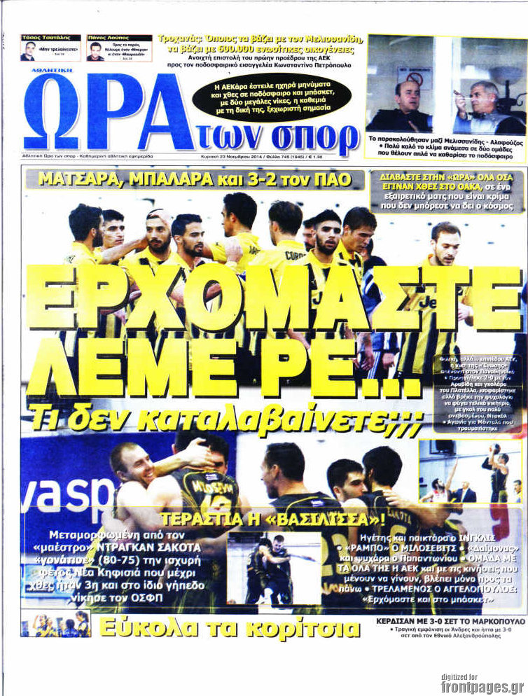 Οι αθλητικές εφημερίδες Enikos Newsroom 07:45, Κυριακή 23 Νοεμβρίου 2014 Media Οι αθλητικές εφημερίδες Διαβάστε τα πρωτοσέλιδα των αθλητικών εφημερίδων: ΑΘΛΗΤΙΚΕΣ ΕΦΗΜΕΡΙΔΕΣ ΠΡΩΤΟΣΕΛΙΔΑ Μοιράσου το: σχολίασε κι εσύ (0 σχόλια) Ακολουθήστε το enikos.gr στο Google News και μάθετε πρώτοι όλες τις ειδήσεις Δείτε όλες τις τελευταίες ειδήσεις από την Ελλάδα και τον Κόσμο στο enikos.gr Ειδήσεις Ροή Ειδήσεων 24 λεπτά πριν Πώς στήθηκε η επιχείρηση «Ίπαλλος» που οδήγησε στη σύλληψη του «Έλληνα Εσκομπάρ» – «Ο πόλεμος ενάντια στους εμπόρους ναρκωτικών θα συνεχιστεί» 9 λεπτά πριν Δίκη Χρυσής Αυγής: Την ενοχή και των 42 κατηγορουμένων ζητά η εισαγγελέας 29 λεπτά πριν Κυψέλη: Στη φυλακή η 16χρονη που μαχαίρωσε συμμαθήτριά της 3 ώρες πριν Αμοργός: «Θα προσπαθήσω να το κάνω κάθε μέρα» – Ποιος είναι ο αγρότης που έστησε μόνος του το πρώτο μπλόκο στο νησί 1 ώρα πριν Τραγωδία στην Αλεξανδρούπολη: Παιδάκι 3 ετών μεταφέρθηκε νεκρό από τη μητέρα του στο νοσοκομείο 34 λεπτά πριν Τα 3 ζώδια που θα δουν τη ζωή τους να αλλάζει ριζικά το 2026 – «Όλα γίνονται καλύτερα σταδιακά» 6 ώρες πριν «Δεν είχα κλάψει από τότε που διαγνώστηκα με καρκίνο, ώσπου ένα τηλεφώνημα με έκανε να λυγίσω» – Η συγκλονιστική εξομολόγηση ενός άνδρα 1 ώρα πριν Ο σπάνιος σεισμός που έλυσε τα χέρια των επιστημόνων – Αποκάλυψε ακριβώς όσα αναζητούσαν 7 ώρες πριν 20 χρόνια τα Χριστούγεννα ξεκινούν στα Public με μεγάλη ποικιλία σε δώρα! 2 λεπτά πριν Τραγωδία στην Αχαΐα: 48χρονος κατέρρευσε στο κυνήγι μπροστά στα μάτια του πατέρα του 9 λεπτά πριν Δίκη Χρυσής Αυγής: Την ενοχή και των 42 κατηγορουμένων ζητά η εισαγγελέας 10 λεπτά πριν Μαρκέλλα Γιαννάτου: «Είμαι κοντά στα 14 χρόνια σε ψυχανάλυση – Είχα αρχίσει να έχω κρίσεις άγχους, νόμιζα ότι θα πεθάνω» 17 λεπτά πριν Υπουργείο Αγροτικής Ανάπτυξης: Πώς θα γίνει η πληρωμή αγροτεμαχίων έως 20 στρέμματα παρά τα ζητήματα ΚΑΕΚ 24 λεπτά πριν Πώς στήθηκε η επιχείρηση «Ίπαλλος» που οδήγησε στη σύλληψη του «Έλληνα Εσκομπάρ» – «Ο πόλεμος ενάντια στους εμπόρους ναρκωτικών θα συνεχιστεί» ENIKOS NETWORK Σοβαροί κίνδυνοι από τη λάθος χορήγηση φαρμάκου για τις αιμορραγίες-Συστάσεις προς τους γιατρούς 5 πράγματα που αποφεύγει γαστρεντερολόγος για να μειώσει τον κίνδυνο καρκίνου του εντέρου Eurostat: Κάτω από την αρχική εκτίμηση της Υπηρεσίας ο πληθωρισμός στην Ελλάδα τον Νοέμβριο του 2025 – Tα στοιχεία για την ... Συντάξεις Ιανουαρίου 2026: Σε ποιους θα πιστωθούν την Πέμπτη τα χρήματα και τι αυξήσεις θα δοθούν – Δείτε αναλυτικά παραδεί... Χαρτογραφώντας το «σημείο χωρίς επιστροφή»: Για πρώτη φορά αποκαλύπτεται με λεπτομέρεια το ακανθώδες όριο της ατμόσφαιρας τ... Η Google καταργεί τη λειτουργία «dark web report» – Πώς θα μπορούν οι χρήστες να διαγράφουν τα δεδομένα τους περισσότερα 12:35 , Τετάρτη 17 Δεκεμβρίου 2025 Μίρκα Παπακωνσταντίνου: «Δεν ήμουν αισιόδοξη για τα νούμερα – Είμαι ρεαλίστρια» Στα γυρίσματα του εορταστικού επεισοδίου της αγαπημένης σειράς “Το Σόι Σου”, βρέθηκε η κάμερα ... 12:12 , Τετάρτη 17 Δεκεμβρίου 2025 Ακούστε την εκπομπή του Νίκου Χατζηνικολάου 17/12/2025 Ακούστε την εκπομπή του Νίκου Χατζηνικολάου στον ραδιοφωνικό σταθμό RealFm 97,8, την Τετάρτη 1... 11:35 , Τετάρτη 17 Δεκεμβρίου 2025 Home Alone: Το σπίτι της ταινίας θα ανακαινιστεί – Επιστροφή στην αισθητική της δεκαετίας του ’90 Οι νέοι ιδιοκτήτες του πραγματικού σπιτιού που παρουσιάζεται στην κλασική ταινία του 1990 «Hom... 11:25 , Τετάρτη 17 Δεκεμβρίου 2025 Grand Hotel: Απόψε το τελευταίο επεισόδιο τ