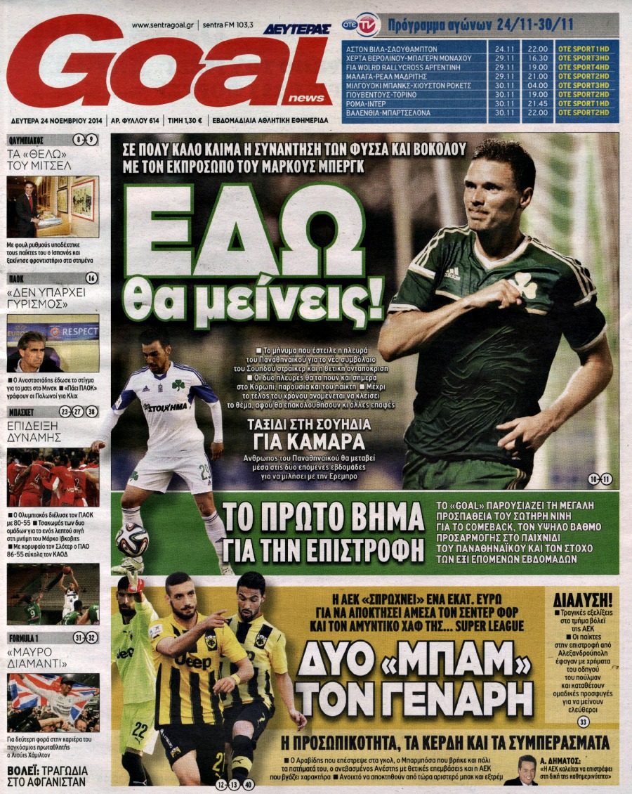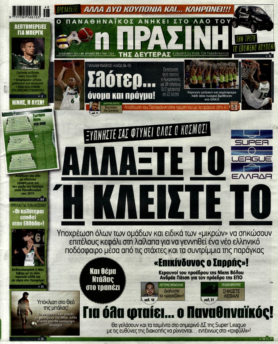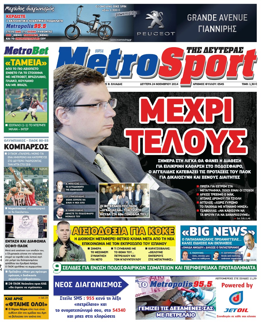 Οι αθλητικές εφημερίδες Enikos Newsroom 07:48, Δευτέρα 24 Νοεμβρίου 2014 Media Οι αθλητικές εφημερίδες Διαβάστε τα πρωτοσέλιδα των αθλητικών εφημερίδων: ΑΘΛΗΤΙΚΕΣ ΕΦΗΜΕΡΙΔΕΣ ΕΦΗΜΕΡΙΔΕΣ ΠΡΩΤΟΣΕΛΙΔΑ Μοιράσου το: σχολίασε κι εσύ (0 σχόλια) Ακολουθήστε το enikos.gr στο Google News και μάθετε πρώτοι όλες τις ειδήσεις Δείτε όλες τις τελευταίες ειδήσεις από την Ελλάδα και τον Κόσμο στο enikos.gr Ειδήσεις Ροή Ειδήσεων 7 ώρες πριν Μητσοτάκης: Αναγκαία η μεταρρύθμιση του πρωτογενούς τομέα – Τα 6 νέα μέτρα για το στεγαστικό και οι αναφορές σε «Ιθάκη» και «πολιτικούς του καναπέ» 7 ώρες πριν Δάνεια σε ελβετικό φράγκο: Τα βασικά σημεία της ρύθμισης – ανάσας για 40.000 δανειολήπτες – Αναλυτικός οδηγός με ερωτήσεις και απαντήσεις 6 ώρες πριν Κυψέλη: Εξιτήριο πήρε η 14χρονη μαθήτρια που μαχαιρώθηκε από την 16χρονη σε σχολείο – «Θέλω να βοηθήσω το παιδί, έχει μπλέξει με κακές παρέες» 6 ώρες πριν Τραμπ: Γιατί κατέθεσε τώρα την αγωγή κατά του BBC – Πώς η κίνησή του εξυπηρετεί το νέο δόγμα του για «αντίσταση» στην Ευρώπη, υπέρ των συντηρητικών 7 ώρες πριν ΟΠΕΚΕΠΕ – Παράνομες επιδοτήσεις: Ελεύθεροι με περιοριστικούς όρους και οι 7 κατηγορούμενοι που απολογήθηκαν σήμερα 6 ώρες πριν Ανακαλύφθηκε βυθισμένη πέτρινη κατασκευή ανοιχτά της Κριμαίας – Αποτελεί μέρος αρχαίας ελληνικής αποικίας 7 ώρες πριν Ύπνος: Αυτό μπορεί να είναι το χειρότερο λάθος για το βιολογικό ρολόι σας, σύμφωνα με ειδικό 8 ώρες πριν Αριθμολογία: Οι άνθρωποι που έχουν γεννηθεί αυτές τις 3 ημερομηνίες, προσελκύουν μεγάλη τύχη πριν από το τέλος του 2025 10 ώρες πριν Οι 7 συμπεριφορές που μαρτυρούν ότι ένας άνδρας επενδύει μακροπρόθεσμα σε μια σχέση 14 λεπτά πριν Παλαιστινιακό: «Η λύση των δύο κρατών είναι ο μόνος βιώσιμος δρόμος», τόνισε η Ελλάδα στο Συμβούλιο Ασφαλείας του ΟΗΕ 22 λεπτά πριν Ελένη Καρακάση: «Ένιωθα πολύ αδικημένη, δεν μπορούσα να ελέγξω τον εαυτό μου σε δύσκολες στιγμές» 30 λεπτά πριν Κλαούδια Σέινμπαουμ προς Ντόναλντ Τραμπ για φαιντανύλη: Να επιτεθούμε στα αίτια κατανάλωσης αντί να την κατατάσσουμε στα «όπλα μαζικής καταστροφής» 38 λεπτά πριν Ρωσία: Ουκρανική επίθεση με drones στο Κρασνοντάρ – Δύο τραυματίες, ζημιές σε σπίτια και διακοπή ρεύματος 46 λεπτά πριν Αντόνιο Ταγιάνι: Νομικά εμπόδια για τη χρήση των ρωσικών κεφαλαίων υπέρ της Ουκρανίας ENIKOS NETWORK Αίτημα ΙΣΑ για την εξαίρεση των προσωπικών γιατρών από τις κατ’ οίκον επισκέψεις Η σκανδιναβική μέθοδος στον ύπνο που μπορεί να σώσει έναν γάμο Πιερρακάκης: Ο προϋπολογισμός συμβάλλει ουσιαστικά στην ενίσχυση της αγοραστικής δύναμης της πλειονότητας των εργαζομένων e-ΕΦΚΑ: Παρατείνεται η προθεσμία για την υποβολή ΑΠΔ – Ποιους αφορά Σύγχρονος Νοστράδαμος: Προειδοποιεί για «μεγάλο γεγονός» τους επόμενους μήνες που θα συγκλονίσει τη Βρετανία και τον κόσμο Τεστ παρατηρητικότητας: Μπορείτε να βρείτε τις 3 διαφορές στις εικόνες με έναν πιγκουίνο σε 14 δευτερόλεπτα περισσότερα 20:06 , Τρίτη 16 Δεκεμβρίου 2025 Ο ΣΚΑΙ καταγγέλλει τον ΕΚΚΟΜΕΔ Επιστολή με την οποία καταγράφει την έντονη διαμαρτυρία του προς τον διευθύνοντα σύμβουλο του... 17:40 , Τρίτη 16 Δεκεμβρίου 2025 Eurovision: Στις 4 Ιανουαρίου αποκαλύπτονται τα 28 τραγούδια του ελληνικού τελικού Η αγωνία τελειώνει, η γιορτή της Eurovision αρχίζει στην ΕΡΤ από τις πρώτες ημέρες της νέας χρ... 17:09 , Τρίτη 16 Δεκεμβρίου 2025 Alter Ego Media: Βαθύτατη θλίψη και ειλικρινή συλλυπητήρια για την απώλεια της Ειρήνης Μαρινάκη Τη βαθύτατη θλίψη και τα ειλικριν