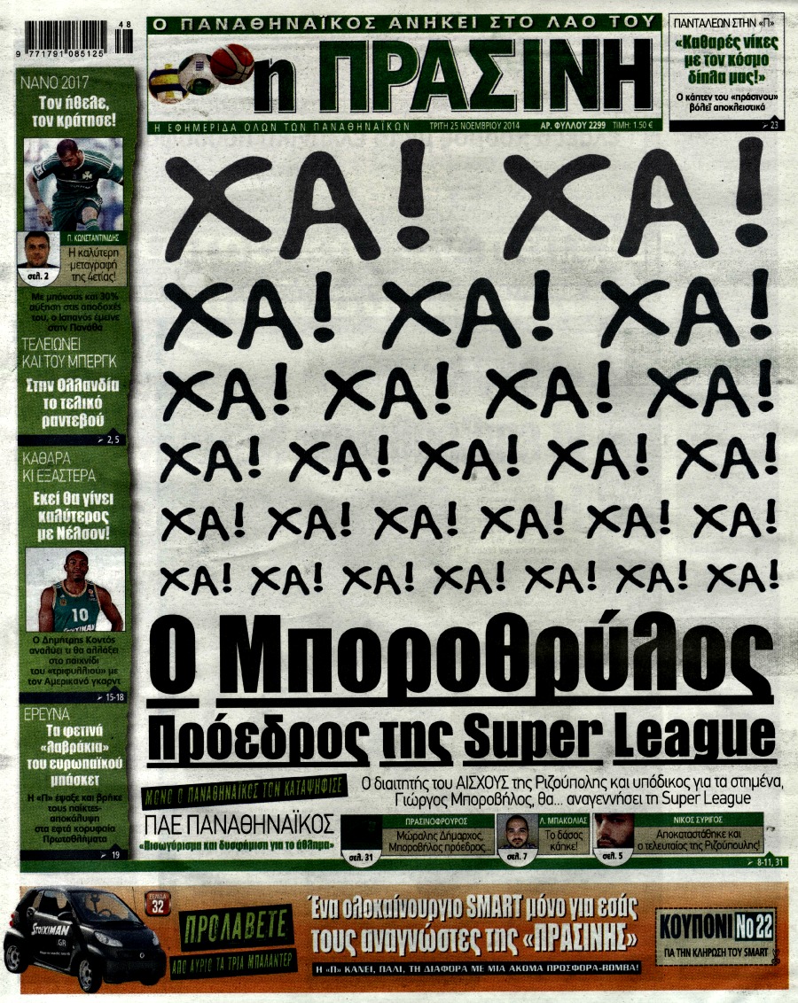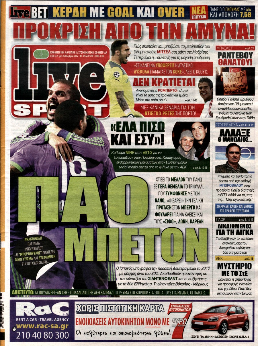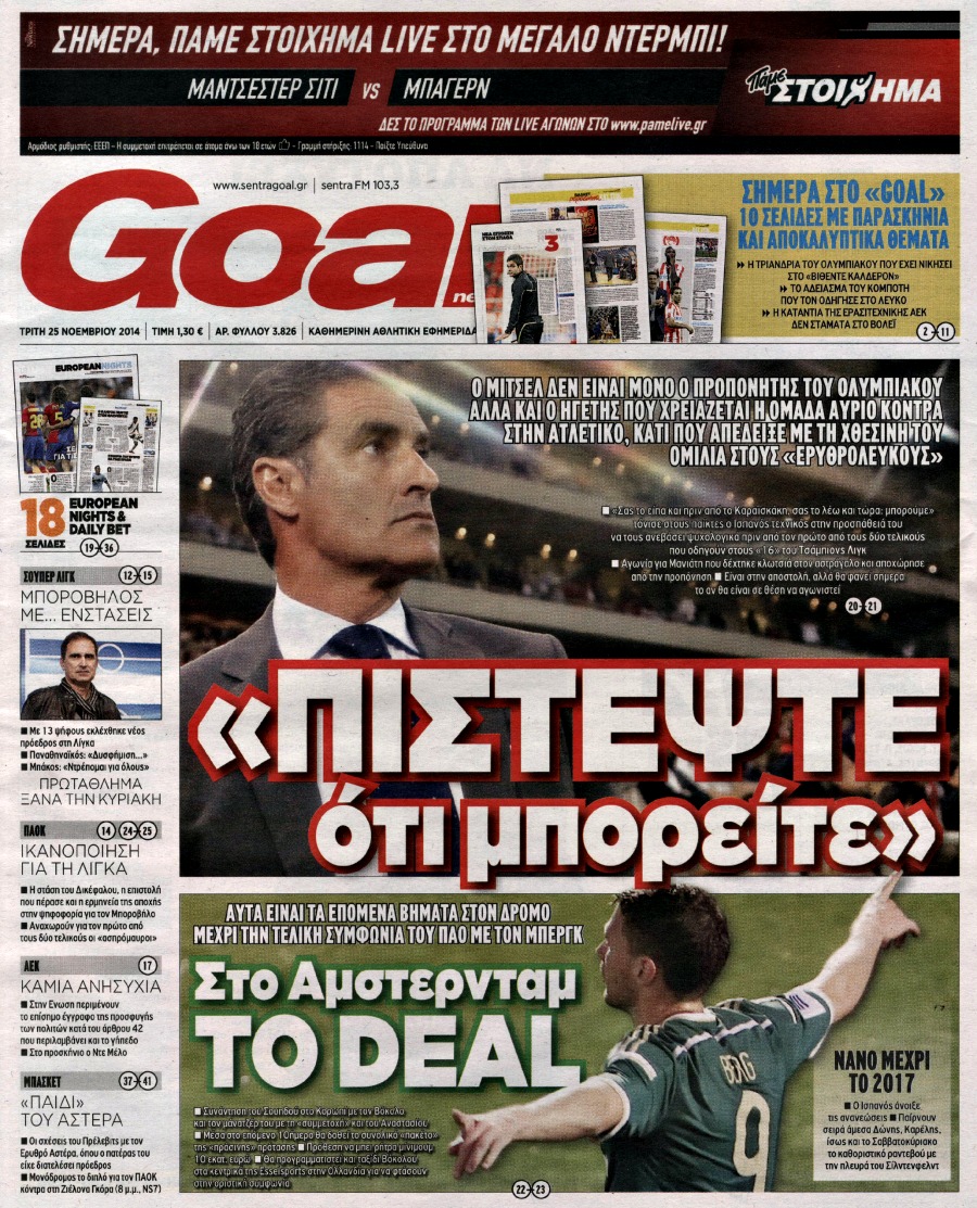 Οι αθλητικές εφημερίδες Enikos Newsroom 07:45, Τρίτη 25 Νοεμβρίου 2014 Media Οι αθλητικές εφημερίδες Διαβάστε τα πρωτοσέλιδα των αθλητικών εφημερίδων: ΑΘΛΗΤΙΚΕΣ ΕΦΗΜΕΡΙΔΕΣ ΕΦΗΜΕΡΙΔΕΣ ΠΡΩΤΟΣΕΛΙΔΑ Μοιράσου το: σχολίασε κι εσύ (0 σχόλια) Ακολουθήστε το enikos.gr στο Google News και μάθετε πρώτοι όλες τις ειδήσεις Δείτε όλες τις τελευταίες ειδήσεις από την Ελλάδα και τον Κόσμο στο enikos.gr Ειδήσεις Ροή Ειδήσεων 5 ώρες πριν Εκτός ευρωομάδας ΣΥΡΙΖΑ ο Νίκος Παππάς μετά την επίθεση στον δημοσιογράφο Νίκο Γιαννόπουλο – Η μήνυση και οι νέες δηλώσεις 5 ώρες πριν «Αγριεύουν» οι αγρότες: «Δεν συντρέχει λόγος συνάντησης με τον πρωθυπουργό» – Ώρα αποφάσεων στη σύσκεψη της Πέμπτης 5 ώρες πριν Κυψέλη: Χωρίς την οικογένειά της δίπλα της απολογήθηκε η 16χρονη – «Της είχε επιτεθεί κάποιος για να την βιάσει, φοβήθηκε και κυκλοφορούσε με μαχαίρι» 5 ώρες πριν Politico: Το πρόβλημα της Ευρώπης δεν είναι το Βέλγιο αλλά ο Ντόναλντ Τραμπ 6 ώρες πριν Αλεξανδρούπολη: Πολυοργανική ανεπάρκεια λόγω υποσιτισμού η αιτία θανάτου του 3χρονου αγοριού 5 ώρες πριν Μυστήριο με τεράστιες κυκλικές πέτρες 200 κιλών – Ανακαλύφθηκαν τυχαία κατά τη διάρκεια οδικών έργων και κανείς δεν ξέρει από πού προέρχονται 6 ώρες πριν Ύπνος: Ειδικός εξηγεί τον πραγματικό λόγο που ξυπνάτε στις 4 τα ξημερώματα – Ο ρόλος των ορμονών και του κιρκάδιου ρυθμού 7 ώρες πριν Αριθμολογία: Οι άνθρωποι που έχουν γεννηθεί αυτές τις 4 ημερομηνίες, είναι τρυφεροί και αγαπούν ανιδιοτελώς 19 ώρες πριν 20 χρόνια τα Χριστούγεννα ξεκινούν στα Public με μεγάλη ποικιλία σε δώρα! 8 λεπτά πριν GNTM: Με δάκρυα τον αποχαιρέτησε η Ηλιάνα Παπαγεωργίου πριν από τον ημιτελικό – «Αισθάνομαι πολύ παράξενα» 23 λεπτά πριν Αμερικανικά στρατεύματα στον Ισημερινό για «προσωρινή» επιχείρηση κατά των ναρκωτικών 39 λεπτά πριν Βραζιλία: Το Κογκρέσο ενέκρινε σχέδιο νόμου για τη μείωση της ποινής του πρώην προέδρου Μπολσονάρου 53 λεπτά πριν Ένταση στο περιφερειακό συμβούλιο Δυτικής Μακεδονίας: Φωνές, σπρωξιές και διακοπή – Δείτε βίντεο 1 ώρα πριν Σουδάν: Επιδρομή drone σε χωριό του Νότιου Κορντοφάν – Οκτώ νεκροί ENIKOS NETWORK Αϋπνία: Το κόλπο που θα σας βοηθήσει να κοιμηθείτε απόψε – Είναι απλό και έχει αποτέλεσμα 2,6 εκατομμύρια πολίτες έχουν ήδη εμβολιαστεί κατά της γρίπης ΕΛΣΤΑΤ: Τι δείχνουν τα νέα στοιχεία για τις ηλεκτρονικές παραγγελίες των επιχειρήσεων ΚΕΠΕ: Οι 3 διακριτές συμβολές των ΜμΕ και της μεταποίησης στην ελληνική οικονομία Χαρτογραφώντας το «σημείο χωρίς επιστροφή»: Για πρώτη φορά αποκαλύπτεται με λεπτομέρεια το ακανθώδες όριο της ατμόσφαιρας τ... Η Google καταργεί τη λειτουργία «dark web report» – Πώς θα μπορούν οι χρήστες να διαγράφουν τα δεδομένα τους περισσότερα 02:30 , Πέμπτη 18 Δεκεμβρίου 2025 Αλ Τσαντίρι Νιουζ: Η κόρη της Πάολα στο κοινό – Η ατάκα Λαζόπουλου που την έκανε να «κοκκινήσει» Γιορτινή διάθεση και ευχάριστες στιγμές γέμισε η αποψινή, τελευταία για το 2025, εκπομπή του «... 22:24 , Τετάρτη 17 Δεκεμβρίου 2025 Το Σπίτι Δίπλα Στο Ποτάμι: Σε κίνδυνο η υγεία του Απόστολου – Τι θα δούμε απόψε “Το Σπίτι Δίπλα στο Ποτάμι” ξετυλίγει το νήμα της ζωής των πέντε αδελφών με καταισ... 21:14 , Τετάρτη 17 Δεκεμβρίου 2025 Παιχνίδια Εκδίκησης: Θα καταφέρει ο Χρήστος να κλονίσει την εμπιστοσύνη της Μάγιας απέναντι στον Άγη; Τα «Παιχνίδια Εκδίκησης» έρχονται απόψε στις 22:30, στον Αντ1, με το τελευταίο επεισόδιο της χ... 20:57 , Τετάρτη 17 Δεκεμβρίου 2025 Άγιος Έρωτας: Η Χλόη καταθέτει εναντίον του πατέρα τη