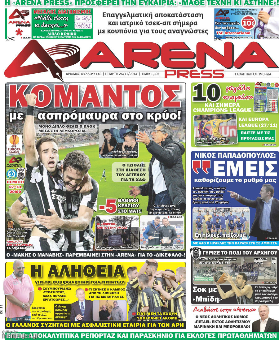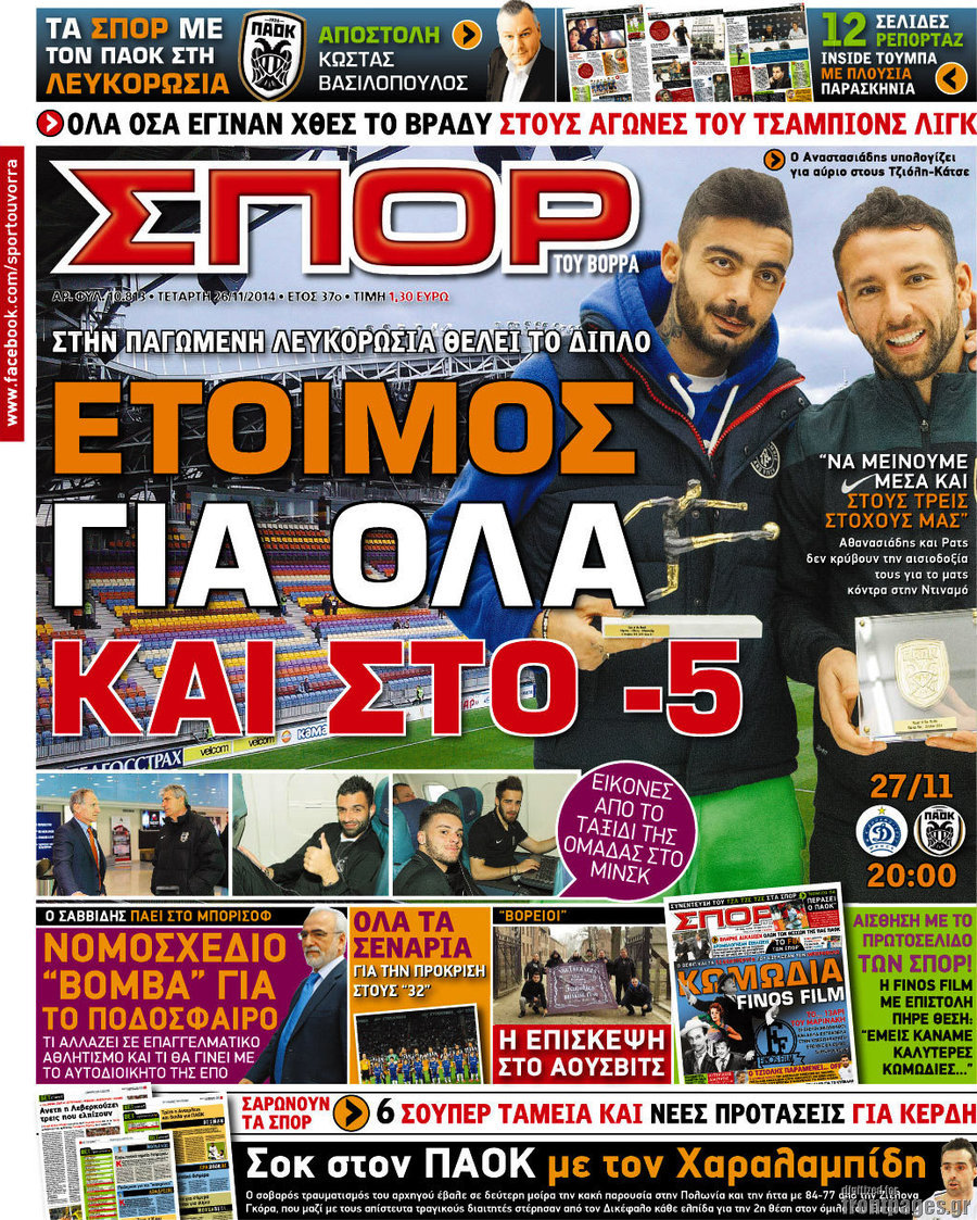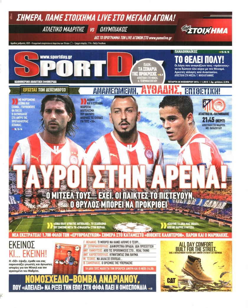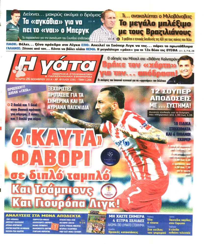 Οι αθλητικές εφημερίδες Enikos Newsroom 07:49, Τετάρτη 26 Νοεμβρίου 2014 Media Οι αθλητικές εφημερίδες Διαβάστε τα πρωτοσέλιδα των αθλητικών εφημερίδων: ΑΘΛΗΤΙΚΕΣ ΕΦΗΜΕΙΔΕΣ ΕΦΗΜΕΡΙΔΕΣ ΠΡΩΤΟΣΕΛΙΔΑ Μοιράσου το: σχολίασε κι εσύ (0 σχόλια) Ακολουθήστε το enikos.gr στο Google News και μάθετε πρώτοι όλες τις ειδήσεις Δείτε όλες τις τελευταίες ειδήσεις από την Ελλάδα και τον Κόσμο στο enikos.gr Ειδήσεις Ροή Ειδήσεων 45 λεπτά πριν Ευρωπαϊκή Ένωση: Χωρίς συμφωνία, για την μακροπρόθεσμη χρηματοδότηση της Ουκρανίας, ολοκληρώθηκε η Σύνοδος Κορυφής στις Βρυξέλλες 4 ώρες πριν ΟΠΕΚΕΠΕ: Προφυλακιστέος ο φερόμενος αρχηγός και ο λογιστής της εγκληματικής οργάνωσης 5 ώρες πριν Αυξάνουν την πίεση προς την κυβέρνηση οι αγρότες: Κλείνουν παρακαμπτήριους και ανοίγουν διόδια – Τι θα γίνει τις γιορτές 5 ώρες πριν Φοινικούντα: Το Σάββατο απολογείται ο 30χρονος γιος γνωστού επιχειρηματία της Πλάκας που παραδόθηκε – Όσα είπε στους αστυνομικούς και ο ρόλος του στο έγκλημα 4 ώρες πριν ΑΕΚ – Κραϊόβα 3-2: Επική ανατροπή και πρόκριση στους «16» του Conference League η Ένωση 5 ώρες πριν Αρχαιολόγοι ανακάλυψαν ρωμαϊκά τεχνουργήματα από μια πόλη που δεν υπήρξε ποτέ – Τα τρία εντυπωσιακά κτίρια και ο αμφορέας με τις… σαρδέλες 6 ώρες πριν Ύπνος: Η απλή βραδινή ρουτίνα για να προστατεύσετε τα μαλλιά σας από το κρύο κατά τη διάρκεια του χειμώνα 7 ώρες πριν Manifesting: Πώς να συναντήσετε τον σύντροφο της ζωής σας, ανάλογα με τον μήνα γέννησής σας 2 ημέρες πριν 20 χρόνια τα Χριστούγεννα ξεκινούν στα Public με μεγάλη ποικιλία σε δώρα! 45 δευτερόλεπτα πριν Στη Φλόριντα σήμερα οι διαβουλεύσεις σχετικά με τα επόμενα στάδια για τη Λωρίδα της Γάζας 5 λεπτά πριν Σίσσυ Τουμάση: «Είμαι ασθενοφοβική πάρα πολύ και με πιάνει μια παράνοια μ’ αυτό» 29 λεπτά πριν Ντόναλντ Τραμπ: Δεν χρειάζομαι την έγκριση του Κογκρέσου για να διατάξω στρατιωτικά πλήγματα στη Βενεζουέλα 45 λεπτά πριν Ευρωπαϊκή Ένωση: Χωρίς συμφωνία, για την μακροπρόθεσμη χρηματοδότηση της Ουκρανίας, ολοκληρώθηκε η Σύνοδος Κορυφής στις Βρυξέλλες 1 ώρα πριν GNTM: «Κλείδωσαν» οι τέσσερις φιναλίστ – Μεγάλη ανατροπή στις τελευταίες αποχωρήσεις ENIKOS NETWORK Σε περίοδο αυξημένης δραστηριότητας η γρίπη στην Ελλάδα-Μέτρα προστασίας από τον ΕΟΔΥ Σκέφτεστε συνέχεια συζητήσεις που έχετε κάνει; Τι σημαίνει αυτό, σύμφωνα με ειδικό Στεγαστικό: Τι λέει η ΠΟΜΙΔΑ για τα νέα μέτρα που ανακοίνωσε ο Κυριάκος Μητσοτάκης Λαγκάρντ: Αισιόδοξη για την ανάπτυξη της Ευρωζώνης, αβέβαιη για τον πληθωρισμό Χαρτογραφώντας το «σημείο χωρίς επιστροφή»: Για πρώτη φορά αποκαλύπτεται με λεπτομέρεια το ακανθώδες όριο της ατμόσφαιρας τ... Η Google καταργεί τη λειτουργία «dark web report» – Πώς θα μπορούν οι χρήστες να διαγράφουν τα δεδομένα τους περισσότερα 02:50 , Παρασκευή 19 Δεκεμβρίου 2025 GNTM: «Κλείδωσαν» οι τέσσερις φιναλίστ – Μεγάλη ανατροπή στις τελευταίες αποχωρήσεις Για προτελευταία φορά εμφανίστηκαν στο πλατό του GNTM οι φιναλίστ του φετινού κύκλου, το βράδυ... 17:45 , Πέμπτη 18 Δεκεμβρίου 2025 ROUK ZOUK: Εορταστικό επεισόδιο με καλεσμένους τους πρωταγωνιστές του «Γιατί ρε πατέρα» Το Σάββατο 20 Δεκεμβρίου στις 21:00, η Ζέτα Μακρυπούλια υποδέχεται εκλεκτούς ηθοποιούς που όλο... 17:20 , Πέμπτη 18 Δεκεμβρίου 2025 Άγιος έρωτας: Η Χριστίνα εξομολογείται στον πατέρα Νικόλαο, απόψε στις 21:00 στον Alpha Η Νότα αποφασίζει να εκδικηθεί τον Πέτρο και τον Στέφανο, για χάρη του Λούη, όμως τα πράγματα ... 16:50 , Πέμπτη 18 Δεκεμβρίου 2025 Να μ’ αγαπάς: Ζωή και Φωτε