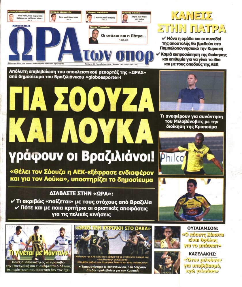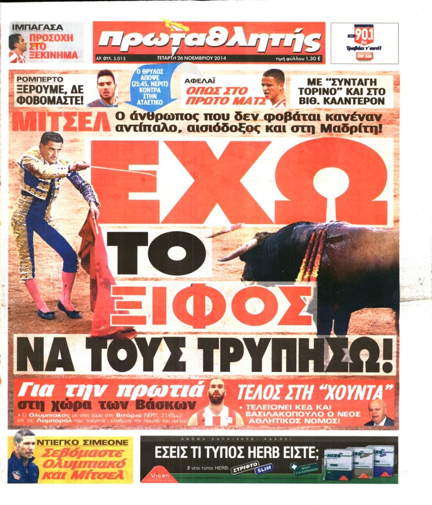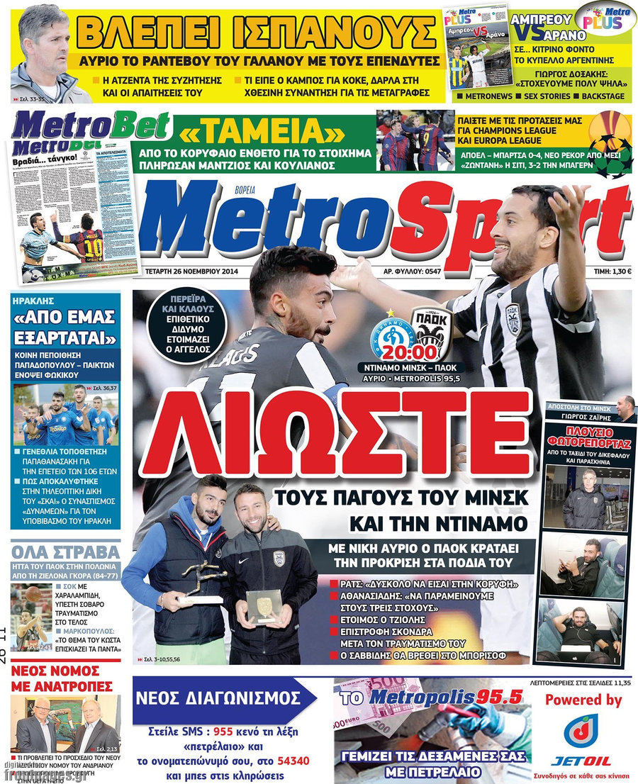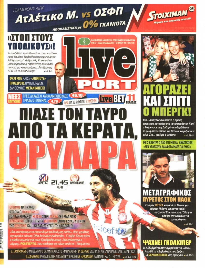 Οι αθλητικές εφημερίδες Enikos Newsroom 07:49, Τετάρτη 26 Νοεμβρίου 2014 Media Οι αθλητικές εφημερίδες Διαβάστε τα πρωτοσέλιδα των αθλητικών εφημερίδων: ΑΘΛΗΤΙΚΕΣ ΕΦΗΜΕΙΔΕΣ ΕΦΗΜΕΡΙΔΕΣ ΠΡΩΤΟΣΕΛΙΔΑ Μοιράσου το: σχολίασε κι εσύ (0 σχόλια) Ακολουθήστε το enikos.gr στο Google News και μάθετε πρώτοι όλες τις ειδήσεις Δείτε όλες τις τελευταίες ειδήσεις από την Ελλάδα και τον Κόσμο στο enikos.gr Ειδήσεις Ροή Ειδήσεων 45 λεπτά πριν Ευρωπαϊκή Ένωση: Χωρίς συμφωνία, για την μακροπρόθεσμη χρηματοδότηση της Ουκρανίας, ολοκληρώθηκε η Σύνοδος Κορυφής στις Βρυξέλλες 4 ώρες πριν ΟΠΕΚΕΠΕ: Προφυλακιστέος ο φερόμενος αρχηγός και ο λογιστής της εγκληματικής οργάνωσης 5 ώρες πριν Αυξάνουν την πίεση προς την κυβέρνηση οι αγρότες: Κλείνουν παρακαμπτήριους και ανοίγουν διόδια – Τι θα γίνει τις γιορτές 5 ώρες πριν Φοινικούντα: Το Σάββατο απολογείται ο 30χρονος γιος γνωστού επιχειρηματία της Πλάκας που παραδόθηκε – Όσα είπε στους αστυνομικούς και ο ρόλος του στο έγκλημα 4 ώρες πριν ΑΕΚ – Κραϊόβα 3-2: Επική ανατροπή και πρόκριση στους «16» του Conference League η Ένωση 5 ώρες πριν Αρχαιολόγοι ανακάλυψαν ρωμαϊκά τεχνουργήματα από μια πόλη που δεν υπήρξε ποτέ – Τα τρία εντυπωσιακά κτίρια και ο αμφορέας με τις… σαρδέλες 6 ώρες πριν Ύπνος: Η απλή βραδινή ρουτίνα για να προστατεύσετε τα μαλλιά σας από το κρύο κατά τη διάρκεια του χειμώνα 7 ώρες πριν Manifesting: Πώς να συναντήσετε τον σύντροφο της ζωής σας, ανάλογα με τον μήνα γέννησής σας 2 ημέρες πριν 20 χρόνια τα Χριστούγεννα ξεκινούν στα Public με μεγάλη ποικιλία σε δώρα! 45 δευτερόλεπτα πριν Στη Φλόριντα σήμερα οι διαβουλεύσεις σχετικά με τα επόμενα στάδια για τη Λωρίδα της Γάζας 5 λεπτά πριν Σίσσυ Τουμάση: «Είμαι ασθενοφοβική πάρα πολύ και με πιάνει μια παράνοια μ’ αυτό» 29 λεπτά πριν Ντόναλντ Τραμπ: Δεν χρειάζομαι την έγκριση του Κογκρέσου για να διατάξω στρατιωτικά πλήγματα στη Βενεζουέλα 45 λεπτά πριν Ευρωπαϊκή Ένωση: Χωρίς συμφωνία, για την μακροπρόθεσμη χρηματοδότηση της Ουκρανίας, ολοκληρώθηκε η Σύνοδος Κορυφής στις Βρυξέλλες 1 ώρα πριν GNTM: «Κλείδωσαν» οι τέσσερις φιναλίστ – Μεγάλη ανατροπή στις τελευταίες αποχωρήσεις ENIKOS NETWORK Σε περίοδο αυξημένης δραστηριότητας η γρίπη στην Ελλάδα-Μέτρα προστασίας από τον ΕΟΔΥ Σκέφτεστε συνέχεια συζητήσεις που έχετε κάνει; Τι σημαίνει αυτό, σύμφωνα με ειδικό Στεγαστικό: Τι λέει η ΠΟΜΙΔΑ για τα νέα μέτρα που ανακοίνωσε ο Κυριάκος Μητσοτάκης Λαγκάρντ: Αισιόδοξη για την ανάπτυξη της Ευρωζώνης, αβέβαιη για τον πληθωρισμό Χαρτογραφώντας το «σημείο χωρίς επιστροφή»: Για πρώτη φορά αποκαλύπτεται με λεπτομέρεια το ακανθώδες όριο της ατμόσφαιρας τ... Η Google καταργεί τη λειτουργία «dark web report» – Πώς θα μπορούν οι χρήστες να διαγράφουν τα δεδομένα τους περισσότερα 02:50 , Παρασκευή 19 Δεκεμβρίου 2025 GNTM: «Κλείδωσαν» οι τέσσερις φιναλίστ – Μεγάλη ανατροπή στις τελευταίες αποχωρήσεις Για προτελευταία φορά εμφανίστηκαν στο πλατό του GNTM οι φιναλίστ του φετινού κύκλου, το βράδυ... 17:45 , Πέμπτη 18 Δεκεμβρίου 2025 ROUK ZOUK: Εορταστικό επεισόδιο με καλεσμένους τους πρωταγωνιστές του «Γιατί ρε πατέρα» Το Σάββατο 20 Δεκεμβρίου στις 21:00, η Ζέτα Μακρυπούλια υποδέχεται εκλεκτούς ηθοποιούς που όλο... 17:20 , Πέμπτη 18 Δεκεμβρίου 2025 Άγιος έρωτας: Η Χριστίνα εξομολογείται στον πατέρα Νικόλαο, απόψε στις 21:00 στον Alpha Η Νότα αποφασίζει να εκδικηθεί τον Πέτρο και τον Στέφανο, για χάρη του Λούη, όμως τα πράγματα ... 16:50 , Πέμπτη 18 Δεκεμβρίου 2025 Να μ’ αγαπάς: Ζωή και Φωτε