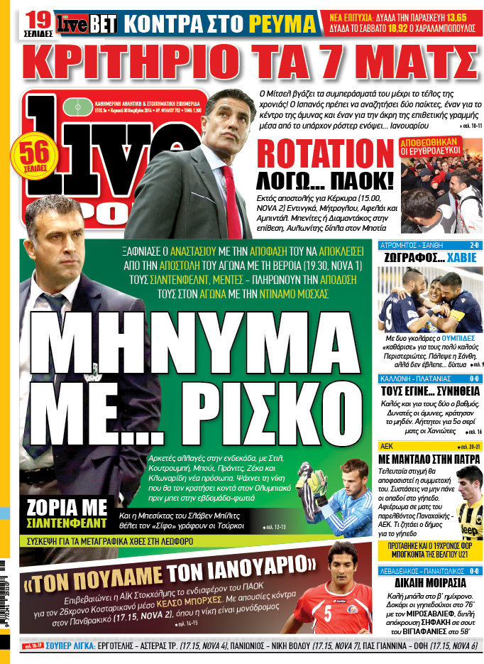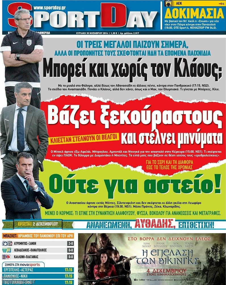Οι αθλητικές εφημερίδες Enikos Newsroom 07:44, Κυριακή 30 Νοεμβρίου 2014 Media Οι αθλητικές εφημερίδες ΑΘΛΗΤΙΚΕΣ ΕΦΗΜΕΡΙΔΕΣ ΠΡΩΤΟΣΕΛΙΔΑ Μοιράσου το: σχολίασε κι εσύ (0 σχόλια) Ακολουθήστε το enikos.gr στο Google News και μάθετε πρώτοι όλες τις ειδήσεις Δείτε όλες τις τελευταίες ειδήσεις από την Ελλάδα και τον Κόσμο στο enikos.gr Ειδήσεις Ροή Ειδήσεων 4 ώρες πριν Εκτός ευρωομάδας ΣΥΡΙΖΑ ο Νίκος Παππάς μετά την επίθεση στον δημοσιογράφο Νίκο Γιαννόπουλο – Η μήνυση και οι νέες δηλώσεις 4 ώρες πριν «Αγριεύουν» οι αγρότες: «Δεν συντρέχει λόγος συνάντησης με τον πρωθυπουργό» – Ώρα αποφάσεων στη σύσκεψη της Πέμπτης 4 ώρες πριν Κυψέλη: Χωρίς την οικογένειά της δίπλα της απολογήθηκε η 16χρονη – «Της είχε επιτεθεί κάποιος για να την βιάσει, φοβήθηκε και κυκλοφορούσε με μαχαίρι» 4 ώρες πριν Politico: Το πρόβλημα της Ευρώπης δεν είναι το Βέλγιο αλλά ο Ντόναλντ Τραμπ 5 ώρες πριν Αλεξανδρούπολη: Πολυοργανική ανεπάρκεια λόγω υποσιτισμού η αιτία θανάτου του 3χρονου αγοριού 4 ώρες πριν Μυστήριο με τεράστιες κυκλικές πέτρες 200 κιλών – Ανακαλύφθηκαν τυχαία κατά τη διάρκεια οδικών έργων και κανείς δεν ξέρει από πού προέρχονται 5 ώρες πριν Ύπνος: Ειδικός εξηγεί τον πραγματικό λόγο που ξυπνάτε στις 4 τα ξημερώματα – Ο ρόλος των ορμονών και του κιρκάδιου ρυθμού 6 ώρες πριν Αριθμολογία: Οι άνθρωποι που έχουν γεννηθεί αυτές τις 4 ημερομηνίες, είναι τρυφεροί και αγαπούν ανιδιοτελώς 18 ώρες πριν 20 χρόνια τα Χριστούγεννα ξεκινούν στα Public με μεγάλη ποικιλία σε δώρα! 10 λεπτά πριν Σουδάν: Επιδρομή drone σε χωριό του Νότιου Κορντοφάν – Οκτώ νεκροί 26 λεπτά πριν Αλ Τσαντίρι Νιουζ: Η κόρη της Πάολα στο κοινό – Η ατάκα Λαζόπουλου που την έκανε να «κοκκινήσει» 40 λεπτά πριν Ρωσία: Ουκρανικές δυνάμεις έπληξαν πλοίο στο λιμάνι του Ροστόφ – Αναφορές για θύματα 56 λεπτά πριν Βρυξέλλες: Νυχτερινό… μπλόκο αγροτών μπροστά από το κτίριο της Ευρωπαϊκής Επιτροπής – Πάνω από 100 τρακτέρ απέκλεισαν την λεωφόρο 1 ώρα πριν Euroleague: Απρόσμενη ήττα για την Μονακό του Βασίλη Σπανούλη – Η βαθμολογία μετά το τέλος της 16ης αγωνιστικής ENIKOS NETWORK Αϋπνία: Το κόλπο που θα σας βοηθήσει να κοιμηθείτε απόψε – Είναι απλό και έχει αποτέλεσμα 2,6 εκατομμύρια πολίτες έχουν ήδη εμβολιαστεί κατά της γρίπης ΕΛΣΤΑΤ: Τι δείχνουν τα νέα στοιχεία για τις ηλεκτρονικές παραγγελίες των επιχειρήσεων ΚΕΠΕ: Οι 3 διακριτές συμβολές των ΜμΕ και της μεταποίησης στην ελληνική οικονομία Χαρτογραφώντας το «σημείο χωρίς επιστροφή»: Για πρώτη φορά αποκαλύπτεται με λεπτομέρεια το ακανθώδες όριο της ατμόσφαιρας τ... Η Google καταργεί τη λειτουργία «dark web report» – Πώς θα μπορούν οι χρήστες να διαγράφουν τα δεδομένα τους περισσότερα 02:30 , Πέμπτη 18 Δεκεμβρίου 2025 Αλ Τσαντίρι Νιουζ: Η κόρη της Πάολα στο κοινό – Η ατάκα Λαζόπουλου που την έκανε να «κοκκινήσει» Γιορτινή διάθεση και ευχάριστες στιγμές γέμισε η αποψινή, τελευταία για το 2025, εκπομπή του «... 22:24 , Τετάρτη 17 Δεκεμβρίου 2025 Το Σπίτι Δίπλα Στο Ποτάμι: Σε κίνδυνο η υγεία του Απόστολου – Τι θα δούμε απόψε “Το Σπίτι Δίπλα στο Ποτάμι” ξετυλίγει το νήμα της ζωής των πέντε αδελφών με καταισ... 21:14 , Τετάρτη 17 Δεκεμβρίου 2025 Παιχνίδια Εκδίκησης: Θα καταφέρει ο Χρήστος να κλονίσει την εμπιστοσύνη της Μάγιας απέναντι στον Άγη; Τα «Παιχνίδια Εκδίκησης» έρχονται απόψε στις 22:30, στον Αντ1, με το τελευταίο επεισόδιο της χ... 20:57 , Τετάρτη 17 Δεκεμβρίου 2025 Άγιος Έρωτας: Η Χλόη καταθέτει εναντίον του πατέρα της και ο Χάρης αποκαλύπτει στον Κλε