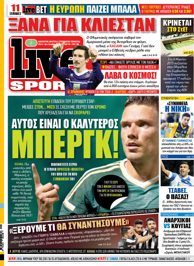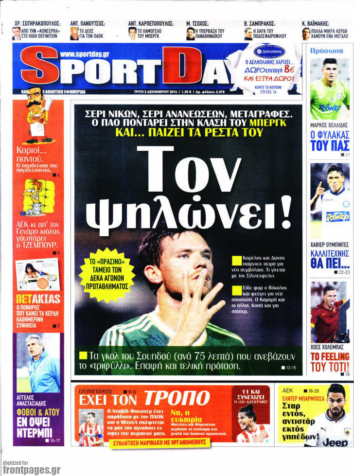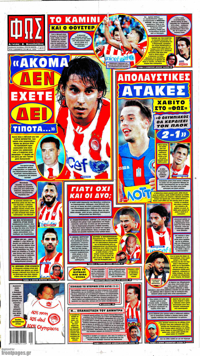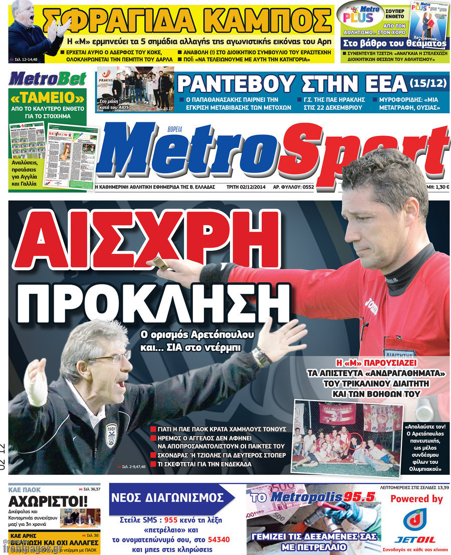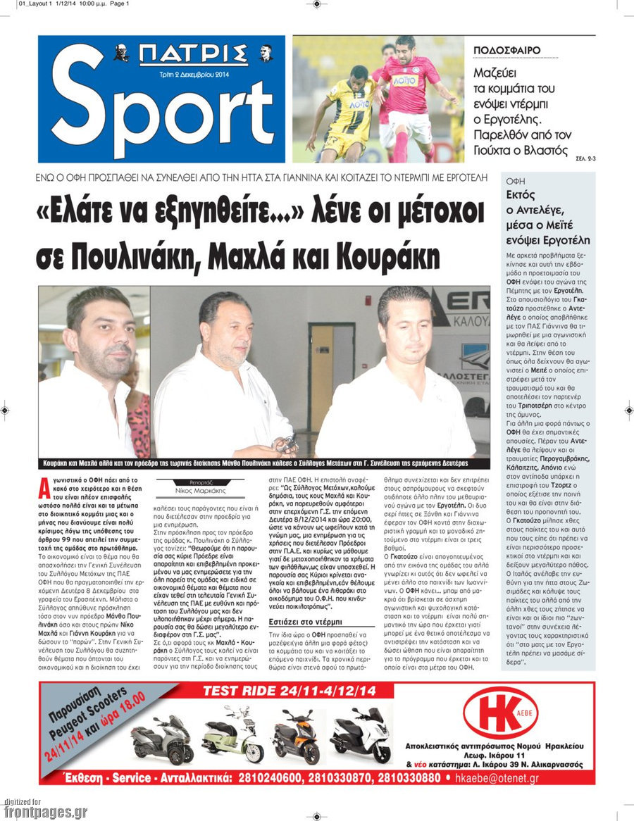 Οι αθλητικές εφημερίδες Enikos Newsroom 08:13, Τρίτη 02 Δεκεμβρίου 2014 Media Οι αθλητικές εφημερίδες Διαβάστε τα πρωτοσέλιδα των αθλητικών εφημερίδων: ΑΘΛΗΤΙΚΕΣ ΕΦΗΜΕΡΙΔΕΣ ΠΡΩΤΟΣΕΛΙΔΑ Μοιράσου το: σχολίασε κι εσύ (0 σχόλια) Ακολουθήστε το enikos.gr στο Google News και μάθετε πρώτοι όλες τις ειδήσεις Δείτε όλες τις τελευταίες ειδήσεις από την Ελλάδα και τον Κόσμο στο enikos.gr Ειδήσεις Ροή Ειδήσεων 20 λεπτά πριν ΣΥΡΙΖΑ: Διέγραψε τον ευρωβουλευτή Νίκο Παππά μετά την μήνυση δημοσιογράφου για ξυλοδαρμό 1 ώρα πριν Πώς στήθηκε η επιχείρηση «Ίπαλλος» που οδήγησε στη σύλληψη του «Έλληνα Εσκομπάρ» – «Ο πόλεμος ενάντια στους εμπόρους ναρκωτικών θα συνεχιστεί» 1 ώρα πριν Δίκη Χρυσής Αυγής: Την ενοχή και των 42 κατηγορουμένων ζητά η εισαγγελέας 1 ώρα πριν Κυψέλη: Στη φυλακή η 16χρονη που μαχαίρωσε συμμαθήτριά της 4 ώρες πριν Αμοργός: «Θα προσπαθήσω να το κάνω κάθε μέρα» – Ποιος είναι ο αγρότης που έστησε μόνος του το πρώτο μπλόκο στο νησί 1 ώρα πριν Τα 3 ζώδια που θα δουν τη ζωή τους να αλλάζει ριζικά το 2026 – «Όλα γίνονται καλύτερα σταδιακά» 6 ώρες πριν «Δεν είχα κλάψει από τότε που διαγνώστηκα με καρκίνο, ώσπου ένα τηλεφώνημα με έκανε να λυγίσω» – Η συγκλονιστική εξομολόγηση ενός άνδρα 2 ώρες πριν Ο σπάνιος σεισμός που έλυσε τα χέρια των επιστημόνων – Αποκάλυψε ακριβώς όσα αναζητούσαν 8 ώρες πριν 20 χρόνια τα Χριστούγεννα ξεκινούν στα Public με μεγάλη ποικιλία σε δώρα! 3 λεπτά πριν Μαργαρίτα Θεοδωράκη για Γιώργο Χατζιδάκι: Προσβλητικό το εξώδικο – Ο Μίκης έγραψε «απαγορεύεται το απαγορεύεται» 9 λεπτά πριν Ρόδος: Ανήλικος που βρισκόταν σε σχολική εκδρομή μεταφέρθηκε μεθυσμένος στο νοσοκομείο – 2 συλλήψεις 15 λεπτά πριν Γέννησε η Ευάννα Ζουμπούρογλου: «Είμαστε και οι δύο πολύ καλά – Είναι η πιο όμορφη όλου του κόσμου» 20 λεπτά πριν ΣΥΡΙΖΑ: Διέγραψε τον ευρωβουλευτή Νίκο Παππά μετά την μήνυση δημοσιογράφου για ξυλοδαρμό 22 λεπτά πριν Απολαυστικό «Ρουκ…Σουτ» με παίκτες του Παναθηναϊκού AKTOR – ΒΙΝΤΕΟ ENIKOS NETWORK Γιατί αναζητούμε τα Χριστούγεννα όλο και νωρίτερα; Ποιοι οι ψυχολογικοί και οι συναισθηματικοί λόγοι Σοβαροί κίνδυνοι από τη λάθος χορήγηση φαρμάκου για τις αιμορραγίες-Συστάσεις προς τους γιατρούς Δάνεια σε ελβετικό φράγκο: Αύριο η κατάθεση της τροπολογίας στη Βουλή – Όλες οι λεπτομέρειες Επίδομα παιδιού: Πότε θα δοθεί η τελευταία δόση για το 2025 από τον ΟΠΕΚΑ και τι πρέπει να γνωρίζετε Χαρτογραφώντας το «σημείο χωρίς επιστροφή»: Για πρώτη φορά αποκαλύπτεται με λεπτομέρεια το ακανθώδες όριο της ατμόσφαιρας τ... Η Google καταργεί τη λειτουργία «dark web report» – Πώς θα μπορούν οι χρήστες να διαγράφουν τα δεδομένα τους περισσότερα 12:35 , Τετάρτη 17 Δεκεμβρίου 2025 Μίρκα Παπακωνσταντίνου: «Δεν ήμουν αισιόδοξη για τα νούμερα – Είμαι ρεαλίστρια» Στα γυρίσματα του εορταστικού επεισοδίου της αγαπημένης σειράς “Το Σόι Σου”, βρέθηκε η κάμερα ... 12:12 , Τετάρτη 17 Δεκεμβρίου 2025 Ακούστε την εκπομπή του Νίκου Χατζηνικολάου 17/12/2025 Ακούστε την εκπομπή του Νίκου Χατζηνικολάου στον ραδιοφωνικό σταθμό RealFm 97,8, την Τετάρτη 1... 11:35 , Τετάρτη 17 Δεκεμβρίου 2025 Home Alone: Το σπίτι της ταινίας θα ανακαινιστεί – Επιστροφή στην αισθητική της δεκαετίας του ’90 Οι νέοι ιδιοκτήτες του πραγματικού σπιτιού που παρουσιάζεται στην κλασική ταινία του 1990 «Hom... 11:25 , Τετάρτη 17 Δεκεμβρίου 2025 Grand Hotel: Απόψε το τελευταίο επεισόδιο της χρονιάς – Όλα τα μυστικά μένουν εδώ Το τελευταίο επεισόδιο της χρονιάς της σειράς «Grand Hotel» θα προβληθεί 