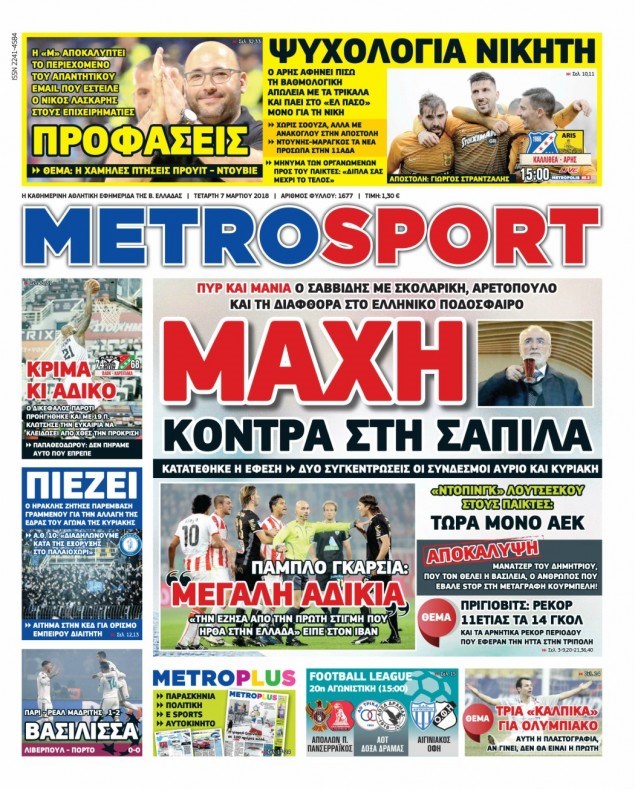 Οι αθλητικές εφημερίδες 7/3/2018 Κώστας Τεό 06:26, Τετάρτη 07 Μαρτίου 2018 Media Διαβάστε τα σημερινά πρωτοσέλιδα των αθλητικών εφημερίδων: ΑΘΛΗΤΙΚΕΣ ΕΦΗΜΕΡΙΔΕΣ ΠΡΩΤΟΣΕΛΙΔΑ Μοιράσου το: σχολίασε κι εσύ (0 σχόλια) Ακολουθήστε το enikos.gr στο Google News και μάθετε πρώτοι όλες τις ειδήσεις Δείτε όλες τις τελευταίες ειδήσεις από την Ελλάδα και τον Κόσμο στο enikos.gr Ειδήσεις Ροή Ειδήσεων 4 ώρες πριν Από το Ορμένιο ως τα Μάλγαρα κι από τη Σιάτιστα μέχρι τη Νίκαια: Μπλόκα σε όλη την Ελλάδα – Το Σάββατο ανοίγουν τα διόδια οι αγρότες 1 ώρα πριν Εμπλοκή και αερομαχίες με οπλισμένα τουρκικά F-16 στο Αιγαίο 3 ώρες πριν Αττική: Θρίλερ με νεκρό βρέφος 5 μηνών – Κοιμόταν στο ίδιο κρεβάτι με τους γονείς του 57 λεπτά πριν Πούτιν: «Ναι, είμαι ερωτευμένος» – Βίντεο από τη σπάνια προσωπική παραδοχή του 3 ώρες πριν Μεσόγειος: Η διαδρομή του ρωσικού τάνκερ «Qendil» και η στοχευμένη επίθεση της Ουκρανίας με drone – Ο Πούτιν προειδοποίησε για αντίποινα 5 ώρες πριν Τα 5 ζώδια που ευνοούνται στην ερωτική ζωή τους την επόμενη εβδομάδα – «Η ενέργεια του Αιγόκερου φέρνει αγάπη και σταθερότητα» 6 ώρες πριν Αυτό το έξυπνο μαθηματικό κόλπο θα μπορούσε να αλλάξει τον τρόπο με τον οποίο οι επιστήμονες μελετούν τους σεισμούς 2 ώρες πριν Μήπως έχετε χάσει τον εαυτό σας στη σχέση σας; 7 «αθόρυβες» υποχωρήσεις που μάλλον κάνατε, χωρίς να το συνειδητοποιήσετε 4 ώρες πριν Κουίζ για την παλιά Αθήνα: Αναγνωρίζετε την περιοχή; Έχετε περάσει 100% από εκεί 4 λεπτά πριν Μπαράκ Ομπάμα: Τα βιβλία, οι ταινίες και τα τραγούδια που ξεχώρισε το 2025 – Πλήρης λίστα 9 λεπτά πριν Don’t Forget The Lyrics: Η Έλλη Κοκκίνου υποδέχεται 4 παίκτες που θα κάνουν τα πάντα για να μη χάσουν ούτε… μισή λέξη από τους στίχους 14 λεπτά πριν Πλεύρης στον ΑΝΤ1: Η βασική πολιτική που ψηφίστηκε από τους υπουργούς Μετανάστευσης είναι η δημιουργία κέντρων κράτησης μεταναστών στην Αφρική – ΒΙΝΤΕΟ 19 λεπτά πριν Η εξομολόγηση της Νίκης Σερέτη: «Δεν κρύβω ότι ήταν πάρα πολύ δύσκολο όλο αυτό που βίωσα» 25 λεπτά πριν Αγρότες: Κλειστό ξανά το ρεύμα εισόδου στα Μάλγαρα – Άνοιξαν τον κόμβο της Χαλκηδόνας ENIKOS NETWORK Έχετε πραγματικά μεγάλη καρδιά; 10 χαρακτηριστικά όσων έχουν καλοσύνη «Η σούπερ» γρίπη εξαπλώνεται στην Ευρώπη-Στοιχεία από το ECDC για την αποτελεσματικότητα του εμβολίου Επίδομα παιδιού: Πότε ανοίγει ξανά η πλατφόρμα για τις αιτήσεις Προκήρυξη ΑΣΕΠ για 397 μόνιμες προσλήψεις στο Δημόσιο: Βγήκαν τα προσωρινά αποτελέσματα – Πότε αρχίζει η υποβολή ενστάσεων Χαρτογραφώντας το «σημείο χωρίς επιστροφή»: Για πρώτη φορά αποκαλύπτεται με λεπτομέρεια το ακανθώδες όριο της ατμόσφαιρας τ... Η Google καταργεί τη λειτουργία «dark web report» – Πώς θα μπορούν οι χρήστες να διαγράφουν τα δεδομένα τους περισσότερα 20:37 , Παρασκευή 19 Δεκεμβρίου 2025 Don’t Forget The Lyrics: Η Έλλη Κοκκίνου υποδέχεται 4 παίκτες που θα κάνουν τα πάντα για να μη χάσουν ούτε… μισή λέξη από τους στίχους Το «Don’t Forget The Lyrics» επιστρέφει απόψε, Παρασκευή 19 Δεκεμβρίου, στις 21:00 με νέο επει... 19:31 , Παρασκευή 19 Δεκεμβρίου 2025 GNTM: Απόψε ο μεγάλος τελικός για τους 4 φιναλίστ Έπειτα από μήνες γεμάτους μόδα, δημιουργία και έντονες αναμετρήσεις, το GNTM 2025 κορυφώνεται,... 18:11 , Παρασκευή 19 Δεκεμβρίου 2025 Το σόι σου: Ο Άρης έρχεται στην Ελλάδα για τις γιορτές των Χριστουγέννων – Τι θα δούμε στο αποψινό εορταστικό επεισόδιο Ένα απολαυστικό, εορταστικό επεισόδιο της σειράς “Το σόι σου”, γεμάτο ευτράπελα αλ... 15:15 , Παρασκευή 19 Δεκεμβρίου 2025 Την Κυρι