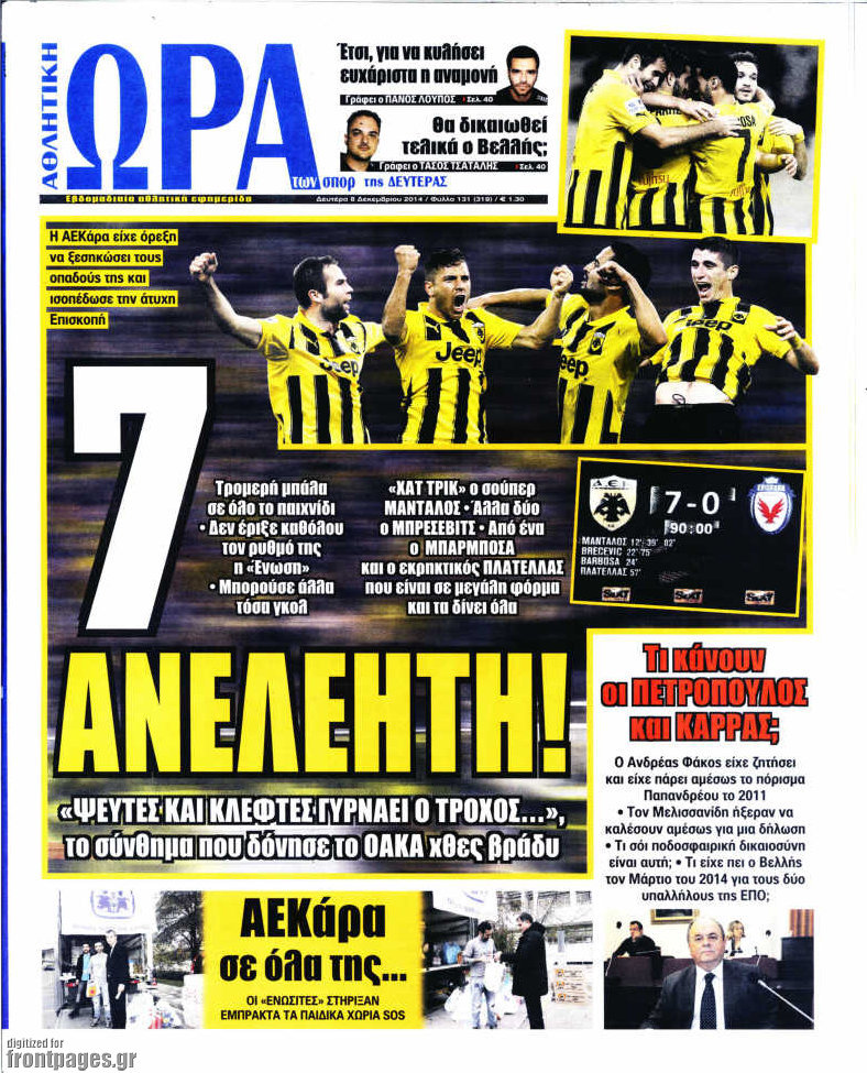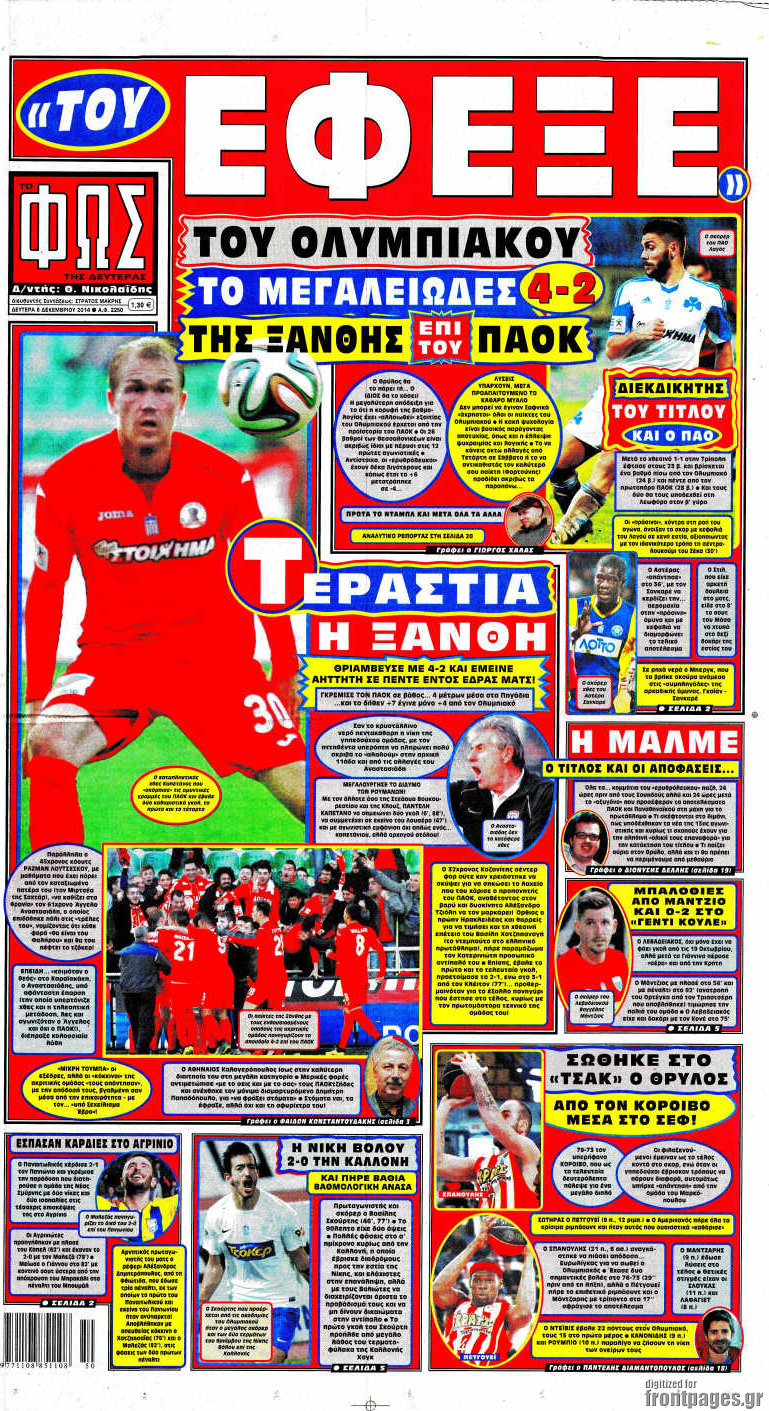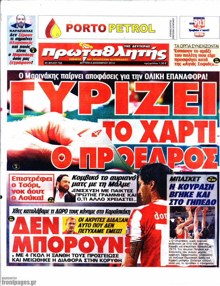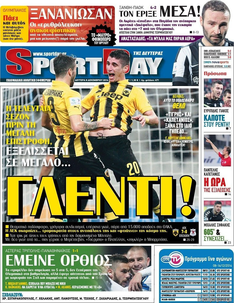 Οι αθλητικές εφημερίδες Enikos Newsroom 08:16, Δευτέρα 08 Δεκεμβρίου 2014 Media Οι αθλητικές εφημερίδες Διαβάστε τα πρωτοσέλιδα των αθλητικών εφημερίδων: ΑΘΛΗΤΙΚΕΣ ΕΦΗΜΕΡΙΔΕΣ ΠΡΩΤΟΣΕΛΙΔΑ Μοιράσου το: σχολίασε κι εσύ (0 σχόλια) Ακολουθήστε το enikos.gr στο Google News και μάθετε πρώτοι όλες τις ειδήσεις Δείτε όλες τις τελευταίες ειδήσεις από την Ελλάδα και τον Κόσμο στο enikos.gr Ειδήσεις Ροή Ειδήσεων 5 ώρες πριν Εκτός ευρωομάδας ΣΥΡΙΖΑ ο Νίκος Παππάς μετά την επίθεση στον δημοσιογράφο Νίκο Γιαννόπουλο – Η μήνυση και οι νέες δηλώσεις 6 ώρες πριν «Αγριεύουν» οι αγρότες: «Δεν συντρέχει λόγος συνάντησης με τον πρωθυπουργό» – Ώρα αποφάσεων στη σύσκεψη της Πέμπτης 5 ώρες πριν Κυψέλη: Χωρίς την οικογένειά της δίπλα της απολογήθηκε η 16χρονη – «Της είχε επιτεθεί κάποιος για να την βιάσει, φοβήθηκε και κυκλοφορούσε με μαχαίρι» 5 ώρες πριν Politico: Το πρόβλημα της Ευρώπης δεν είναι το Βέλγιο αλλά ο Ντόναλντ Τραμπ 7 ώρες πριν Αλεξανδρούπολη: Πολυοργανική ανεπάρκεια λόγω υποσιτισμού η αιτία θανάτου του 3χρονου αγοριού 5 ώρες πριν Μυστήριο με τεράστιες κυκλικές πέτρες 200 κιλών – Ανακαλύφθηκαν τυχαία κατά τη διάρκεια οδικών έργων και κανείς δεν ξέρει από πού προέρχονται 6 ώρες πριν Ύπνος: Ειδικός εξηγεί τον πραγματικό λόγο που ξυπνάτε στις 4 τα ξημερώματα – Ο ρόλος των ορμονών και του κιρκάδιου ρυθμού 7 ώρες πριν Αριθμολογία: Οι άνθρωποι που έχουν γεννηθεί αυτές τις 4 ημερομηνίες, είναι τρυφεροί και αγαπούν ανιδιοτελώς 19 ώρες πριν 20 χρόνια τα Χριστούγεννα ξεκινούν στα Public με μεγάλη ποικιλία σε δώρα! 18 λεπτά πριν Αλ Τσαντίρι Νιουζ: «Λύγισε» ο Δημήτρης Λάλος για τον Δημήτρη Ήμελλο – «Τον μνημονεύω, να ‘ναι καλά εκεί που είναι» 33 λεπτά πριν GNTM: Με δάκρυα τον αποχαιρέτησε η Ηλιάνα Παπαγεωργίου πριν από τον ημιτελικό – «Αισθάνομαι πολύ παράξενα» 48 λεπτά πριν Αμερικανικά στρατεύματα στον Ισημερινό για «προσωρινή» επιχείρηση κατά των ναρκωτικών 1 ώρα πριν Βραζιλία: Το Κογκρέσο ενέκρινε σχέδιο νόμου για τη μείωση της ποινής του πρώην προέδρου Μπολσονάρου 1 ώρα πριν Ένταση στο περιφερειακό συμβούλιο Δυτικής Μακεδονίας: Φωνές, σπρωξιές και διακοπή – Δείτε βίντεο ENIKOS NETWORK Αϋπνία: Το κόλπο που θα σας βοηθήσει να κοιμηθείτε απόψε – Είναι απλό και έχει αποτέλεσμα 2,6 εκατομμύρια πολίτες έχουν ήδη εμβολιαστεί κατά της γρίπης ΕΛΣΤΑΤ: Τι δείχνουν τα νέα στοιχεία για τις ηλεκτρονικές παραγγελίες των επιχειρήσεων ΚΕΠΕ: Οι 3 διακριτές συμβολές των ΜμΕ και της μεταποίησης στην ελληνική οικονομία Χαρτογραφώντας το «σημείο χωρίς επιστροφή»: Για πρώτη φορά αποκαλύπτεται με λεπτομέρεια το ακανθώδες όριο της ατμόσφαιρας τ... Η Google καταργεί τη λειτουργία «dark web report» – Πώς θα μπορούν οι χρήστες να διαγράφουν τα δεδομένα τους περισσότερα 02:30 , Πέμπτη 18 Δεκεμβρίου 2025 Αλ Τσαντίρι Νιουζ: Η κόρη της Πάολα στο κοινό – Η ατάκα Λαζόπουλου που την έκανε να «κοκκινήσει» Γιορτινή διάθεση και ευχάριστες στιγμές γέμισε η αποψινή, τελευταία για το 2025, εκπομπή του «... 22:24 , Τετάρτη 17 Δεκεμβρίου 2025 Το Σπίτι Δίπλα Στο Ποτάμι: Σε κίνδυνο η υγεία του Απόστολου – Τι θα δούμε απόψε “Το Σπίτι Δίπλα στο Ποτάμι” ξετυλίγει το νήμα της ζωής των πέντε αδελφών με καταισ... 21:14 , Τετάρτη 17 Δεκεμβρίου 2025 Παιχνίδια Εκδίκησης: Θα καταφέρει ο Χρήστος να κλονίσει την εμπιστοσύνη της Μάγιας απέναντι στον Άγη; Τα «Παιχνίδια Εκδίκησης» έρχονται απόψε στις 22:30, στον Αντ1, με το τελευταίο επεισόδιο της χ... 20:57 , Τετάρτη 17 Δεκεμβρίου 2025 Άγιος Έρωτας: