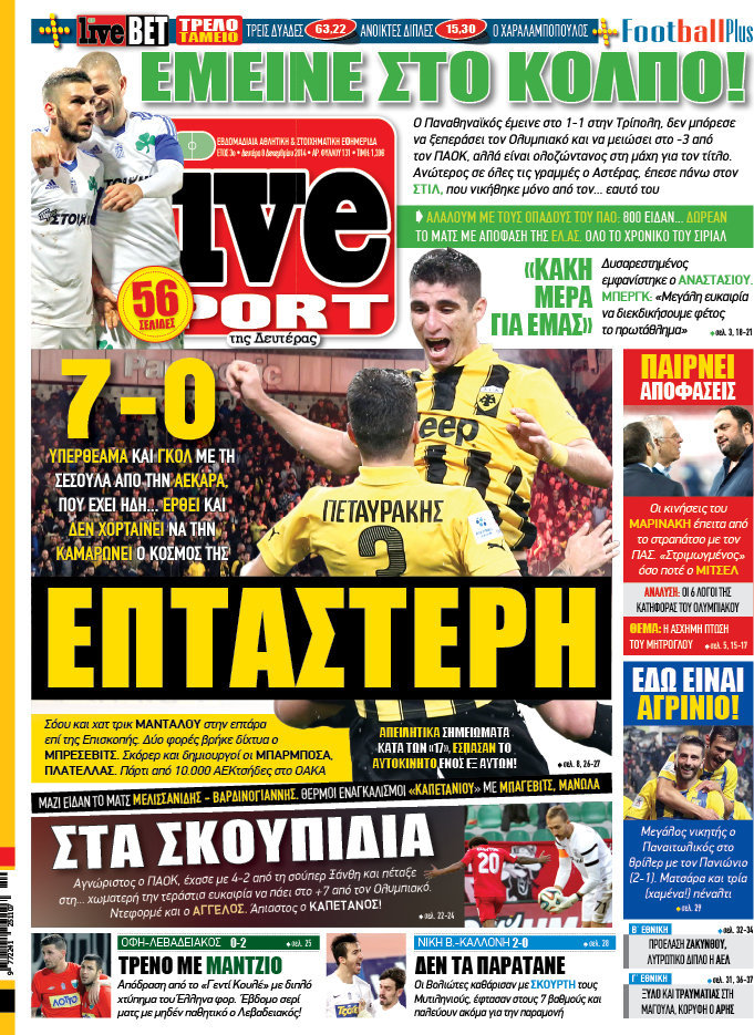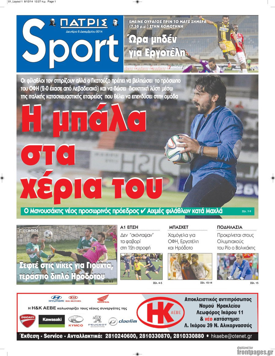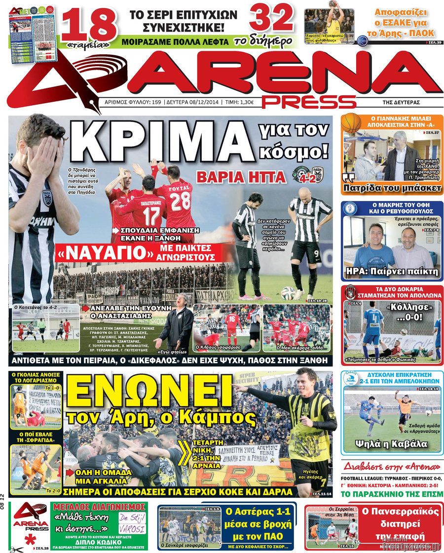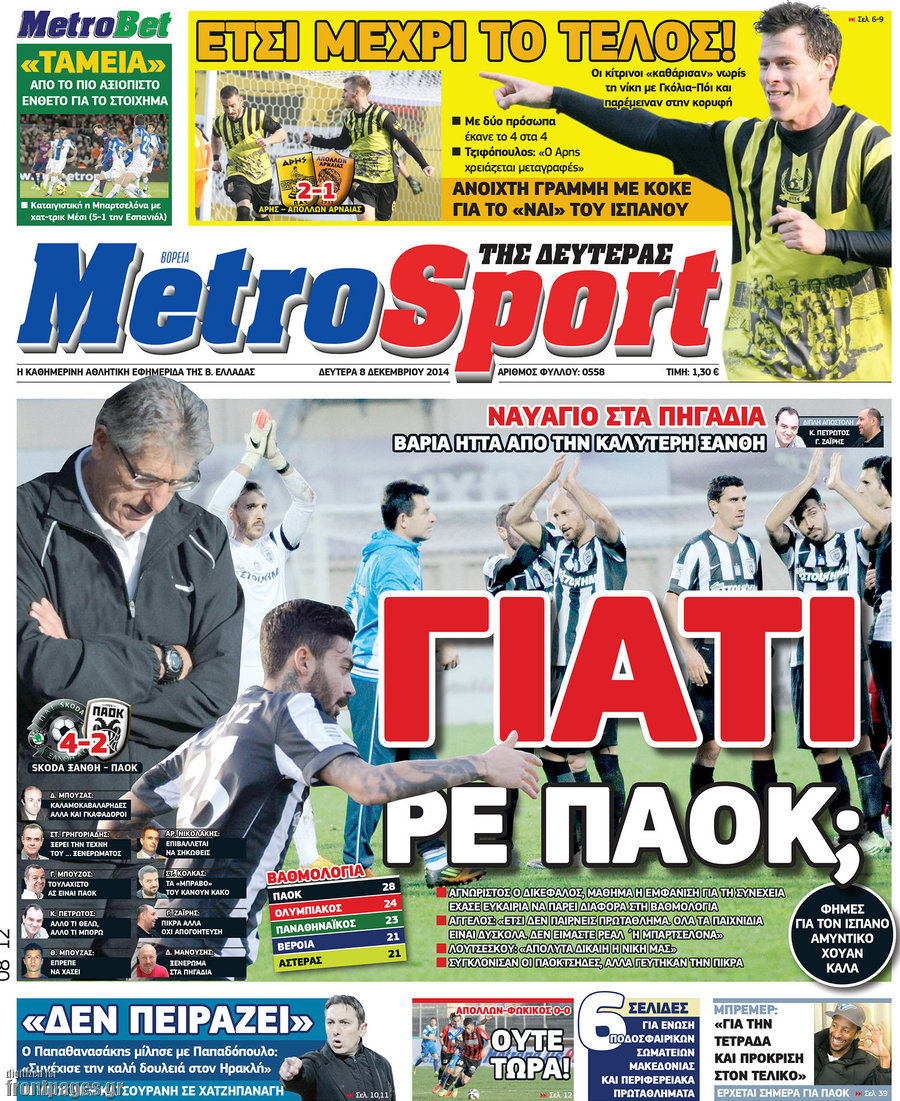 Οι αθλητικές εφημερίδες Enikos Newsroom 08:16, Δευτέρα 08 Δεκεμβρίου 2014 Media Οι αθλητικές εφημερίδες Διαβάστε τα πρωτοσέλιδα των αθλητικών εφημερίδων: ΑΘΛΗΤΙΚΕΣ ΕΦΗΜΕΡΙΔΕΣ ΠΡΩΤΟΣΕΛΙΔΑ Μοιράσου το: σχολίασε κι εσύ (0 σχόλια) Ακολουθήστε το enikos.gr στο Google News και μάθετε πρώτοι όλες τις ειδήσεις Δείτε όλες τις τελευταίες ειδήσεις από την Ελλάδα και τον Κόσμο στο enikos.gr Ειδήσεις Ροή Ειδήσεων 5 ώρες πριν Εκτός ευρωομάδας ΣΥΡΙΖΑ ο Νίκος Παππάς μετά την επίθεση στον δημοσιογράφο Νίκο Γιαννόπουλο – Η μήνυση και οι νέες δηλώσεις 6 ώρες πριν «Αγριεύουν» οι αγρότες: «Δεν συντρέχει λόγος συνάντησης με τον πρωθυπουργό» – Ώρα αποφάσεων στη σύσκεψη της Πέμπτης 5 ώρες πριν Κυψέλη: Χωρίς την οικογένειά της δίπλα της απολογήθηκε η 16χρονη – «Της είχε επιτεθεί κάποιος για να την βιάσει, φοβήθηκε και κυκλοφορούσε με μαχαίρι» 5 ώρες πριν Politico: Το πρόβλημα της Ευρώπης δεν είναι το Βέλγιο αλλά ο Ντόναλντ Τραμπ 7 ώρες πριν Αλεξανδρούπολη: Πολυοργανική ανεπάρκεια λόγω υποσιτισμού η αιτία θανάτου του 3χρονου αγοριού 5 ώρες πριν Μυστήριο με τεράστιες κυκλικές πέτρες 200 κιλών – Ανακαλύφθηκαν τυχαία κατά τη διάρκεια οδικών έργων και κανείς δεν ξέρει από πού προέρχονται 6 ώρες πριν Ύπνος: Ειδικός εξηγεί τον πραγματικό λόγο που ξυπνάτε στις 4 τα ξημερώματα – Ο ρόλος των ορμονών και του κιρκάδιου ρυθμού 7 ώρες πριν Αριθμολογία: Οι άνθρωποι που έχουν γεννηθεί αυτές τις 4 ημερομηνίες, είναι τρυφεροί και αγαπούν ανιδιοτελώς 19 ώρες πριν 20 χρόνια τα Χριστούγεννα ξεκινούν στα Public με μεγάλη ποικιλία σε δώρα! 18 λεπτά πριν Αλ Τσαντίρι Νιουζ: «Λύγισε» ο Δημήτρης Λάλος για τον Δημήτρη Ήμελλο – «Τον μνημονεύω, να ‘ναι καλά εκεί που είναι» 33 λεπτά πριν GNTM: Με δάκρυα τον αποχαιρέτησε η Ηλιάνα Παπαγεωργίου πριν από τον ημιτελικό – «Αισθάνομαι πολύ παράξενα» 48 λεπτά πριν Αμερικανικά στρατεύματα στον Ισημερινό για «προσωρινή» επιχείρηση κατά των ναρκωτικών 1 ώρα πριν Βραζιλία: Το Κογκρέσο ενέκρινε σχέδιο νόμου για τη μείωση της ποινής του πρώην προέδρου Μπολσονάρου 1 ώρα πριν Ένταση στο περιφερειακό συμβούλιο Δυτικής Μακεδονίας: Φωνές, σπρωξιές και διακοπή – Δείτε βίντεο ENIKOS NETWORK Αϋπνία: Το κόλπο που θα σας βοηθήσει να κοιμηθείτε απόψε – Είναι απλό και έχει αποτέλεσμα 2,6 εκατομμύρια πολίτες έχουν ήδη εμβολιαστεί κατά της γρίπης ΕΛΣΤΑΤ: Τι δείχνουν τα νέα στοιχεία για τις ηλεκτρονικές παραγγελίες των επιχειρήσεων ΚΕΠΕ: Οι 3 διακριτές συμβολές των ΜμΕ και της μεταποίησης στην ελληνική οικονομία Χαρτογραφώντας το «σημείο χωρίς επιστροφή»: Για πρώτη φορά αποκαλύπτεται με λεπτομέρεια το ακανθώδες όριο της ατμόσφαιρας τ... Η Google καταργεί τη λειτουργία «dark web report» – Πώς θα μπορούν οι χρήστες να διαγράφουν τα δεδομένα τους περισσότερα 02:30 , Πέμπτη 18 Δεκεμβρίου 2025 Αλ Τσαντίρι Νιουζ: Η κόρη της Πάολα στο κοινό – Η ατάκα Λαζόπουλου που την έκανε να «κοκκινήσει» Γιορτινή διάθεση και ευχάριστες στιγμές γέμισε η αποψινή, τελευταία για το 2025, εκπομπή του «... 22:24 , Τετάρτη 17 Δεκεμβρίου 2025 Το Σπίτι Δίπλα Στο Ποτάμι: Σε κίνδυνο η υγεία του Απόστολου – Τι θα δούμε απόψε “Το Σπίτι Δίπλα στο Ποτάμι” ξετυλίγει το νήμα της ζωής των πέντε αδελφών με καταισ... 21:14 , Τετάρτη 17 Δεκεμβρίου 2025 Παιχνίδια Εκδίκησης: Θα καταφέρει ο Χρήστος να κλονίσει την εμπιστοσύνη της Μάγιας απέναντι στον Άγη; Τα «Παιχνίδια Εκδίκησης» έρχονται απόψε στις 22:30, στον Αντ1, με το τελευταίο επεισόδιο της χ... 20:57 , Τετάρτη 17 Δεκεμβρίου 2025 Άγιος Έρωτας: