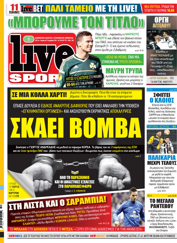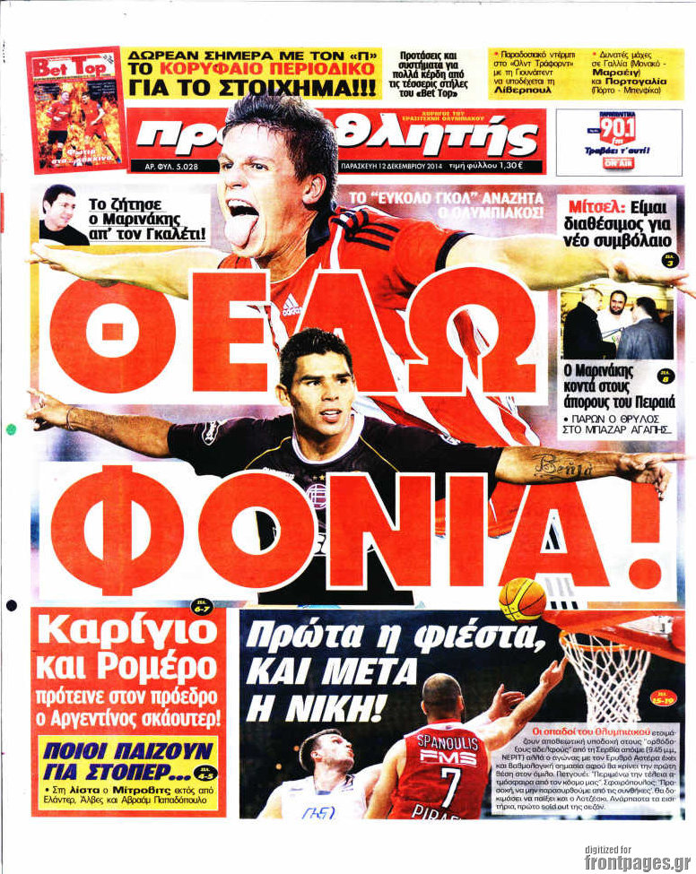 Οι αθλητικές εφημερίδες Enikos Newsroom 08:17, Παρασκευή 12 Δεκεμβρίου 2014 Media Διαβάστε τα πρωτοσέλιδα των αθλητικών εφημερίδων: ΑΘΛΗΤΙΚΕΣ ΕΦΗΜΕΡΙΔΕΣ ΕΦΗΜΕΡΙΔΕΣ ΠΡΩΤΟΣΕΛΙΔΑ Μοιράσου το: σχολίασε κι εσύ (0 σχόλια) Ακολουθήστε το enikos.gr στο Google News και μάθετε πρώτοι όλες τις ειδήσεις Δείτε όλες τις τελευταίες ειδήσεις από την Ελλάδα και τον Κόσμο στο enikos.gr Ειδήσεις Ροή Ειδήσεων 1 ώρα πριν Αυξάνουν την πίεση προς την κυβέρνηση οι αγρότες: Κλείνουν παρακαμπτήριους και ανοίγουν διόδια – Τι θα γίνει τις γιορτές 56 λεπτά πριν Φοινικούντα: Το Σάββατο απολογείται ο 30χρονος γιος γνωστού επιχειρηματία της Πλάκας που παραδόθηκε – Όσα είπε στους αστυνομικούς και ο ρόλος του στο έγκλημα 39 λεπτά πριν Μπορεί ο Μαδούρο να αντέξει τον αποκλεισμό του Τραμπ; Τι θα χρειαστεί η Ουάσινγκτον για να τον ανατρέψει 3 ώρες πριν Δημοσκόπηση Metron Analysis: Στις 10 μονάδες η διαφορά ΝΔ-ΠΑΣΟΚ, στην 3η θέση η Πλεύση Ελευθερίας – 8 στους 10 στηρίζουν τον αγώνα των αγροτών 2 ώρες πριν Πρίγκιπας Ουίλιαμ – Κέιτ: Η νέα οικογενειακή φωτογραφία για τις Χριστουγεννιάτικες κάρτες του 2025 2 ώρες πριν Ύπνος: Η απλή βραδινή ρουτίνα για να προστατεύσετε τα μαλλιά σας από το κρύο κατά τη διάρκεια του χειμώνα 3 ώρες πριν Manifesting: Πώς να συναντήσετε τον σύντροφο της ζωής σας, ανάλογα με τον μήνα γέννησής σας 2 ημέρες πριν 20 χρόνια τα Χριστούγεννα ξεκινούν στα Public με μεγάλη ποικιλία σε δώρα! 42 λεπτά πριν Αρχαιολόγοι ανακάλυψαν ρωμαϊκά τεχνουργήματα από μια πόλη που δεν υπήρξε ποτέ – Τα τρία εντυπωσιακά κτίρια και ο αμφορέας με τις… σαρδέλες 8 λεπτά πριν Αθηνά Μαξίμου: Η τρυφερή ανάρτηση για τα γενέθλια του Αιμίλιου Χειλάκη – «Είναι η εκλεκτική συγγένειά μου, η επιλογή και η ευθύνη μου» 23 λεπτά πριν Παναθηναϊκός – Χάποελ Τελ Αβίβ 93-82: Με… φόρα από την Κωνσταντινούπολη 39 λεπτά πριν Μπορεί ο Μαδούρο να αντέξει τον αποκλεισμό του Τραμπ; Τι θα χρειαστεί η Ουάσινγκτον για να τον ανατρέψει 42 λεπτά πριν Αρχαιολόγοι ανακάλυψαν ρωμαϊκά τεχνουργήματα από μια πόλη που δεν υπήρξε ποτέ – Τα τρία εντυπωσιακά κτίρια και ο αμφορέας με τις… σαρδέλες 44 λεπτά πριν Στο ΟΑΚΑ για το «Παναθηναϊκός – Χάποελ» η Κίμπερλι Γκίλφοϊλ – ΦΩΤΟ ENIKOS NETWORK Σε περίοδο αυξημένης δραστηριότητας η γρίπη στην Ελλάδα-Μέτρα προστασίας από τον ΕΟΔΥ Σκέφτεστε συνέχεια συζητήσεις που έχετε κάνει; Τι σημαίνει αυτό, σύμφωνα με ειδικό Στεγαστικό: Τι λέει η ΠΟΜΙΔΑ για τα νέα μέτρα που ανακοίνωσε ο Κυριάκος Μητσοτάκης Λαγκάρντ: Αισιόδοξη για την ανάπτυξη της Ευρωζώνης, αβέβαιη για τον πληθωρισμό Χαρτογραφώντας το «σημείο χωρίς επιστροφή»: Για πρώτη φορά αποκαλύπτεται με λεπτομέρεια το ακανθώδες όριο της ατμόσφαιρας τ... Η Google καταργεί τη λειτουργία «dark web report» – Πώς θα μπορούν οι χρήστες να διαγράφουν τα δεδομένα τους περισσότερα 17:45 , Πέμπτη 18 Δεκεμβρίου 2025 ROUK ZOUK: Εορταστικό επεισόδιο με καλεσμένους τους πρωταγωνιστές του «Γιατί ρε πατέρα» Το Σάββατο 20 Δεκεμβρίου στις 21:00, η Ζέτα Μακρυπούλια υποδέχεται εκλεκτούς ηθοποιούς που όλο... 17:20 , Πέμπτη 18 Δεκεμβρίου 2025 Άγιος έρωτας: Η Χριστίνα εξομολογείται στον πατέρα Νικόλαο, απόψε στις 21:00 στον Alpha Η Νότα αποφασίζει να εκδικηθεί τον Πέτρο και τον Στέφανο, για χάρη του Λούη, όμως τα πράγματα ... 16:50 , Πέμπτη 18 Δεκεμβρίου 2025 Να μ’ αγαπάς: Ζωή και Φωτεινή συμφιλιώνονται ως μάνα με κόρη, απόψε στις 20:00 Η ταυτότητα του Άγγελου αποκαλύπτεται στο νέο επεισόδιο της σειράς “Να μ’ αγαπάς... 15:52 , Πέμπτη 18 Δεκεμβρίου 2025 Το Σπίτι Δίπ